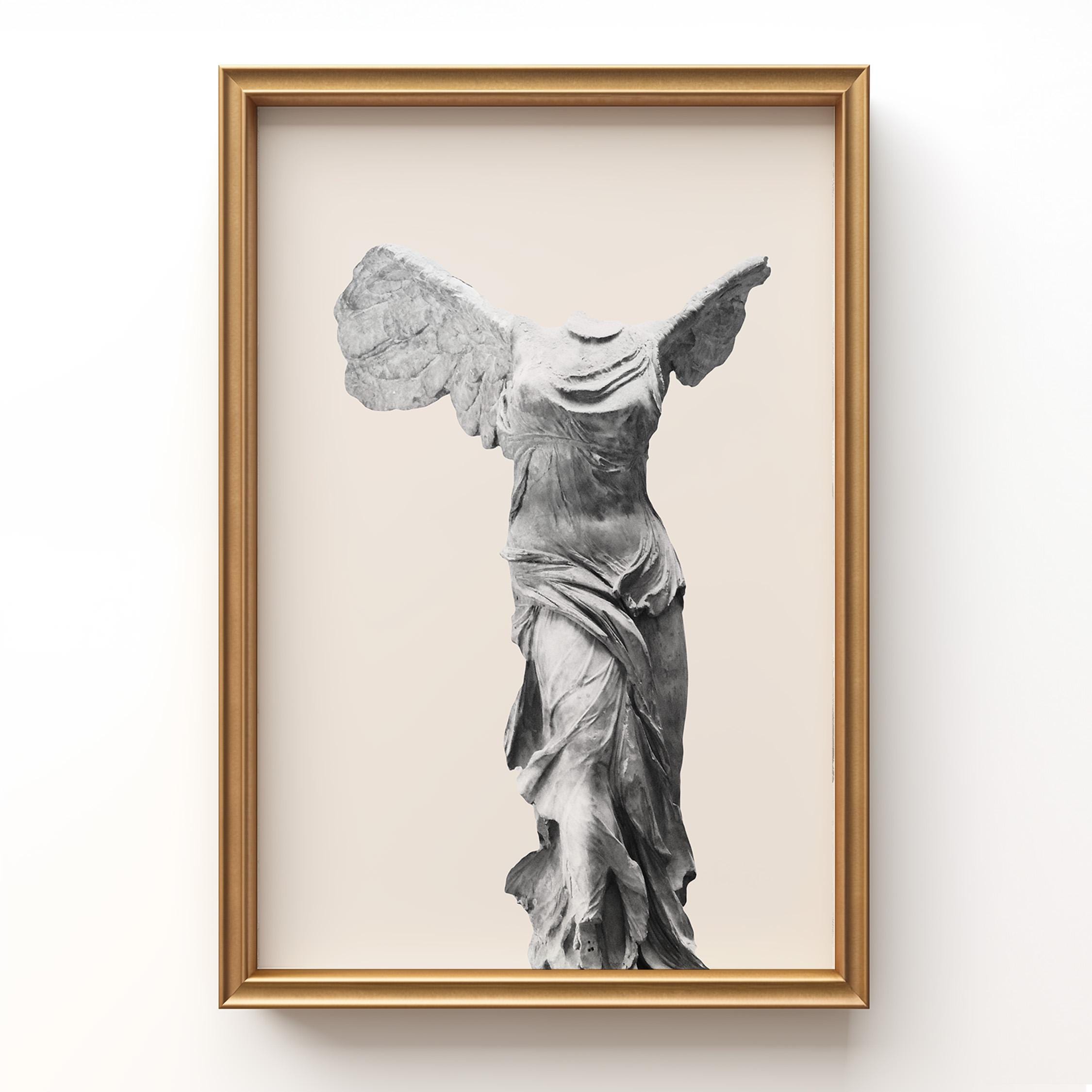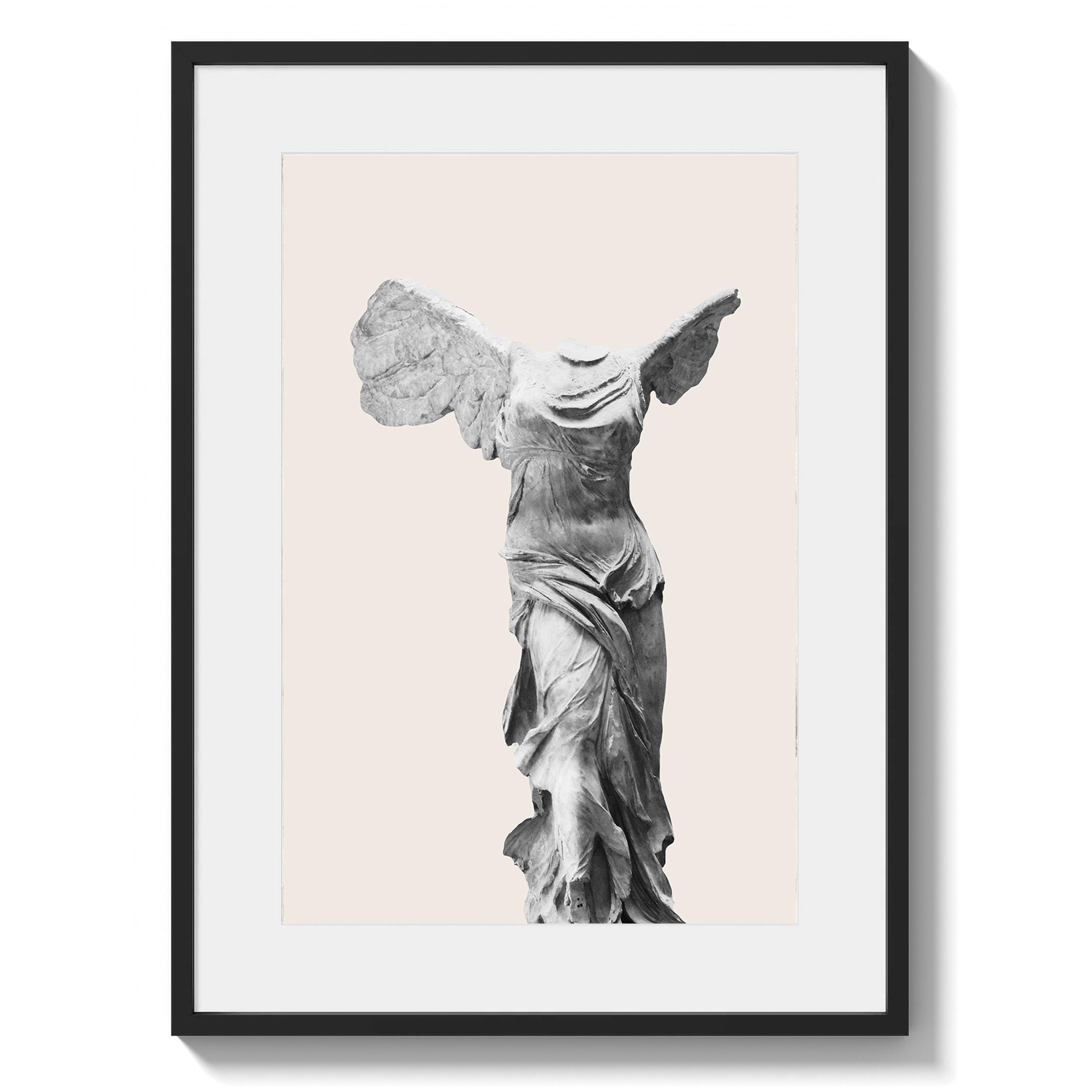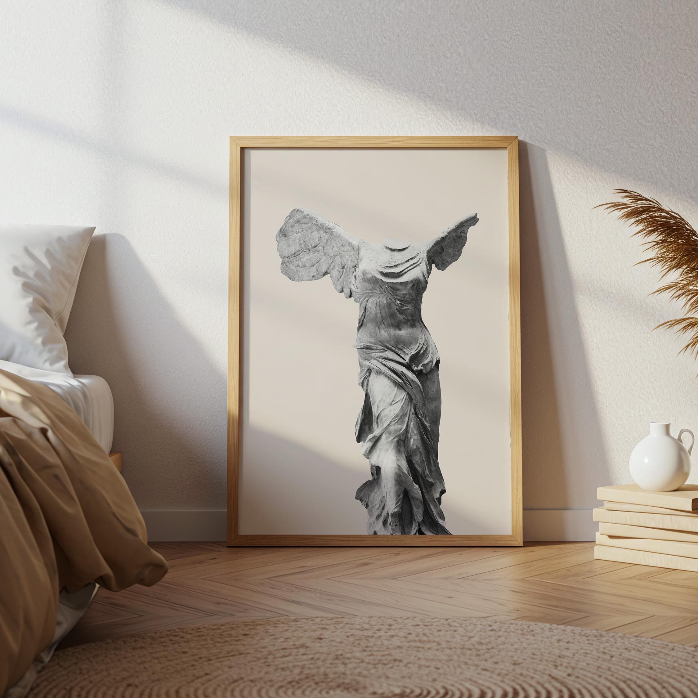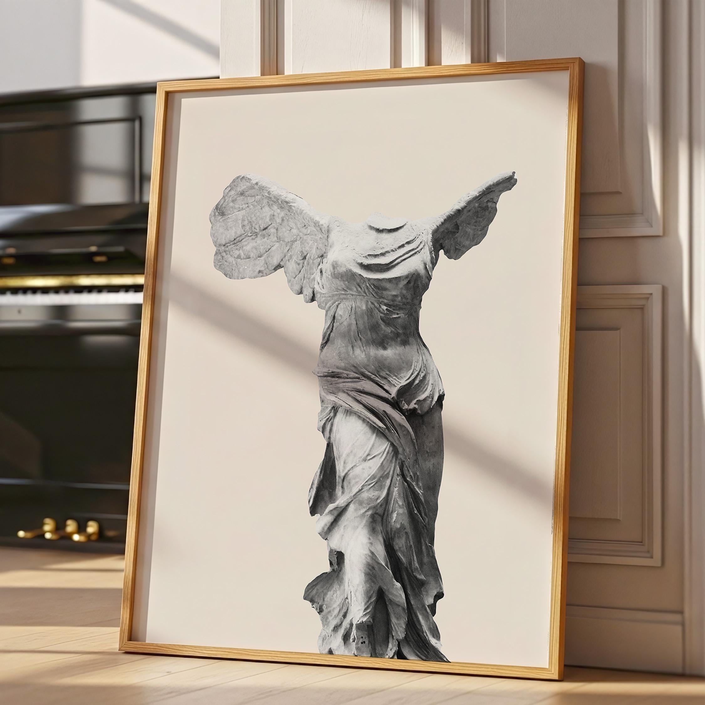 Bring museum elegance home with this iconic Winged Victory sculpture print on a soft neutral background. Perfect for lovers of classical art, history enthusiasts, and those seeking refined decor for living rooms, home offices, or entryways. This timeless Greek statue art adds sophistication and cultural depth to any space with its graceful, sculptural beauty.