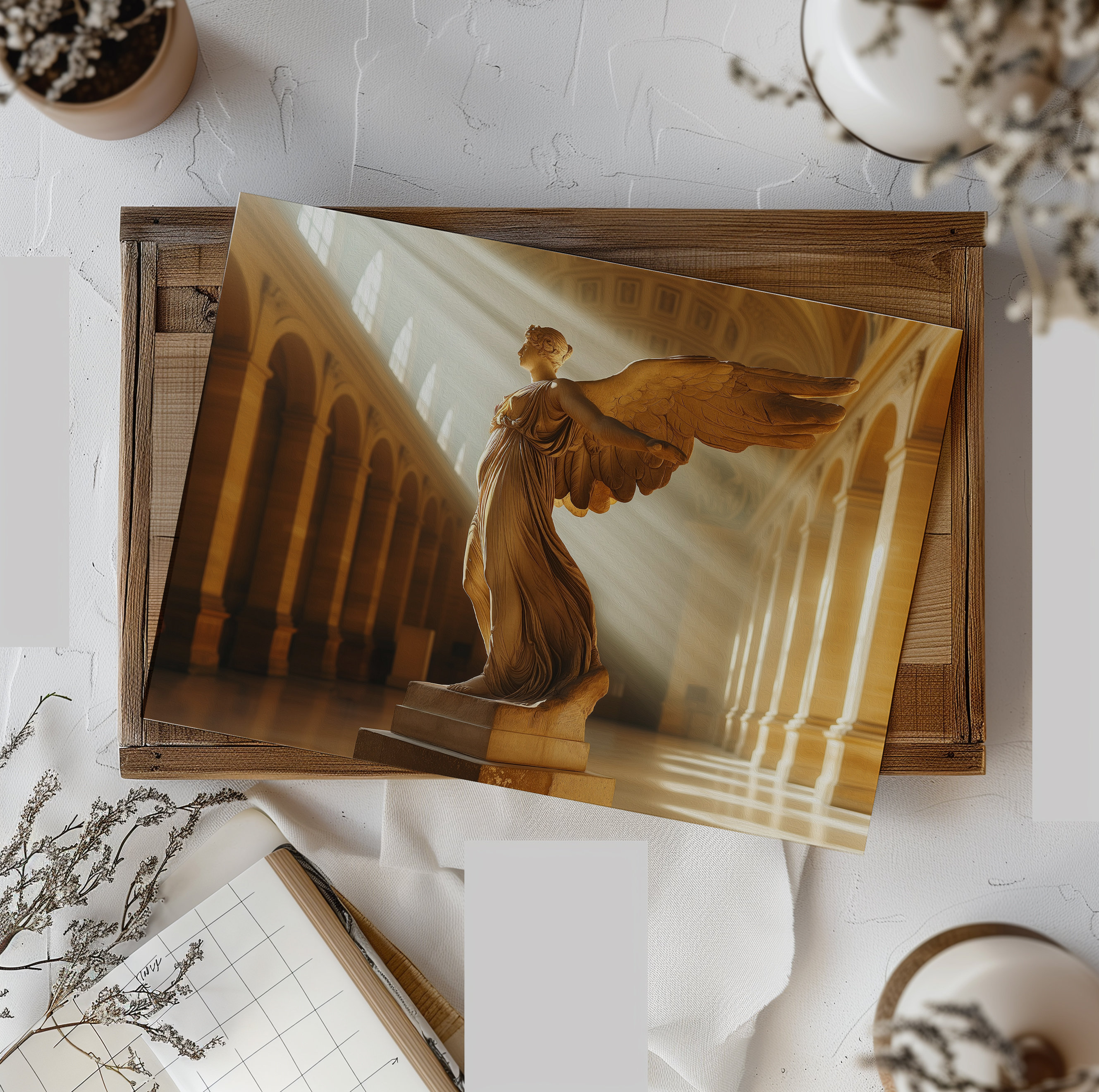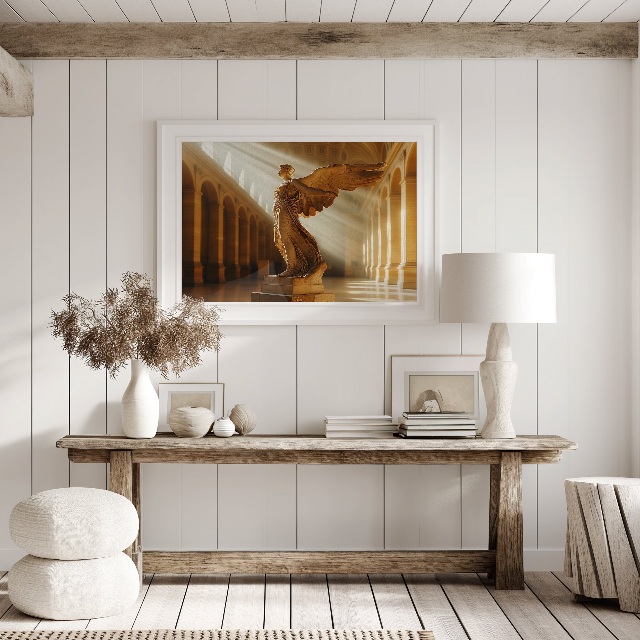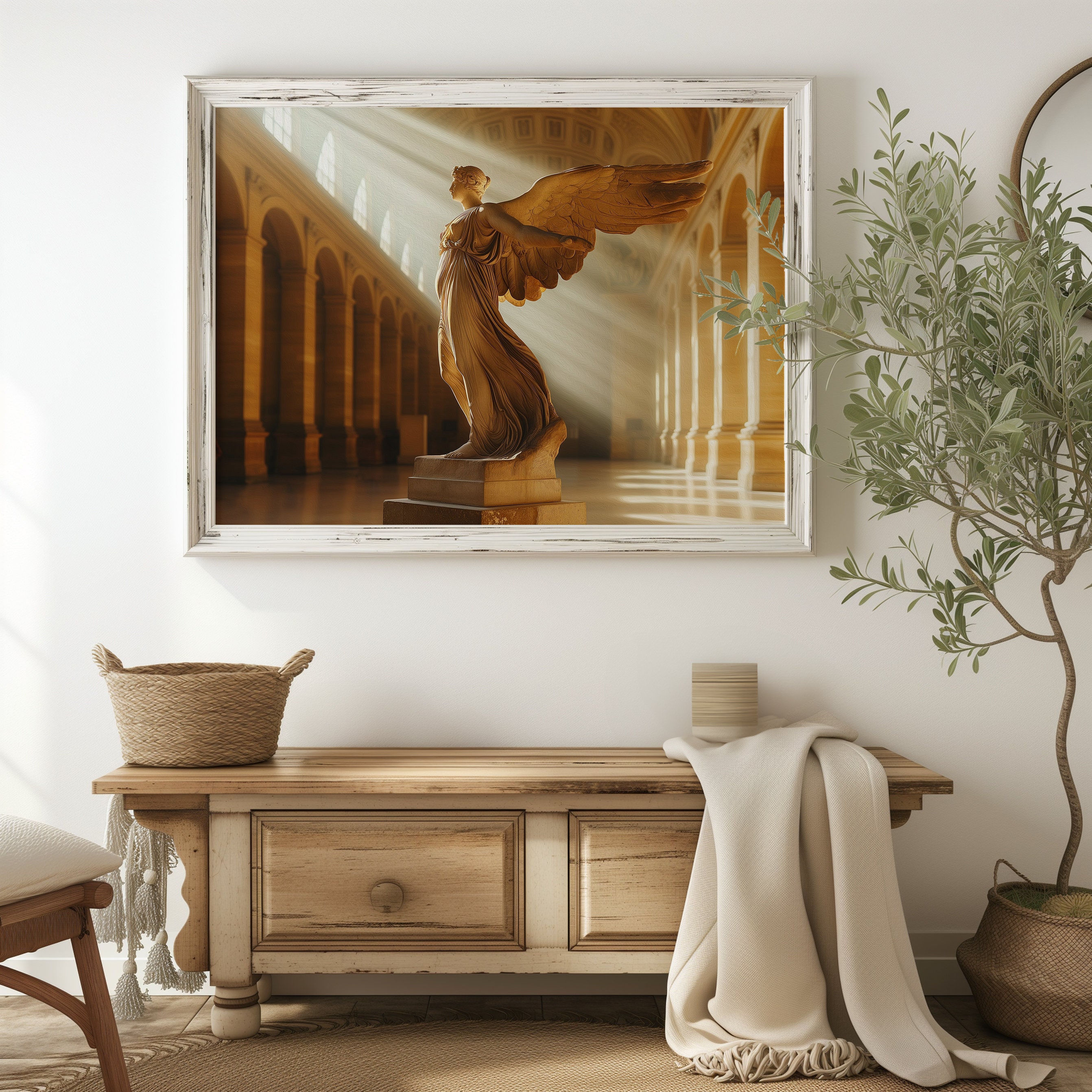 ▶ Embrace the timeless elegance of 'Winged Victory of Samothrace,' a vintage classical artwork oil painting available for digital download. Perfect for light academia decor, this exquisite representation of the iconic Goddess statue adds a touch of sophistication and historical allure to any space. Elevate your home or office with this majestic piece, seamlessly blending ancient artistry with modern aesthetics.
