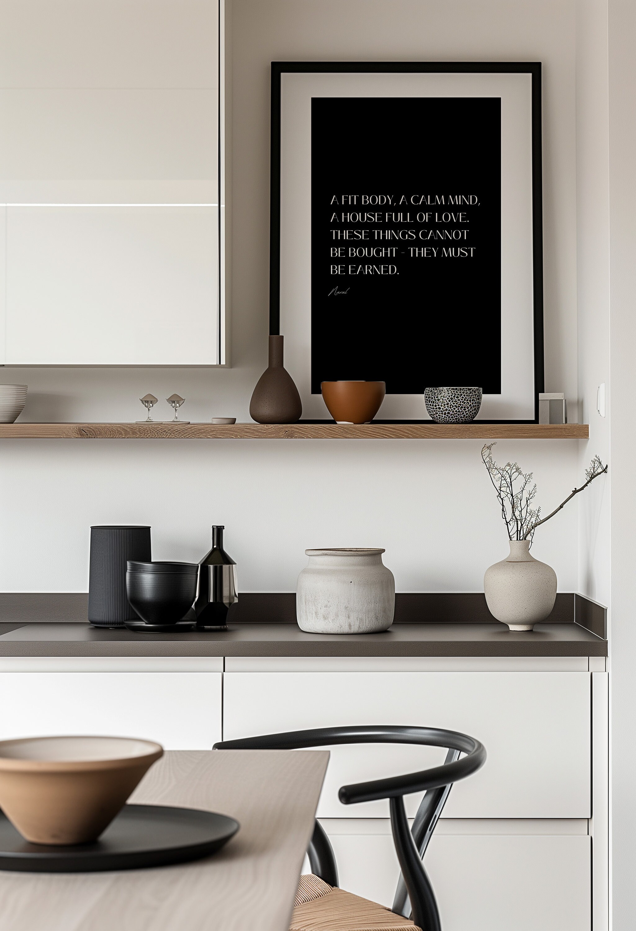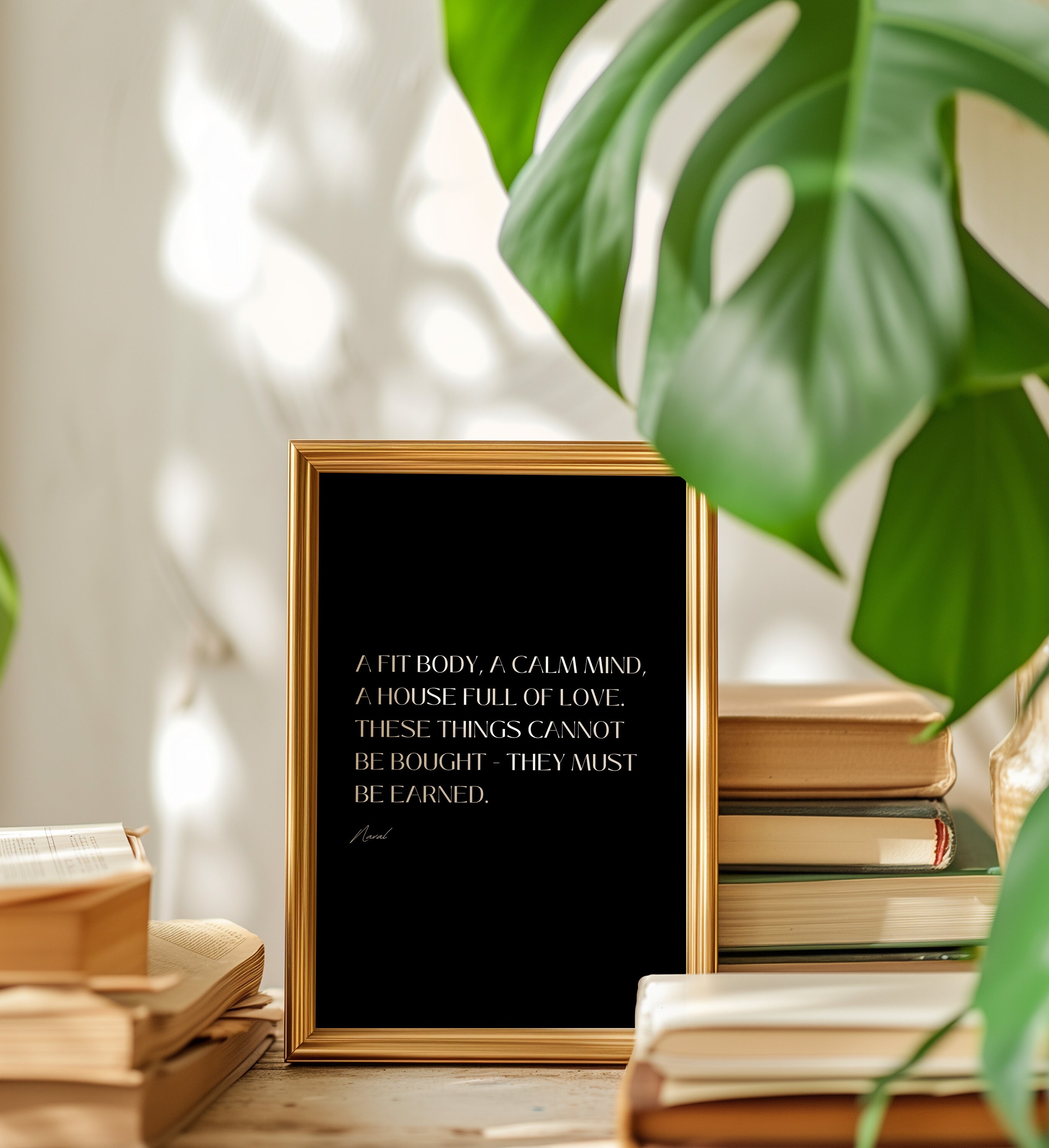 Naval Ravikant quote printable : A fit body, a calm mind, a house full of love. These things cannot be bought - they must be earned.