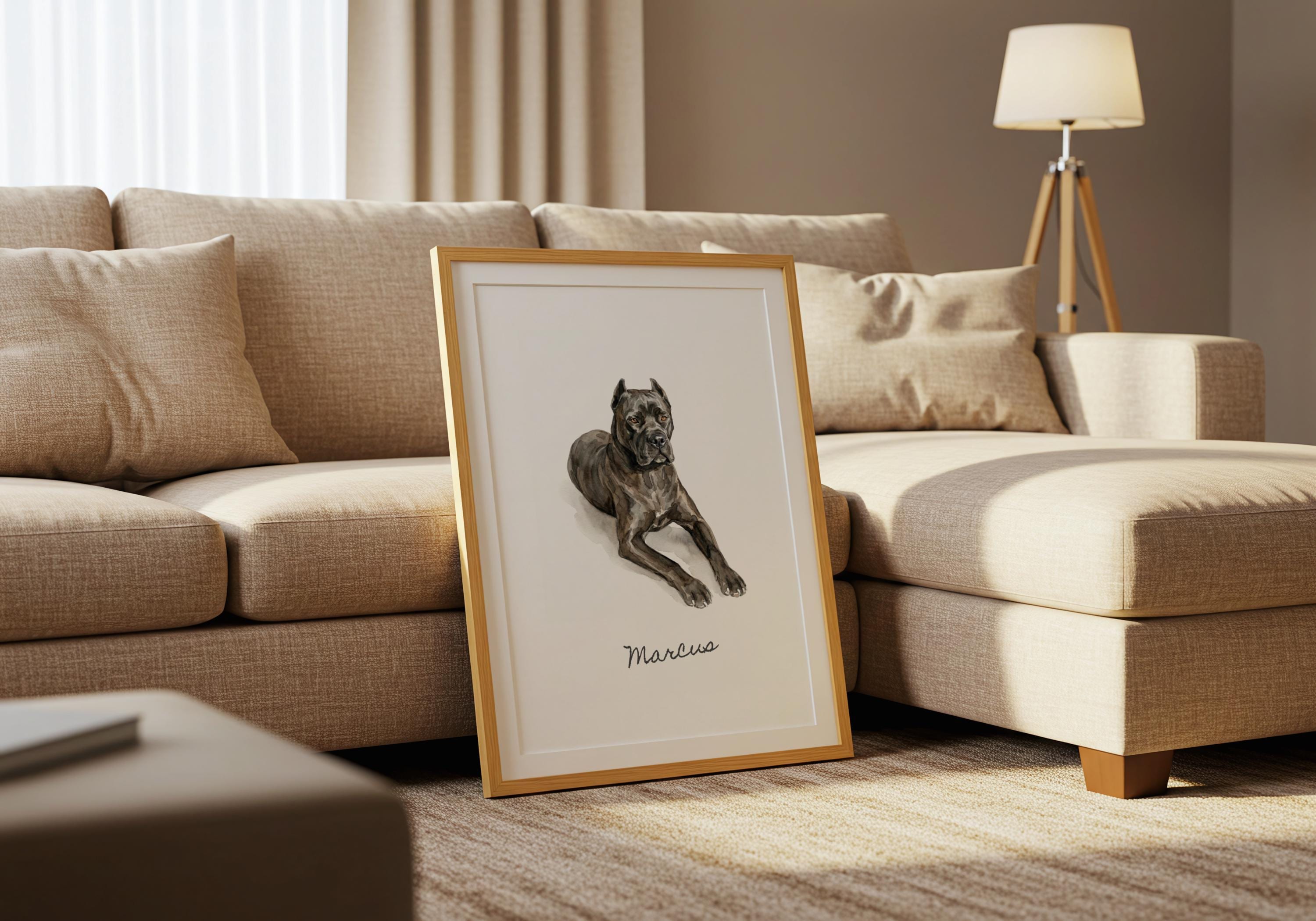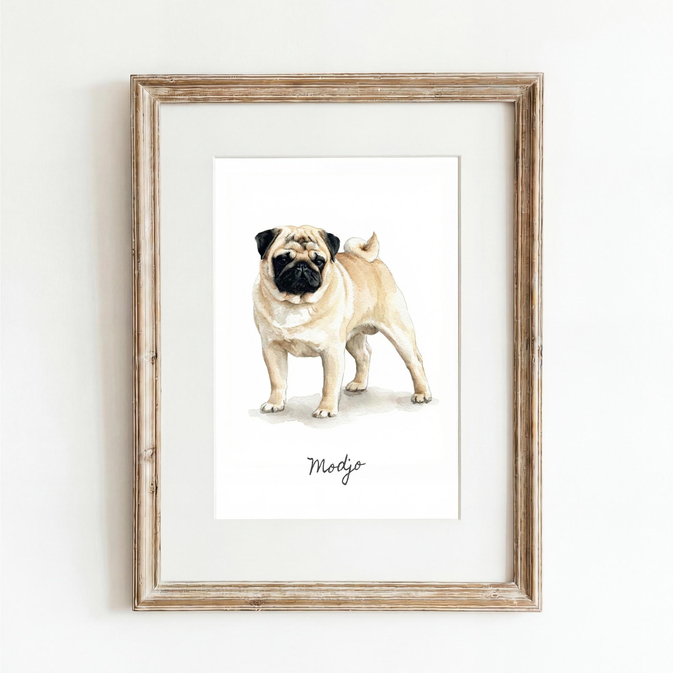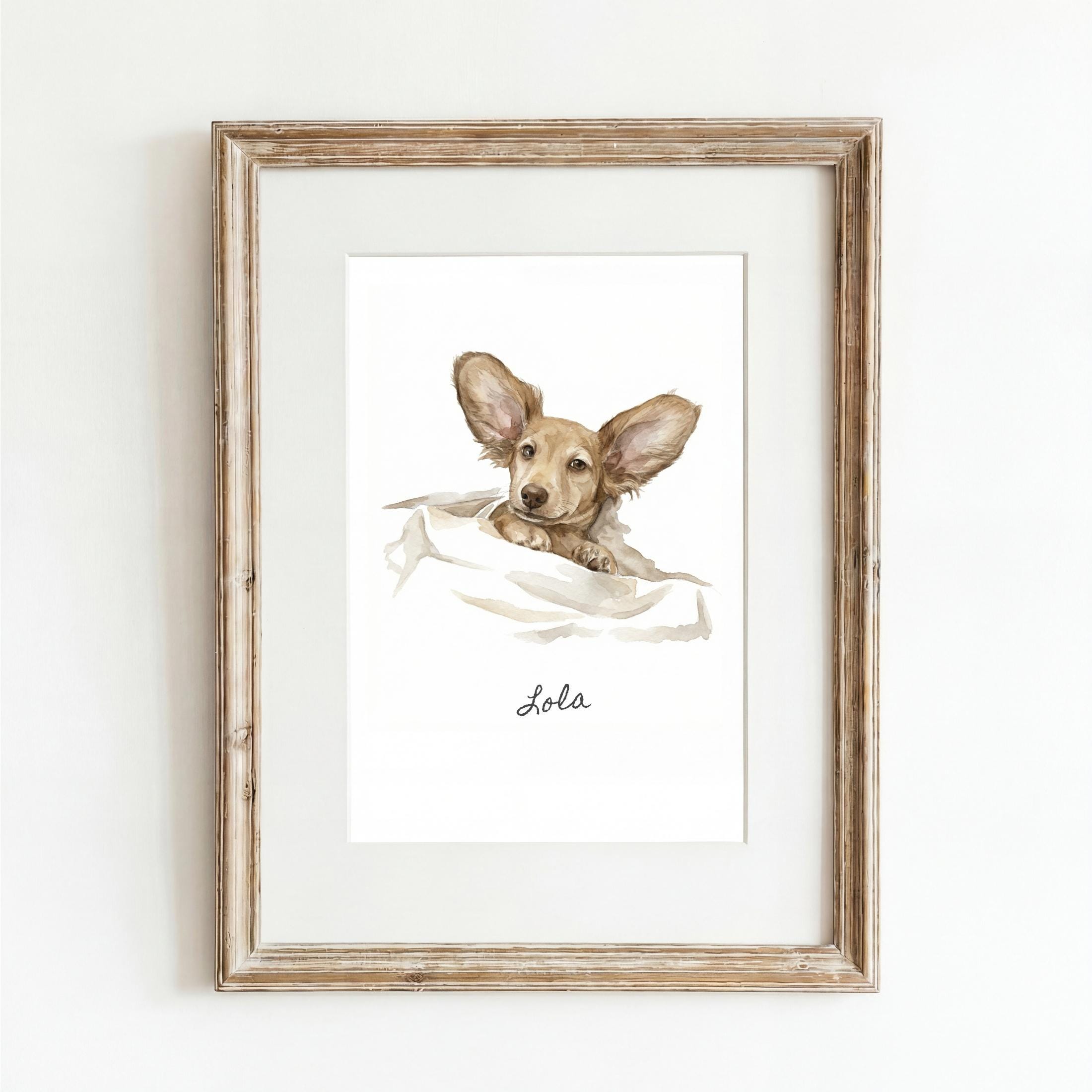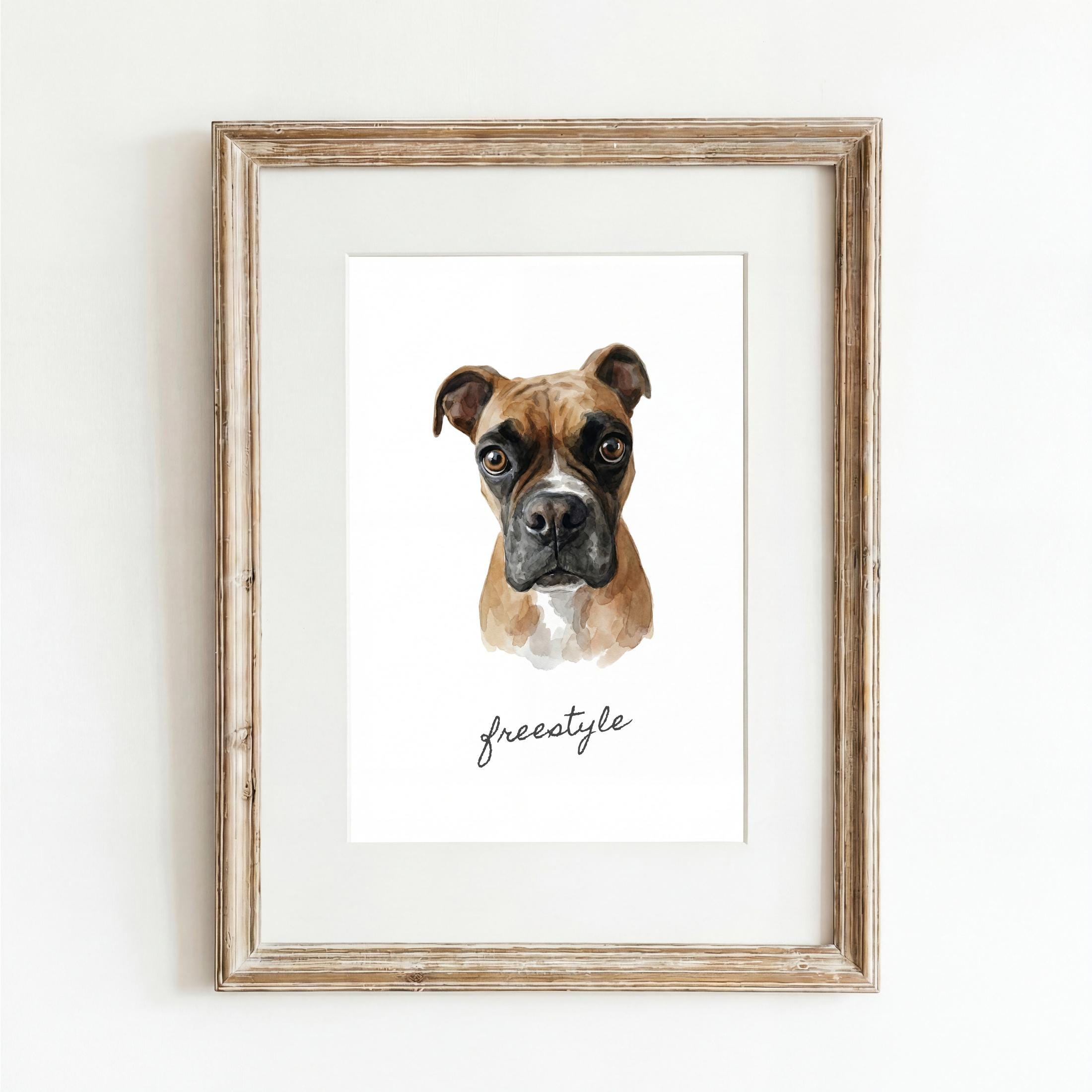 This is a fully custom digital pet portrait, created by professional artists from your photo. Each artwork is carefully crafted in a minimalist watercolor style to capture your pet’s expression, warmth, and personality.