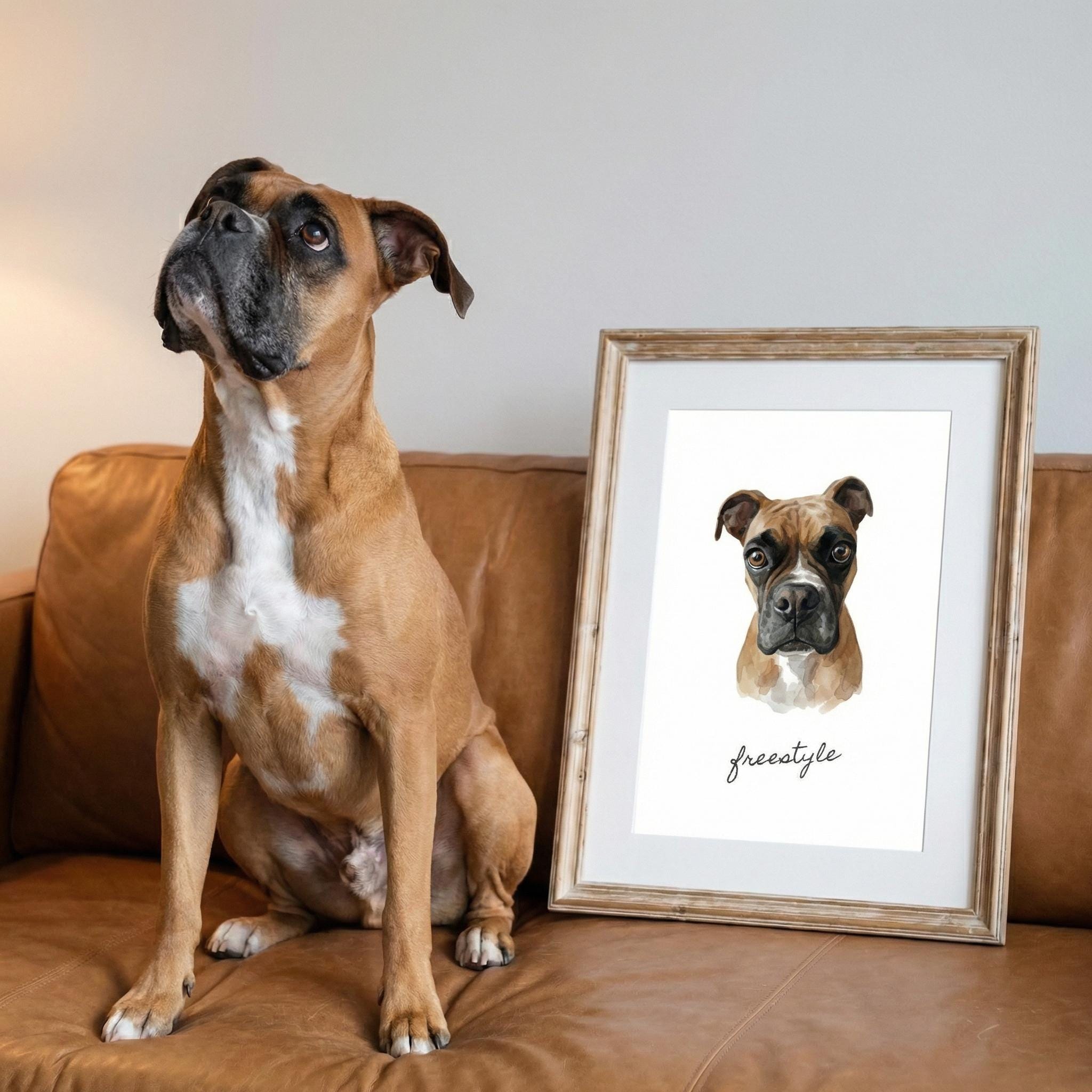 Preserve your pet’s spirit in a soft, timeless watercolor portrait.