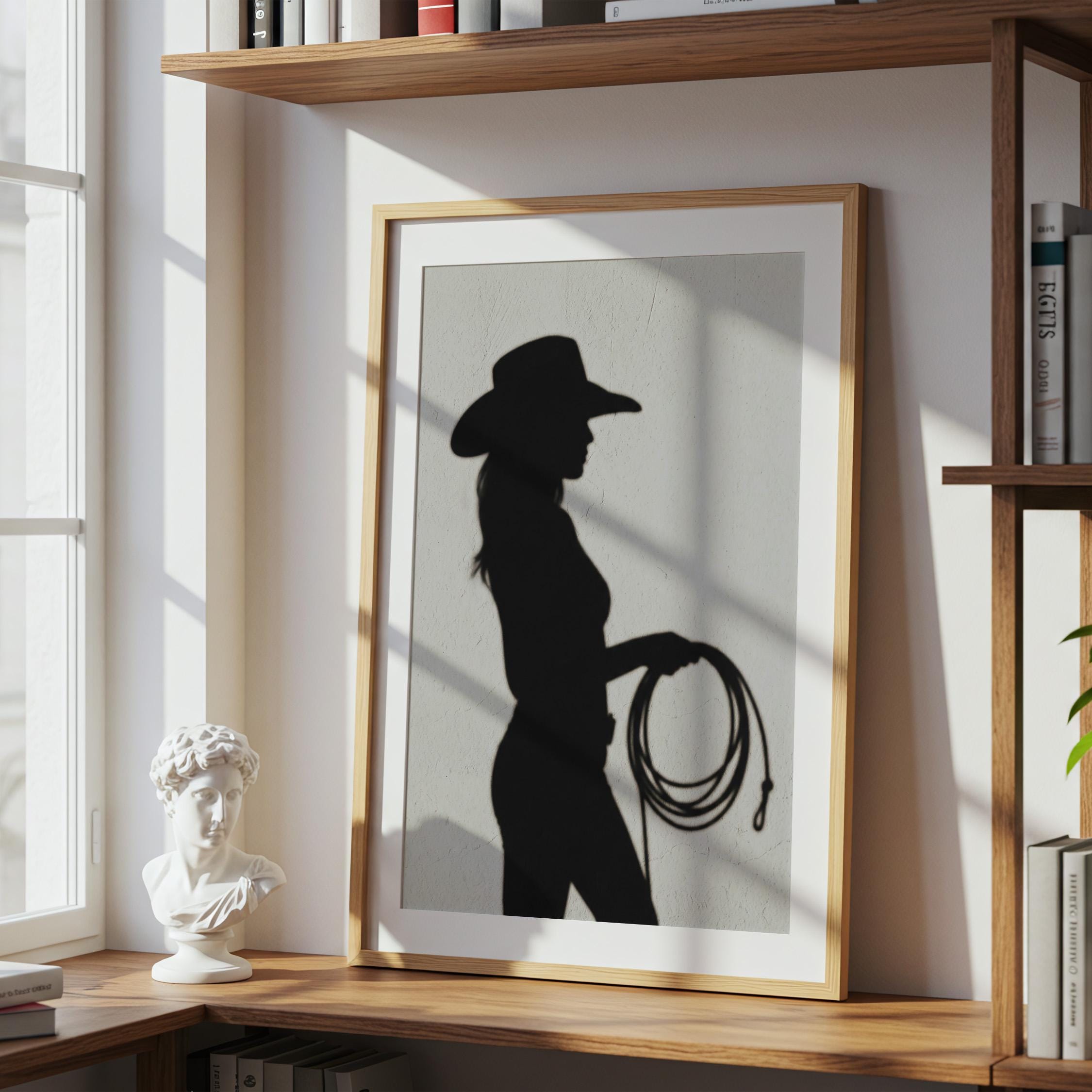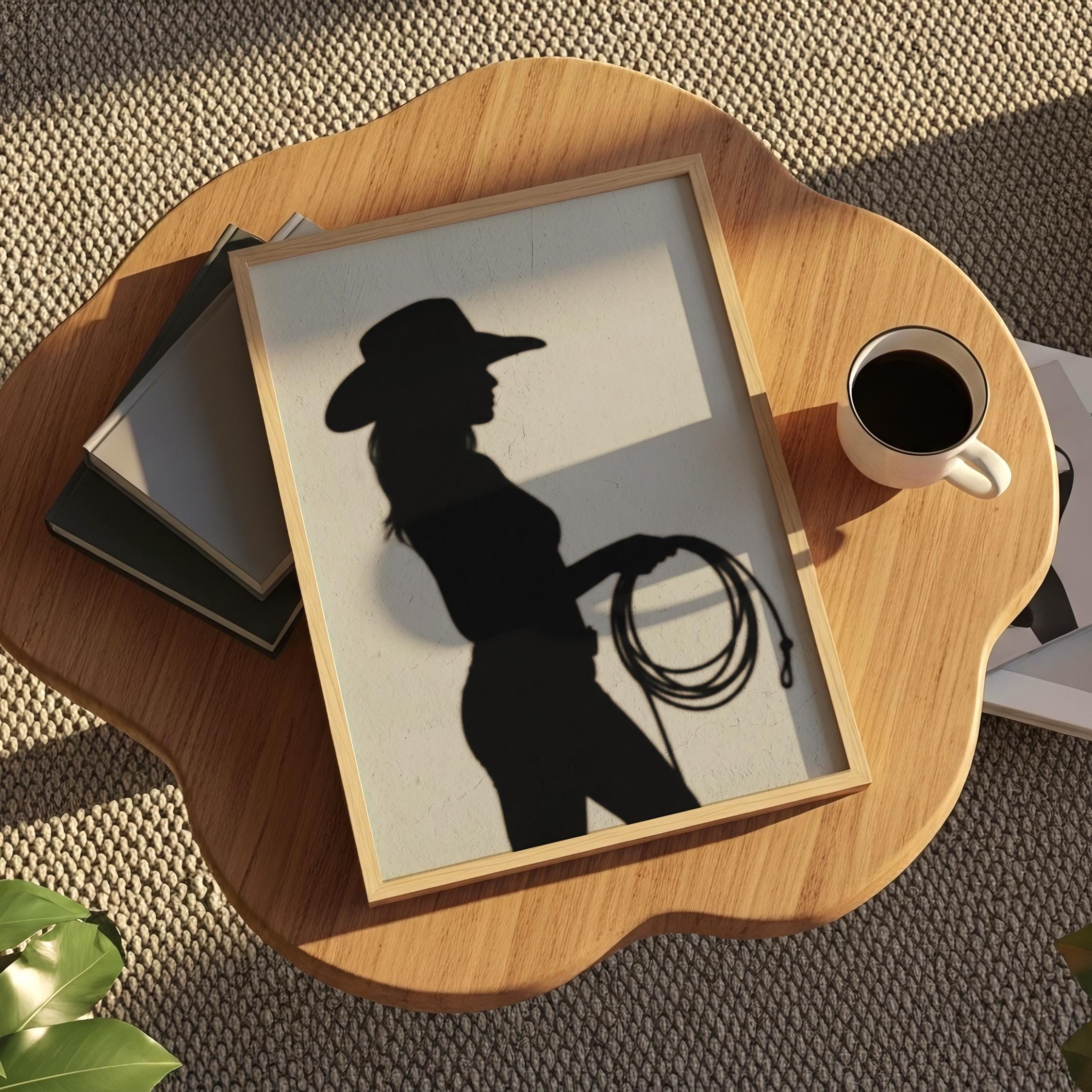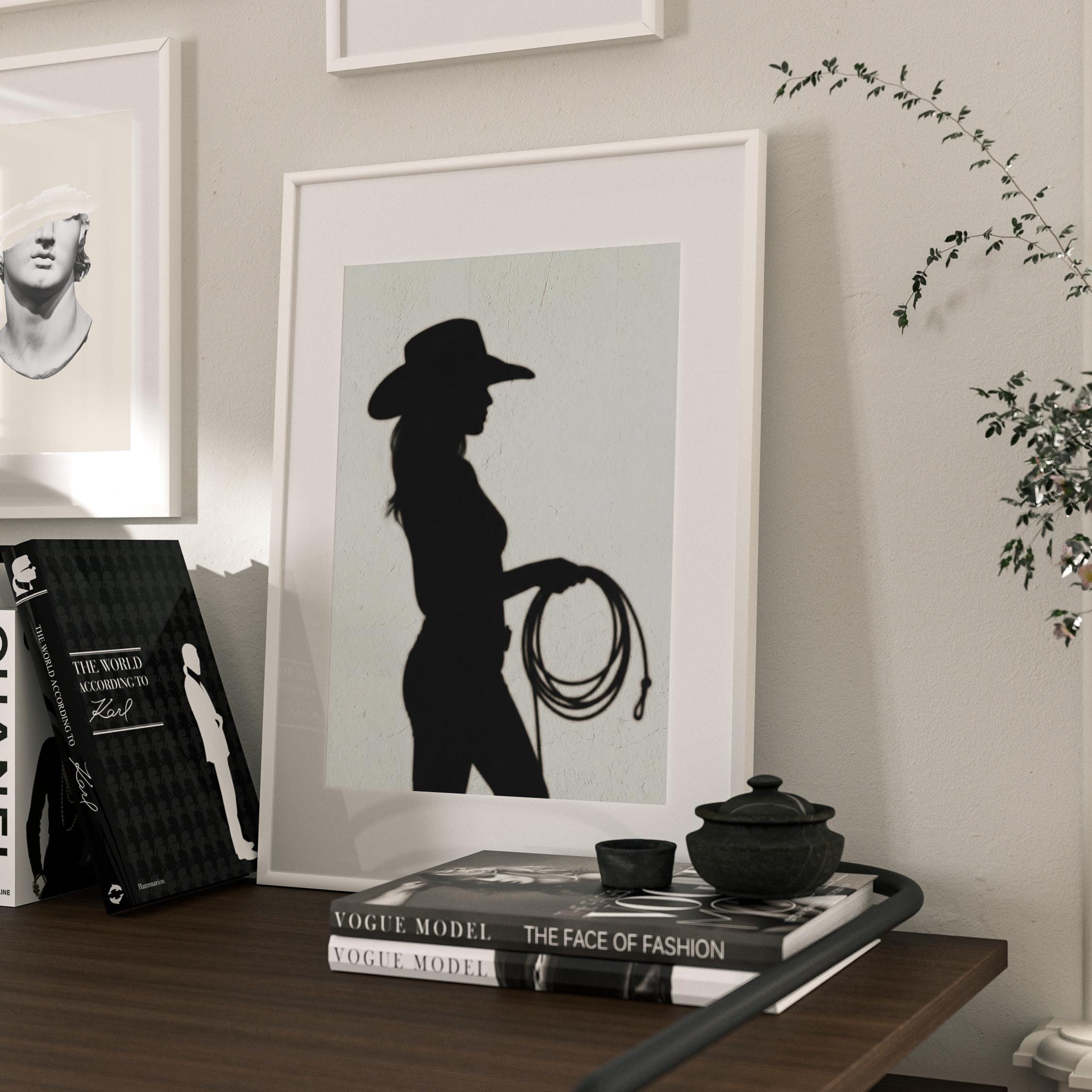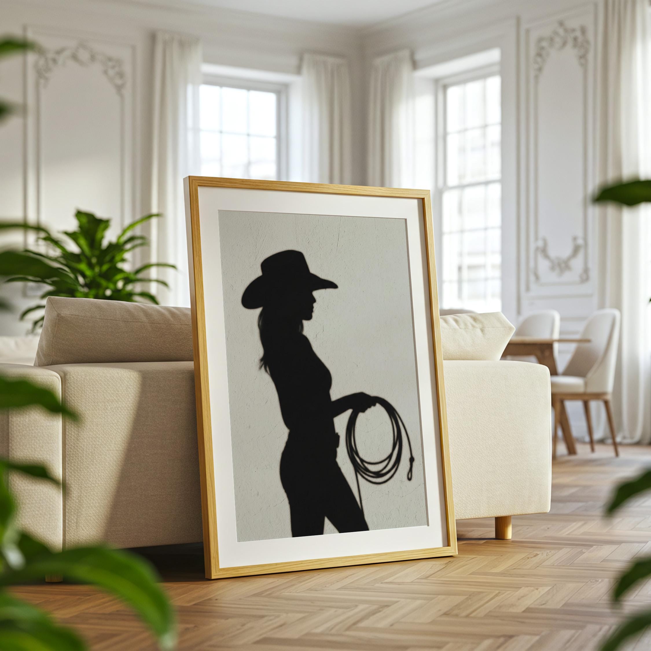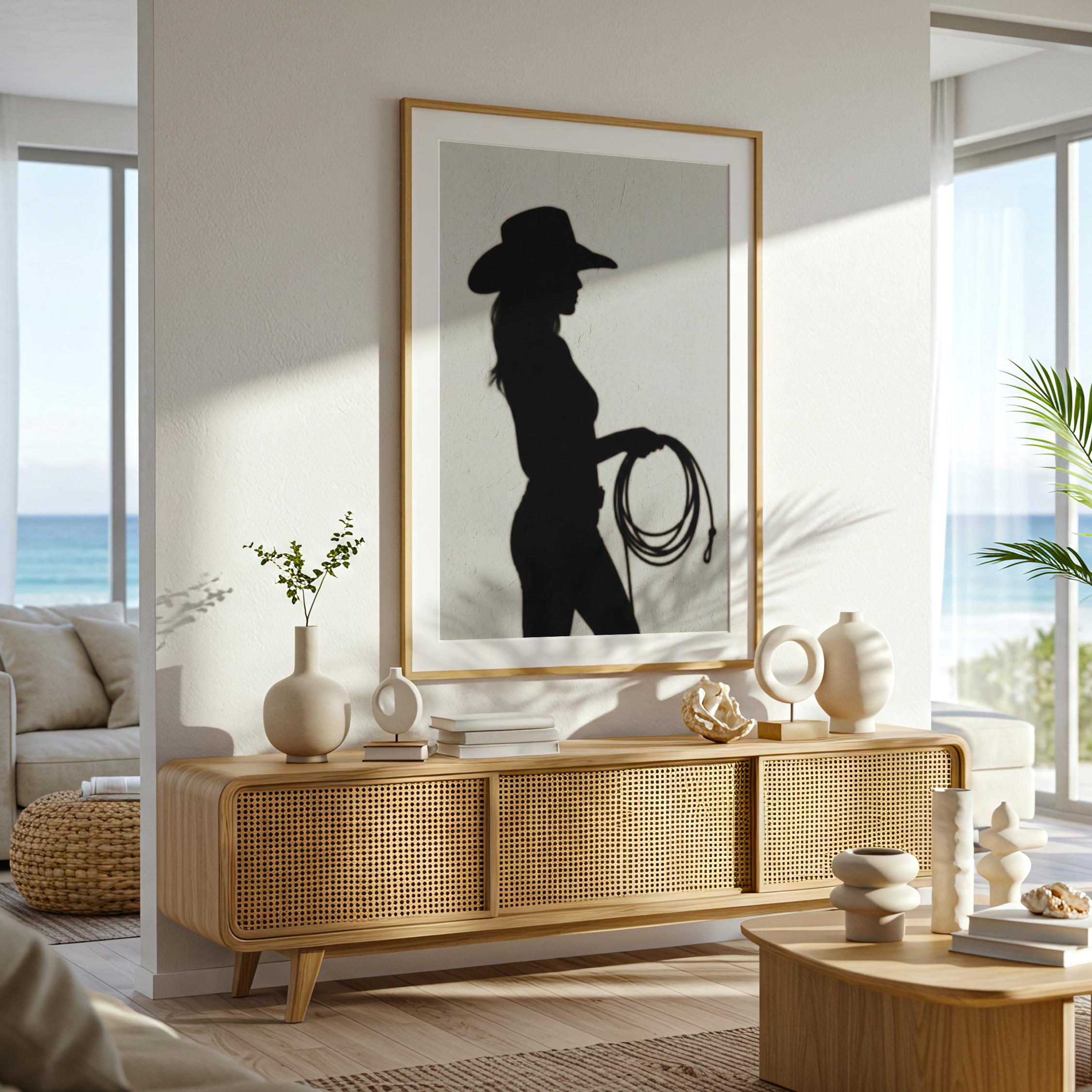 Cowgirl Wall Art - Trendy Boho Decor Shadow Print Poster | Minimalist Western Printable