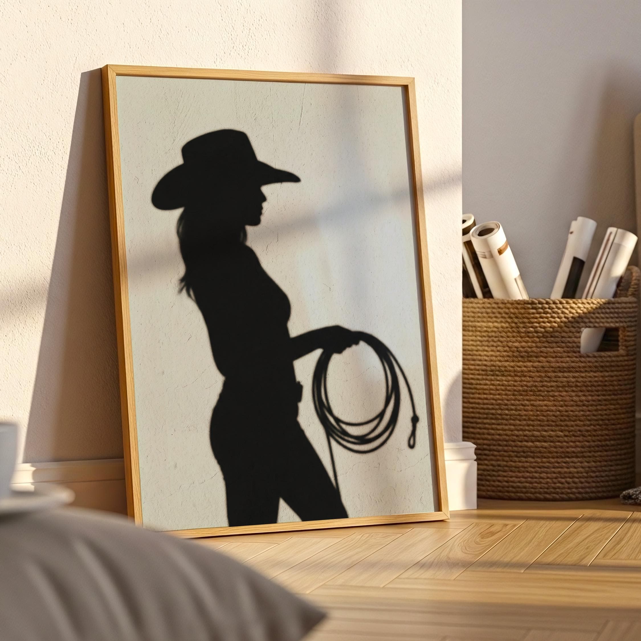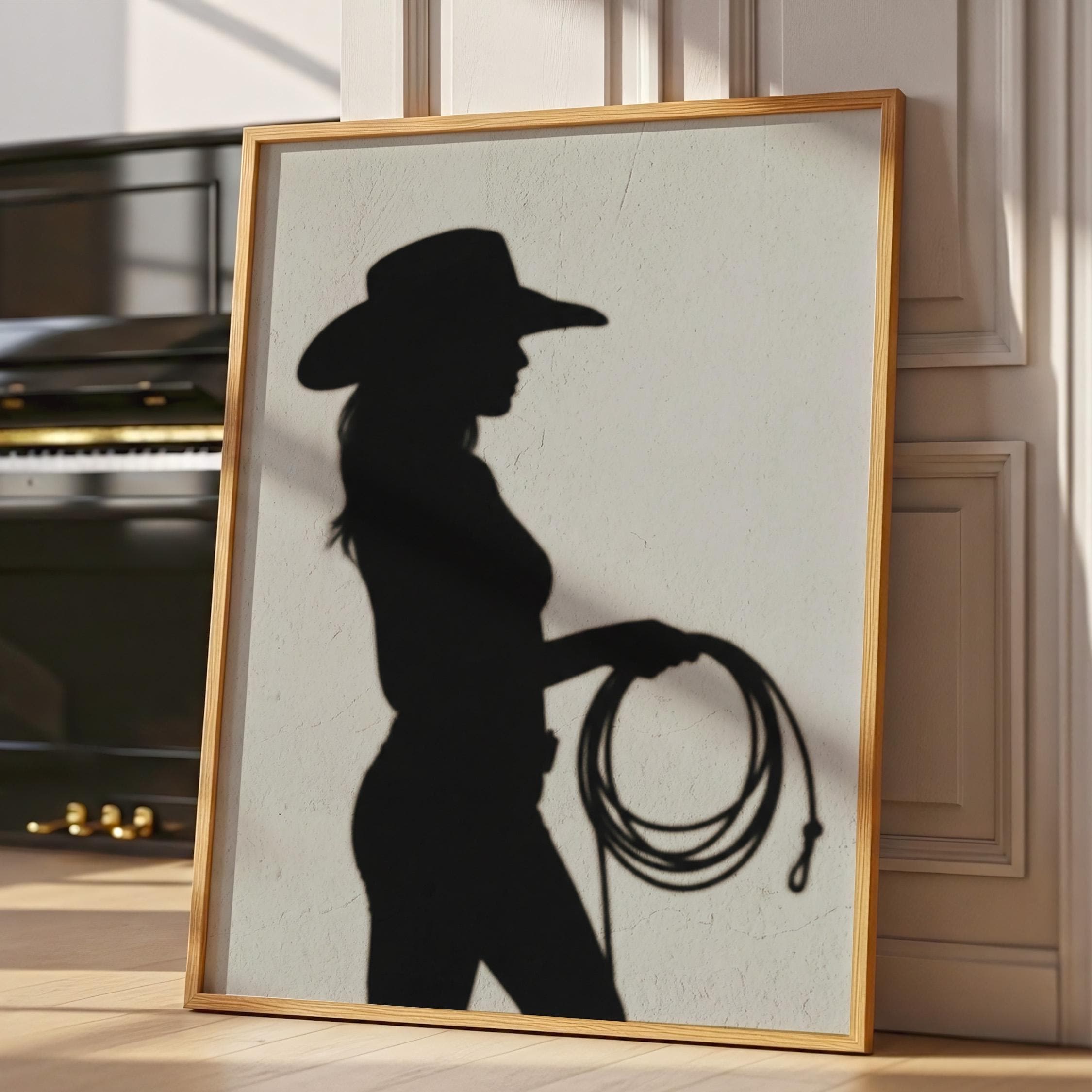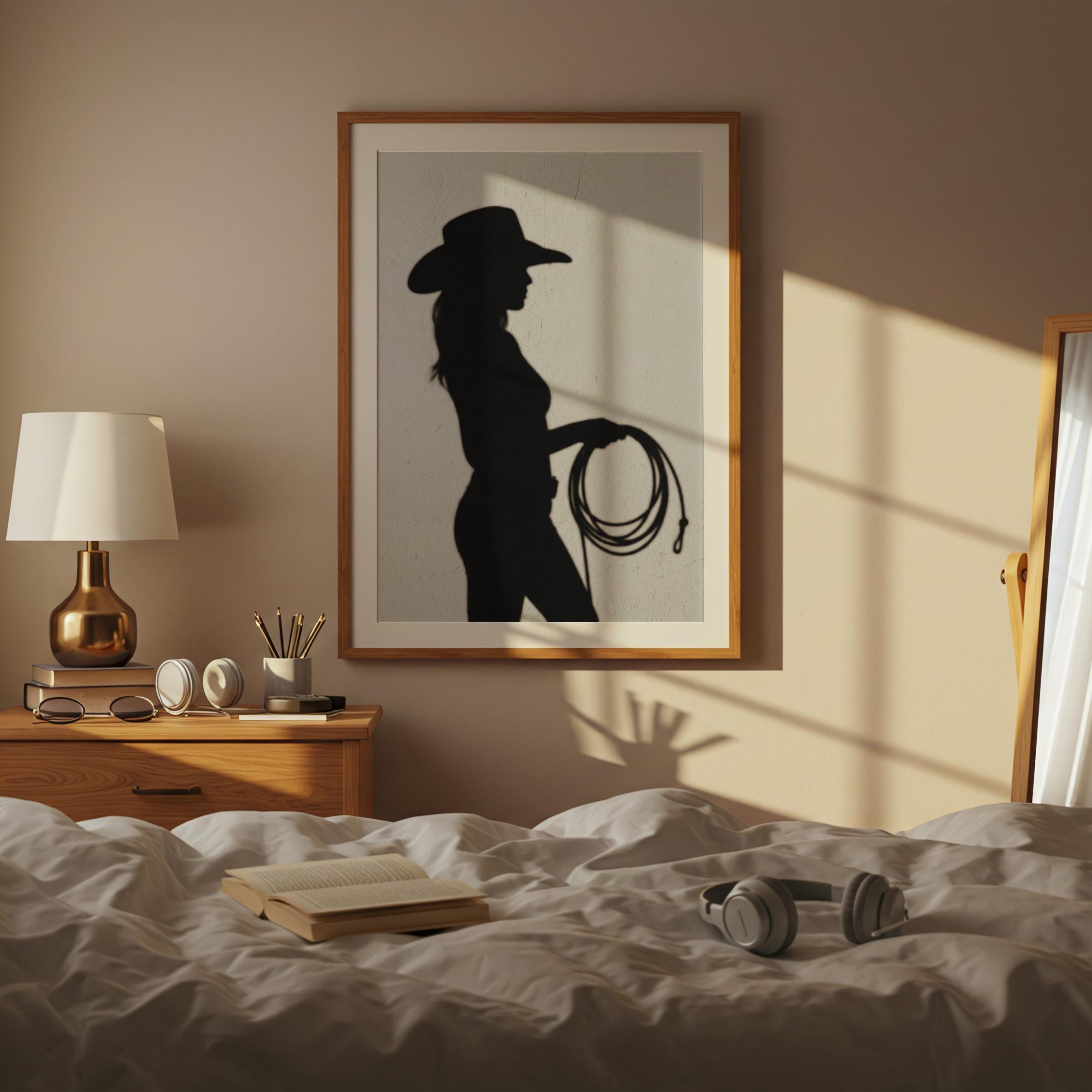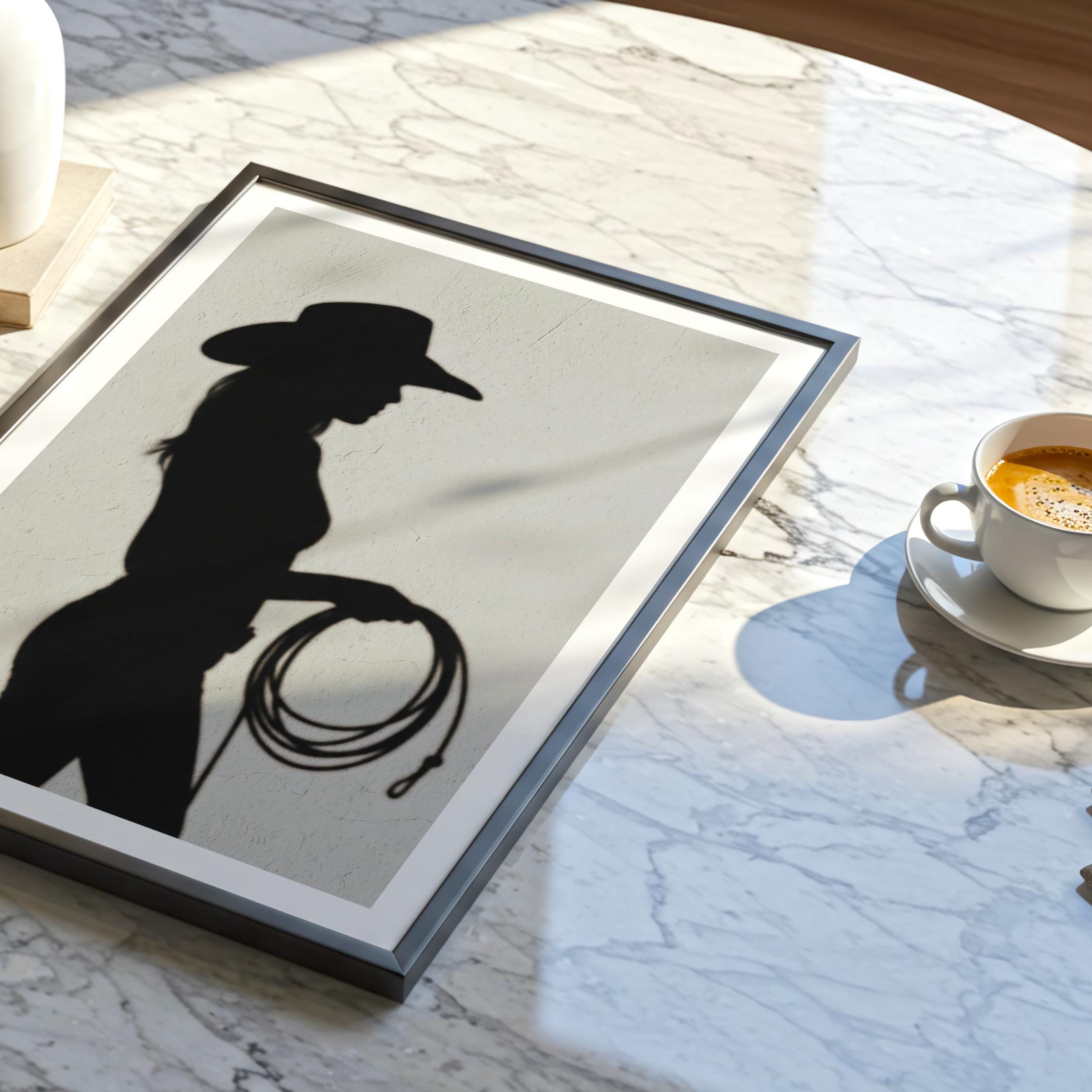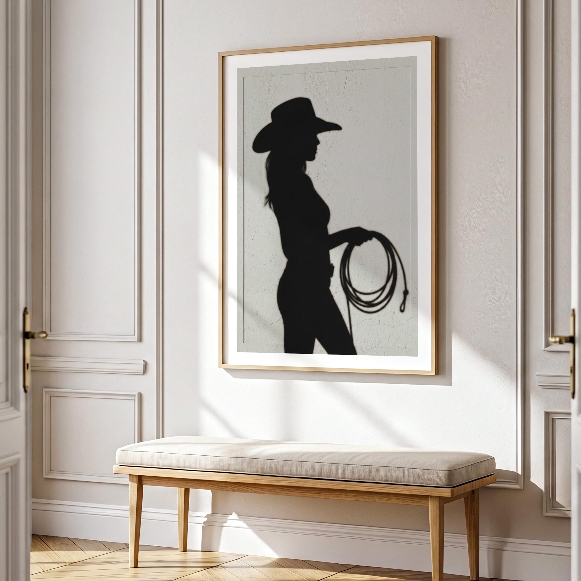 Cowgirl Wall Art - Trendy Boho Decor Shadow Print Poster | Minimalist Western Printable