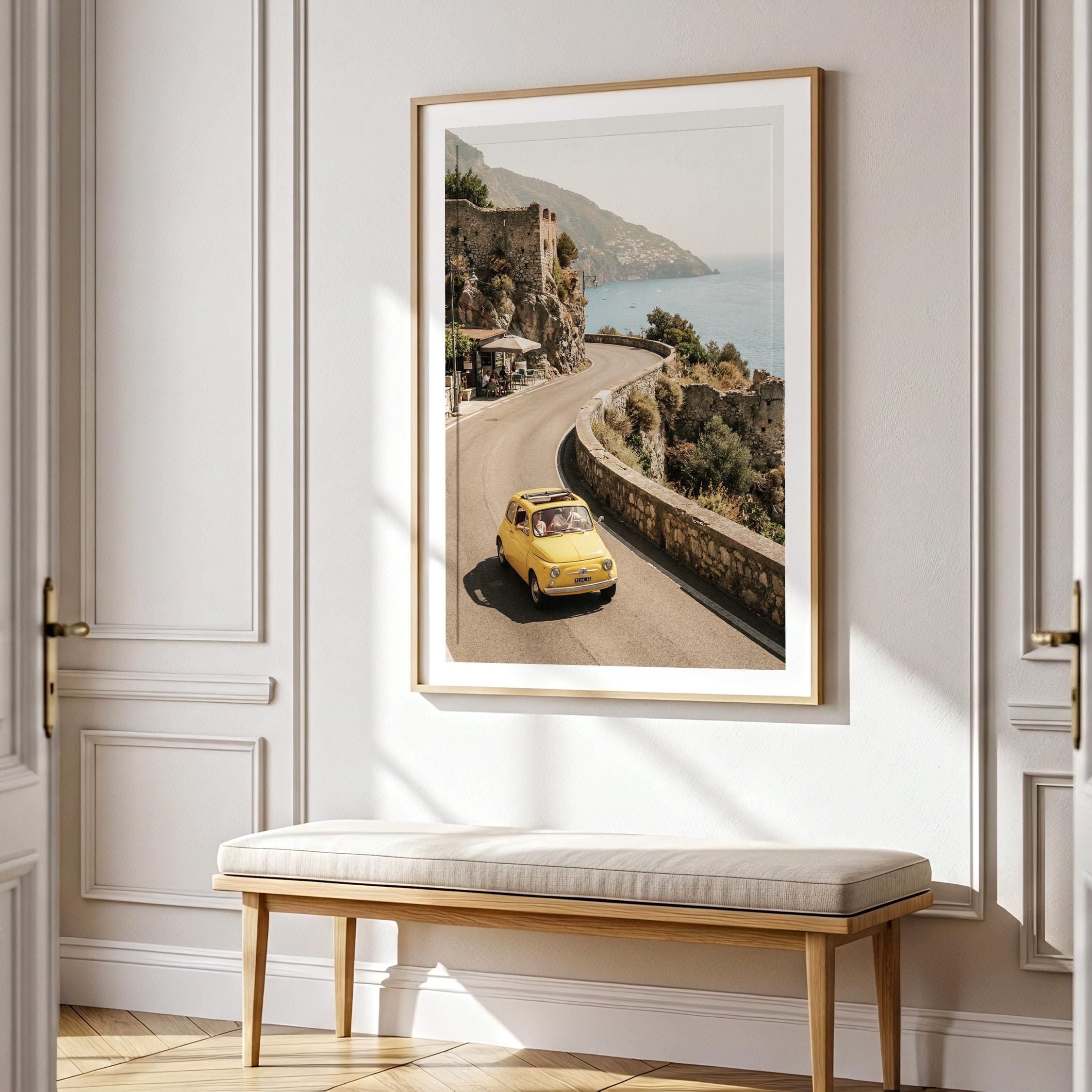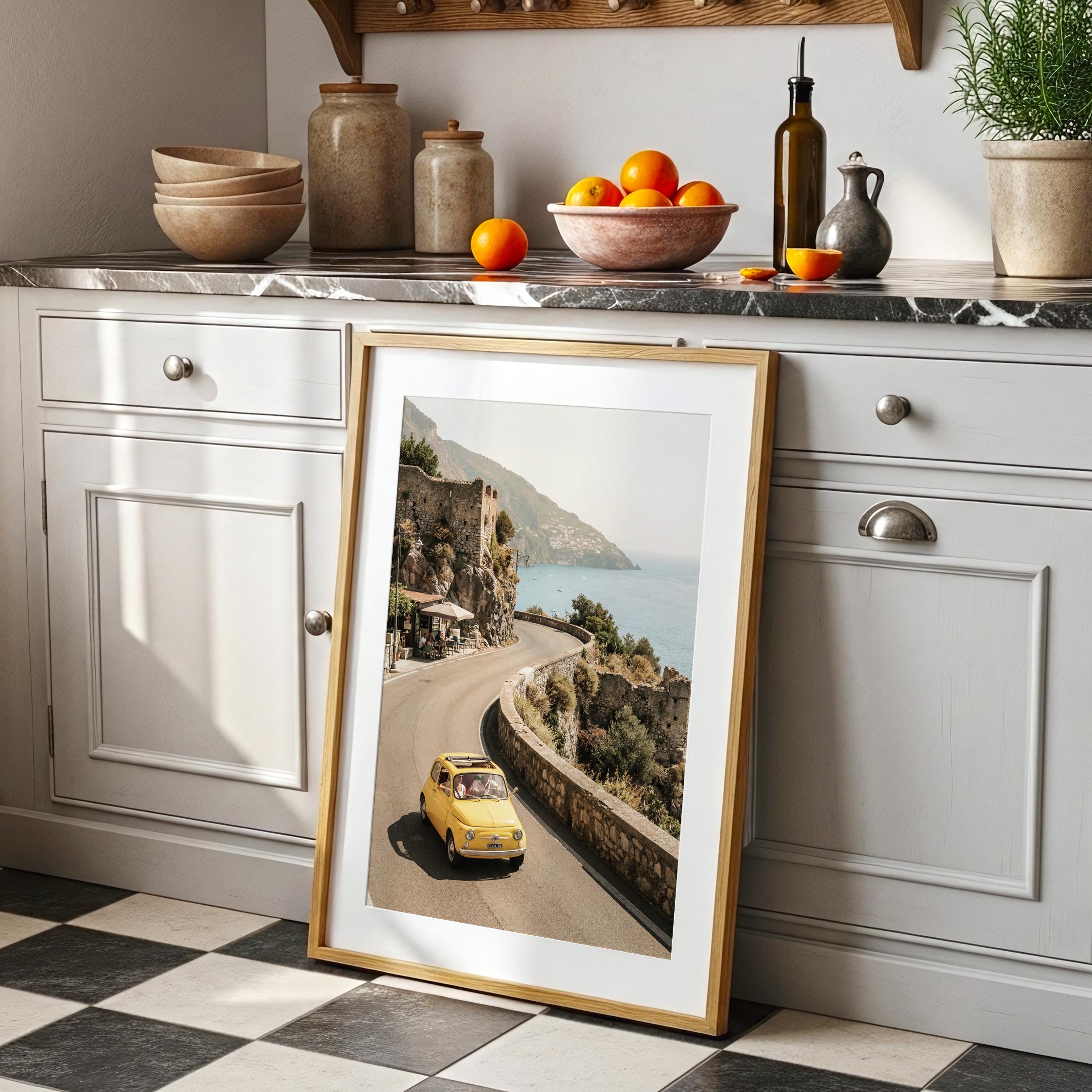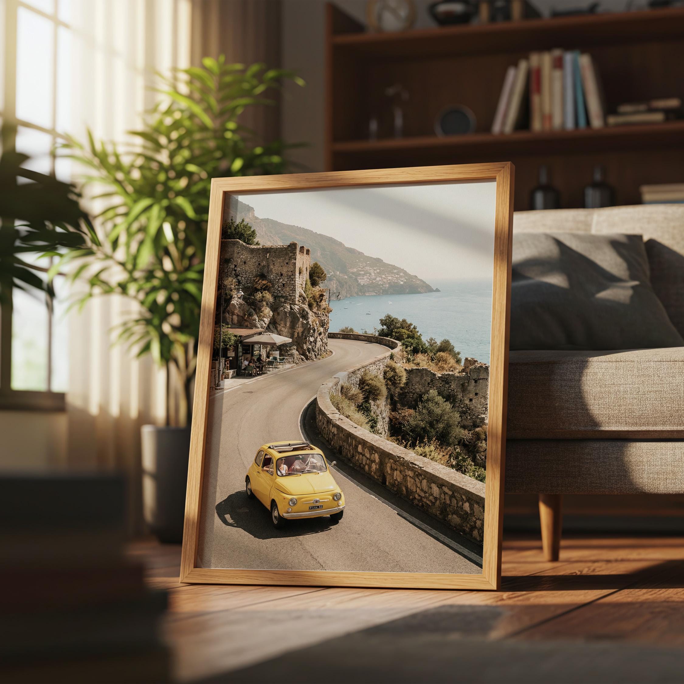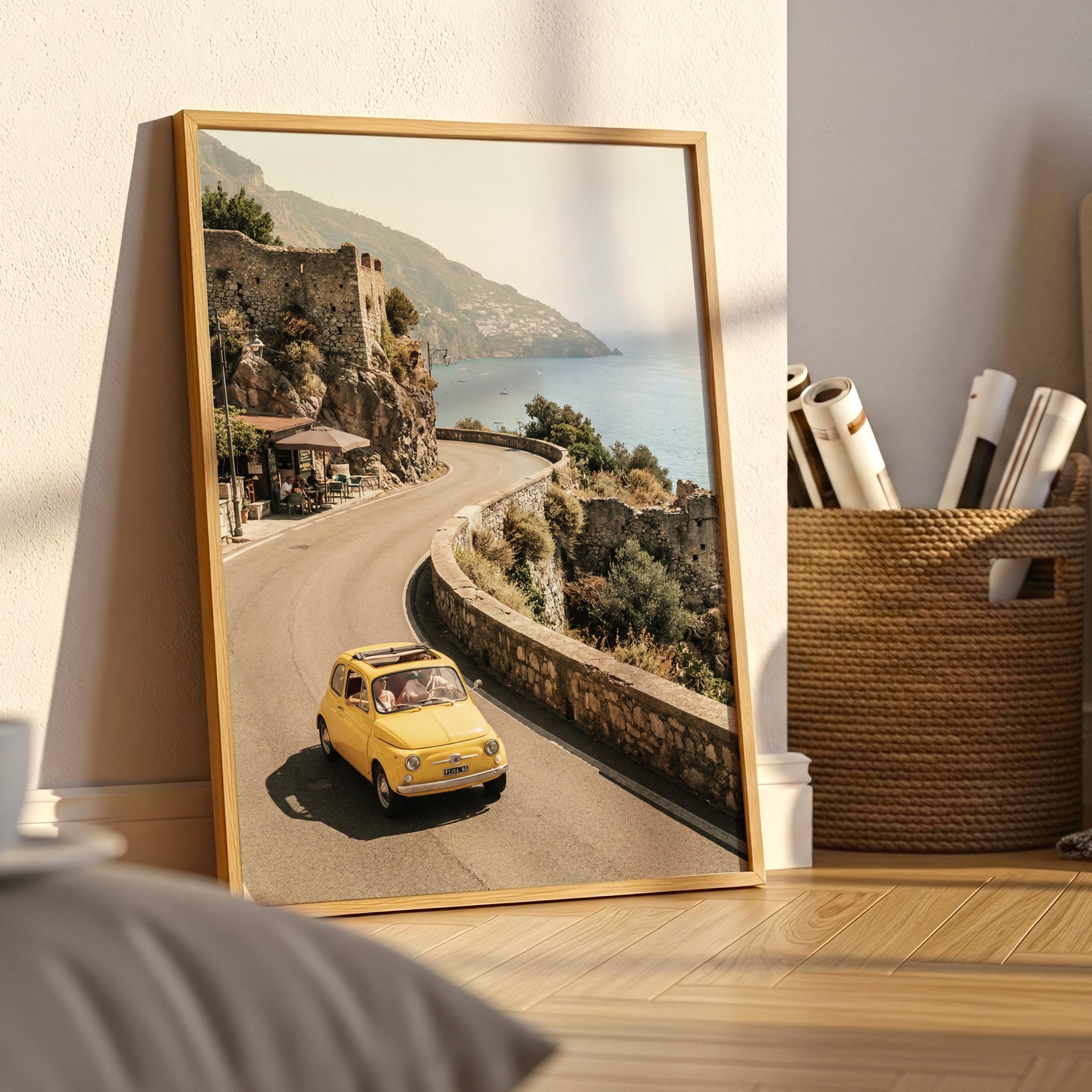 Whether styled in a living room, bedroom, office, or hallway, this Italian wall art adds warmth and movement to your walls. It works beautifully as Mediterranean decor, summer wall art, or part of a curated travel gallery featuring Amalfi wall art and vintage car prints.