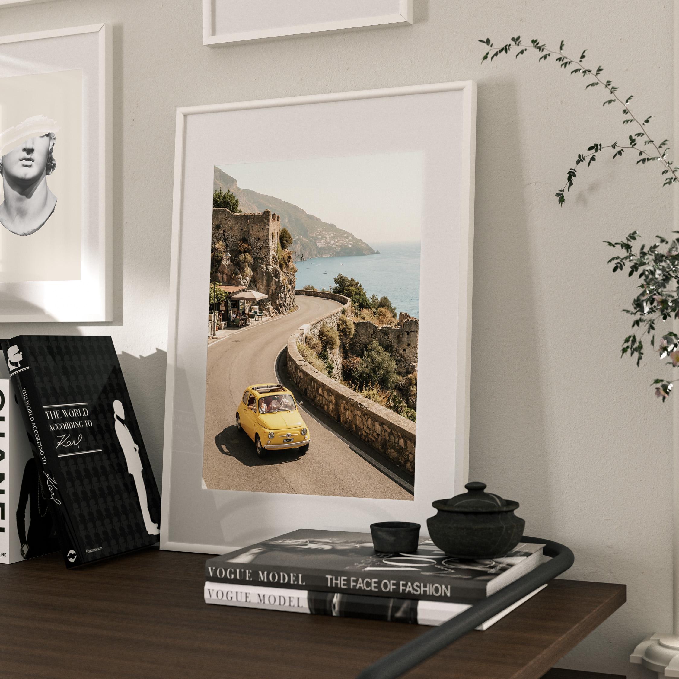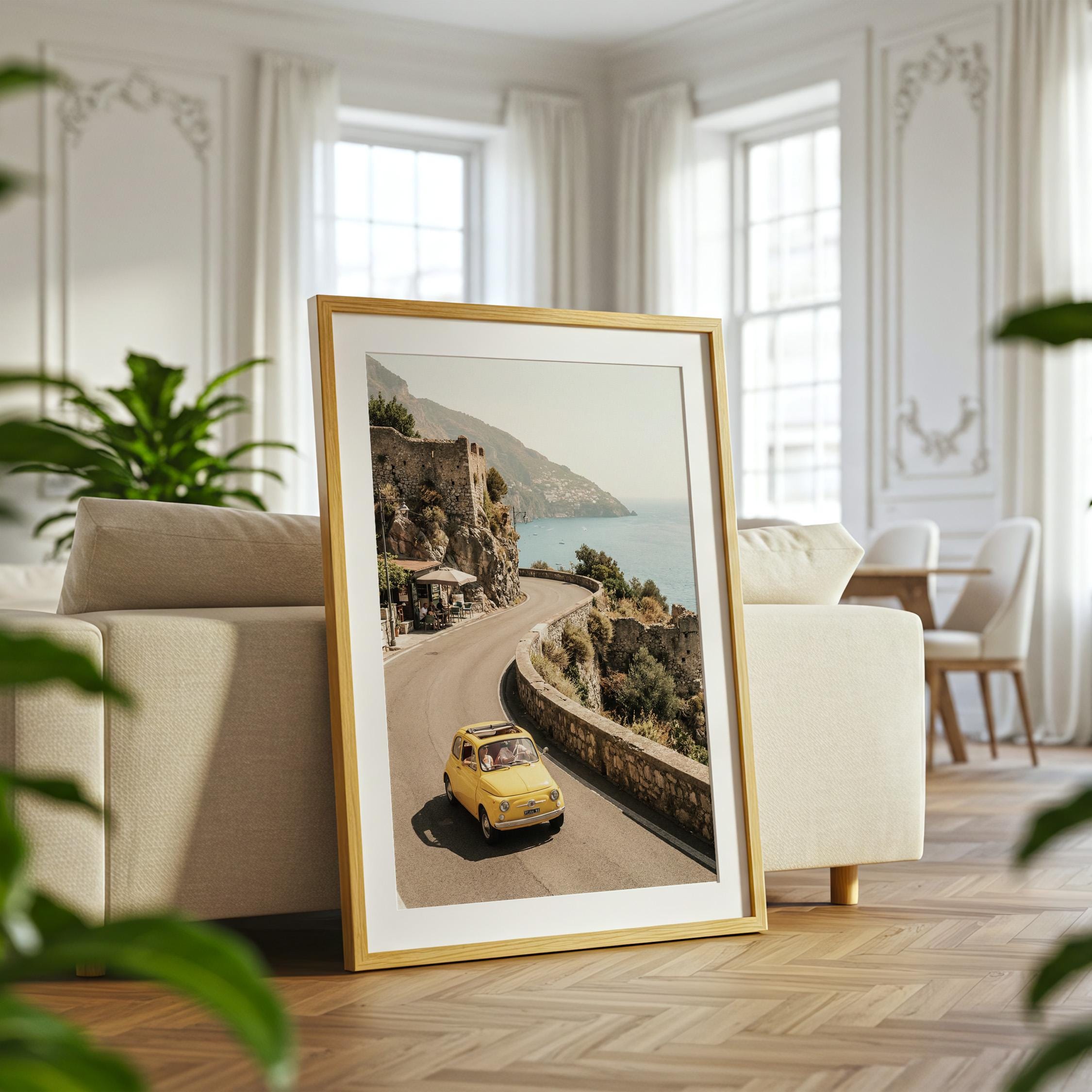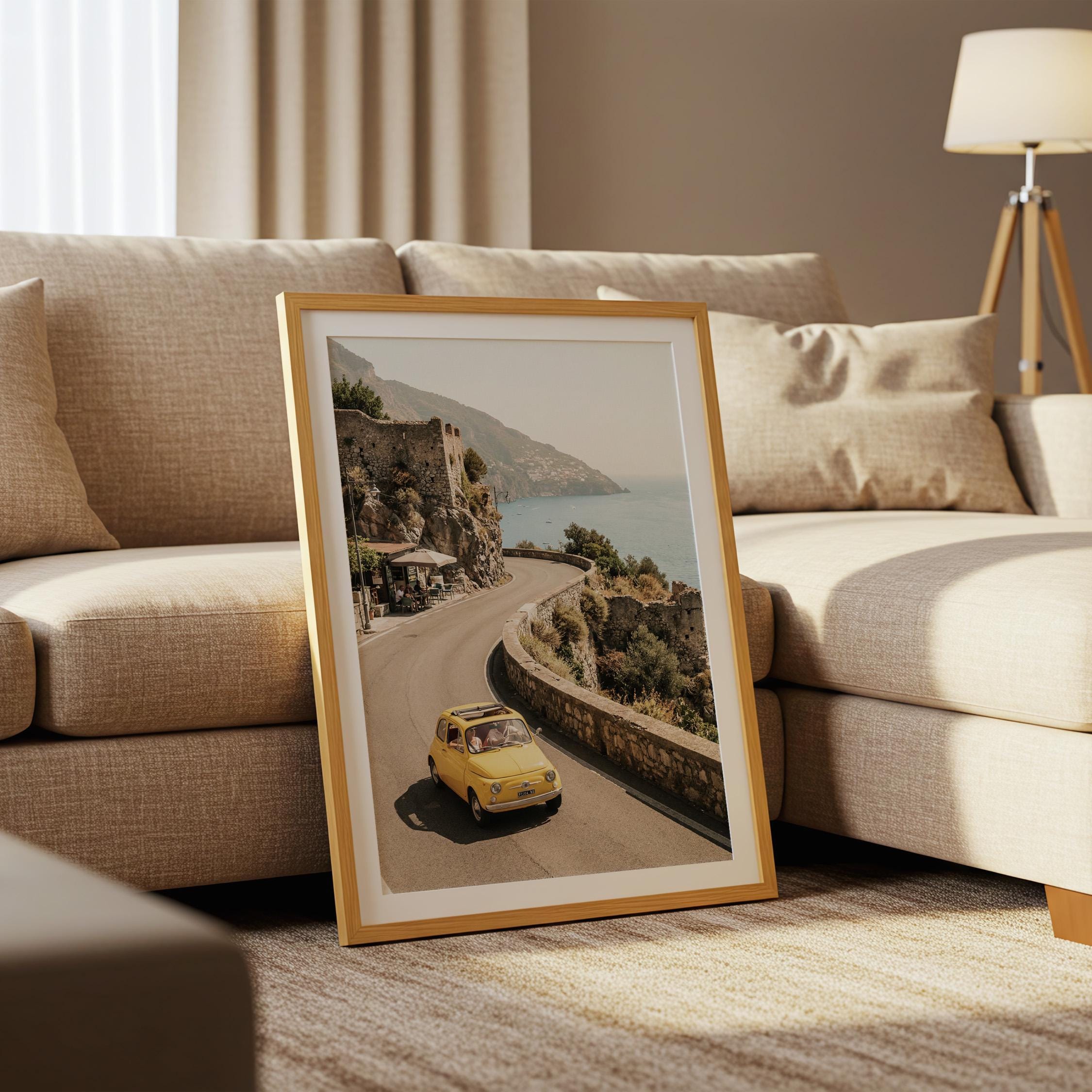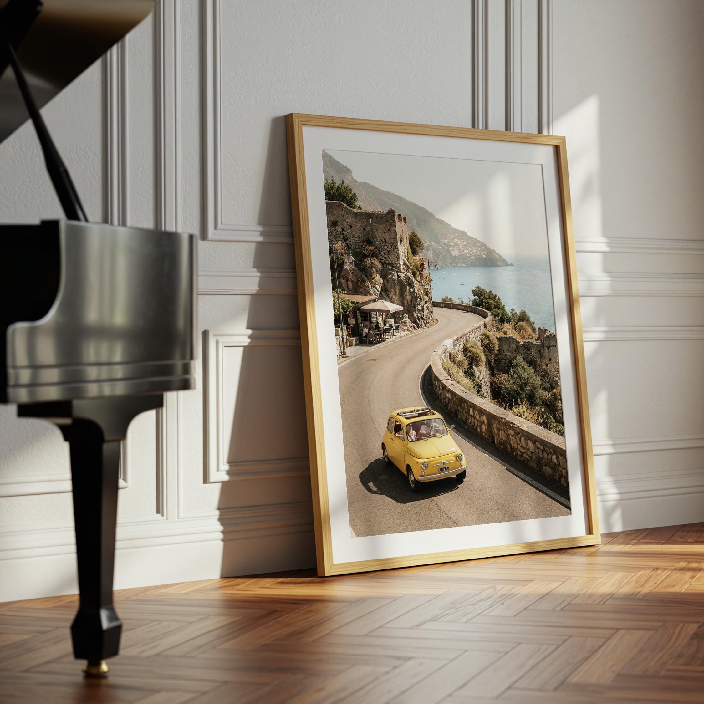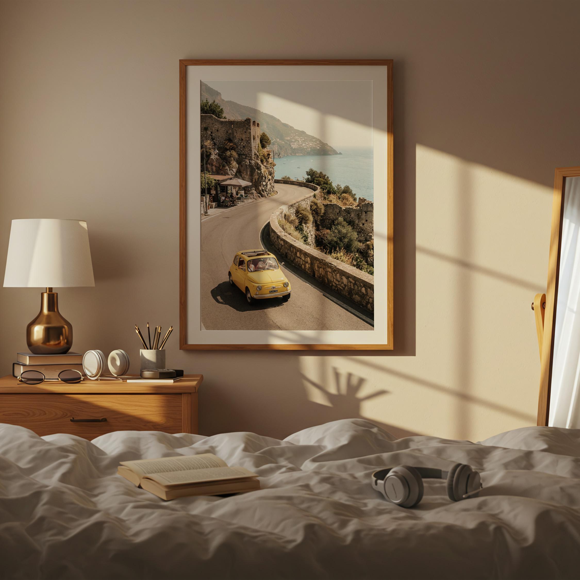Whether styled in a living room, bedroom, office, or hallway, this Italian wall art adds warmth and movement to your walls. It works beautifully as Mediterranean decor, summer wall art, or part of a curated travel gallery featuring Amalfi wall art and vintage car prints.