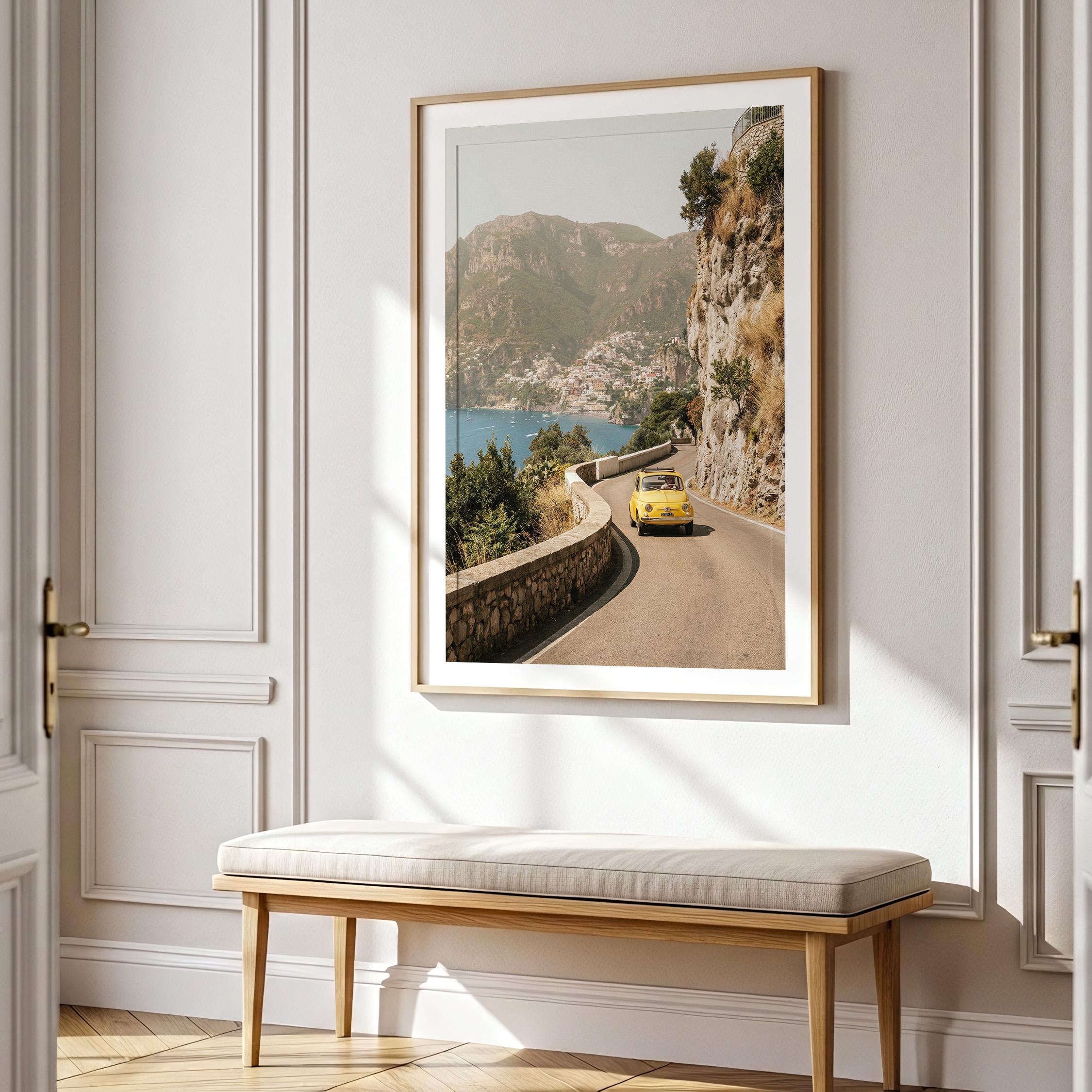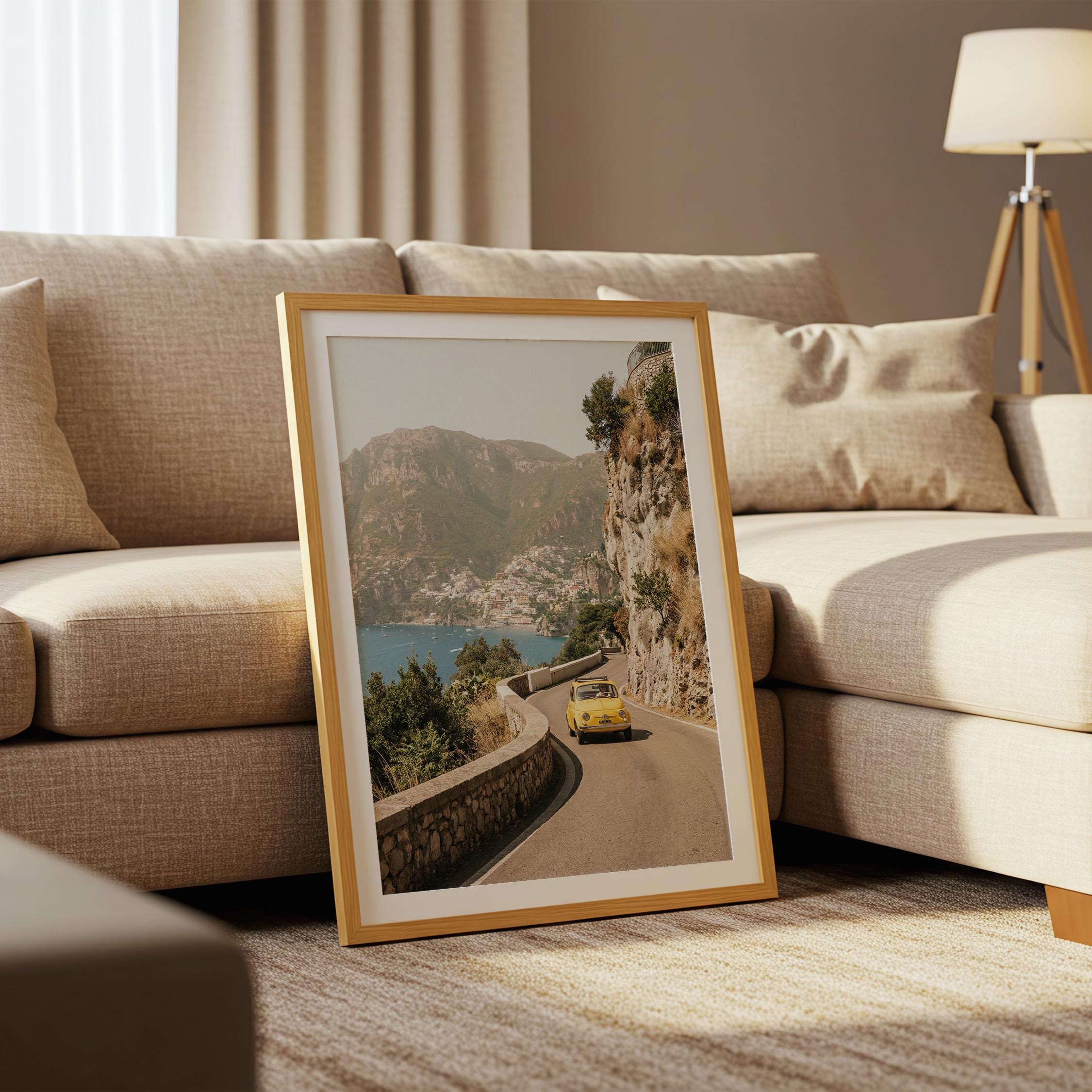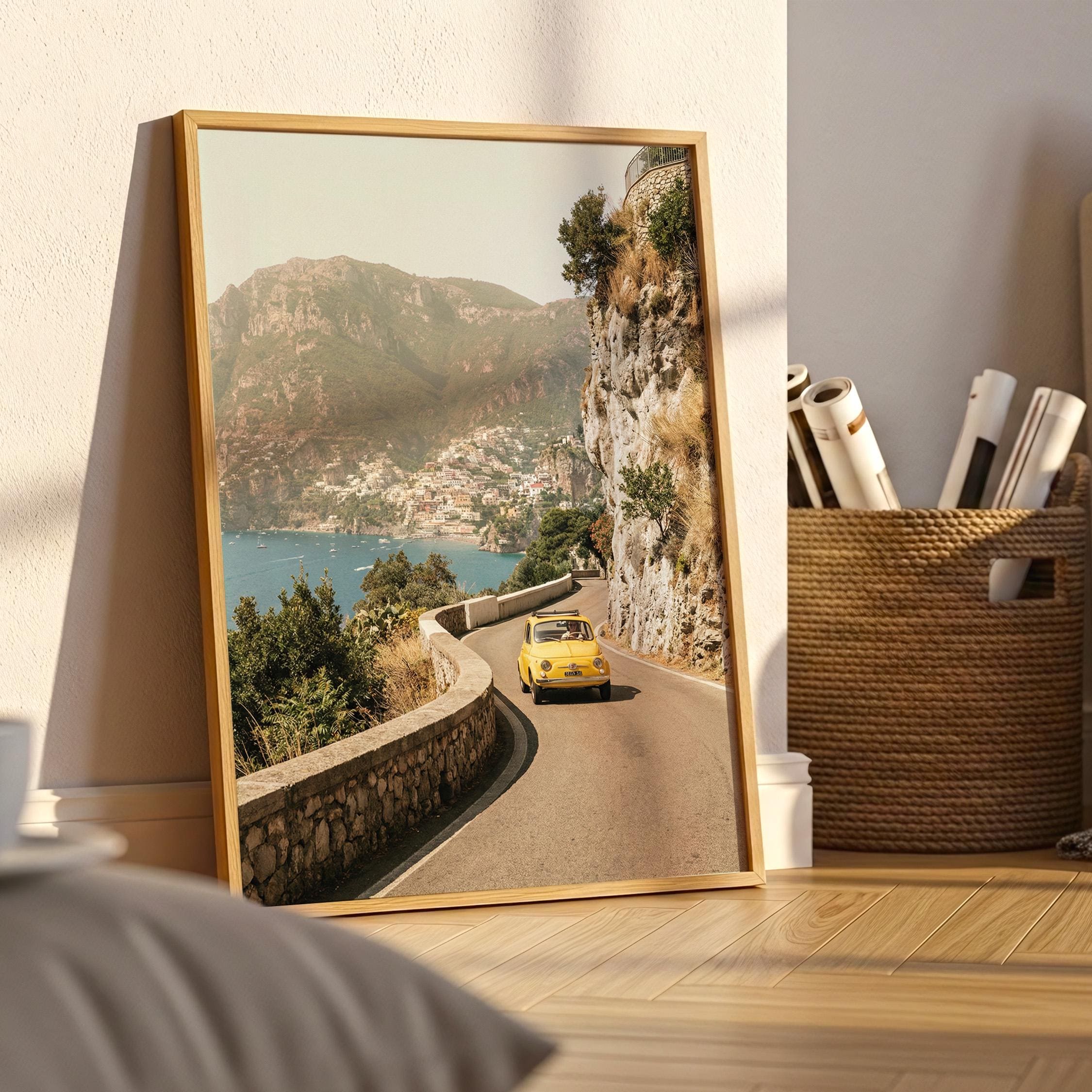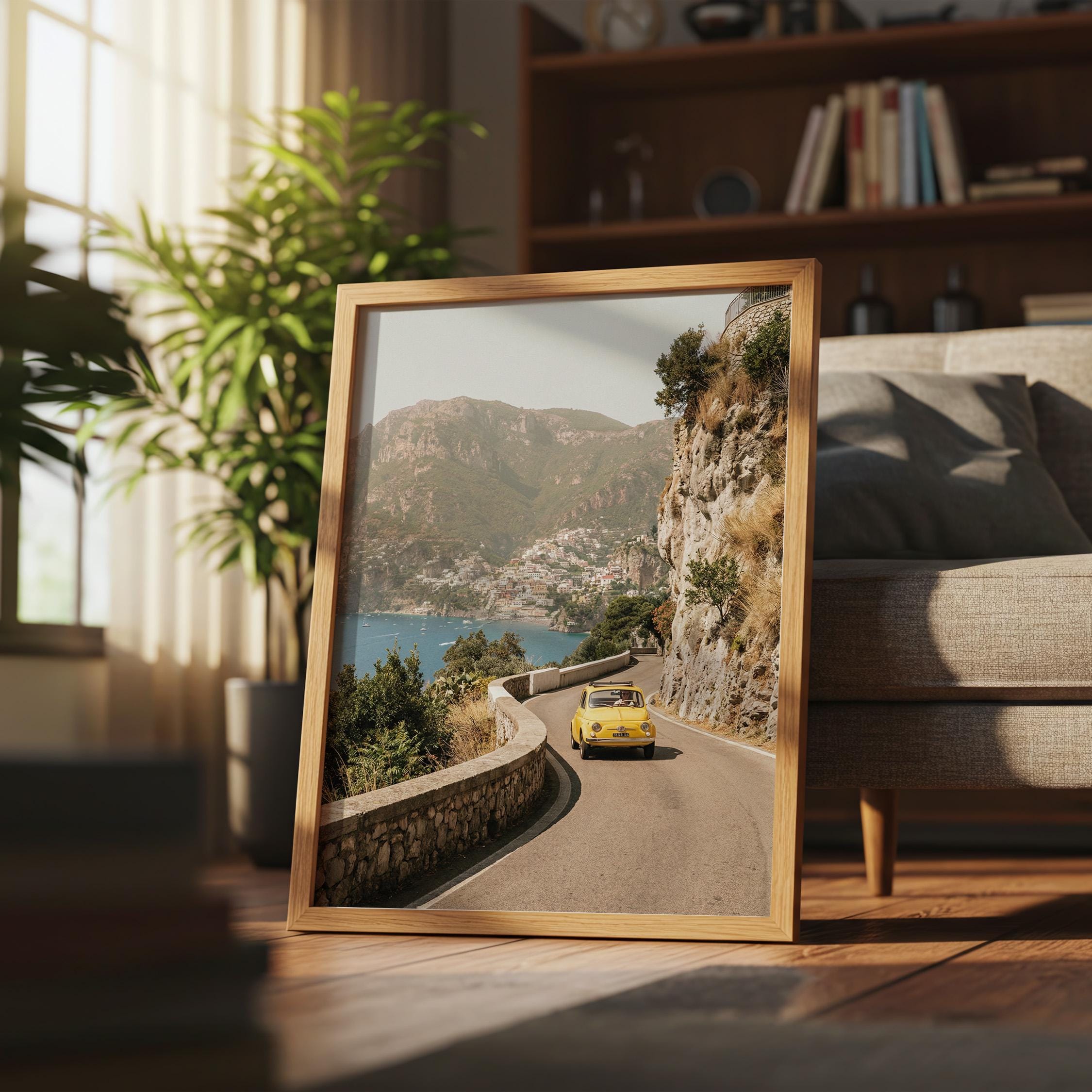 Whether styled in a living room, bedroom, office, or hallway, this print brings light and depth to your space. It works beautifully as Italian summer wall art, a travel-inspired statement piece, or part of a curated gallery featuring Amalfi wall art and vintage car prints.