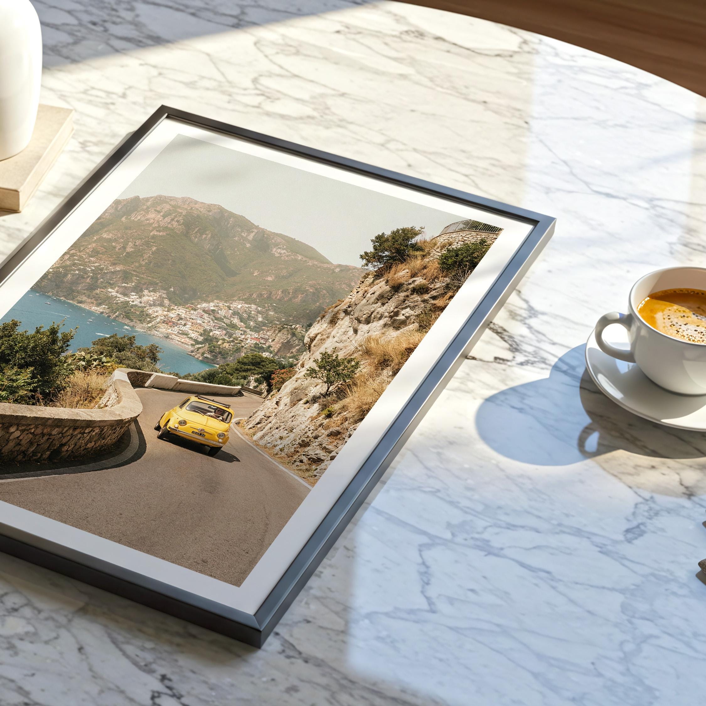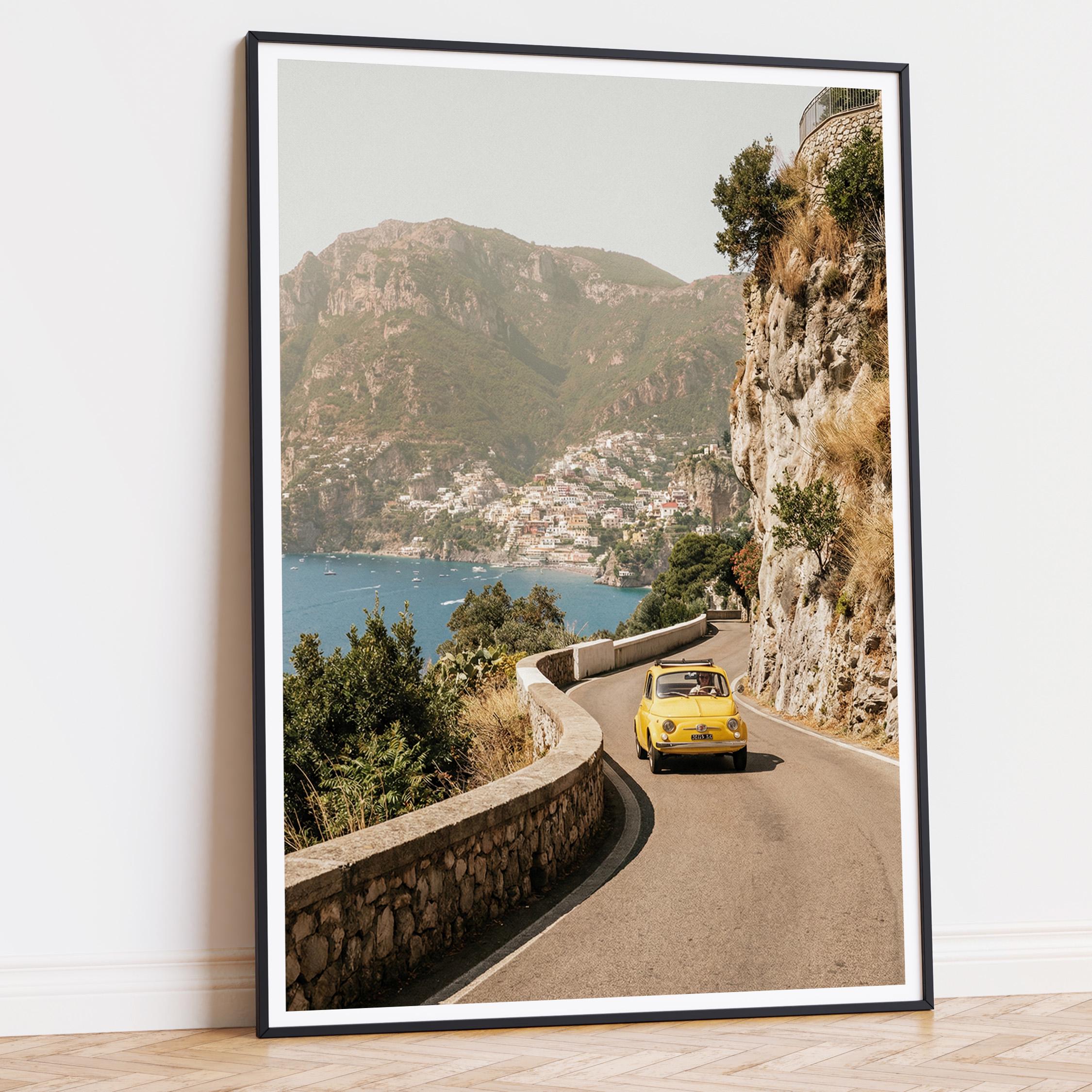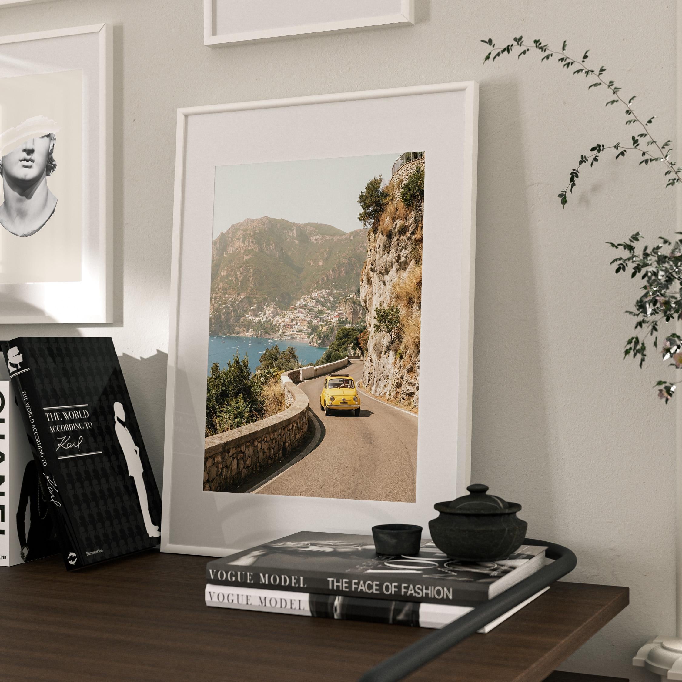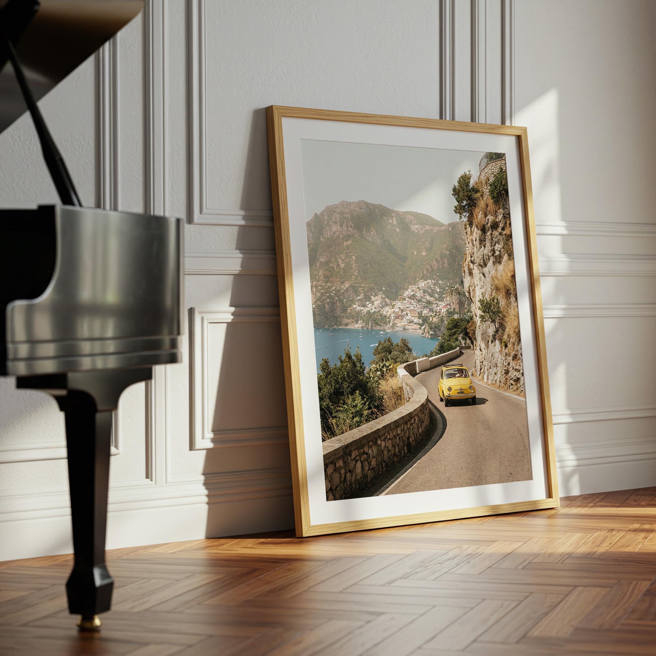 Whether styled in a living room, bedroom, office, or hallway, this print brings light and depth to your space. It works beautifully as Italian summer wall art, a travel-inspired statement piece, or part of a curated gallery featuring Amalfi wall art and vintage car prints.