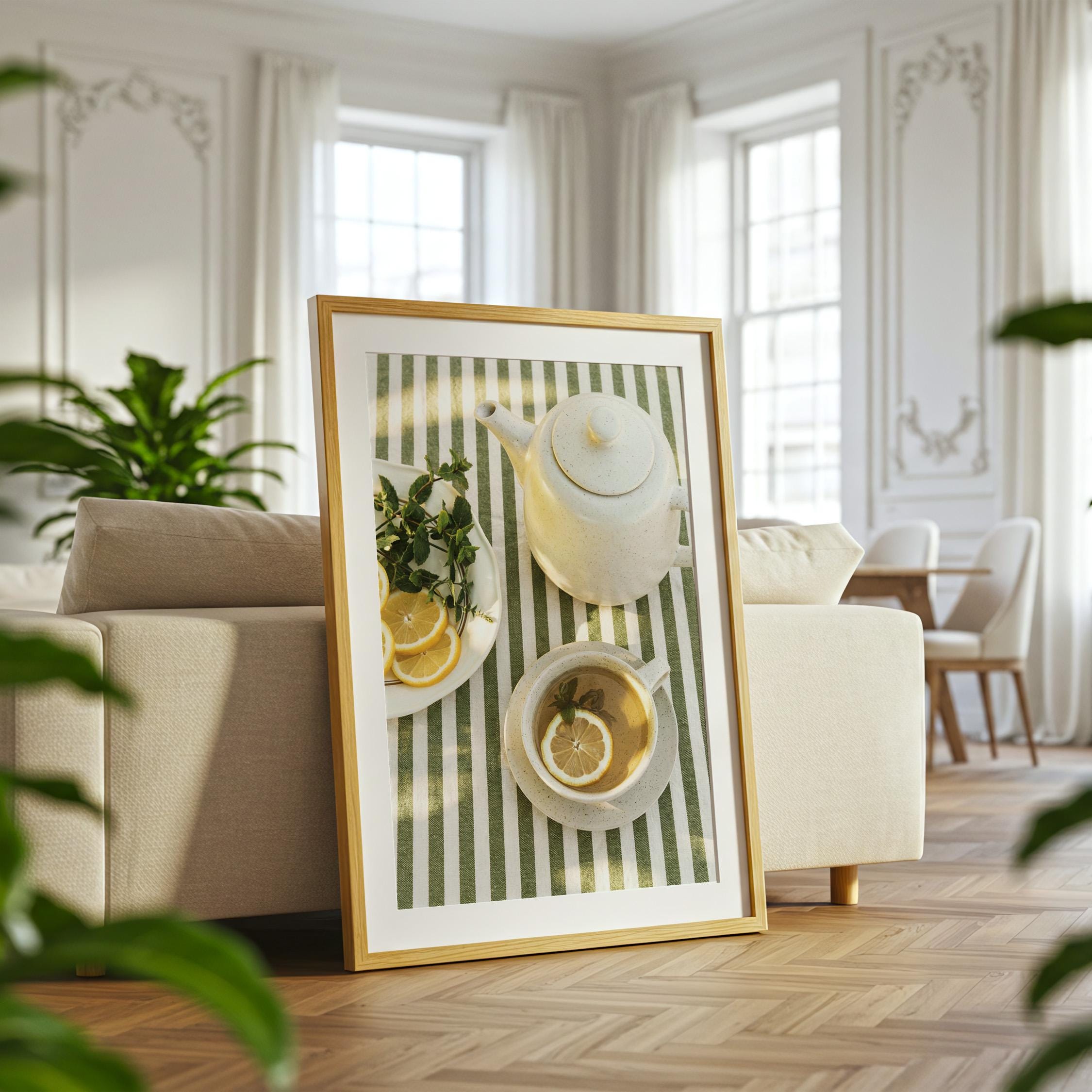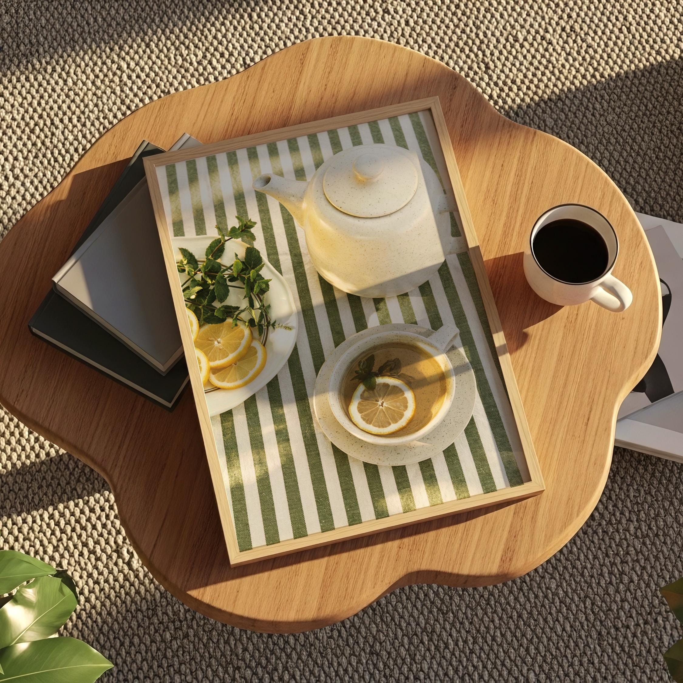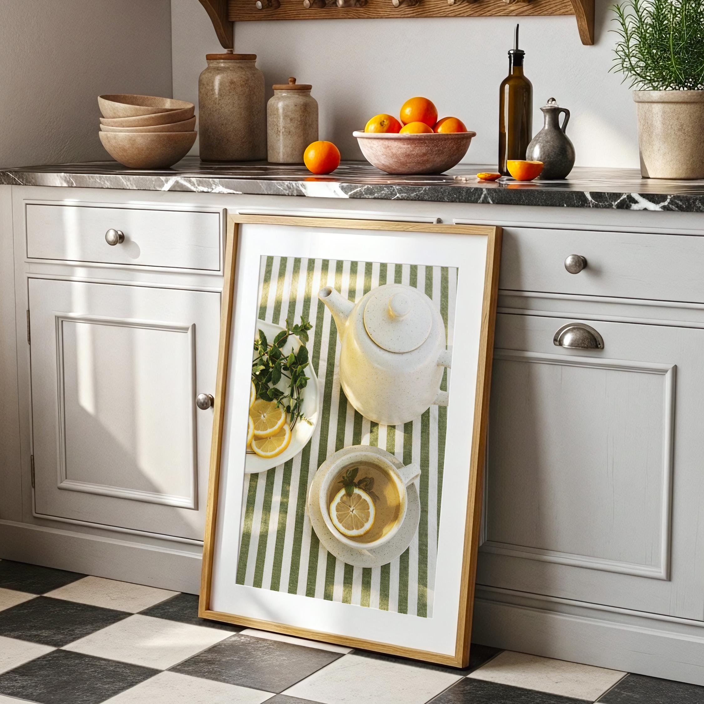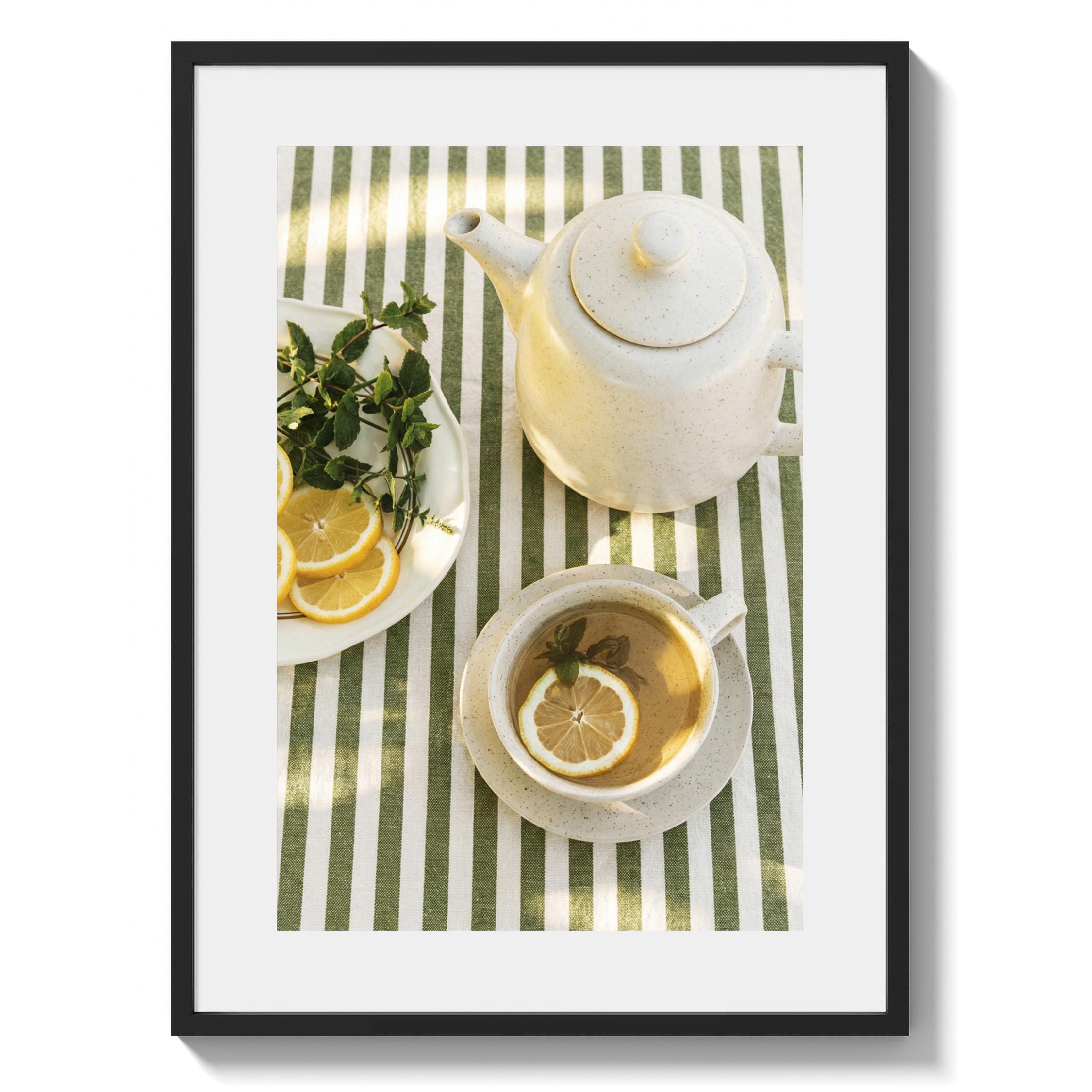 Perfect for anyone who loves tea rituals, light-filled interiors, or Mediterranean-inspired styling. The structured stripes add a graphic touch, while the lemon and mint keep it relaxed and inviting.