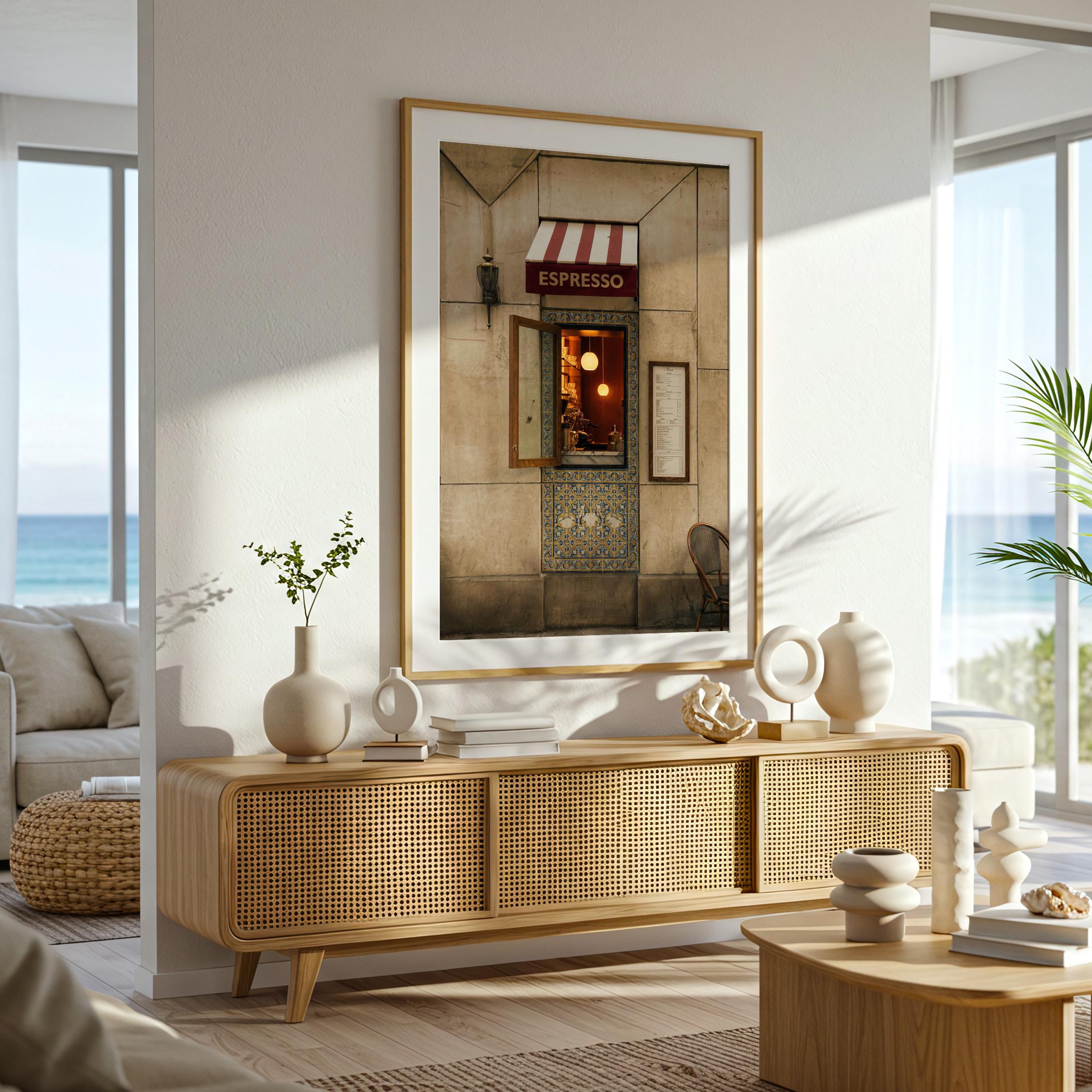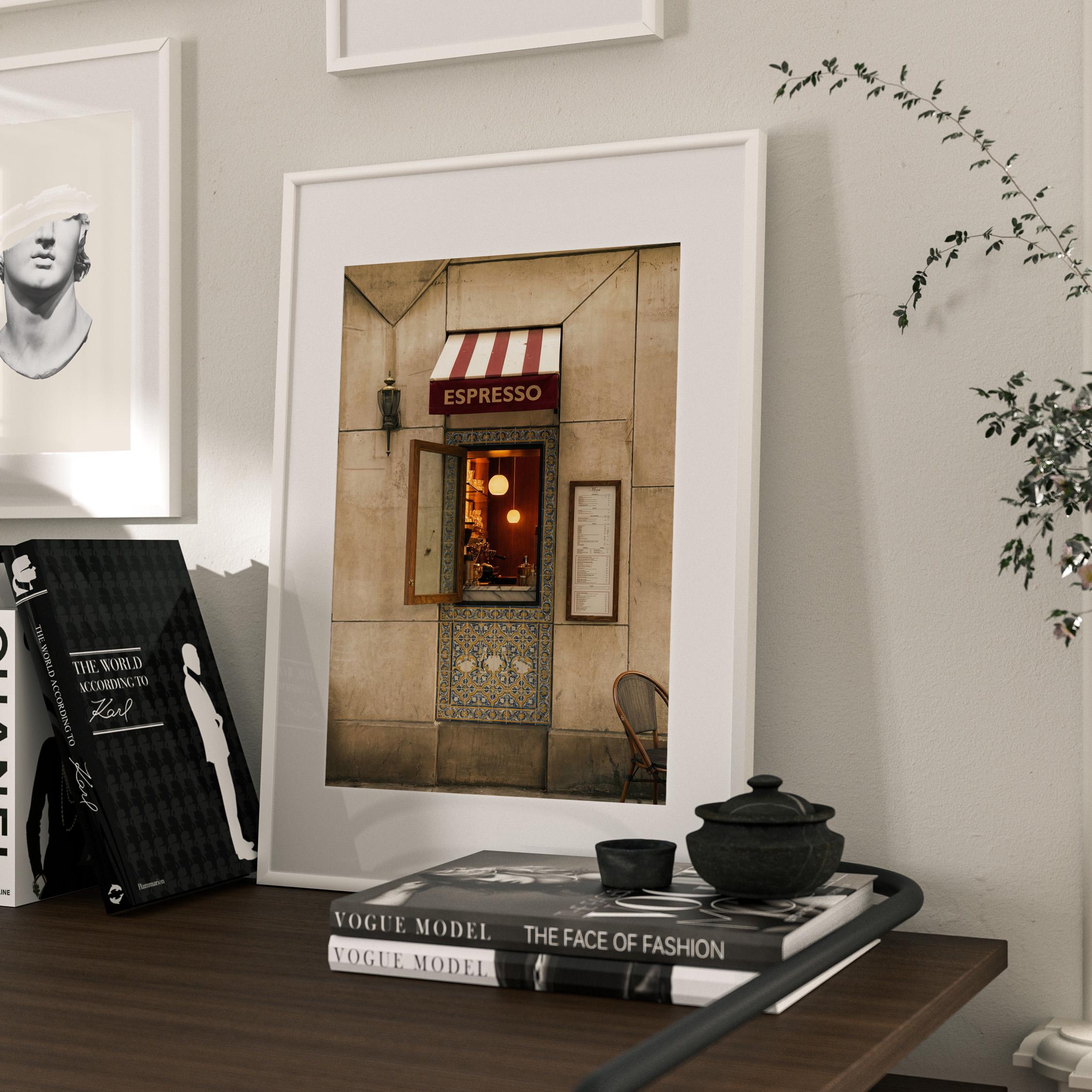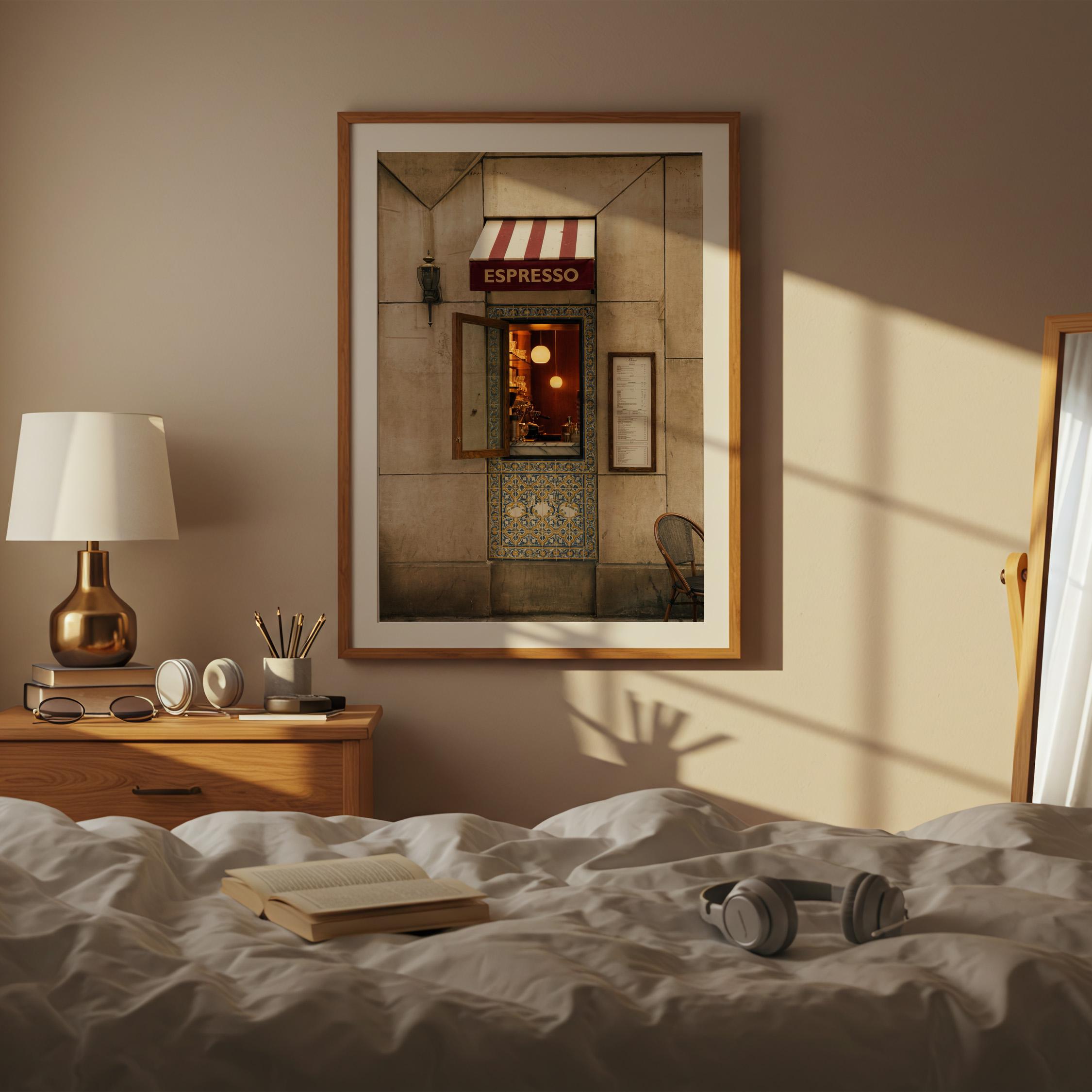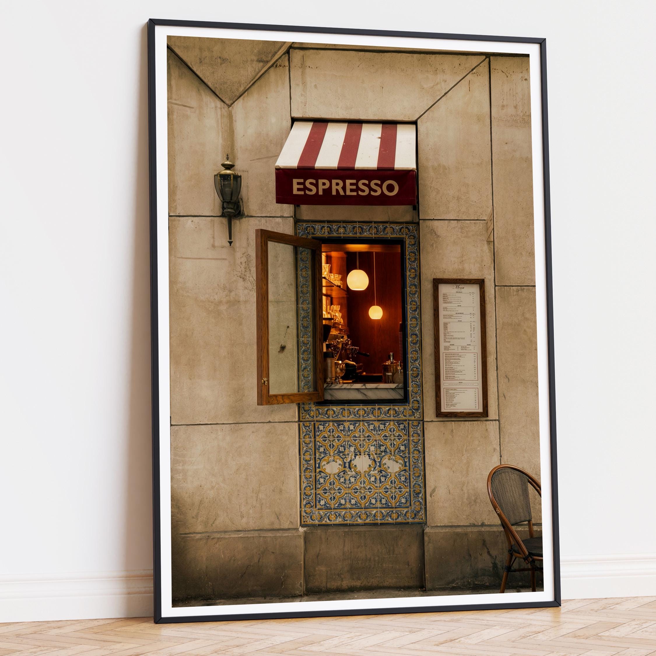 A small espresso bar somewhere in Italy. This print captures the quiet charm of an Italian café window at golden hour. It feels local, intimate, and timeless — like a quick stop for coffee in Rome, Florence, or a tucked-away street in Naples.
