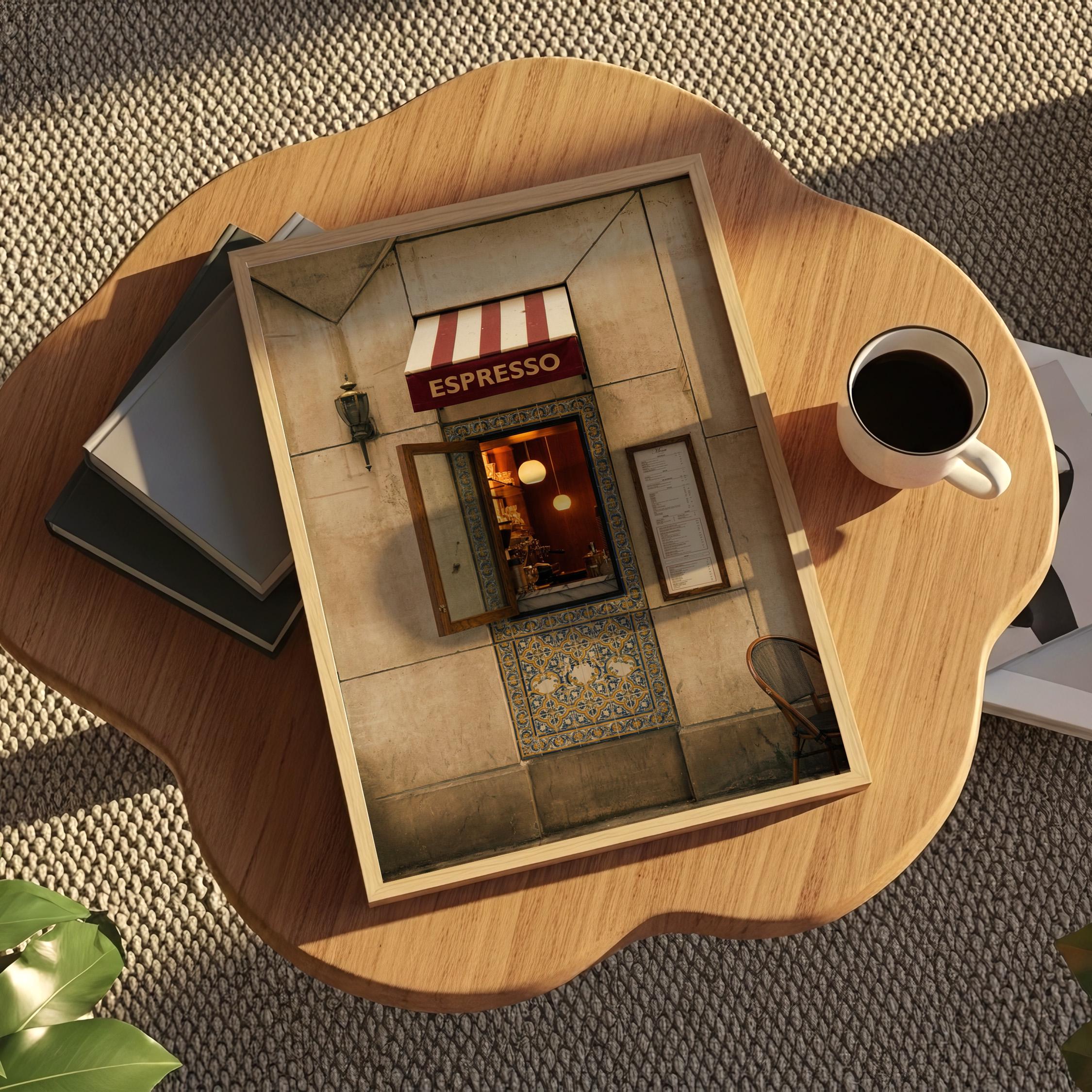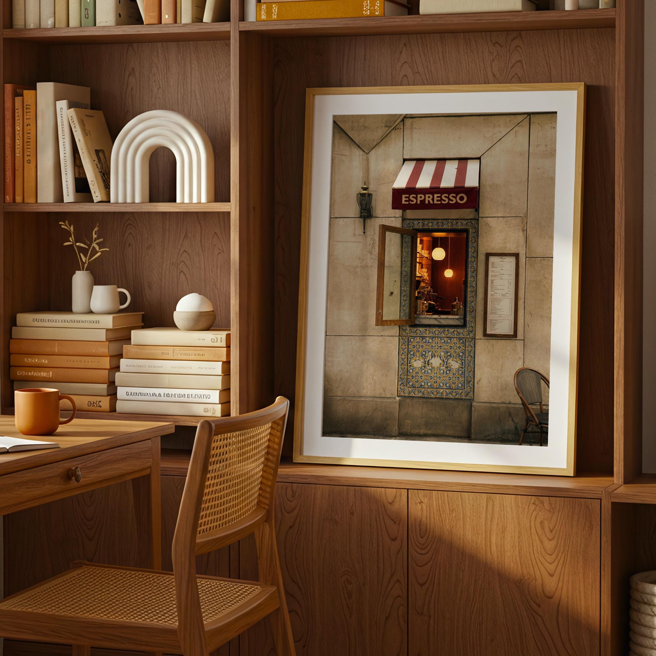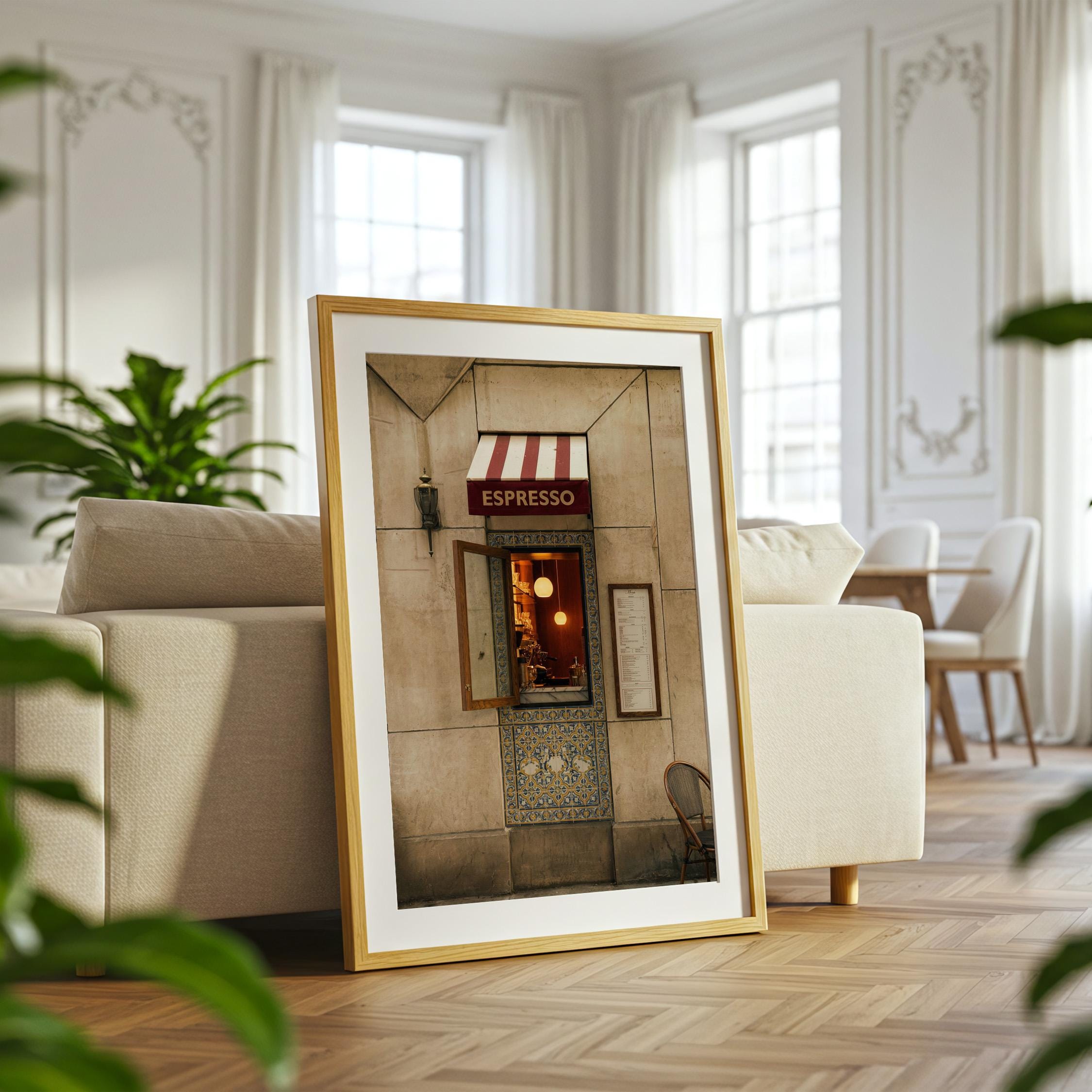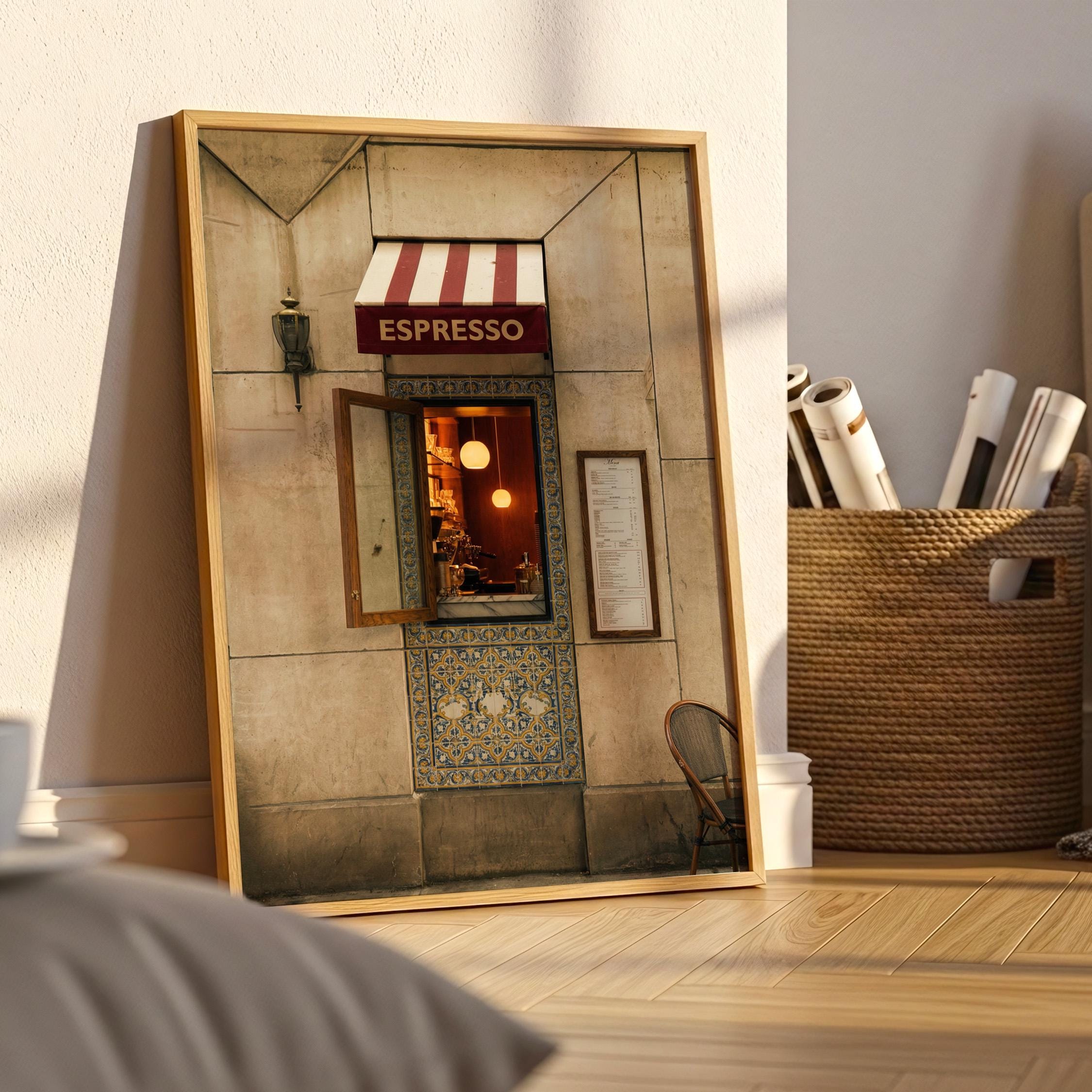 A small espresso bar somewhere in Italy. This print captures the quiet charm of an Italian café window at golden hour. It feels local, intimate, and timeless — like a quick stop for coffee in Rome, Florence, or a tucked-away street in Naples.