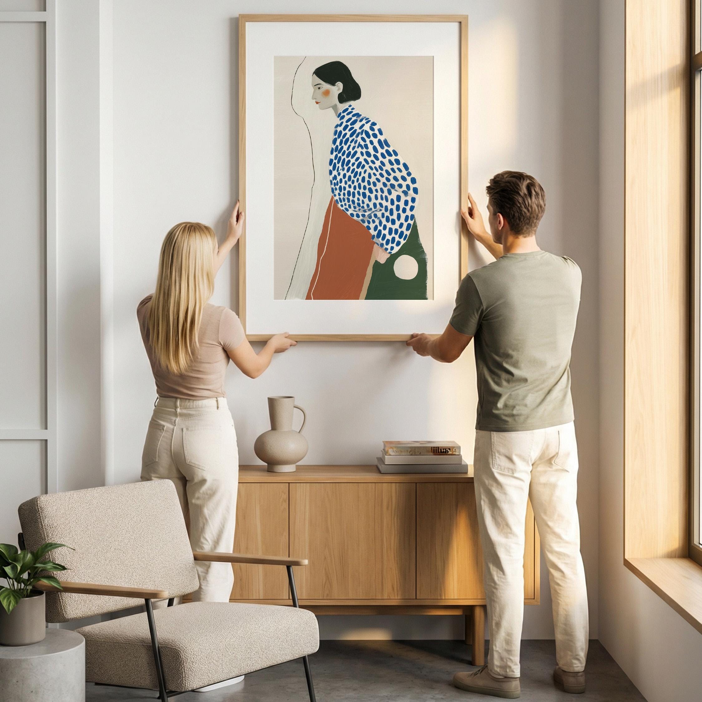 Perfect for living rooms, bedrooms, entryways, studios, or gallery walls. Works beautifully in Scandinavian, modern, and minimalist interiors where simple shapes and calm colors define the space.