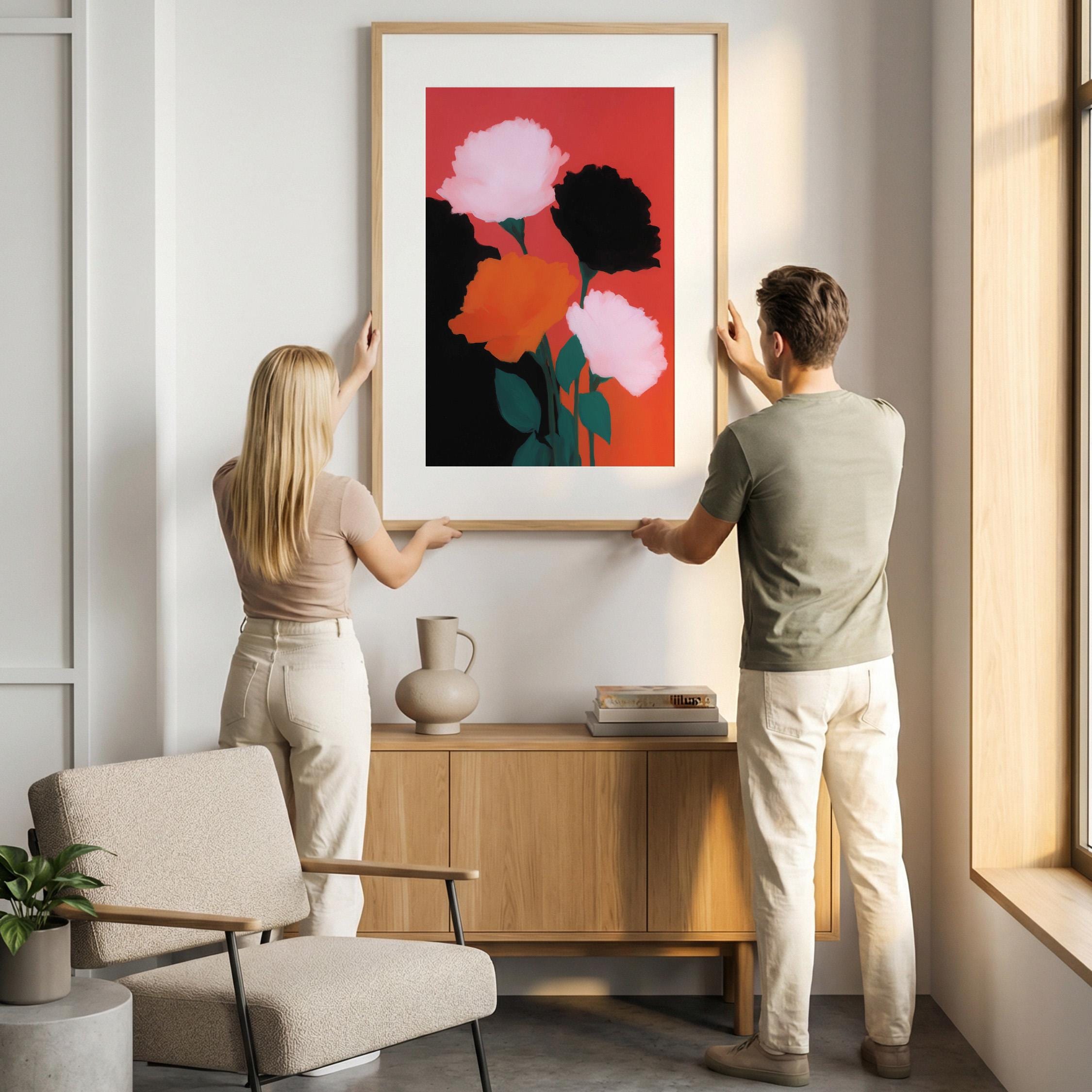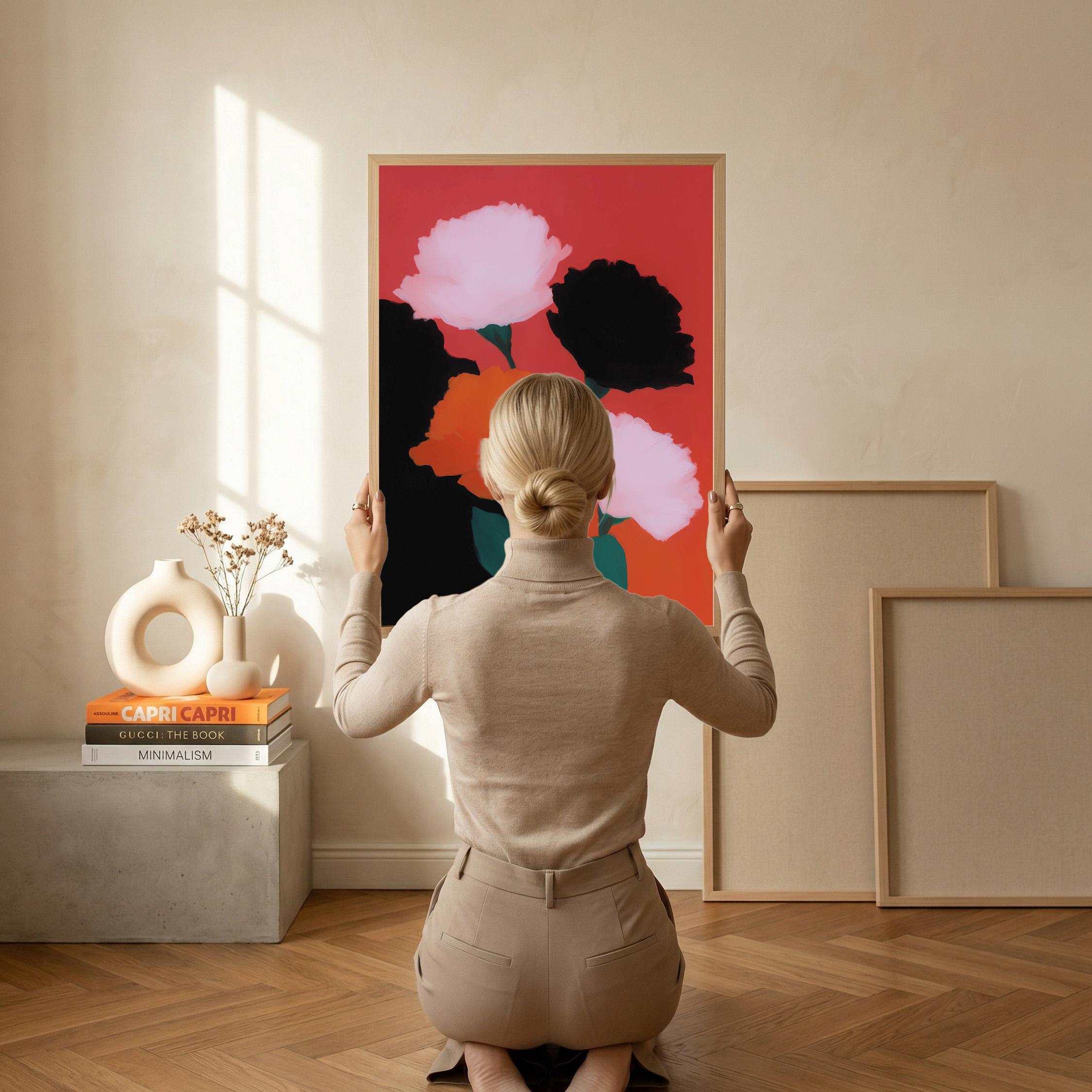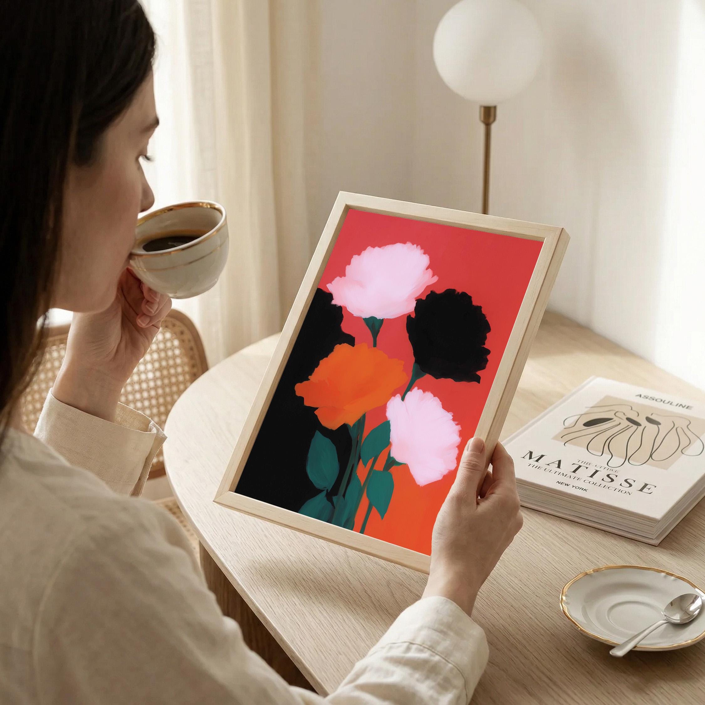 This print works well in living rooms, dining areas, creative studios, hallways, or modern apartments. The strong color palette adds energy and warmth to minimalist interiors or gallery walls.