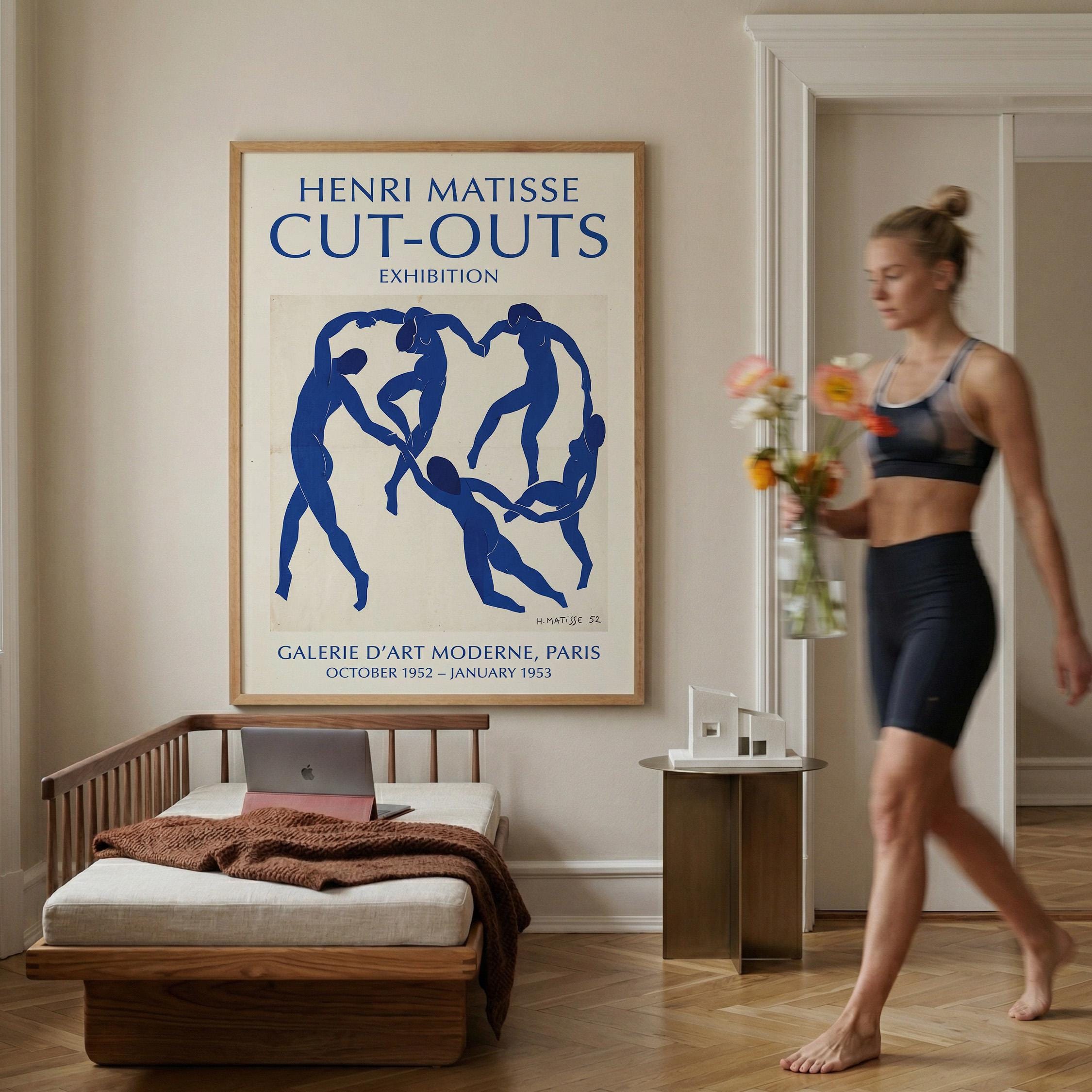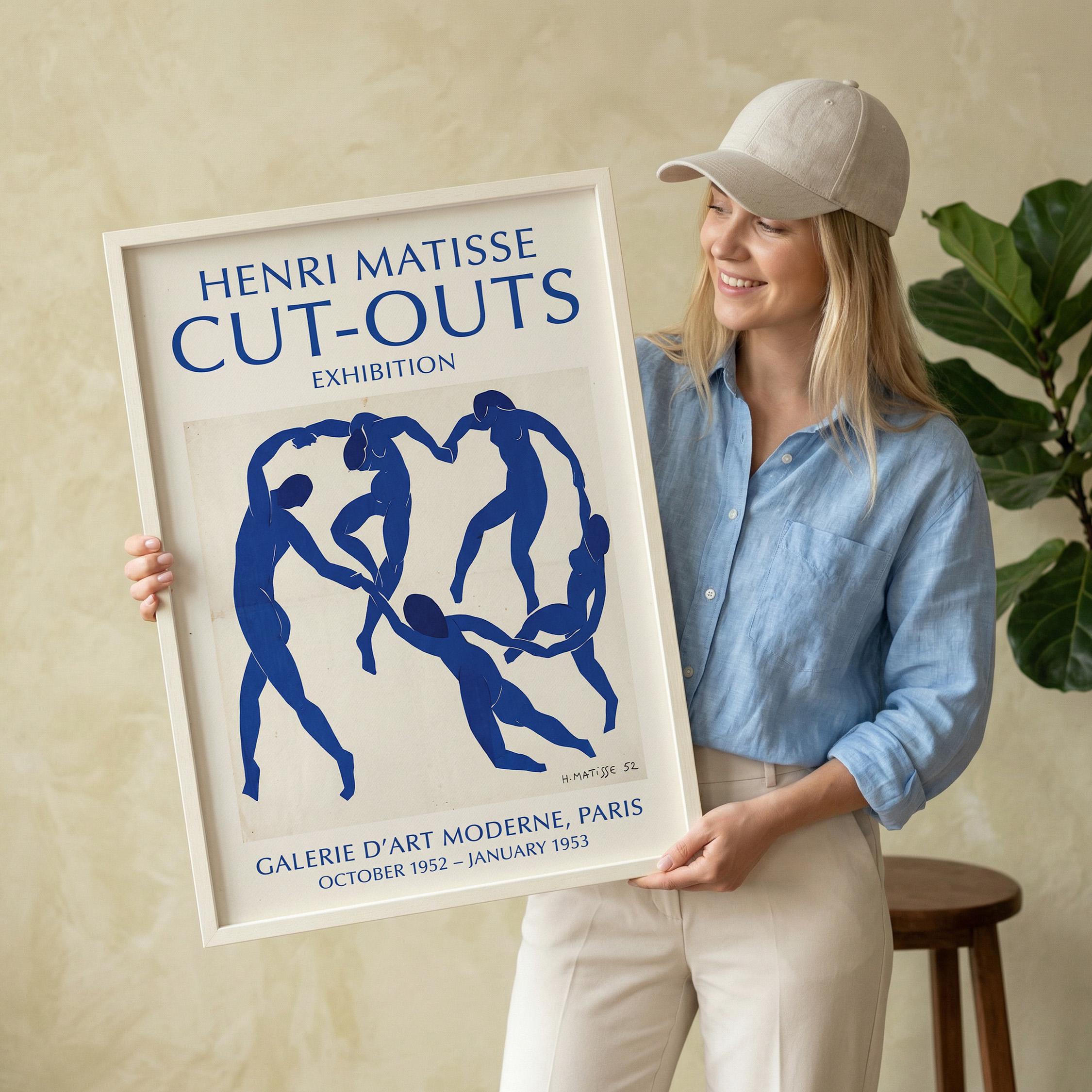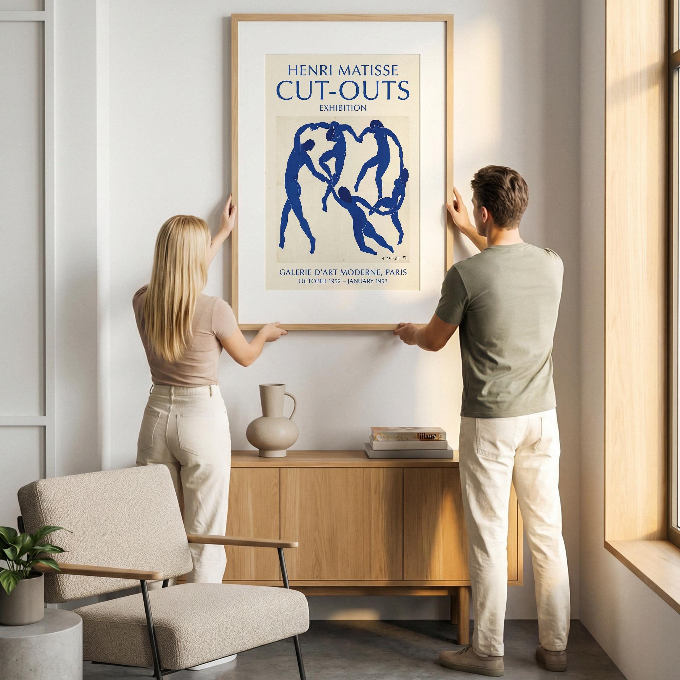 Bring iconic Matisse Cut-Outs exhibition energy to your walls with this striking museum poster reproduction featuring bold blue dancing figures. Perfect for art lovers, modernist enthusiasts, or anyone creating a sophisticated gallery wall in living rooms, offices, or creative studios.