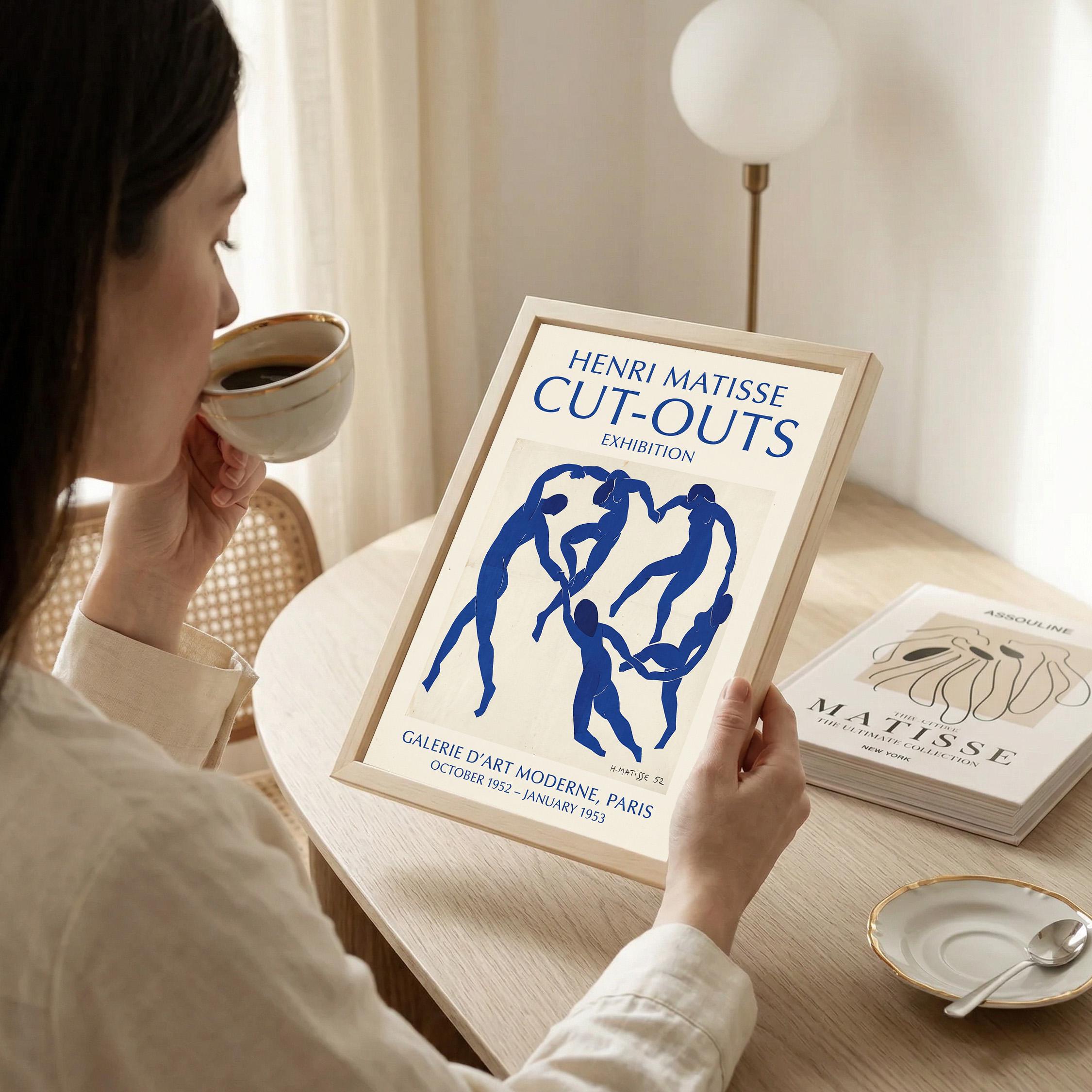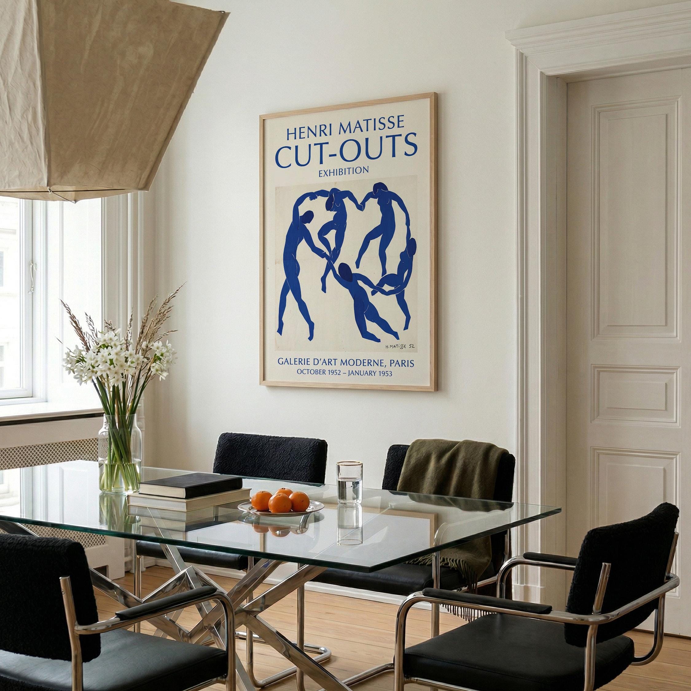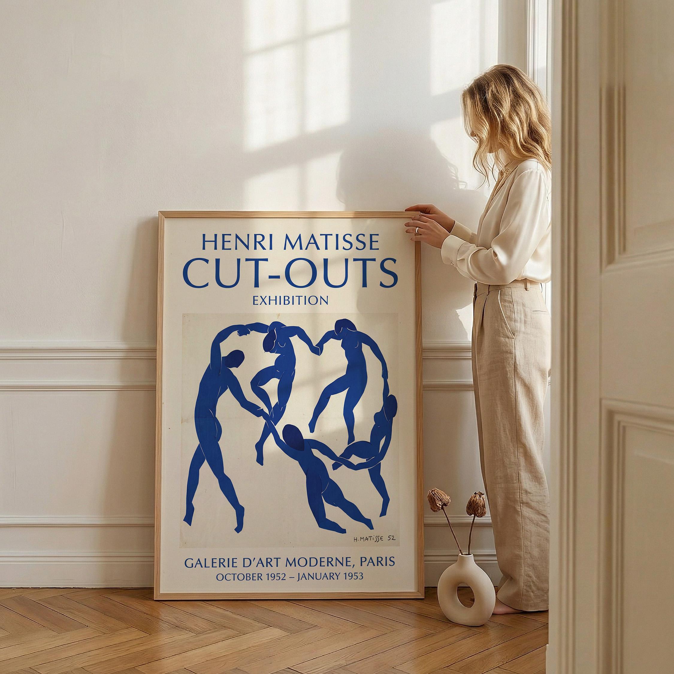 Bring iconic Matisse Cut-Outs exhibition energy to your walls with this striking museum poster reproduction featuring bold blue dancing figures. Perfect for art lovers, modernist enthusiasts, or anyone creating a sophisticated gallery wall in living rooms, offices, or creative studios.