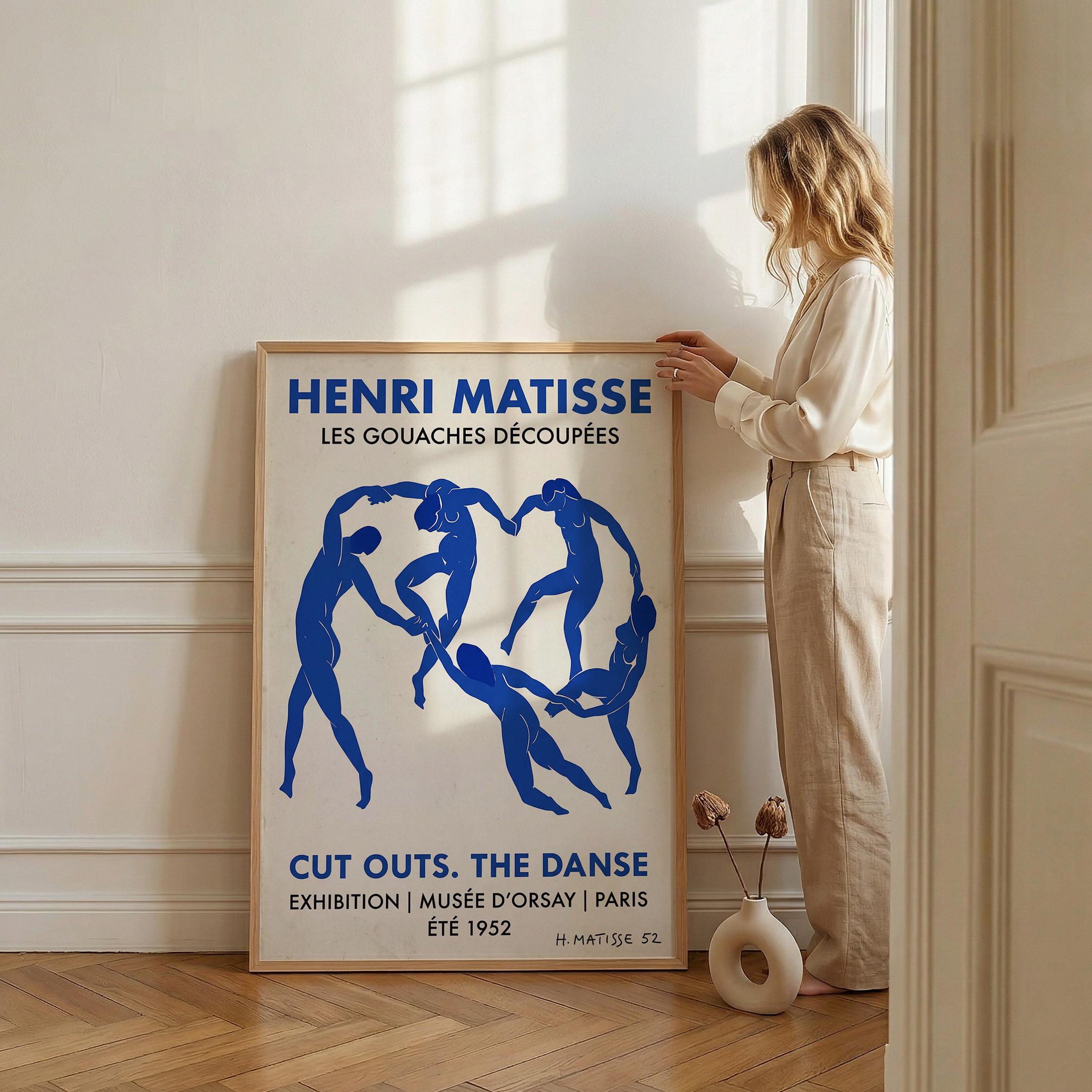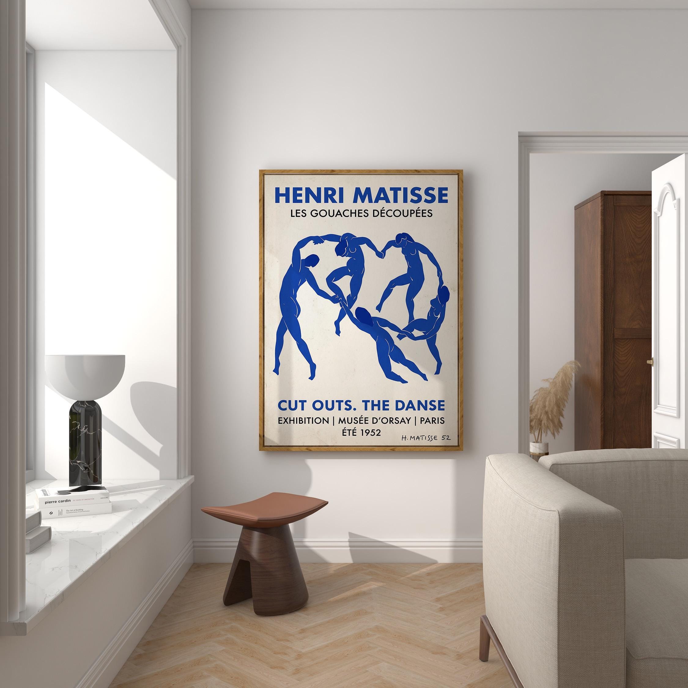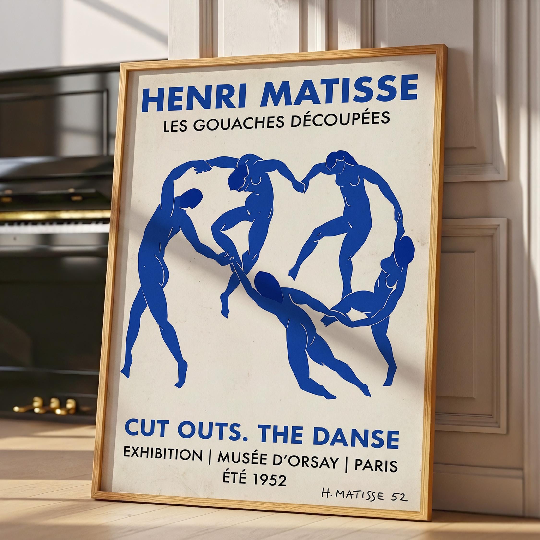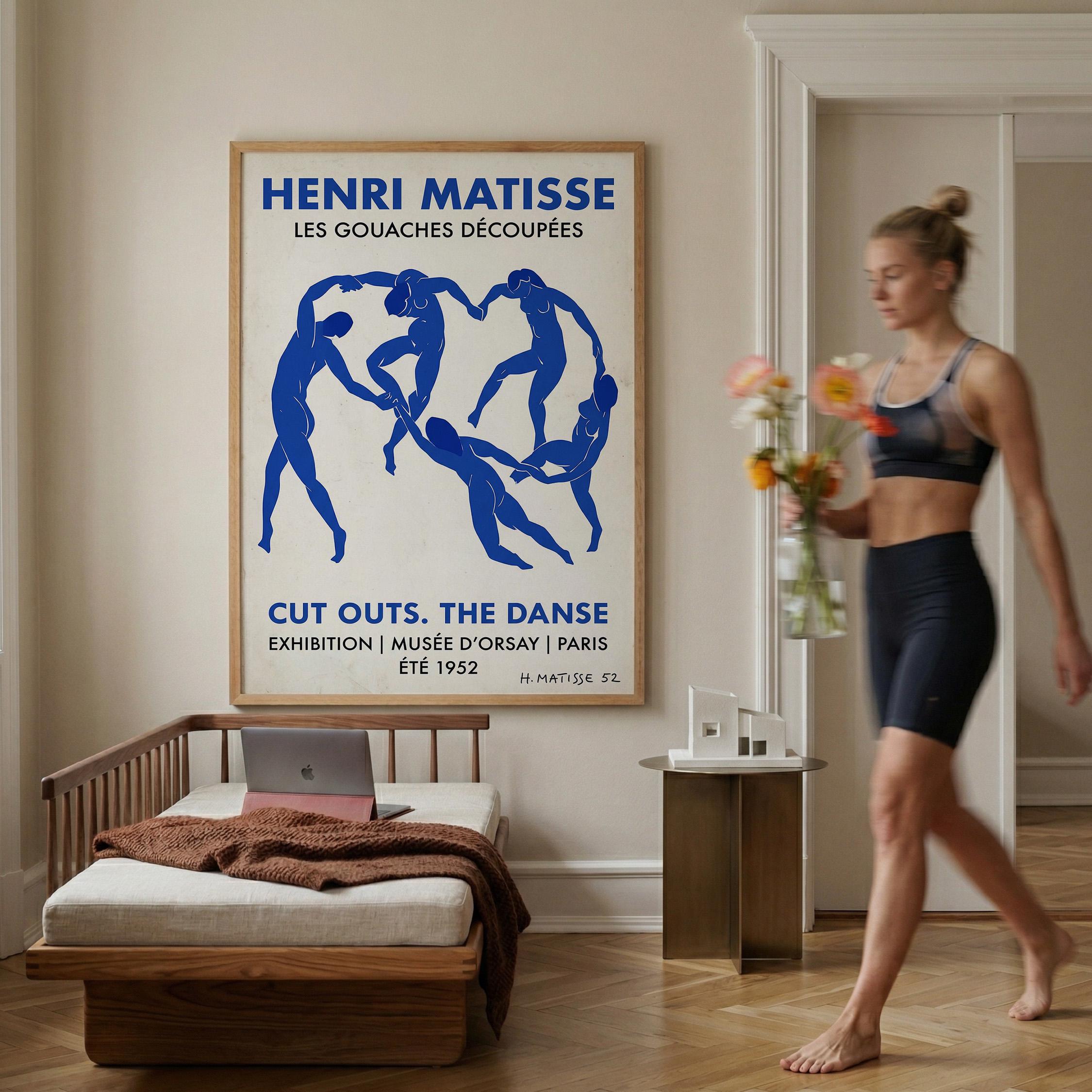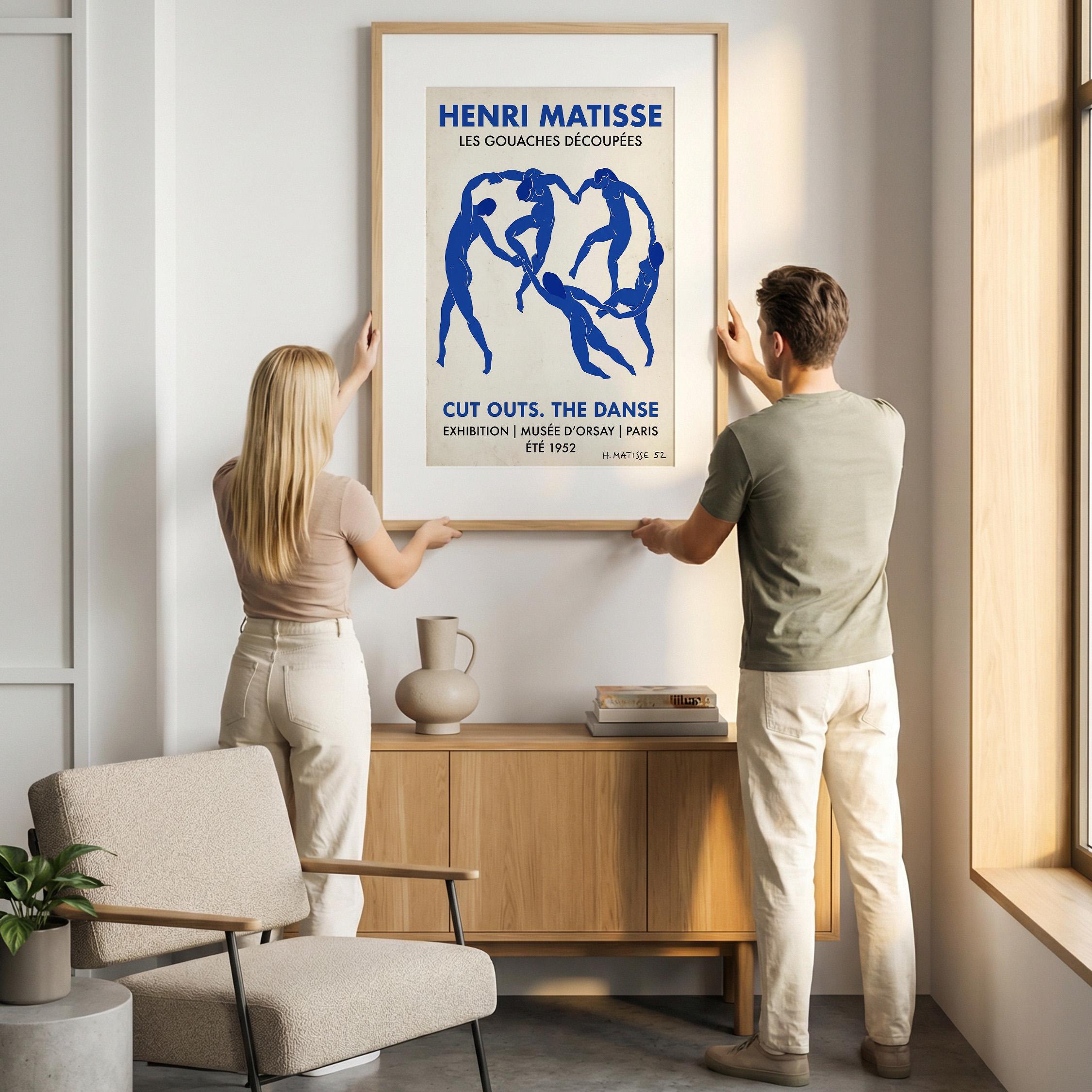 Bring iconic Matisse exhibition energy to your walls with this vintage-inspired Dance poster featuring bold blue abstract figures. Perfect for art lovers seeking mid-century modern sophistication in living rooms, bedrooms, or home offices.