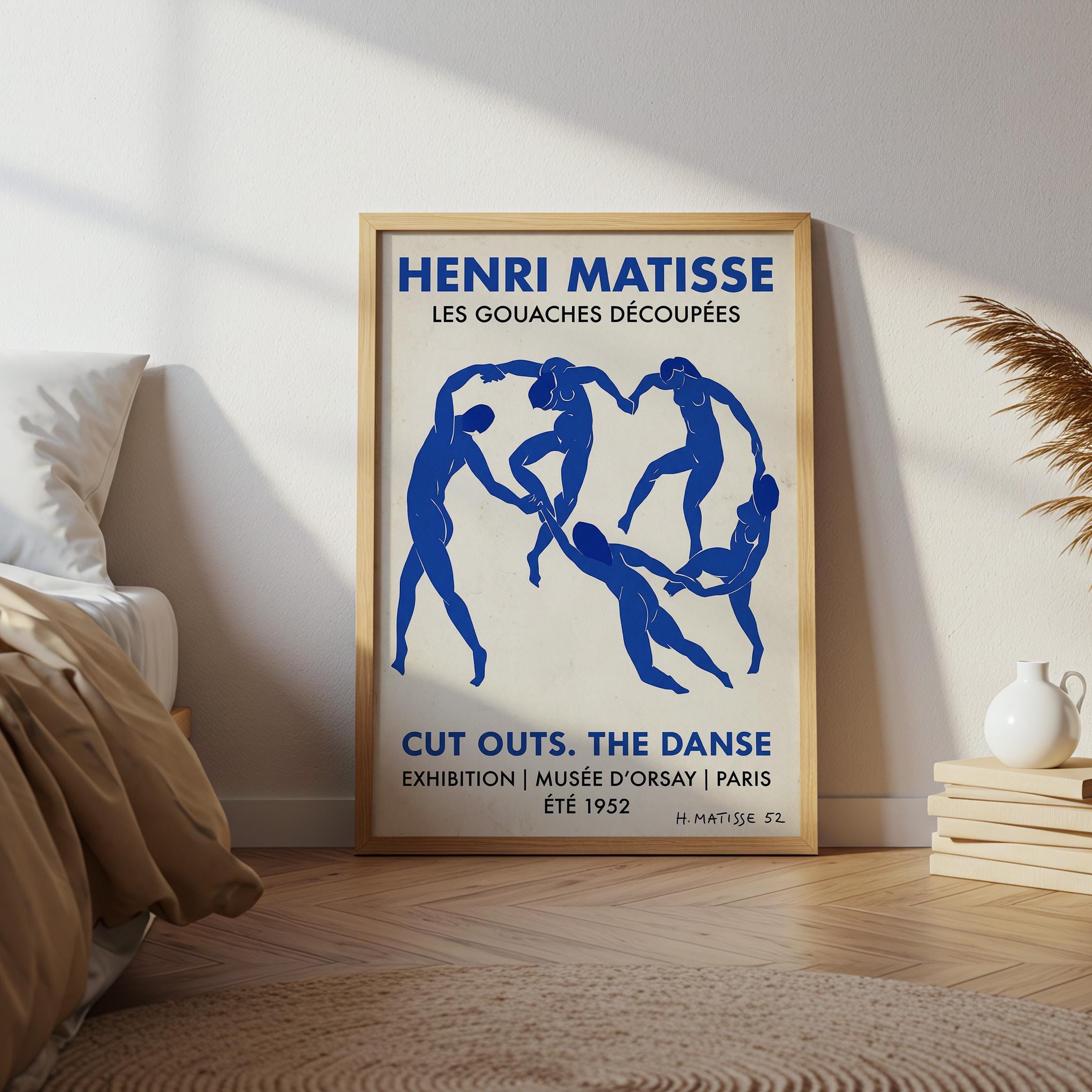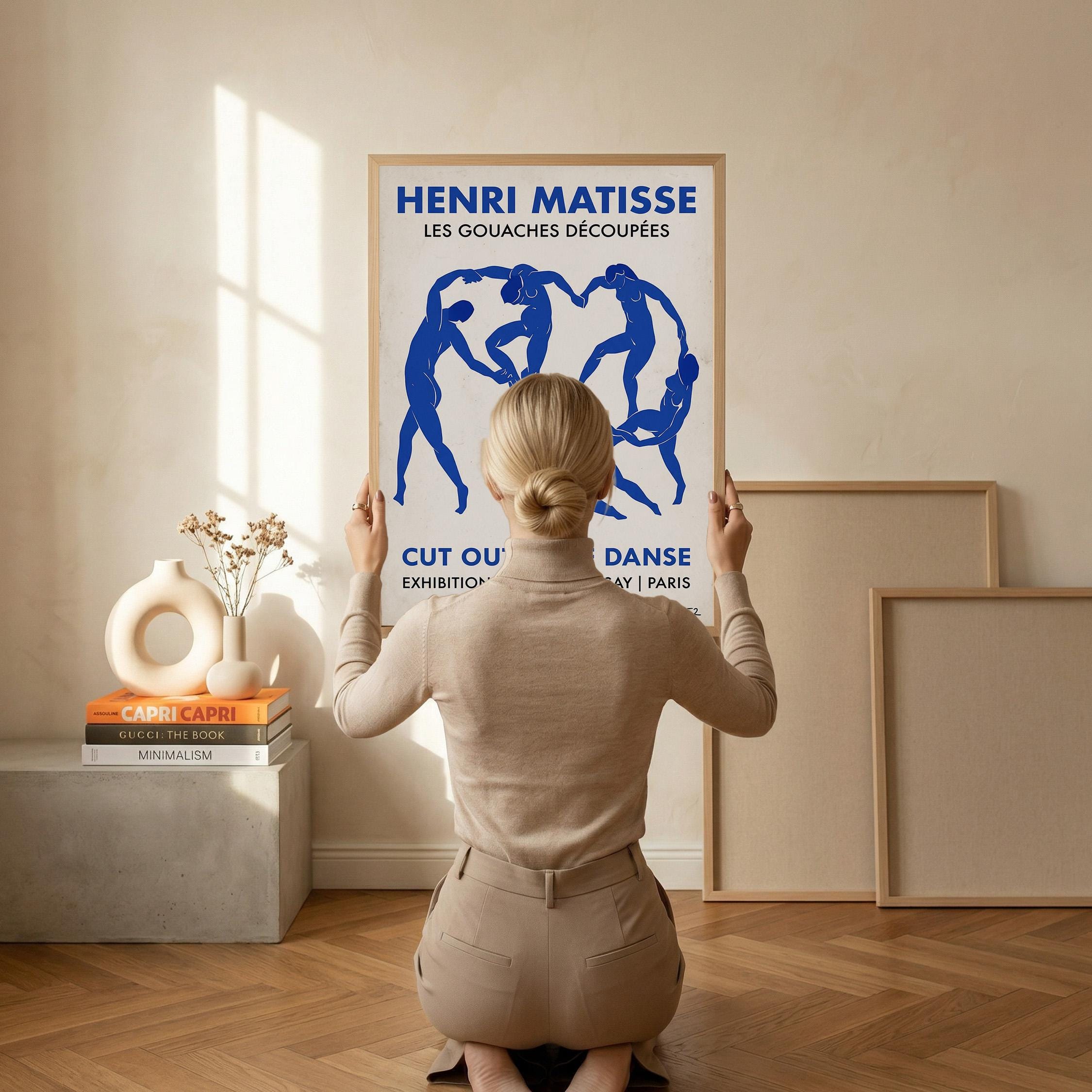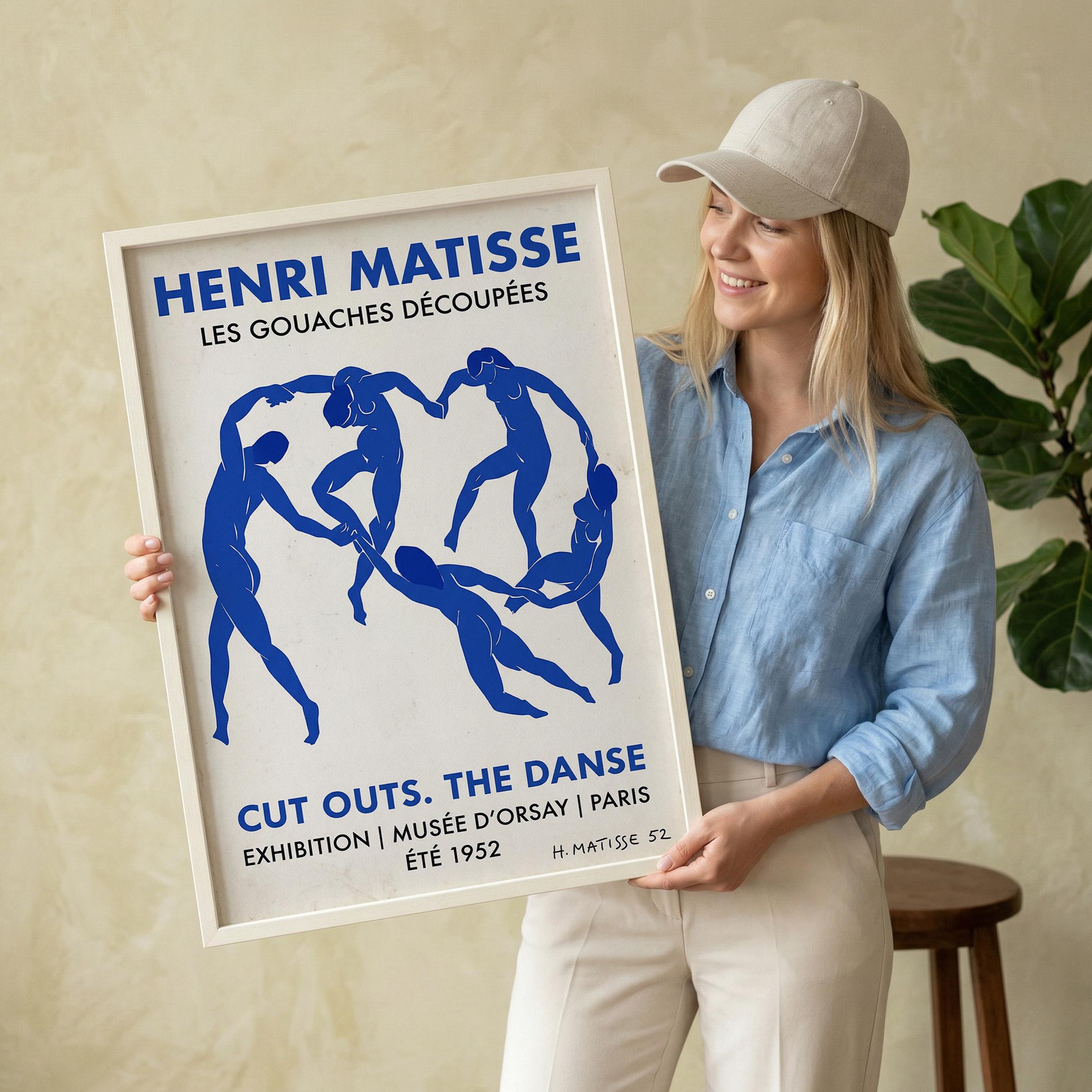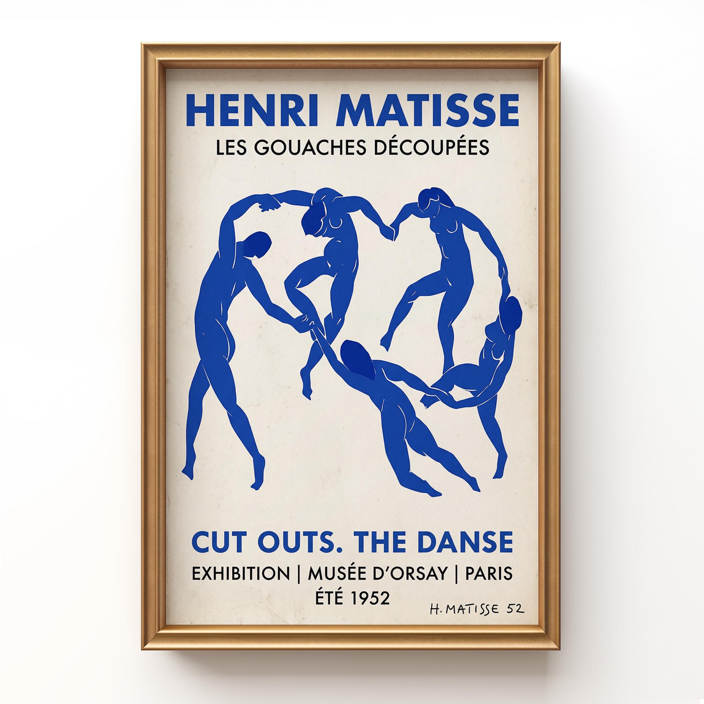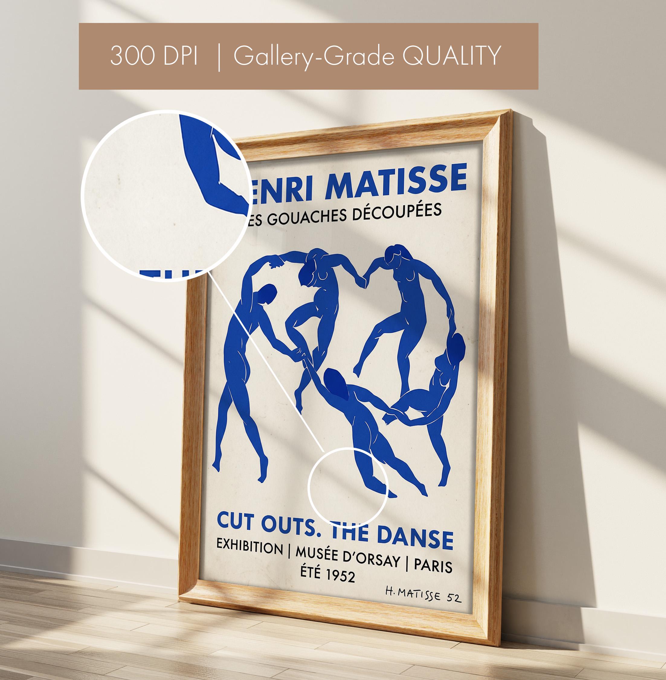 Bring iconic Matisse exhibition energy to your walls with this vintage-inspired Dance poster featuring bold blue abstract figures. Perfect for art lovers seeking mid-century modern sophistication in living rooms, bedrooms, or home offices.