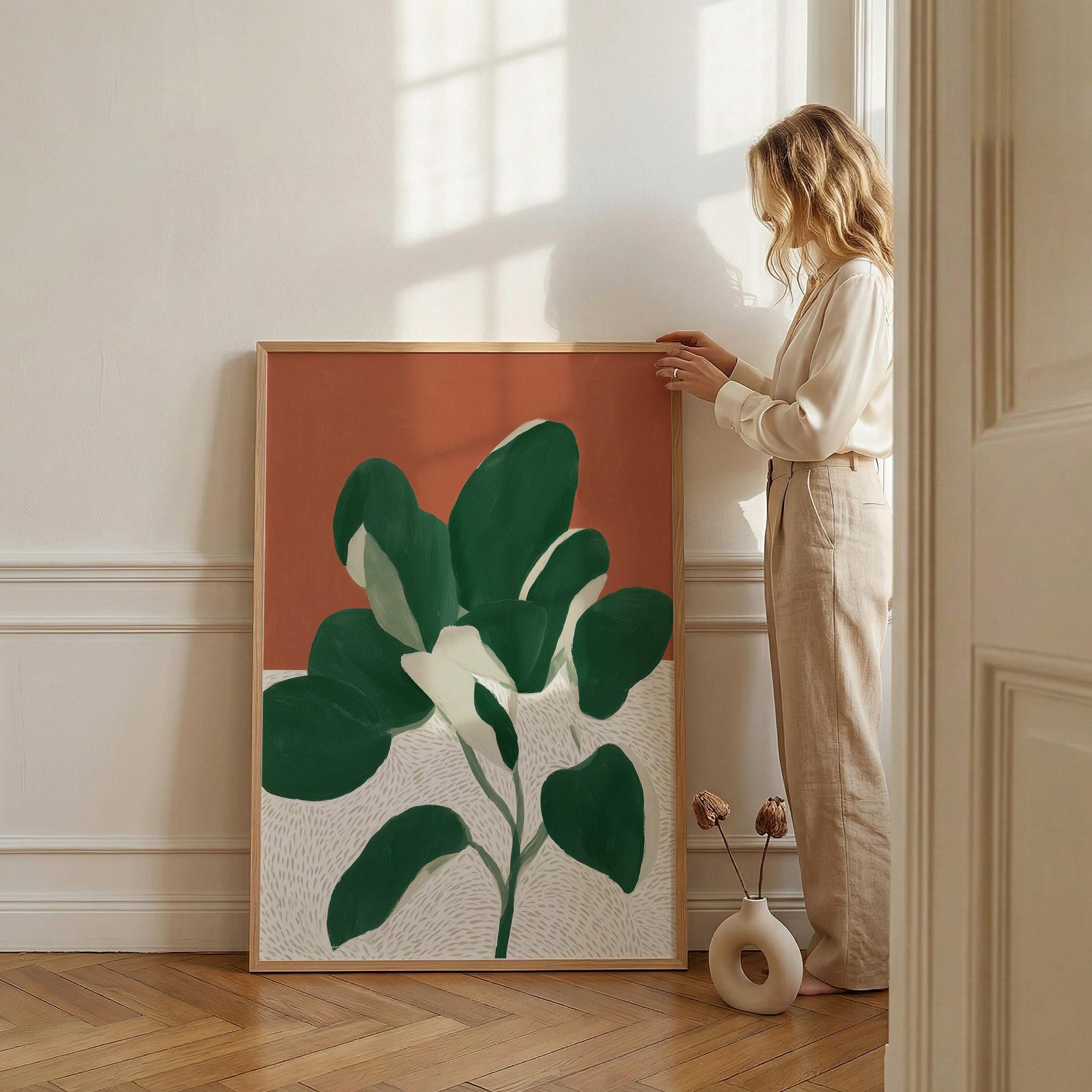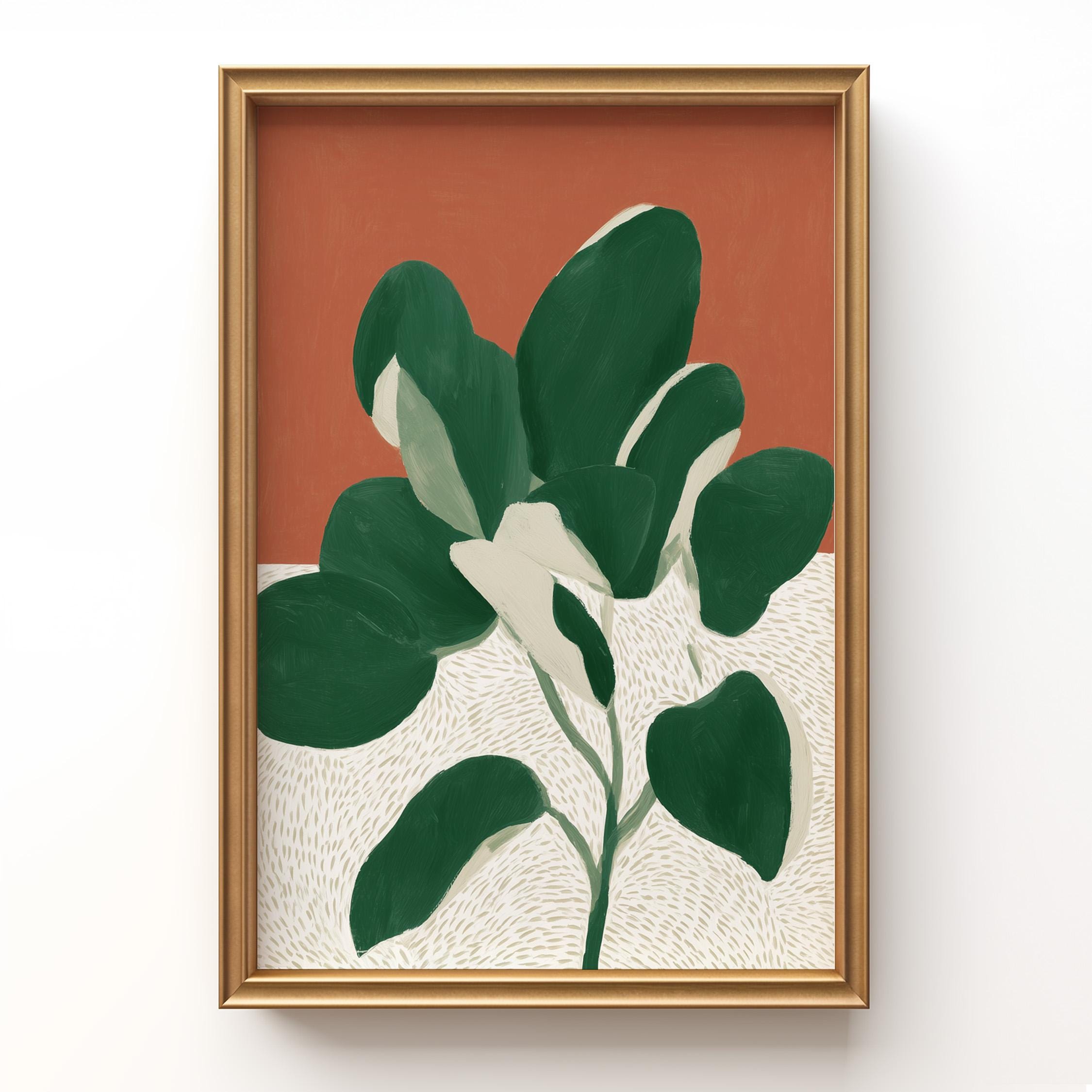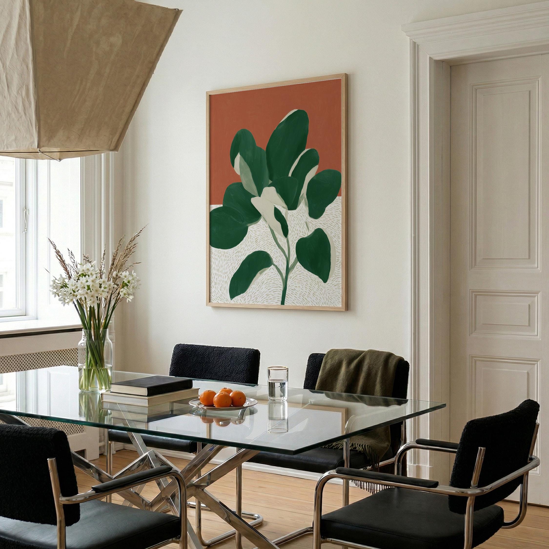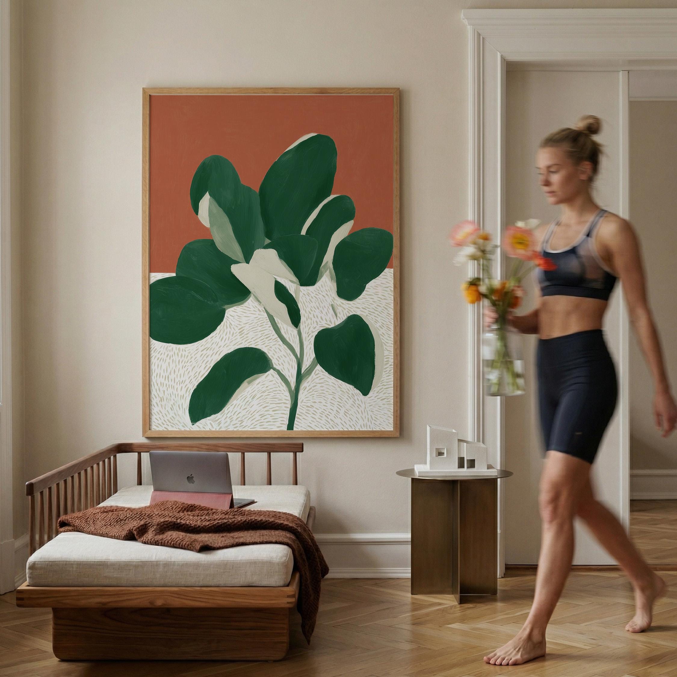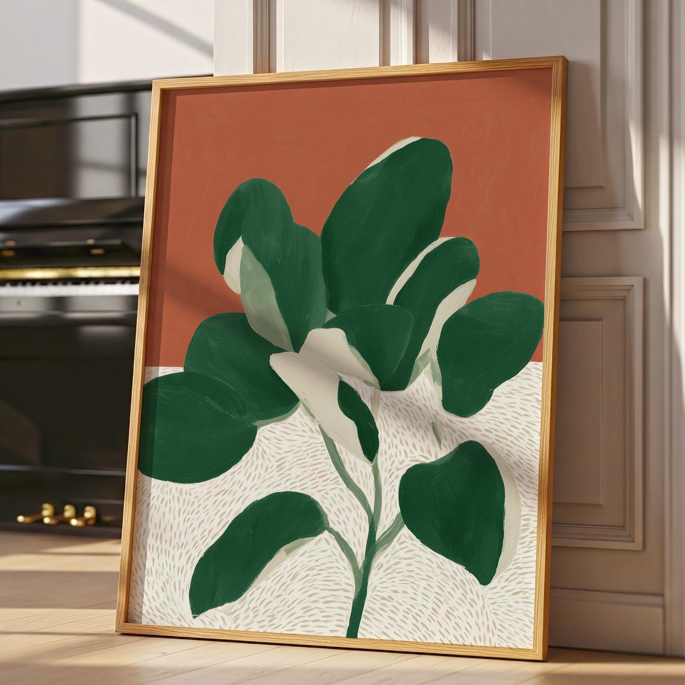 Bold monstera plant wall art with rich terracotta and deep green hues creates instant visual impact in any space. Perfect for modern boho living rooms, bedrooms, or offices seeking that effortless tropical minimalist vibe.