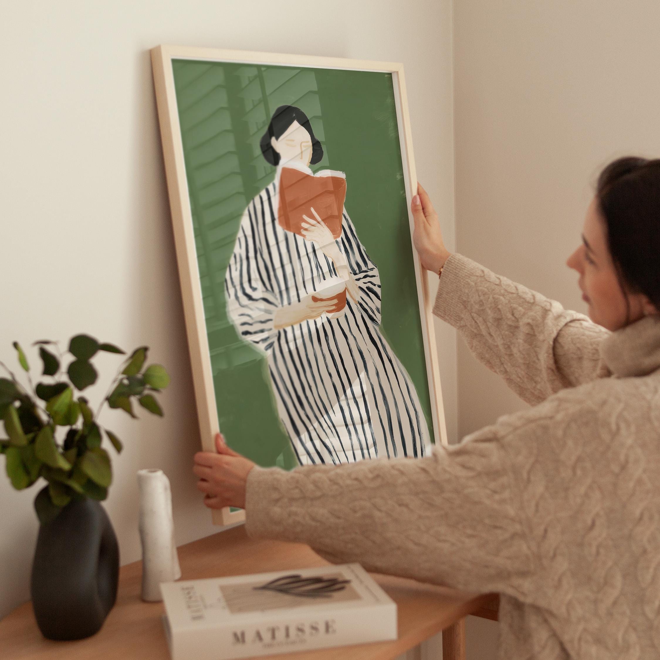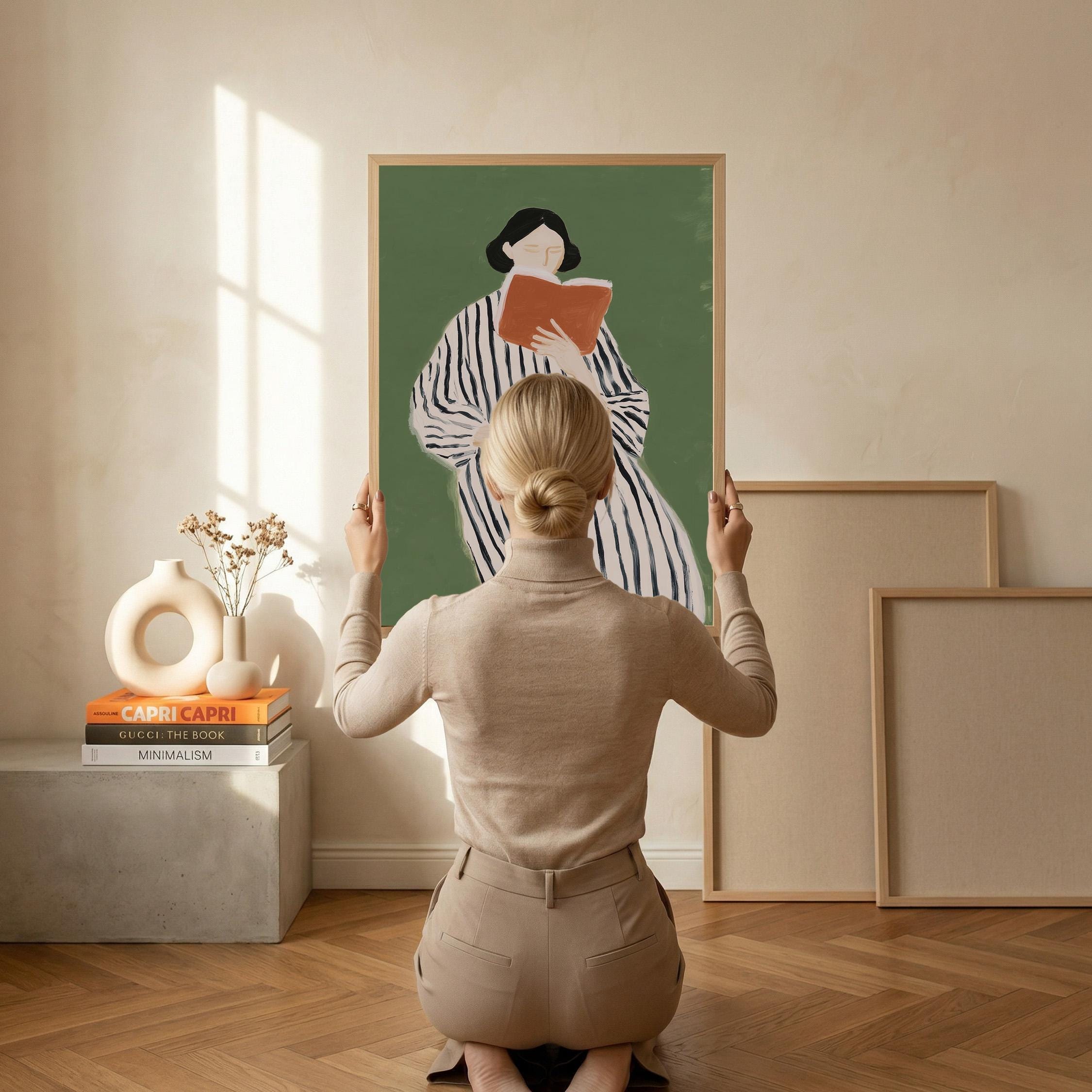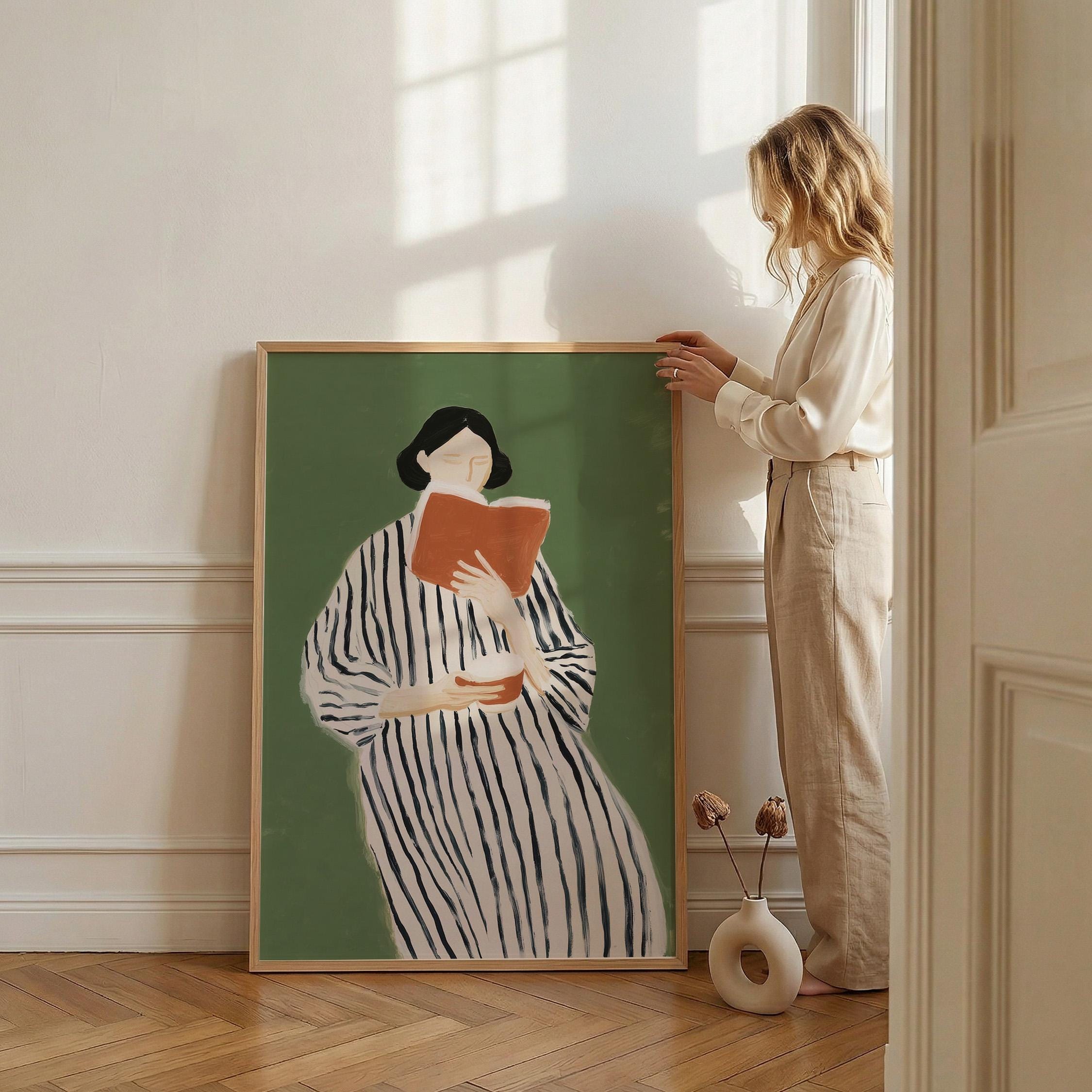 Perfect for book lovers, home libraries, reading nooks, bedrooms, or offices seeking sophisticated literary-inspired decor. Brings a peaceful, intellectual, and feminine energy to any space while celebrating the quiet joy of reading.