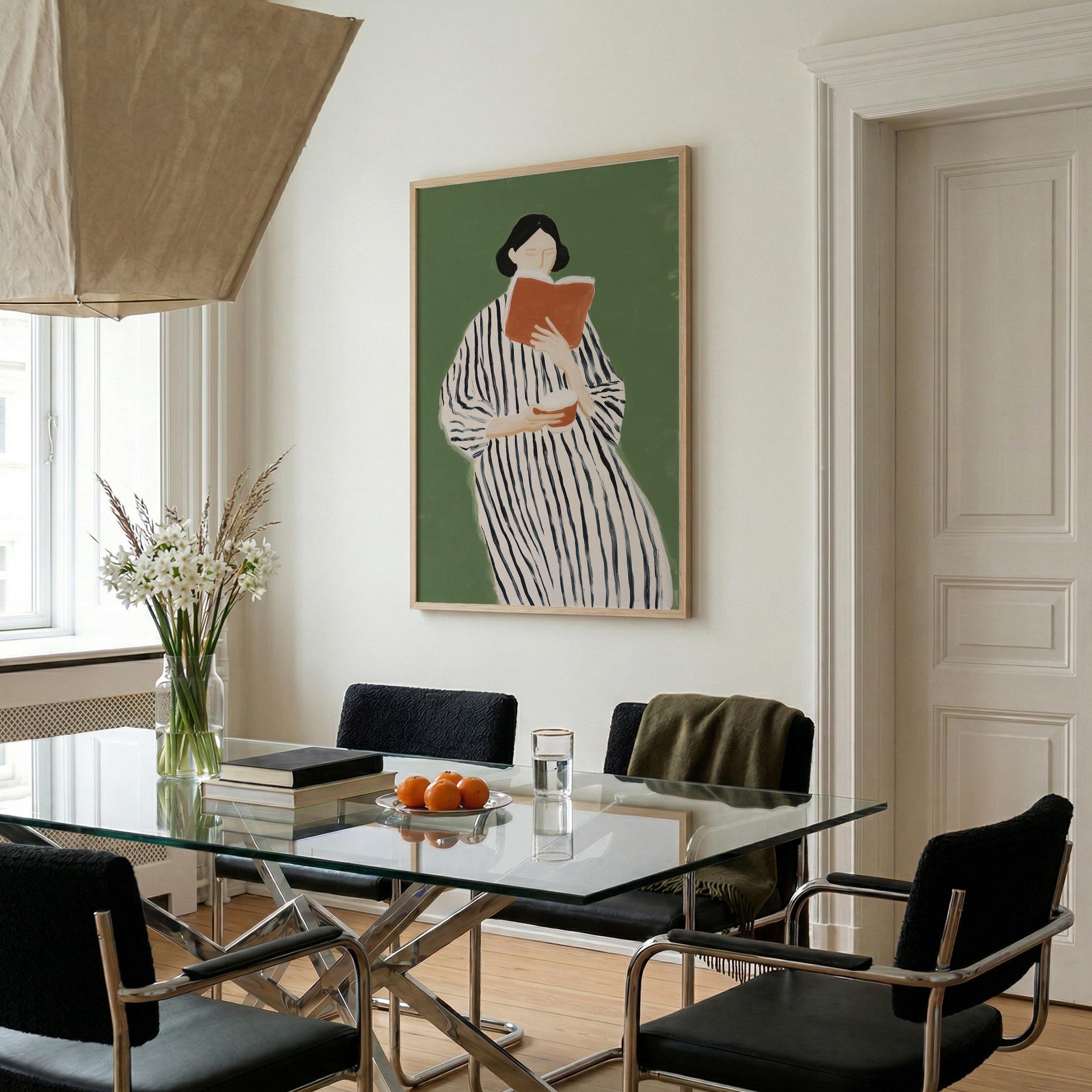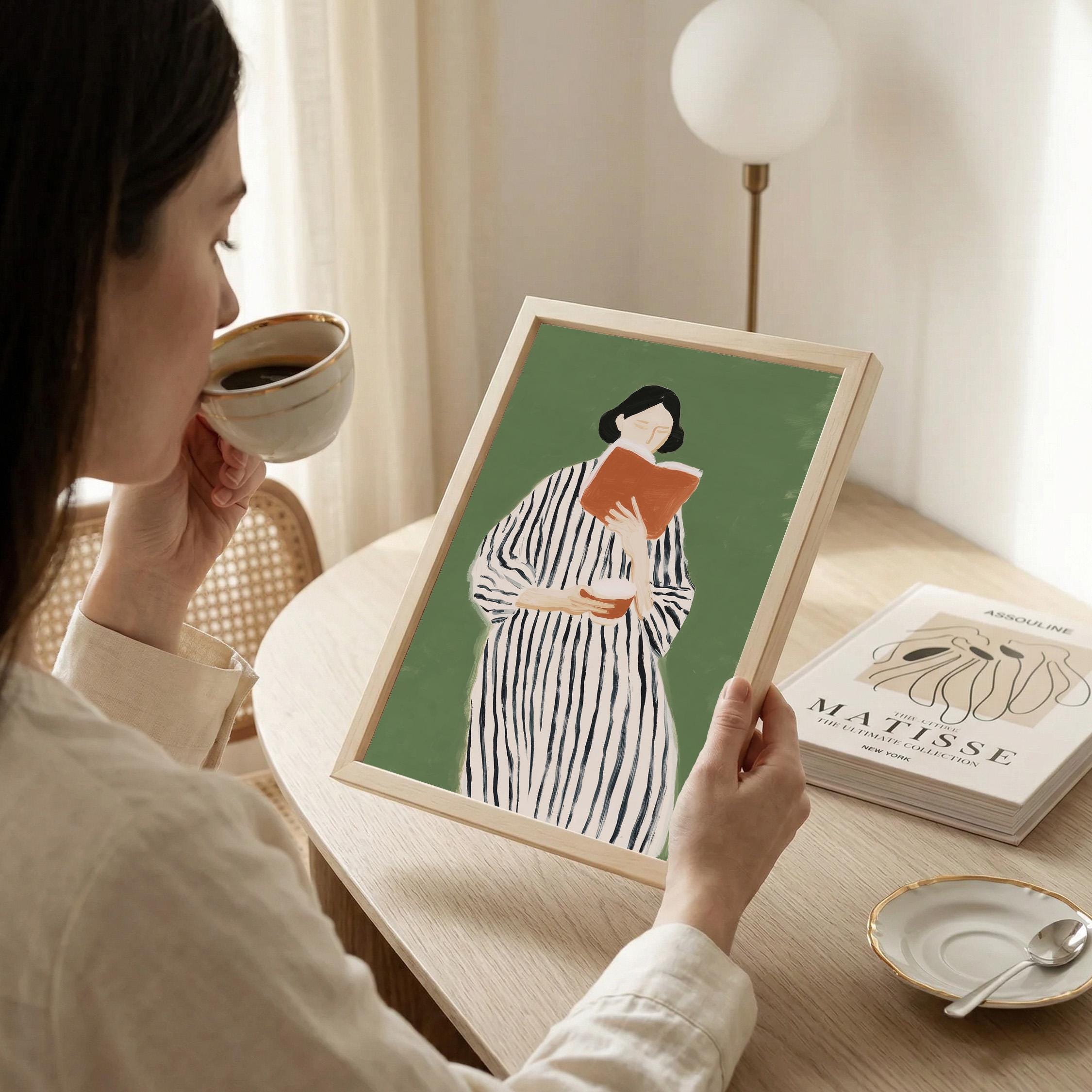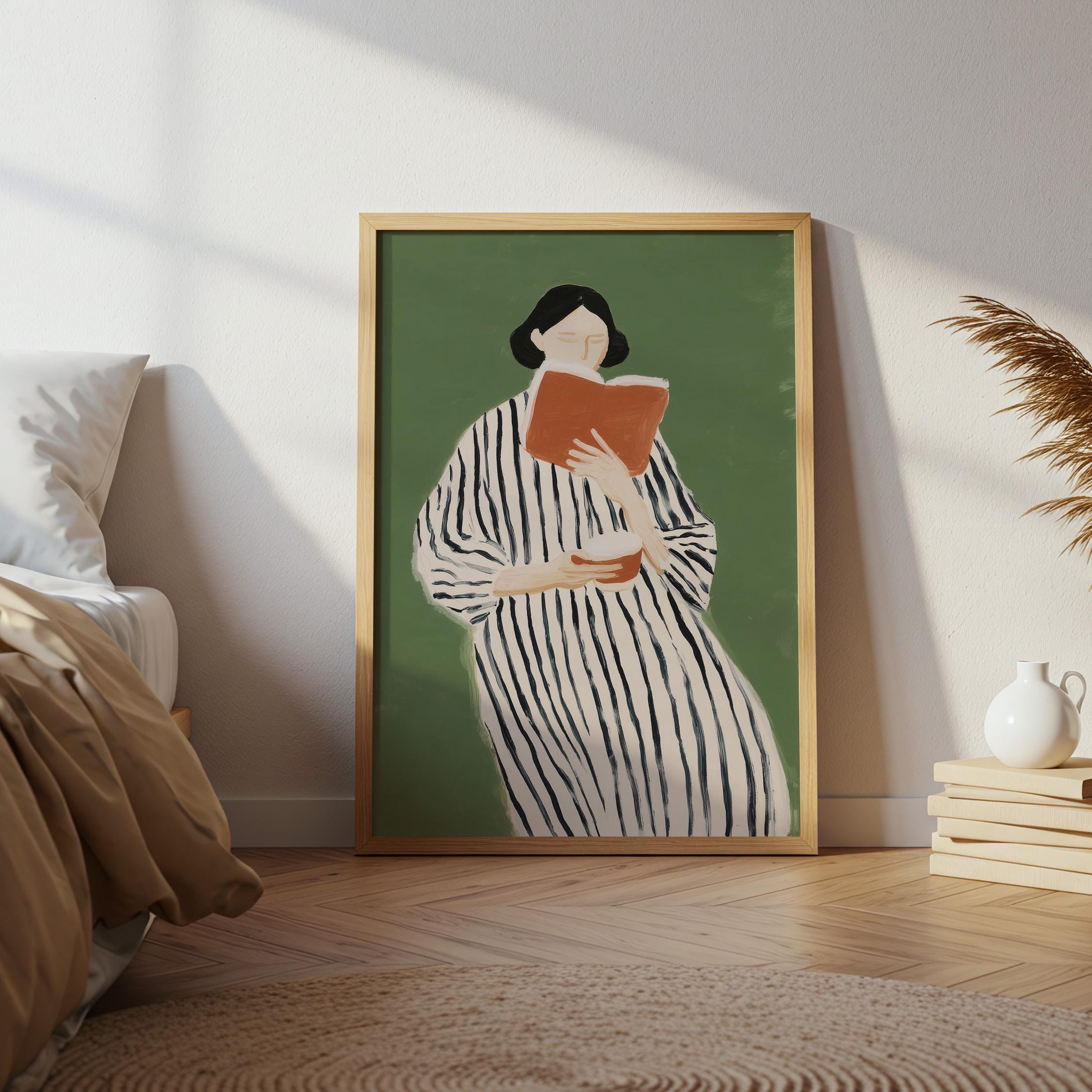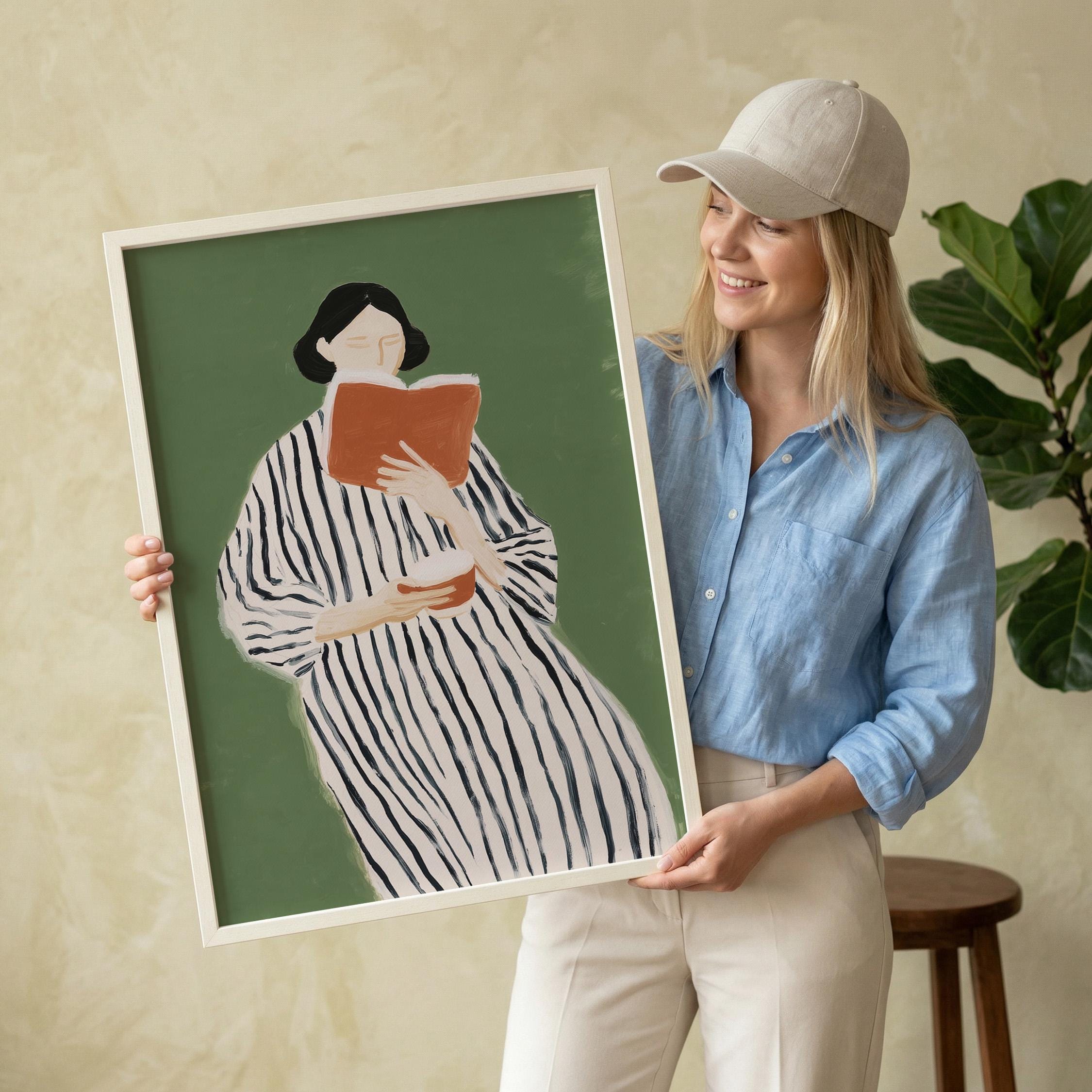 Perfect for book lovers, home libraries, reading nooks, bedrooms, or offices seeking sophisticated literary-inspired decor. Brings a peaceful, intellectual, and feminine energy to any space while celebrating the quiet joy of reading.