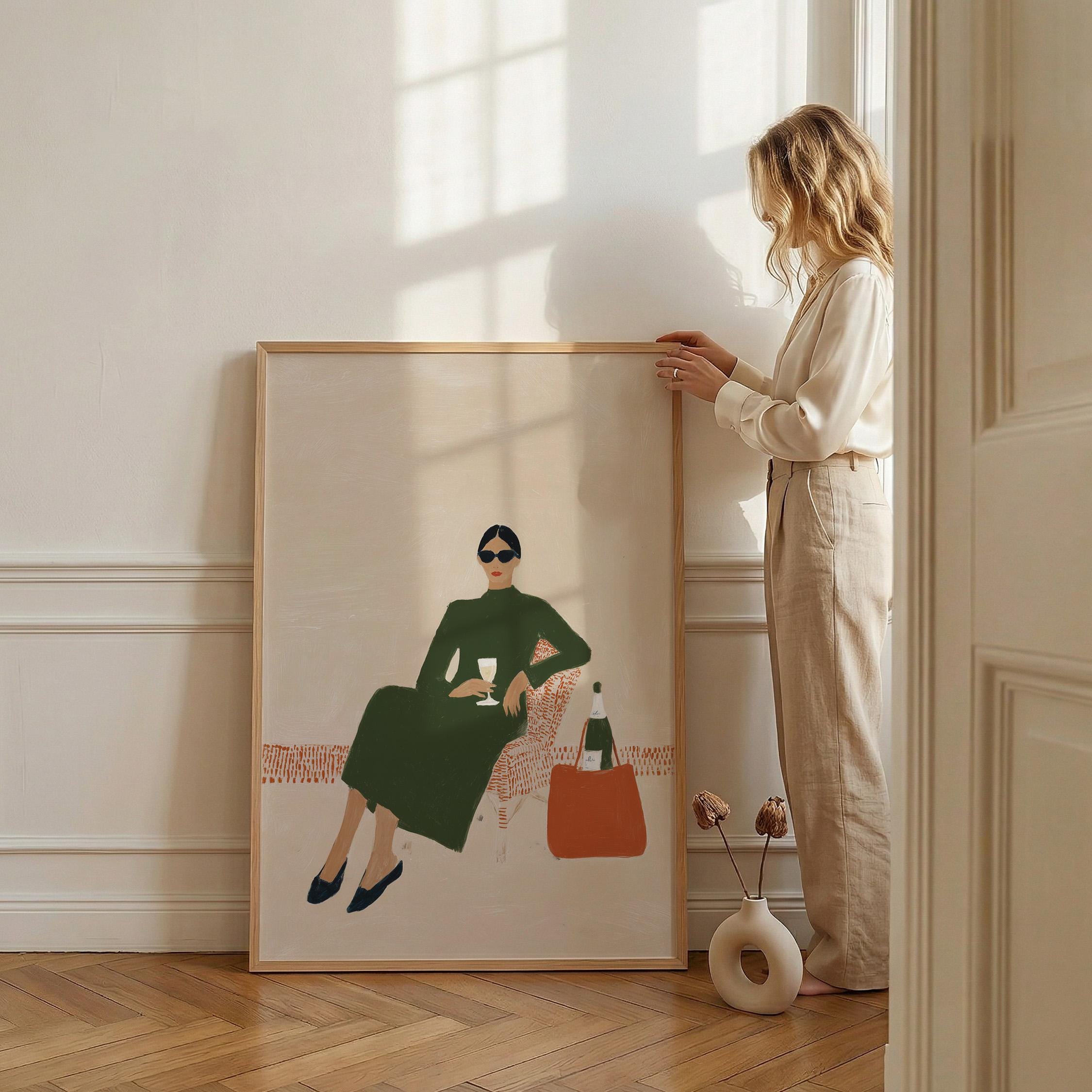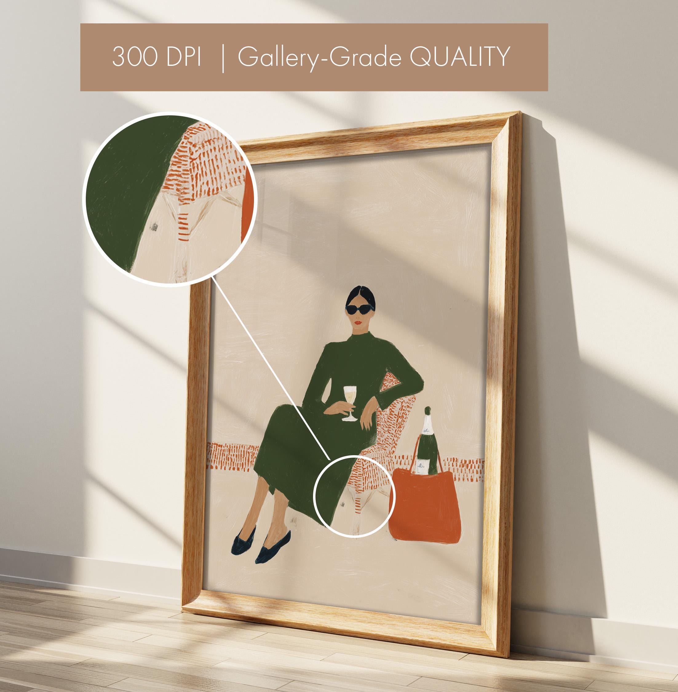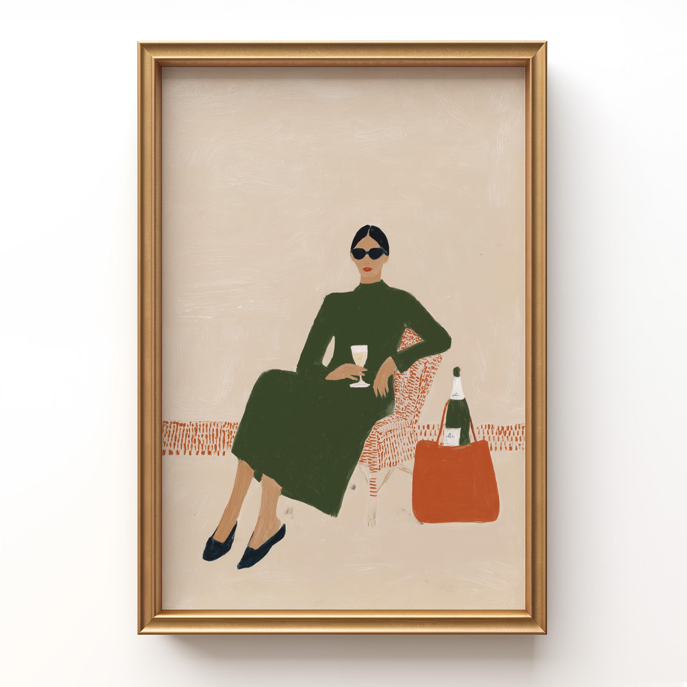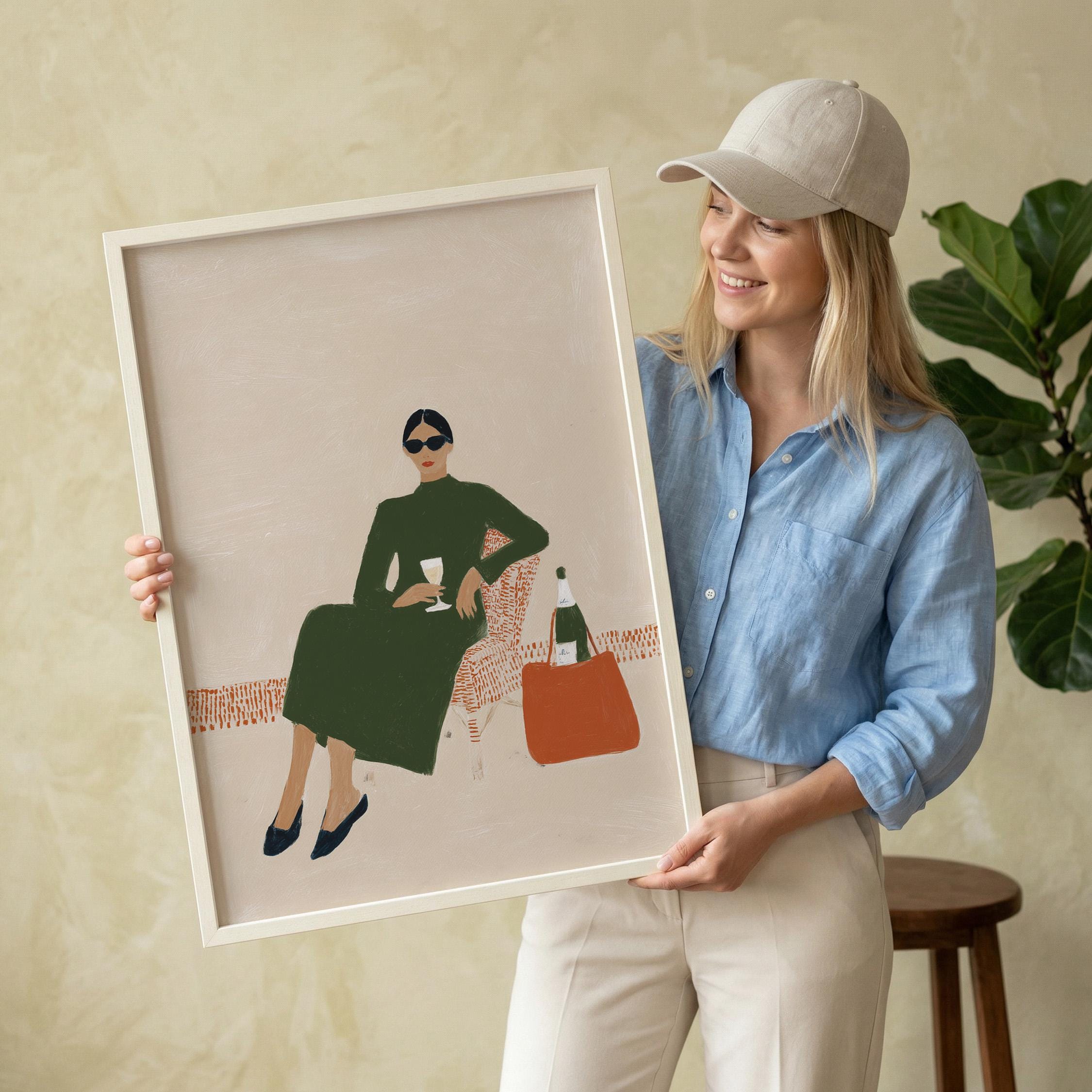 This print brings instant elegance and a cosmopolitan, empowered vibe to any gallery wall or statement piece display. Ideal for wine enthusiasts, fashion lovers, and anyone creating a stylish, feminine sanctuary with contemporary flair.