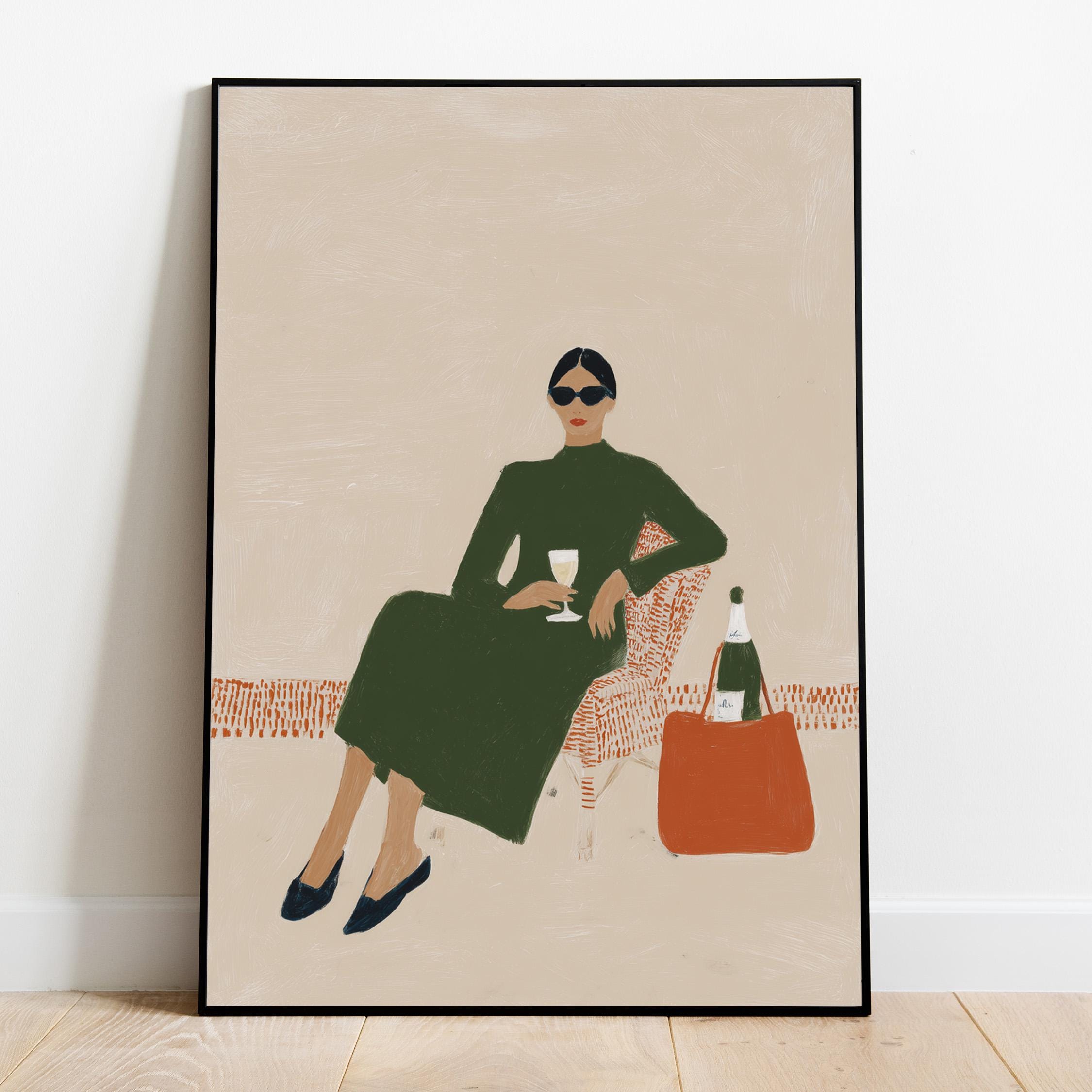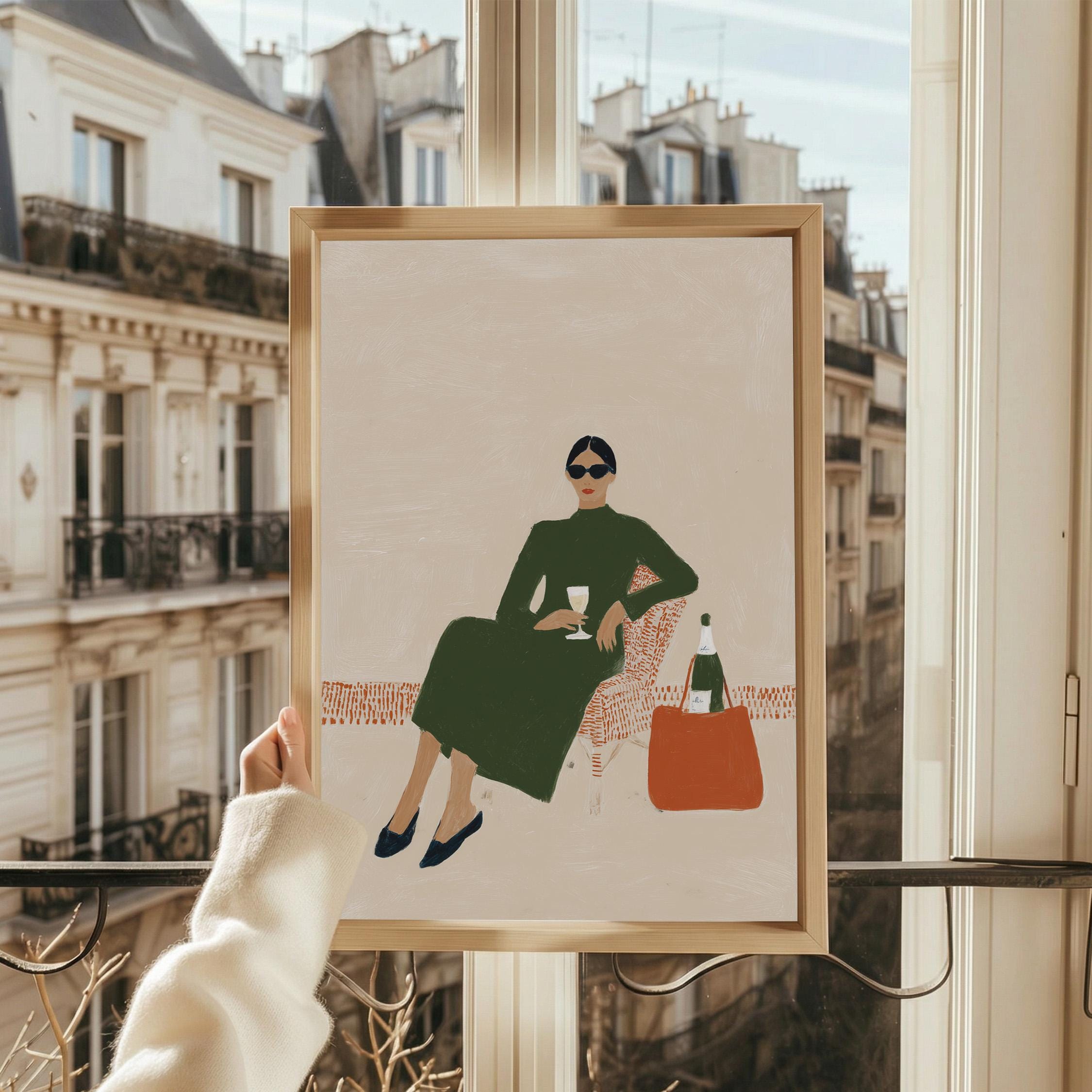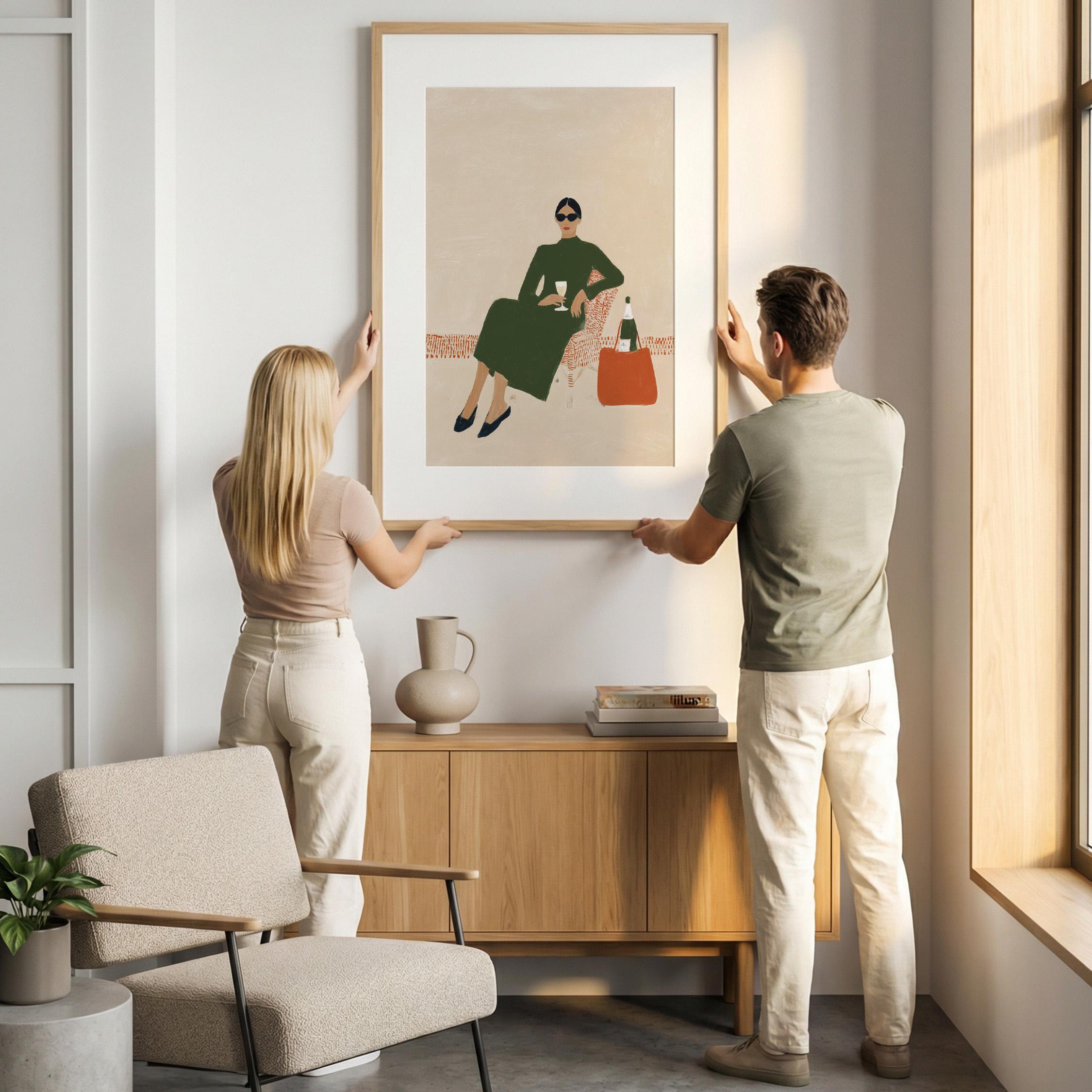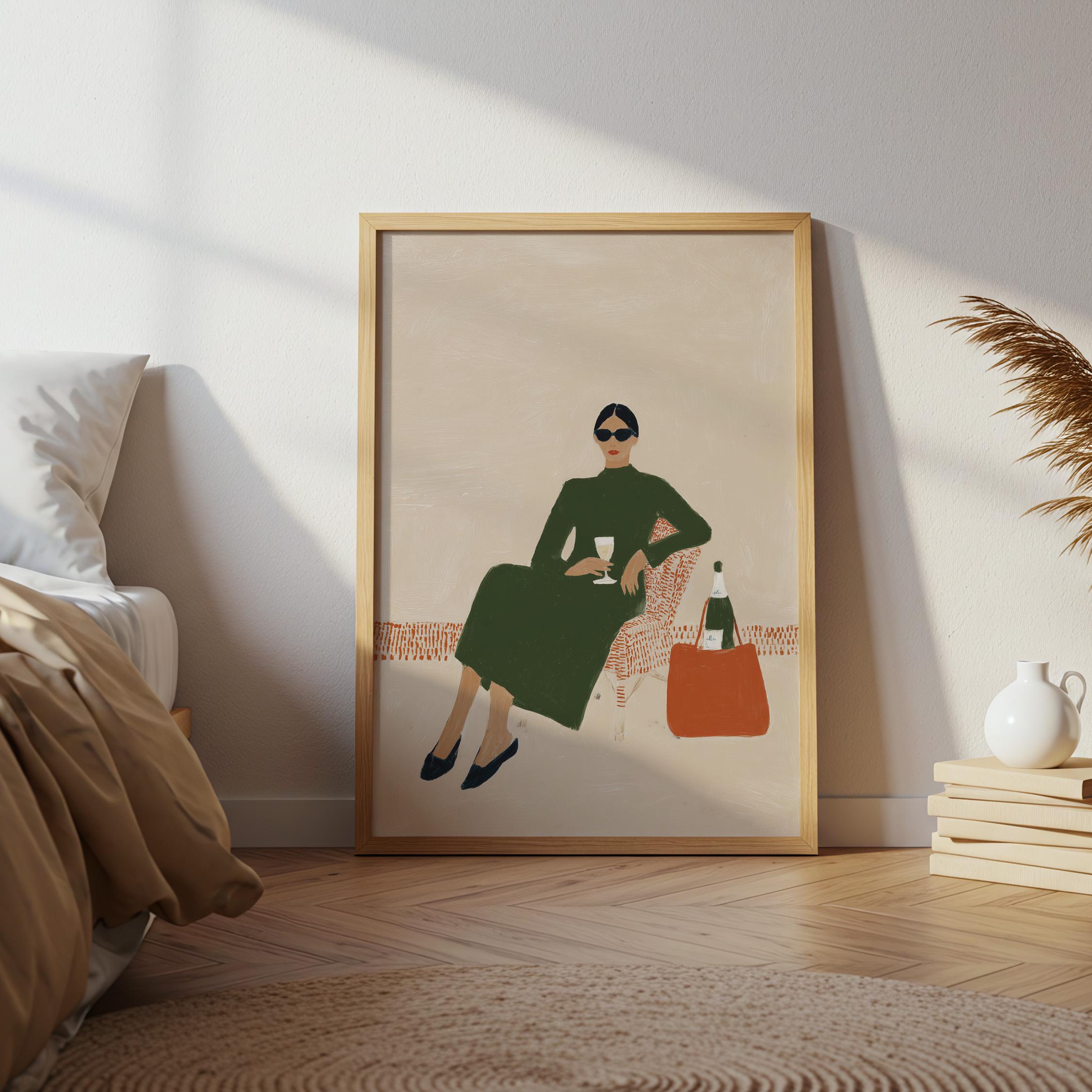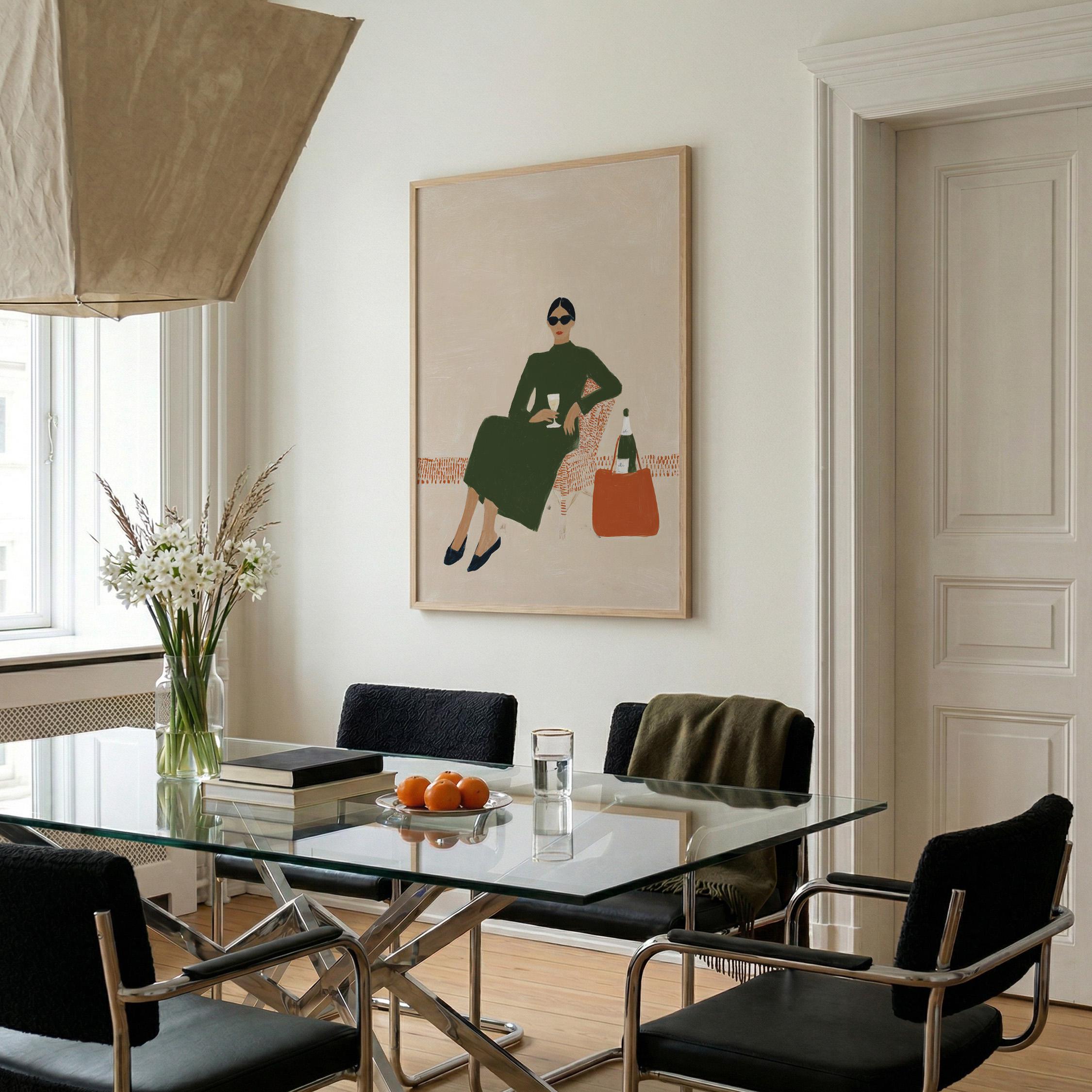 This print brings instant elegance and a cosmopolitan, empowered vibe to any gallery wall or statement piece display. Ideal for wine enthusiasts, fashion lovers, and anyone creating a stylish, feminine sanctuary with contemporary flair.