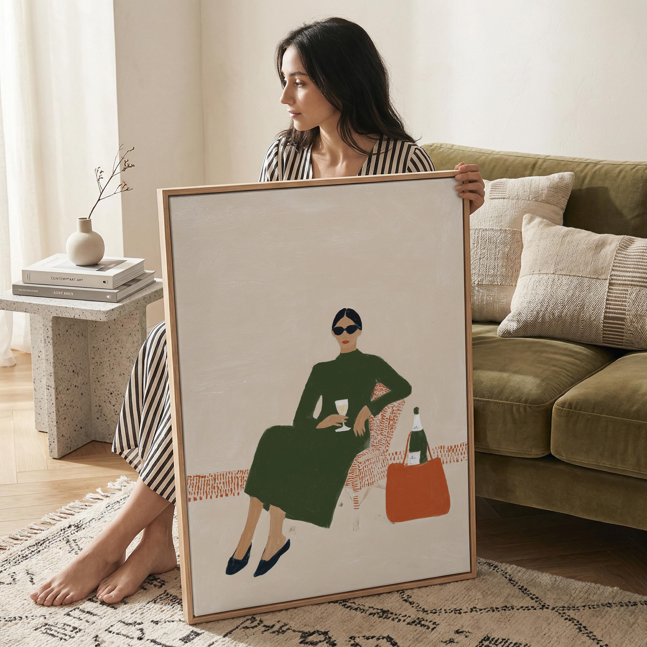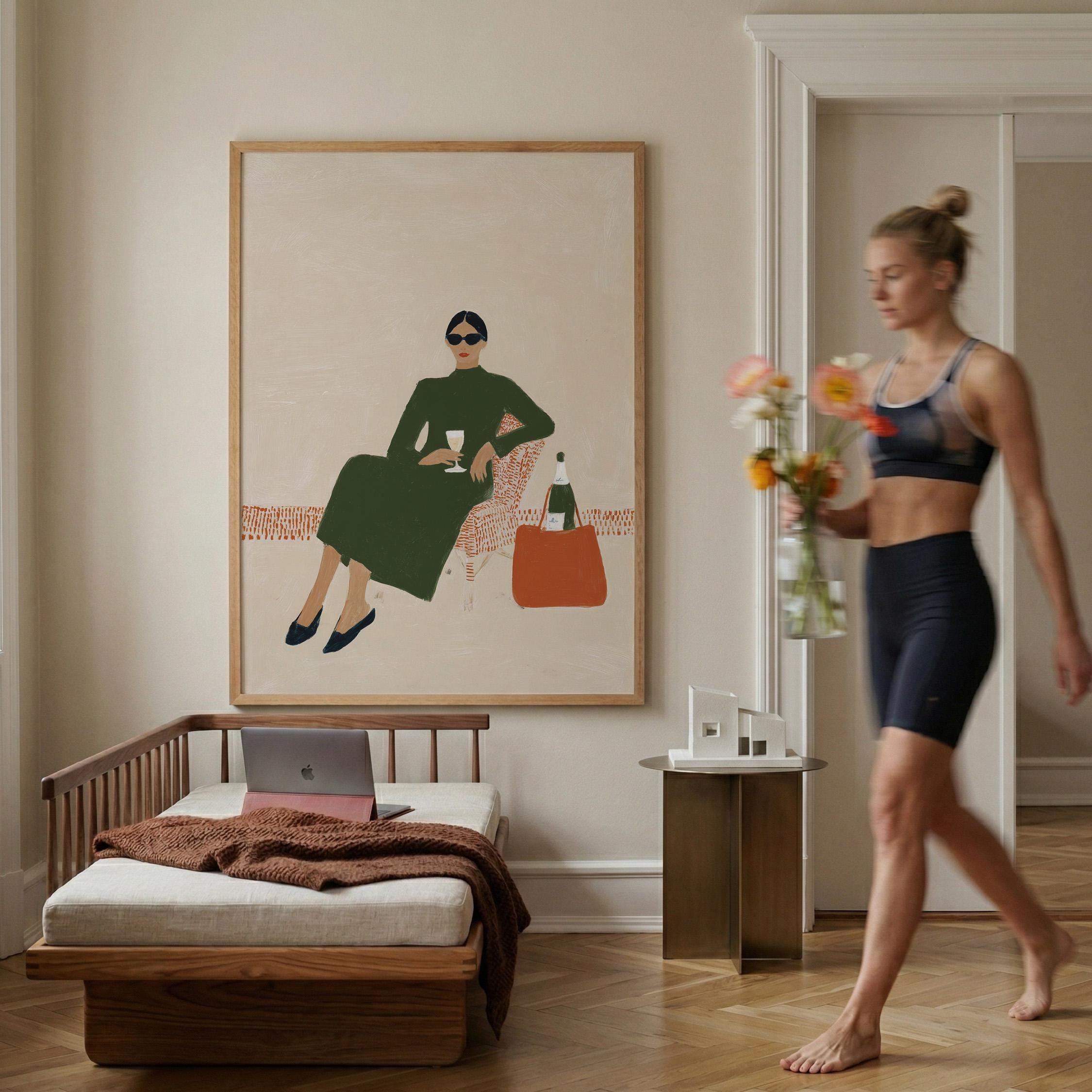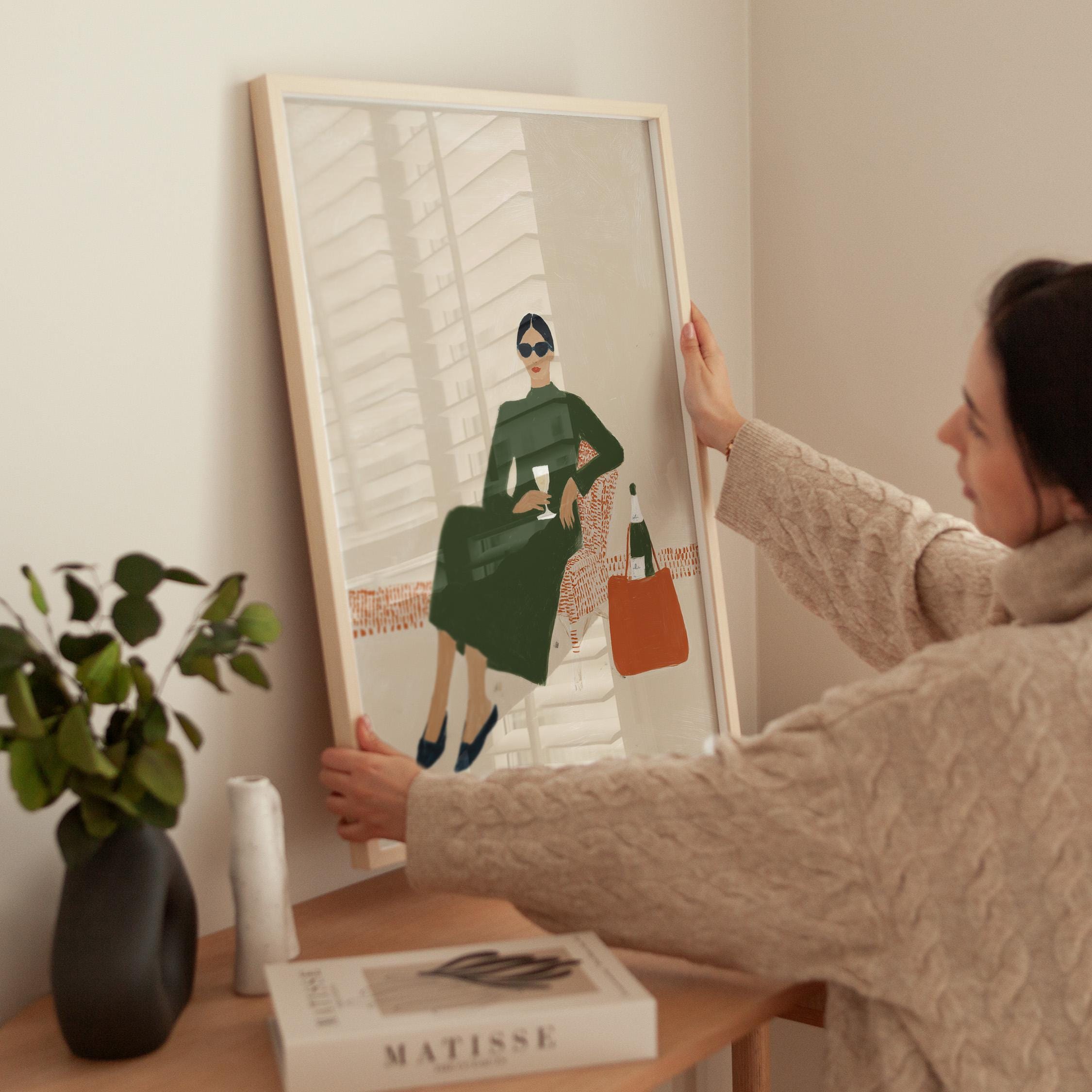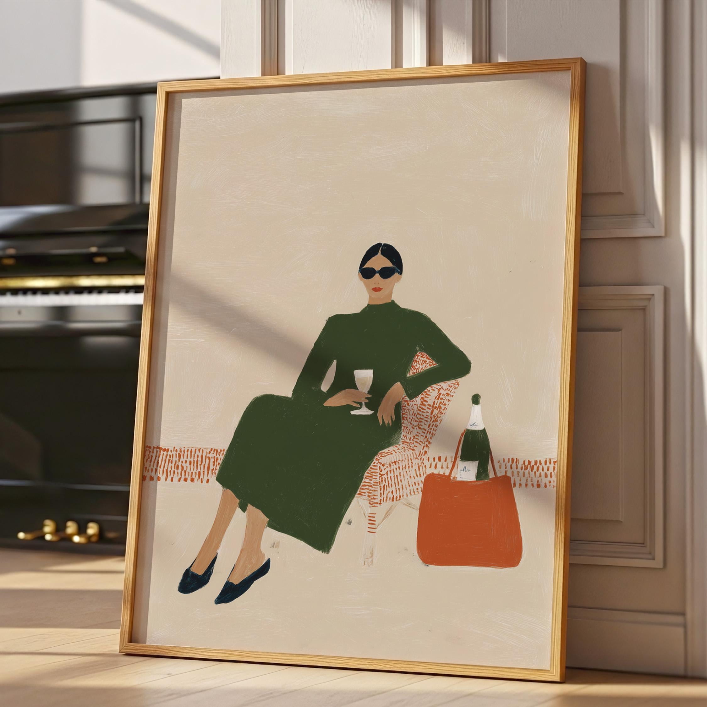 This print brings instant elegance and a cosmopolitan, empowered vibe to any gallery wall or statement piece display. Ideal for wine enthusiasts, fashion lovers, and anyone creating a stylish, feminine sanctuary with contemporary flair.