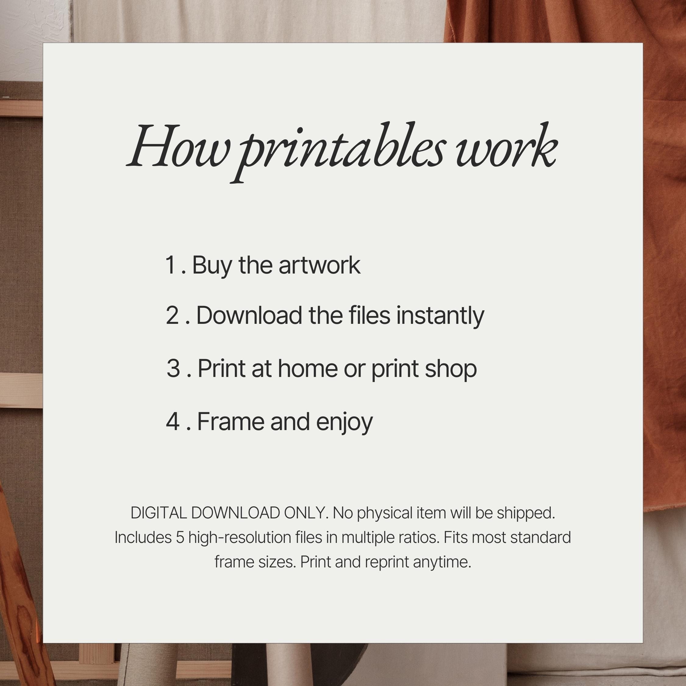 Buy → Download → Print → Frame. No waiting, ready to print within minutes of purchase at home or through your favourite print service.