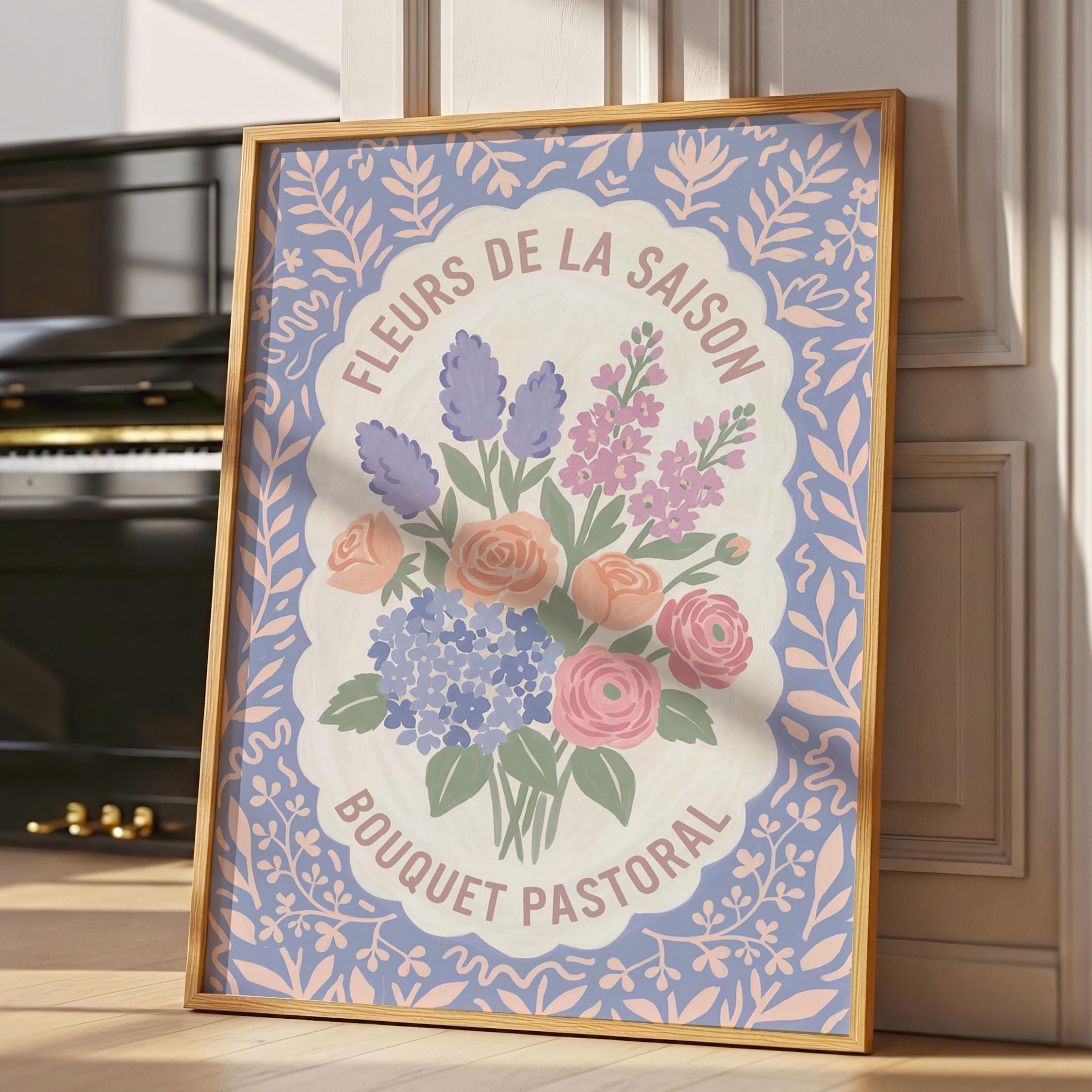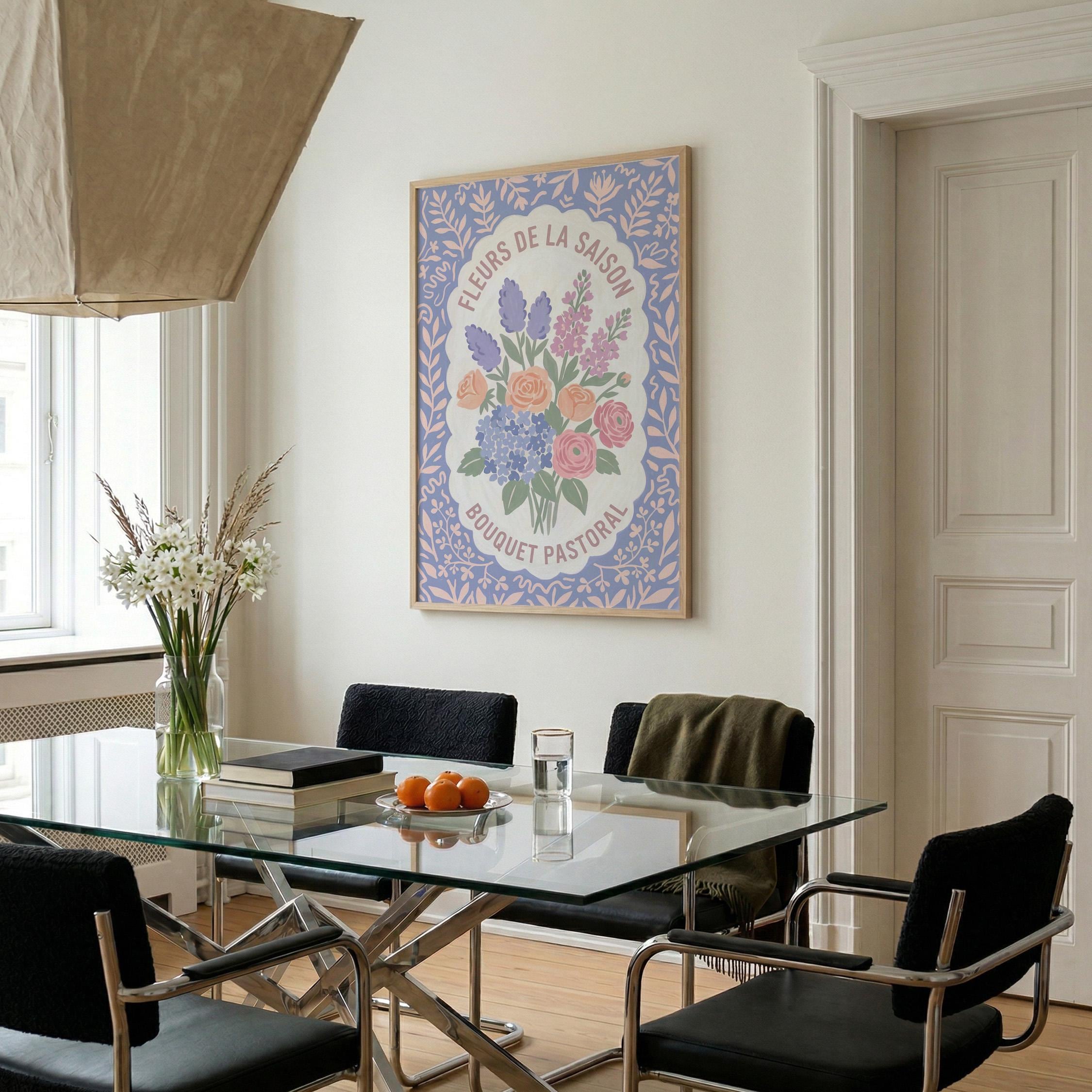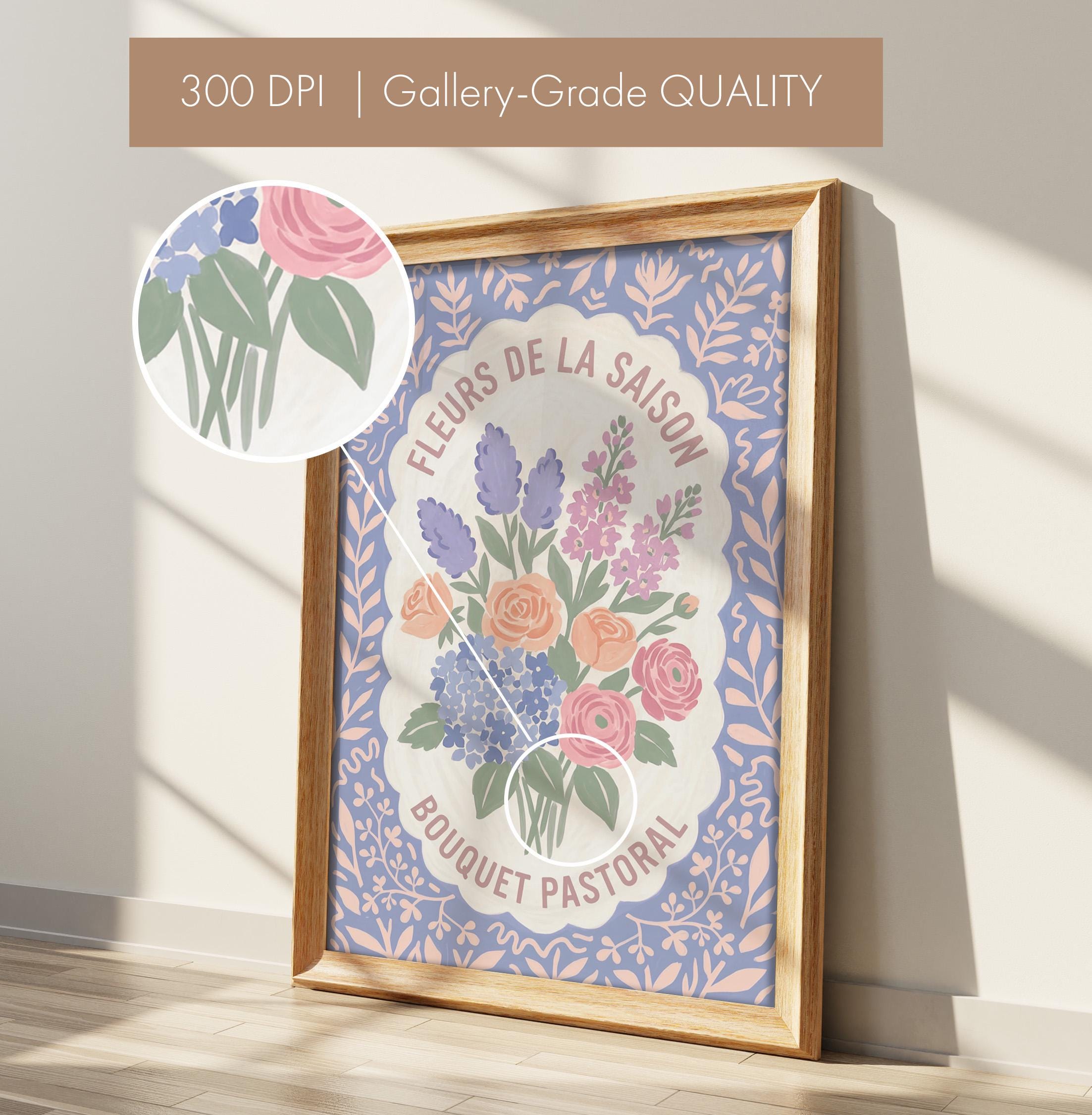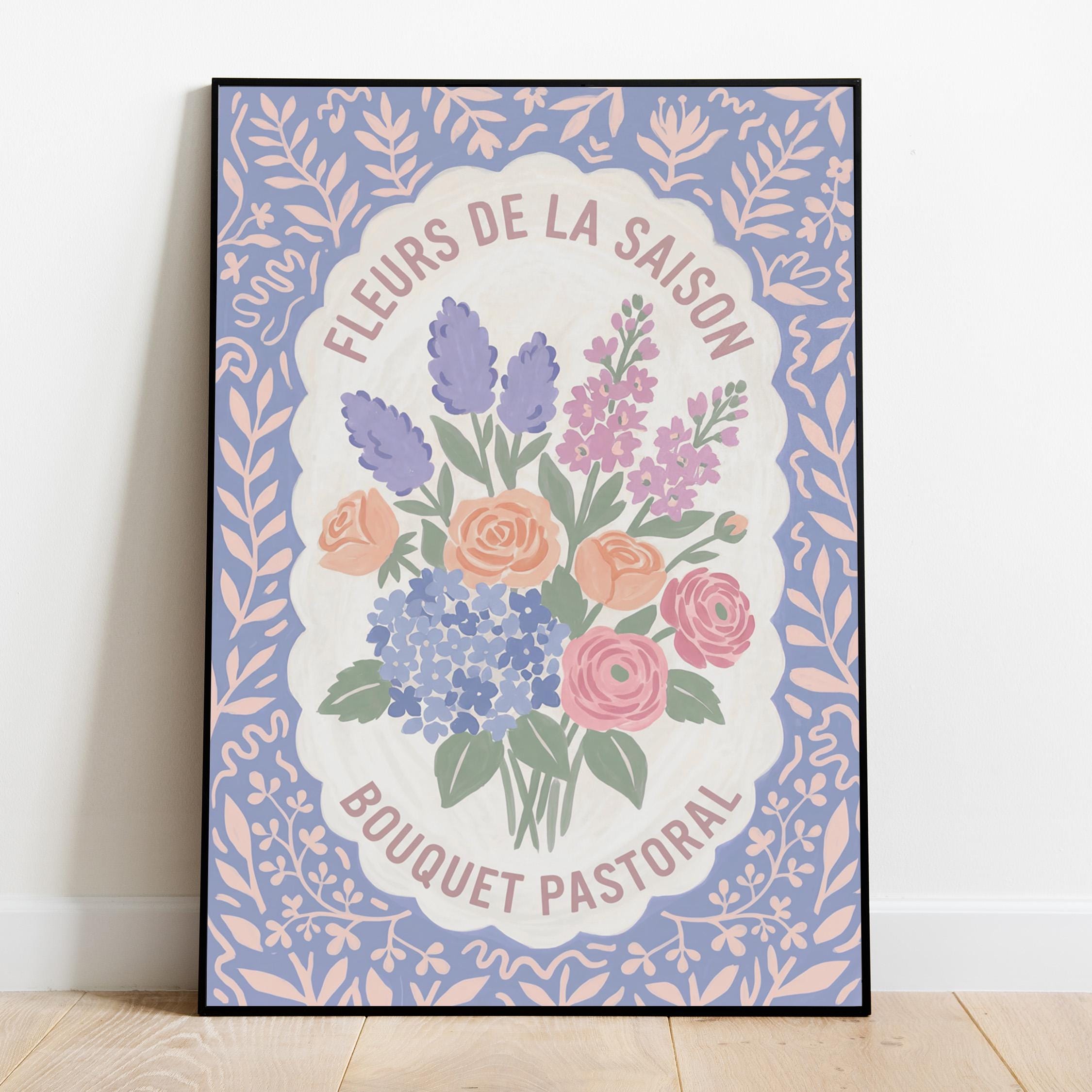 This charming French floral poster brings vintage European garden romance to your walls with lavender, roses, and hydrangeas in soft pastels. Perfect for cottage farmhouse lovers seeking romantic botanical art for the kitchen, bedroom, nursery, or dining room. Creates a serene, vintage-inspired atmosphere with delicate blooms and French text that whispers Provence countryside charm.