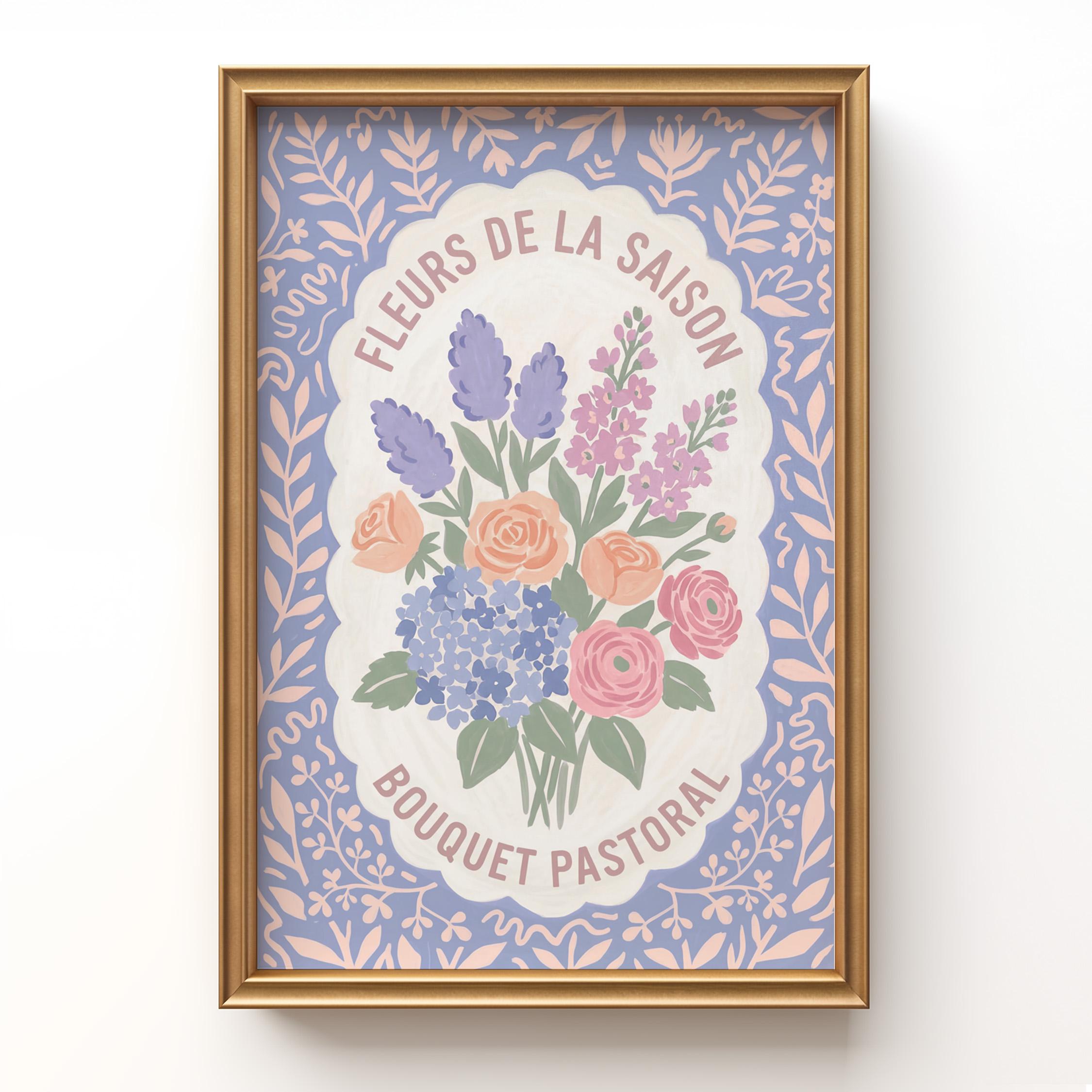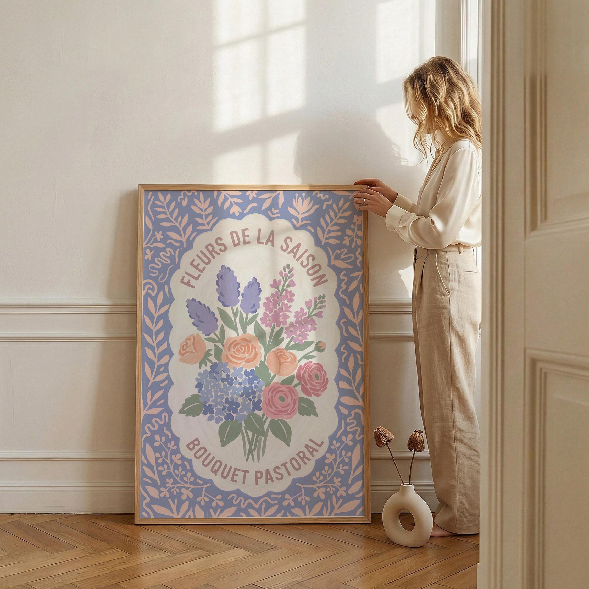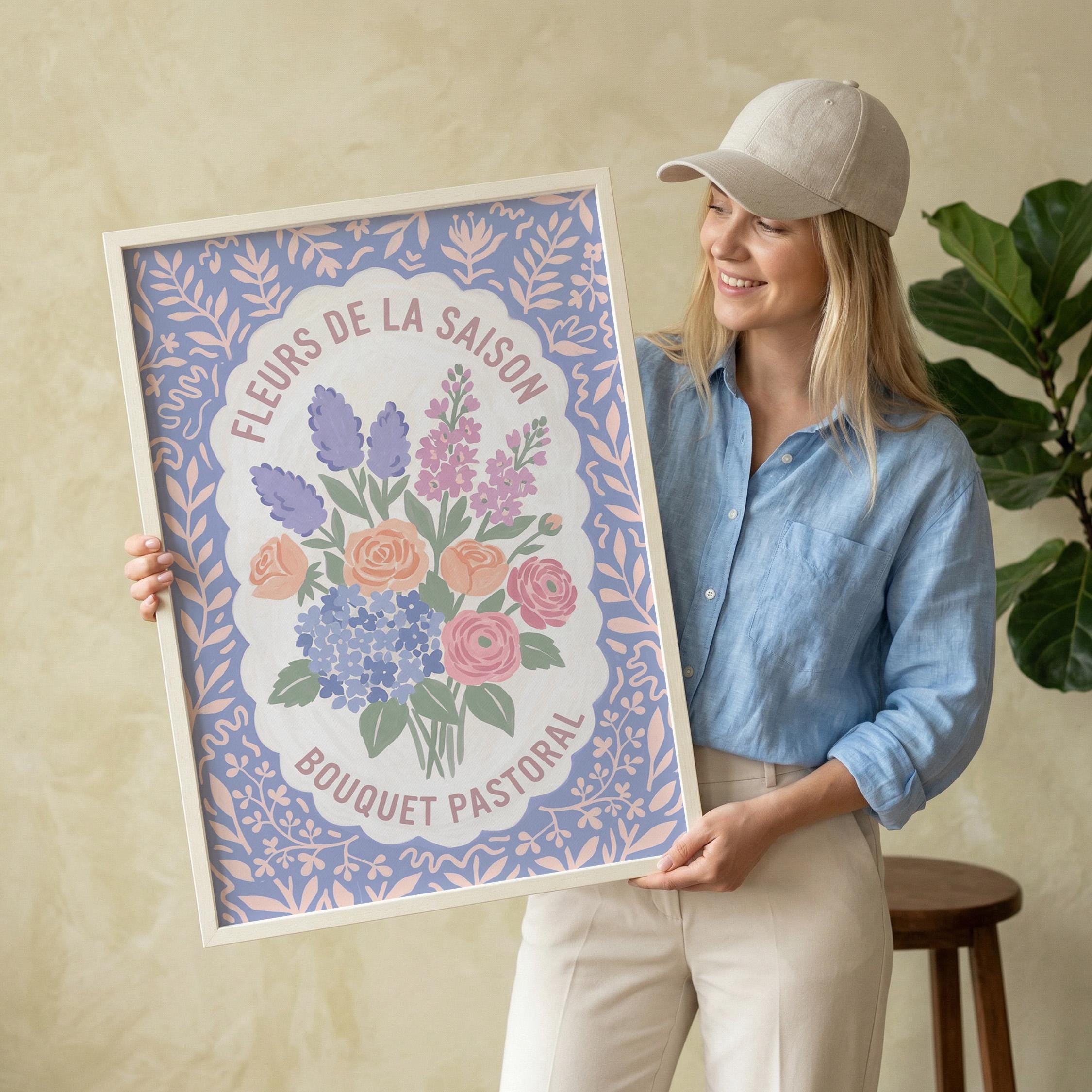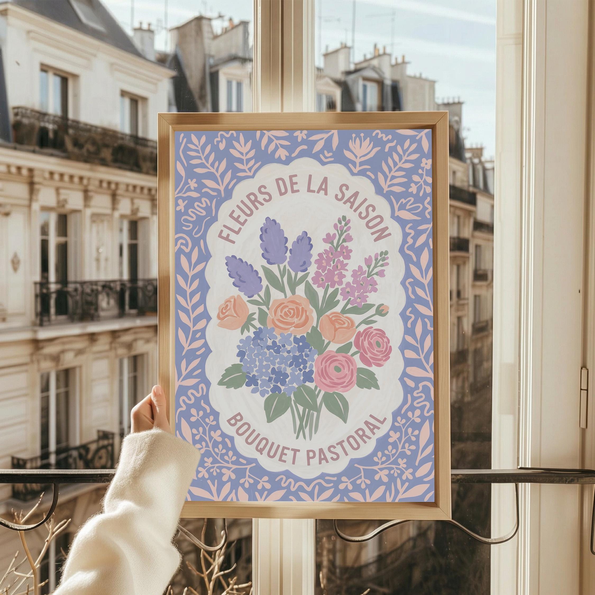 This charming French floral poster brings vintage European garden romance to your walls with lavender, roses, and hydrangeas in soft pastels. Perfect for cottage farmhouse lovers seeking romantic botanical art for the kitchen, bedroom, nursery, or dining room. Creates a serene, vintage-inspired atmosphere with delicate blooms and French text that whispers Provence countryside charm.