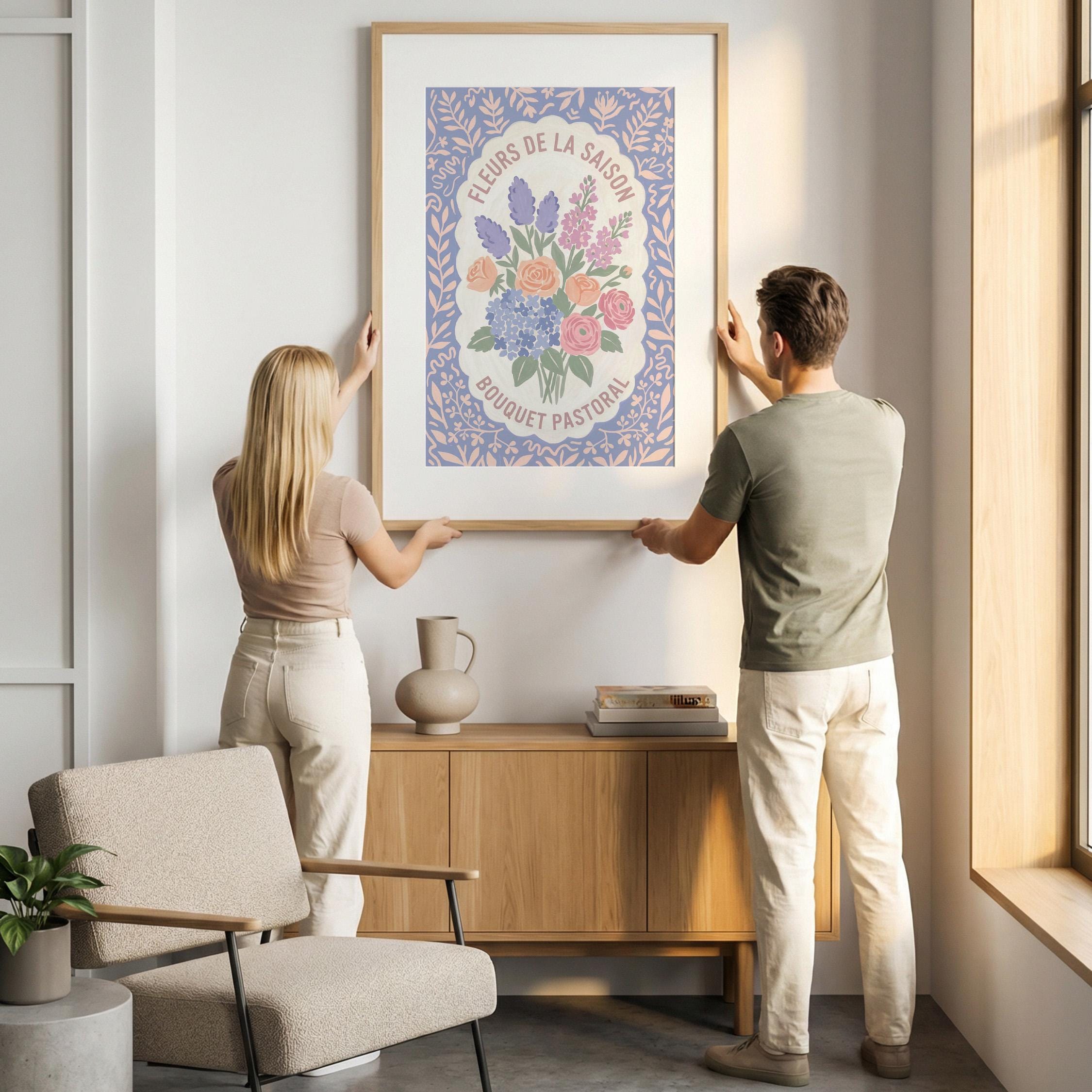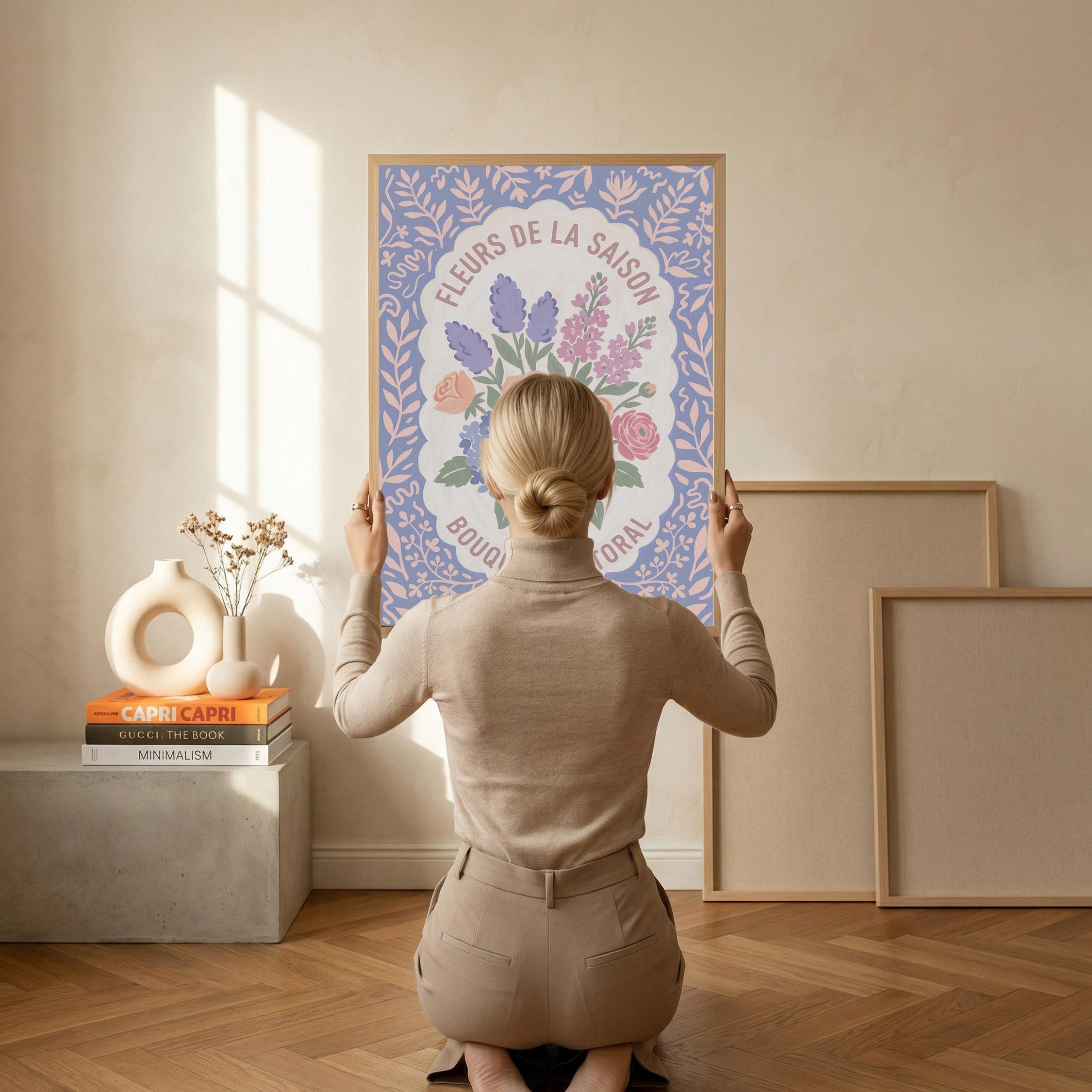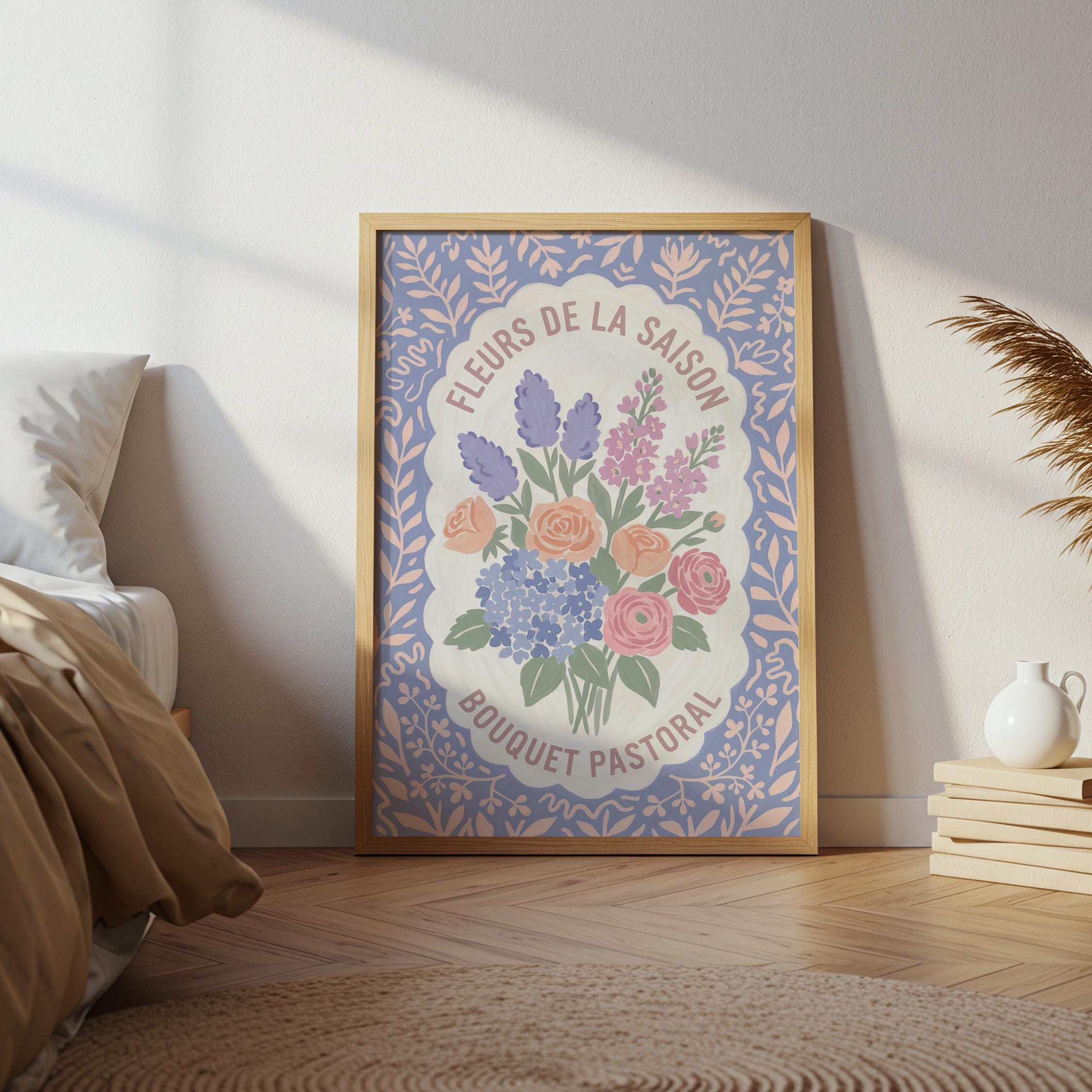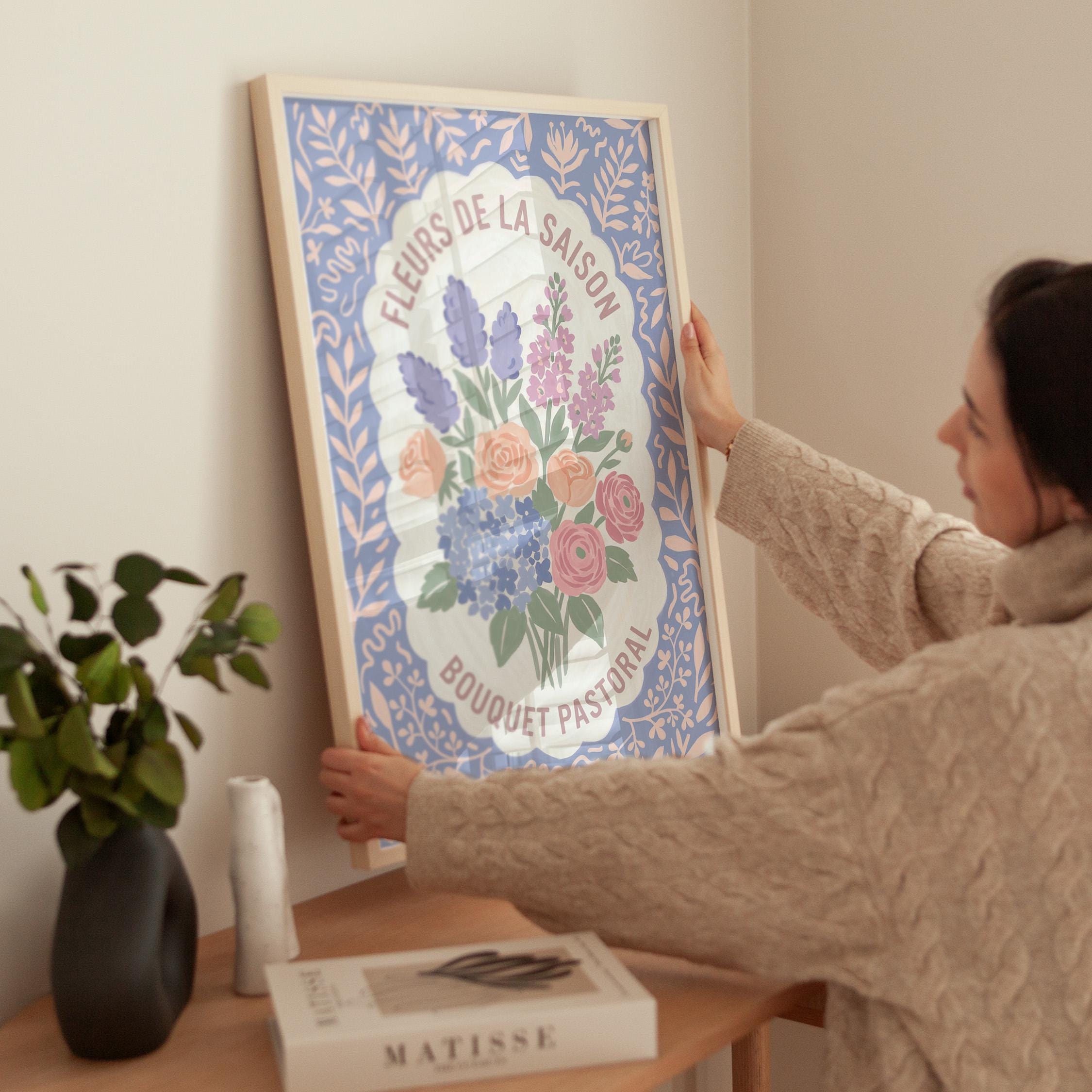 This charming French floral poster brings vintage European garden romance to your walls with lavender, roses, and hydrangeas in soft pastels. Perfect for cottage farmhouse lovers seeking romantic botanical art for the kitchen, bedroom, nursery, or dining room. Creates a serene, vintage-inspired atmosphere with delicate blooms and French text that whispers Provence countryside charm.