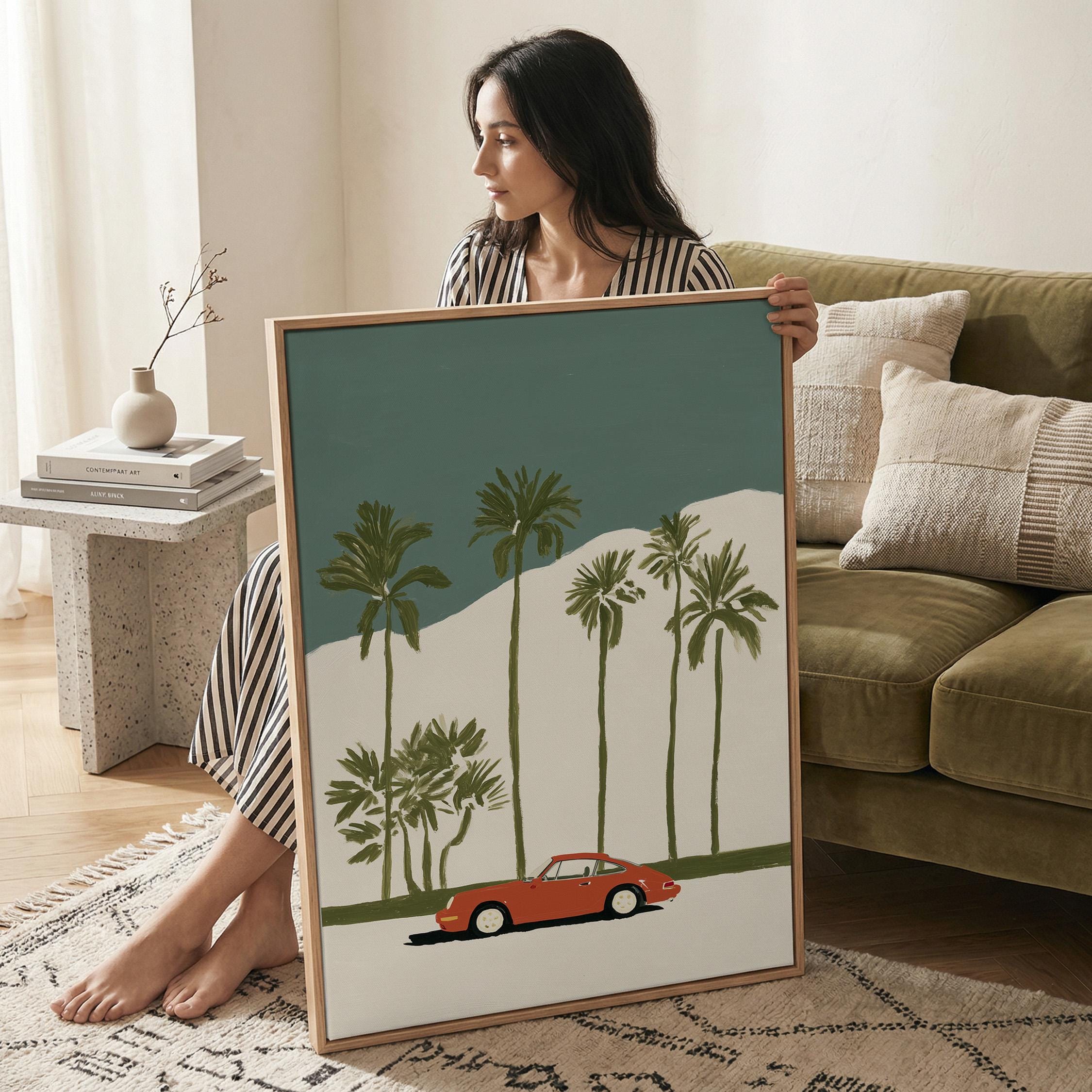 Perfect for car enthusiasts, coastal lovers, or anyone seeking mid century modern vibes in their living room, office, garage, or bedroom.
