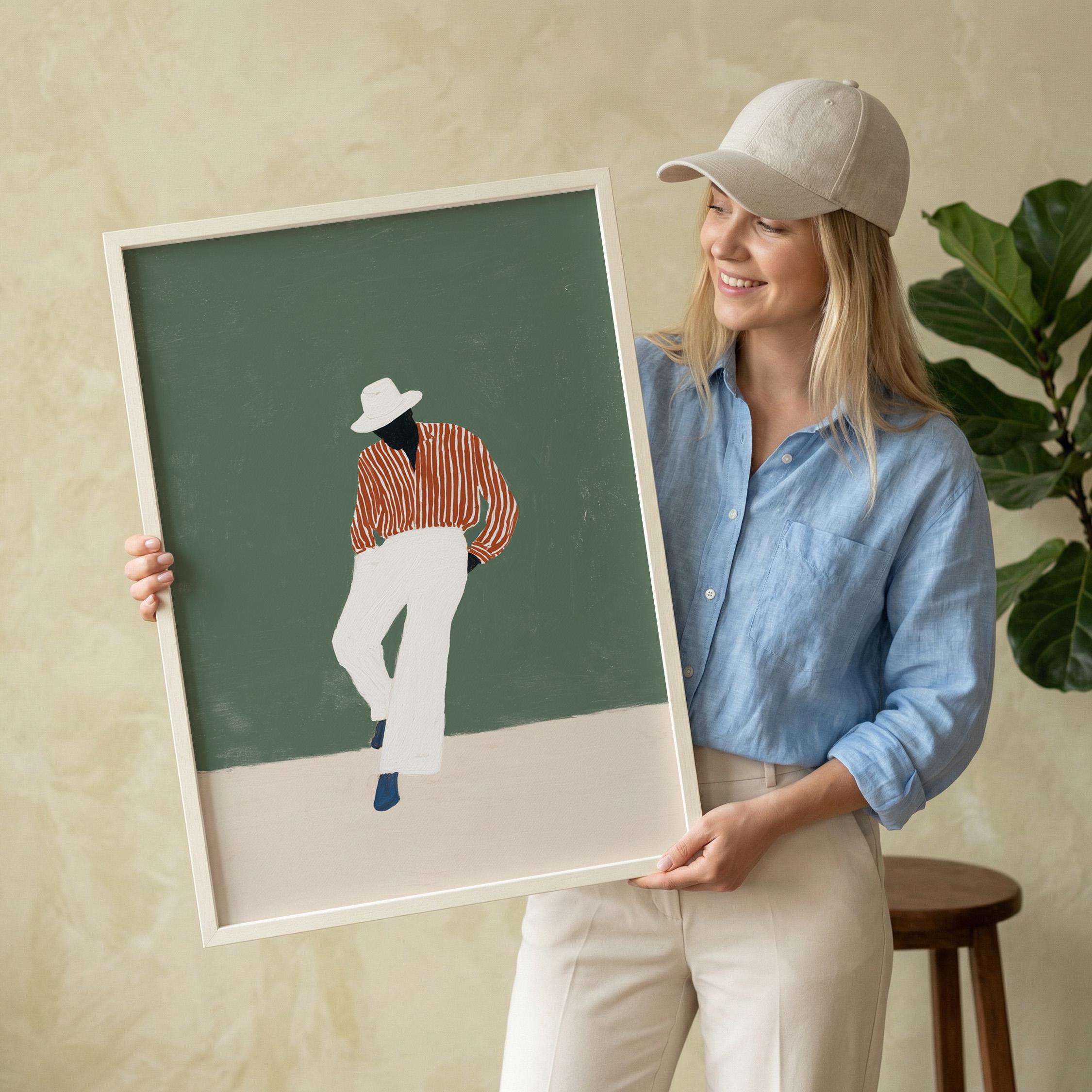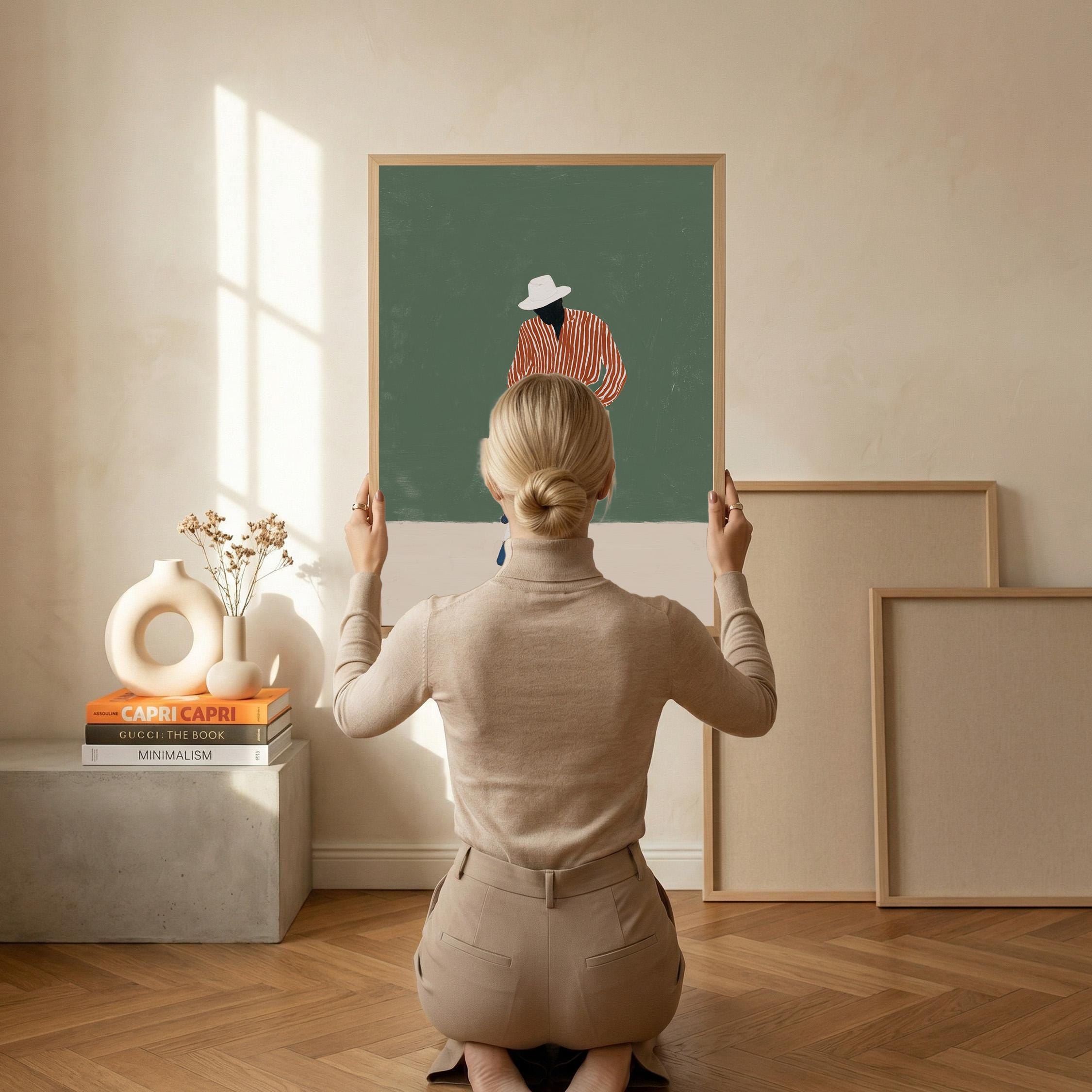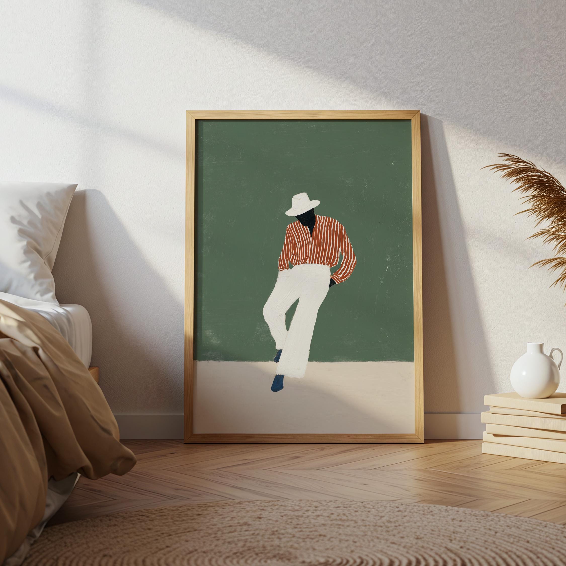 Black man printable wall art gives your space a clean, stylish look. It works well in bedrooms, offices, or afrobohemian home decor. It adds personality and a calm fashion feel to the room.