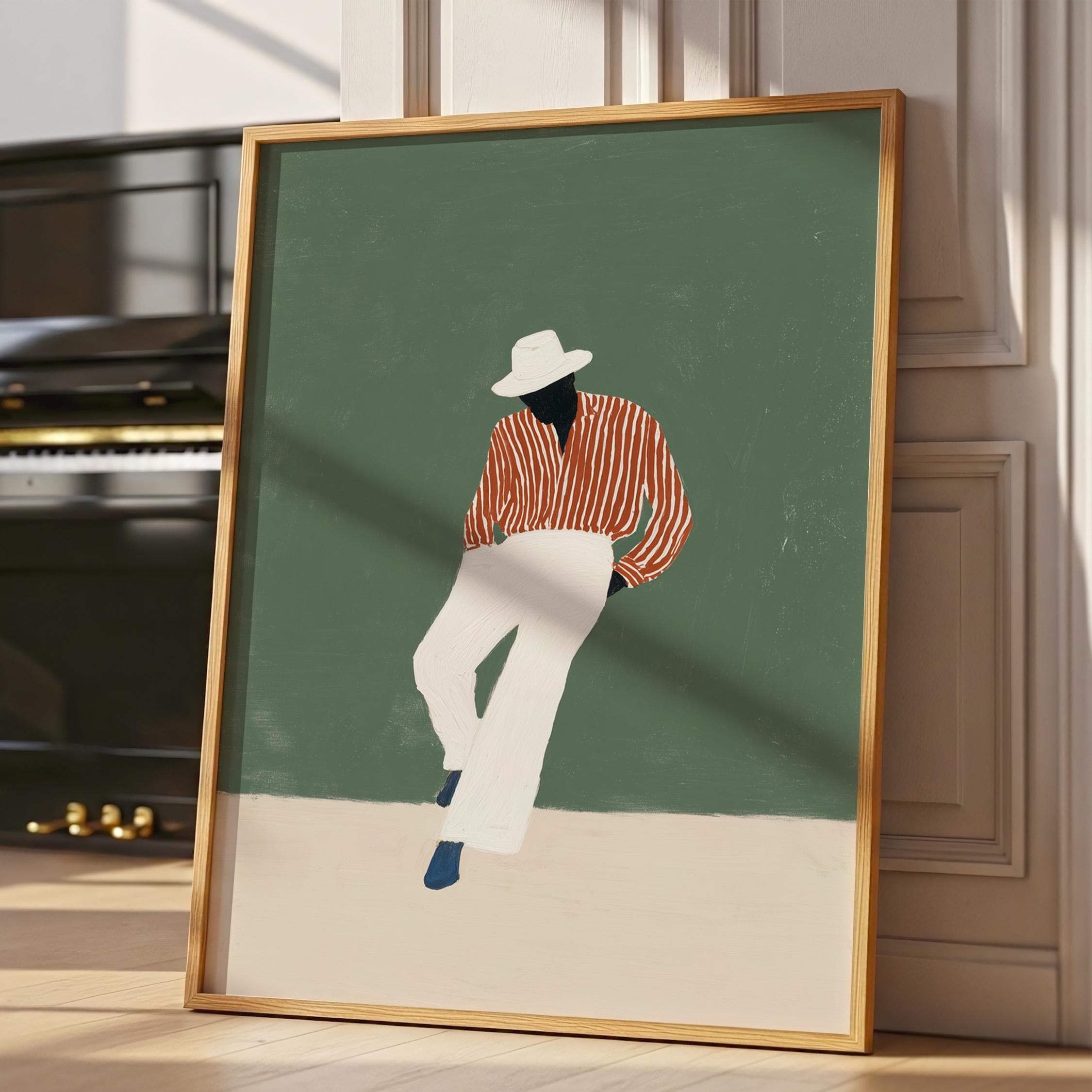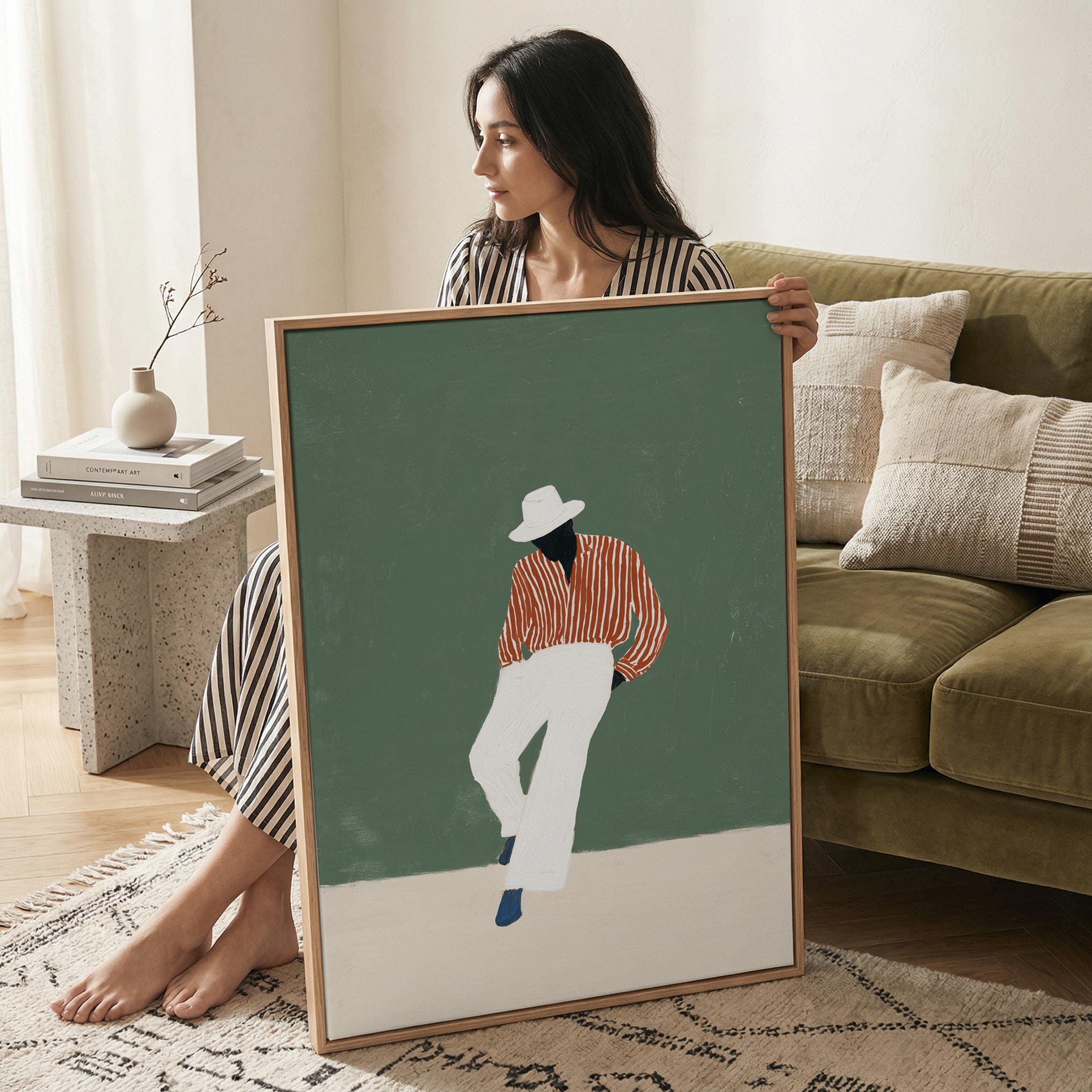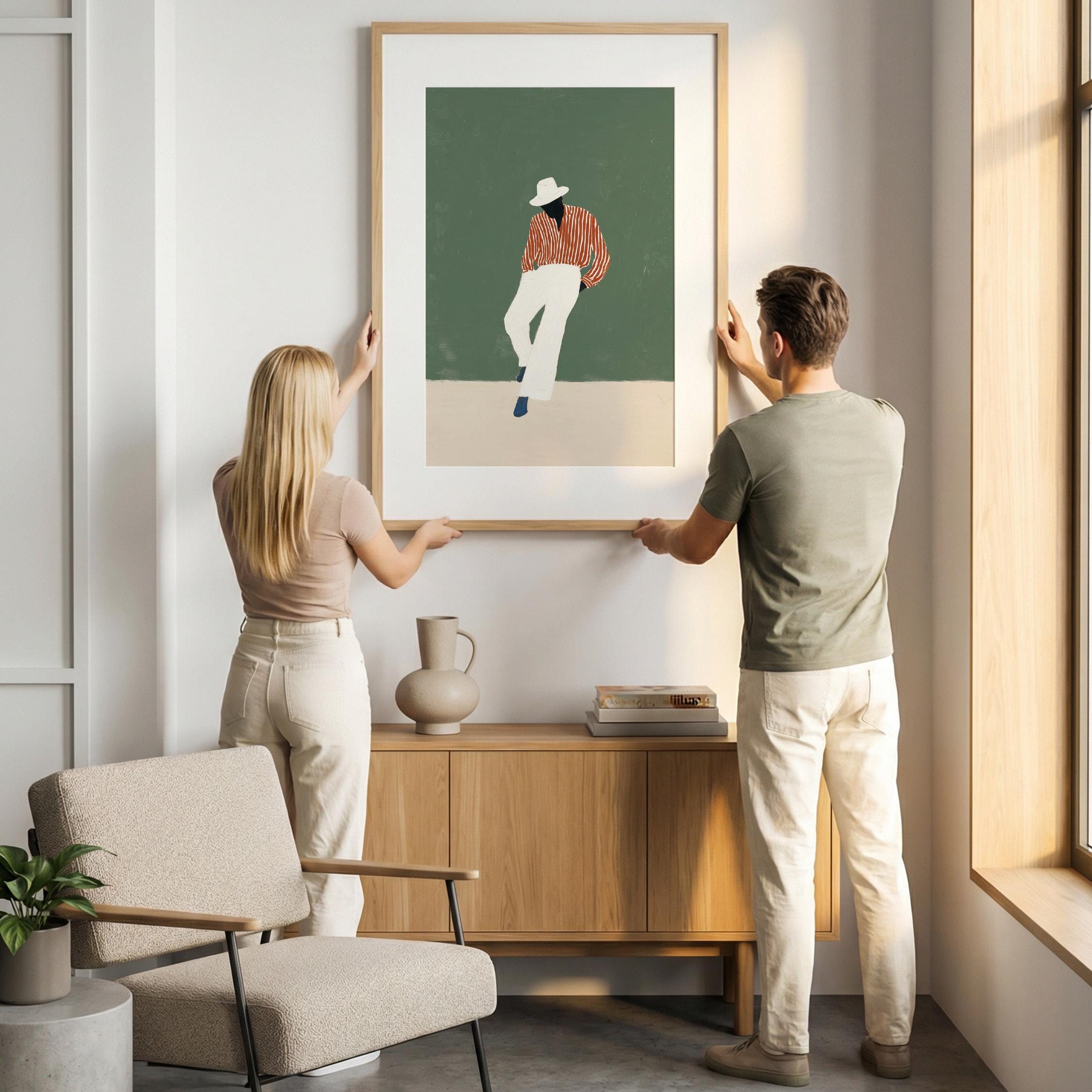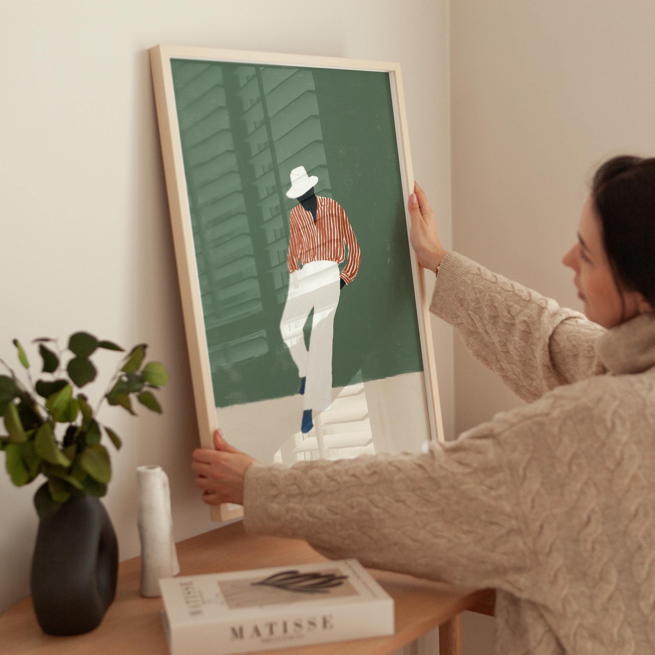 Black man printable wall art gives your space a clean, stylish look. It works well in bedrooms, offices, or afrobohemian home decor. It adds personality and a calm fashion feel to the room.