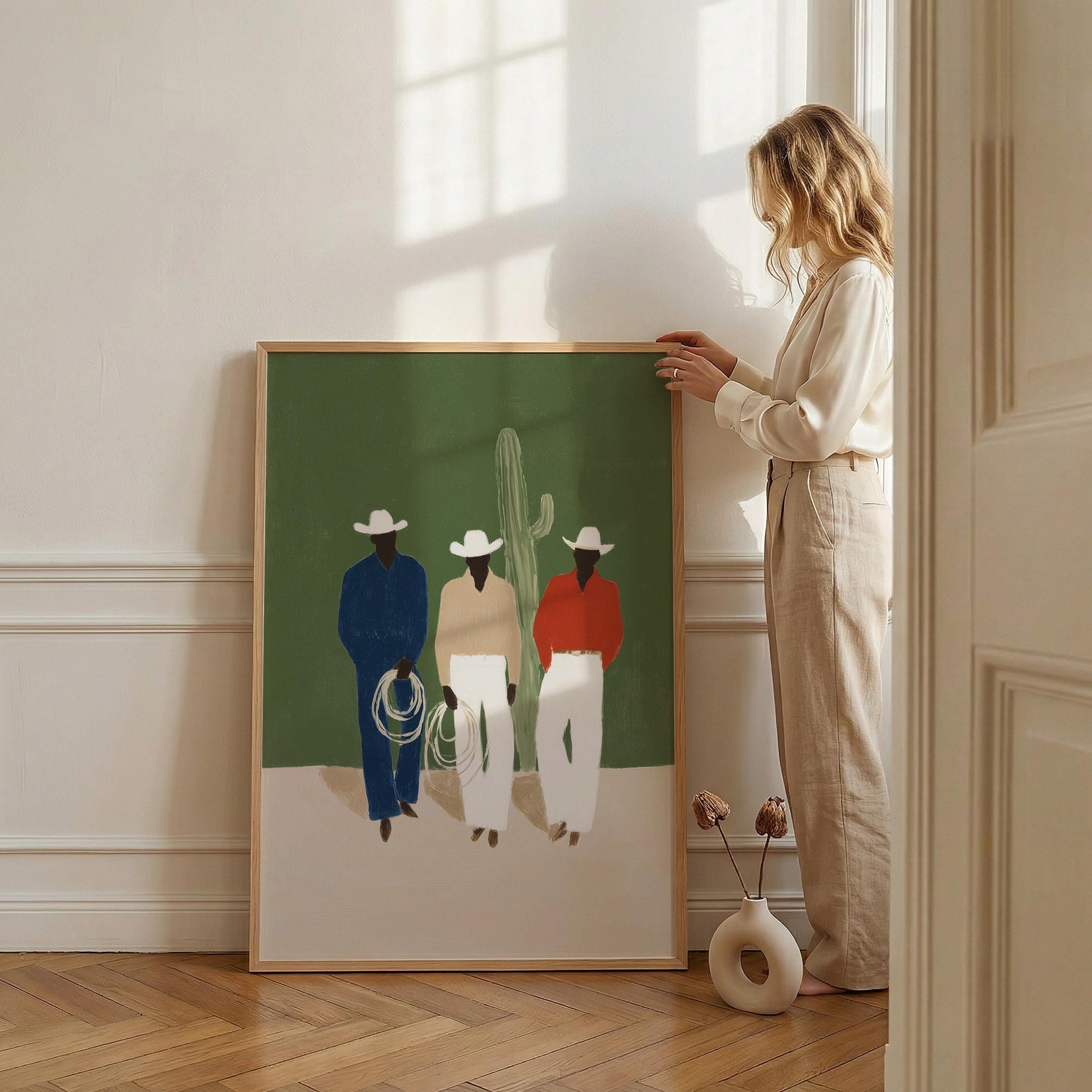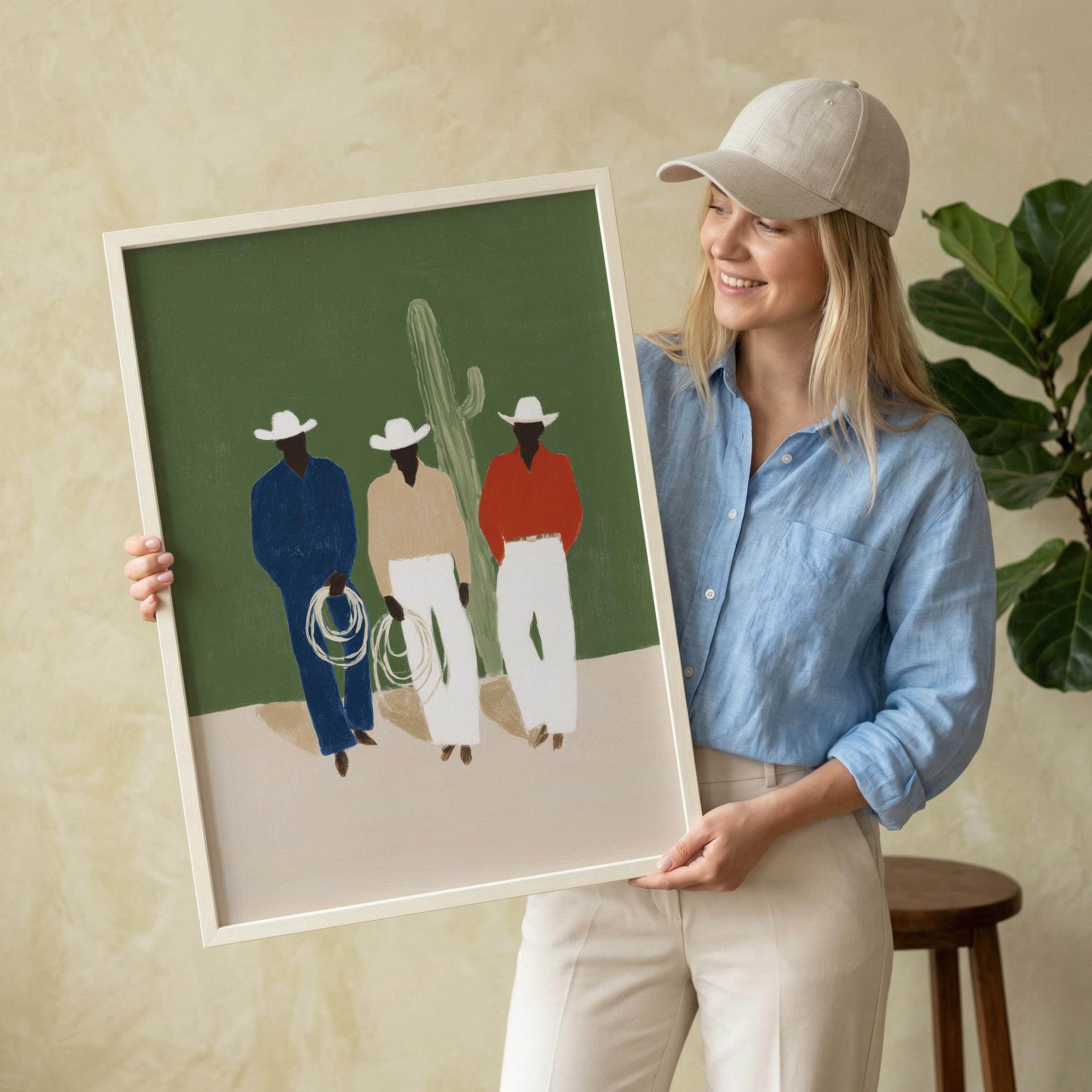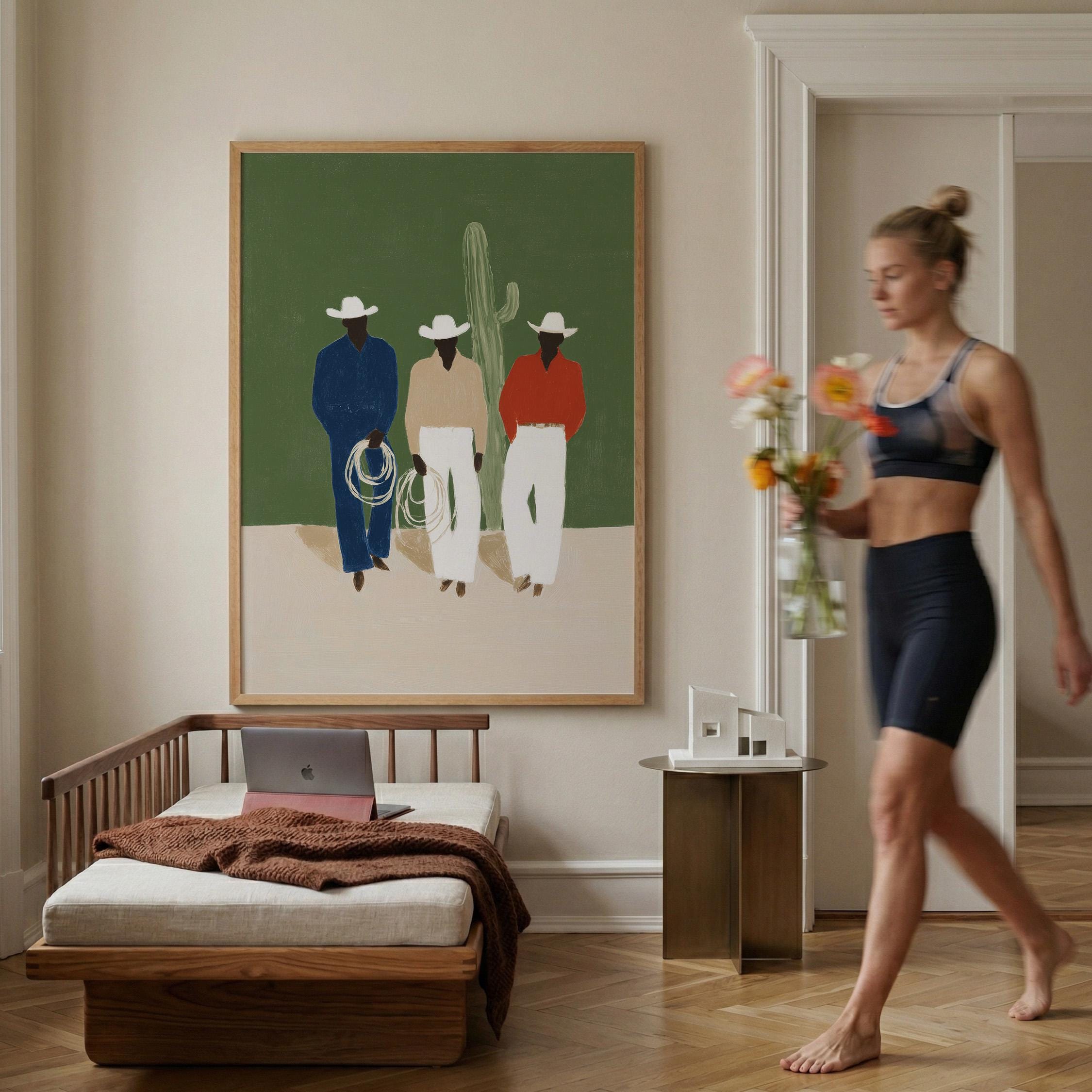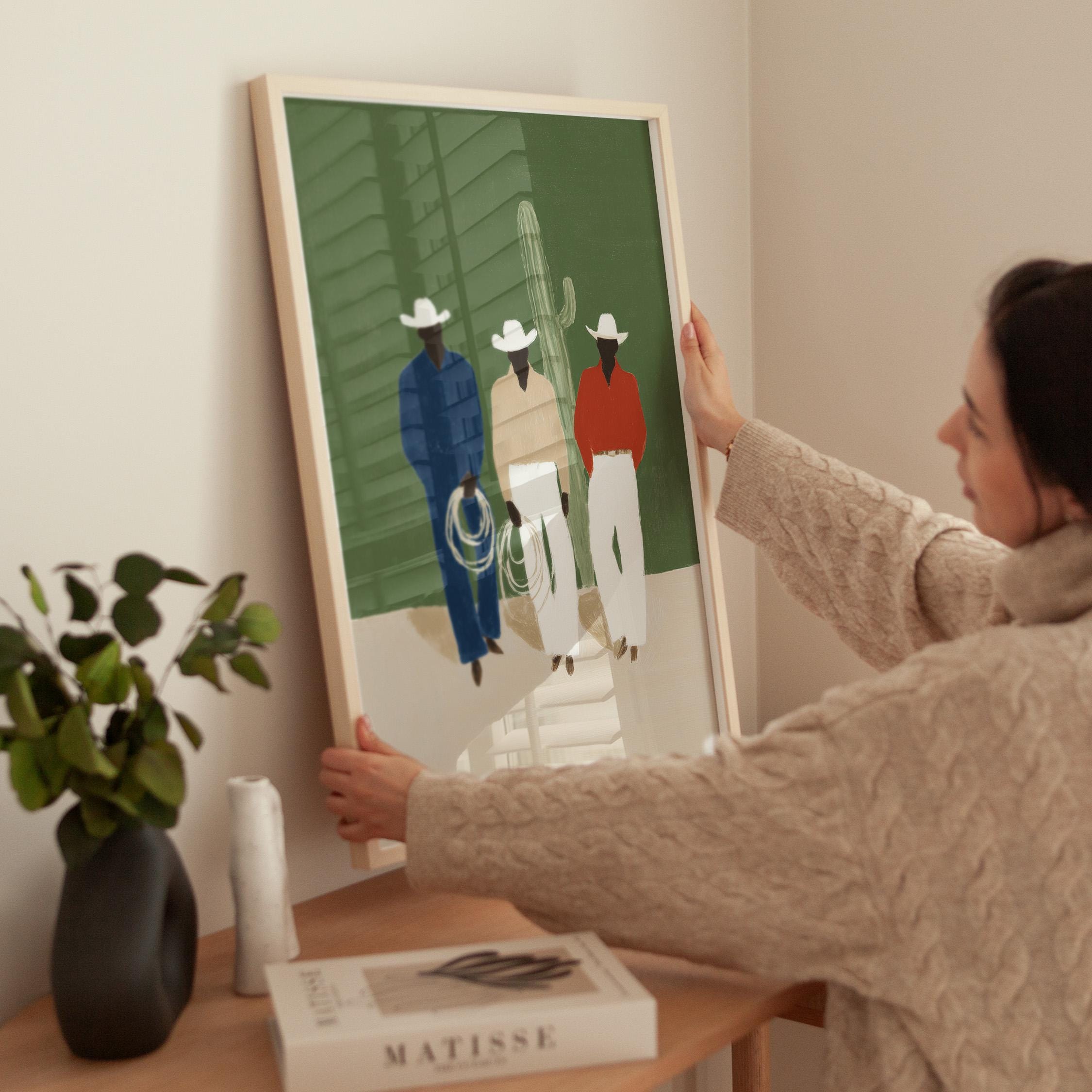 Western cowboy print gives your space a warm afrocentric look. It works well in living rooms, offices, or afrobohemian home decor. It adds character and a relaxed desert feel to the room.
