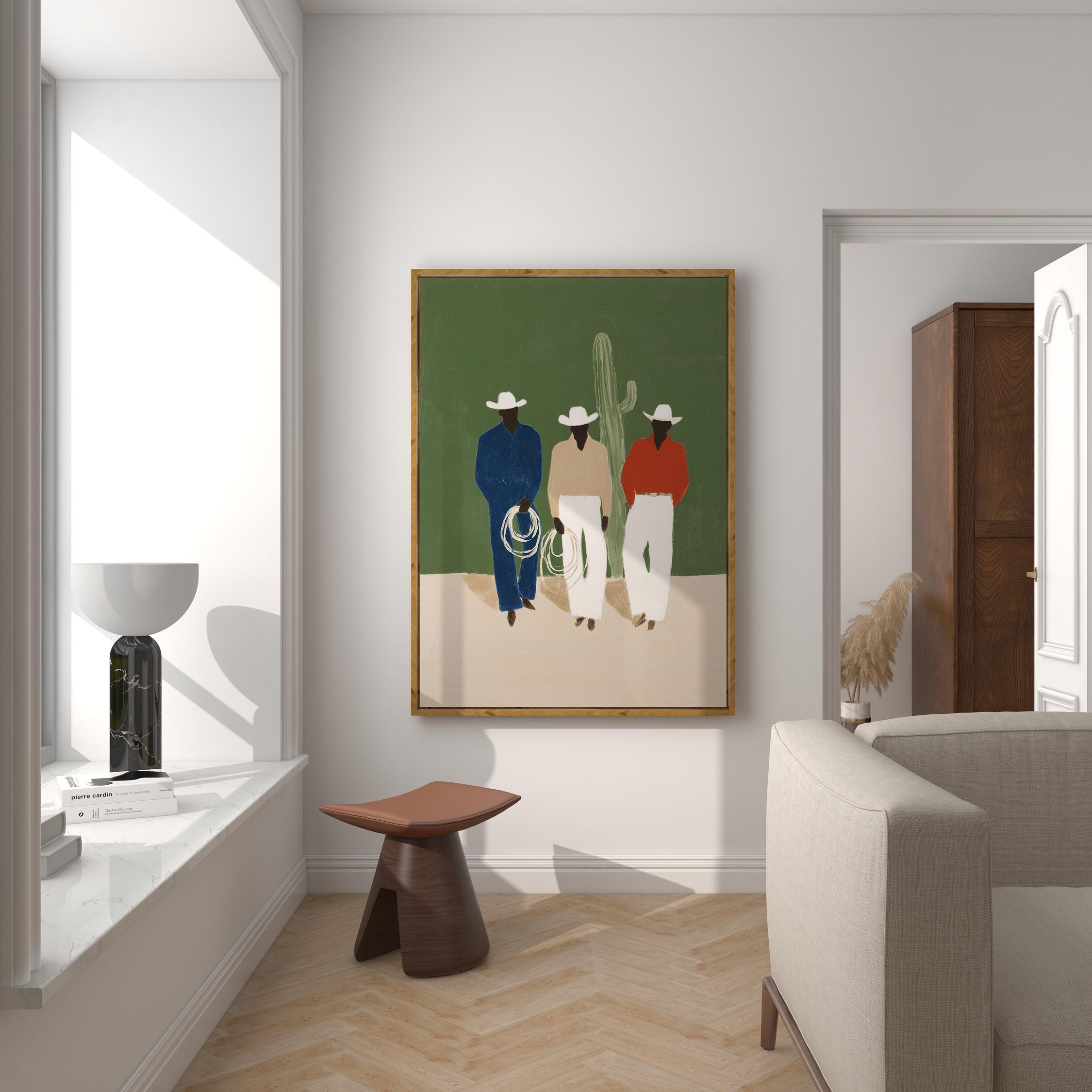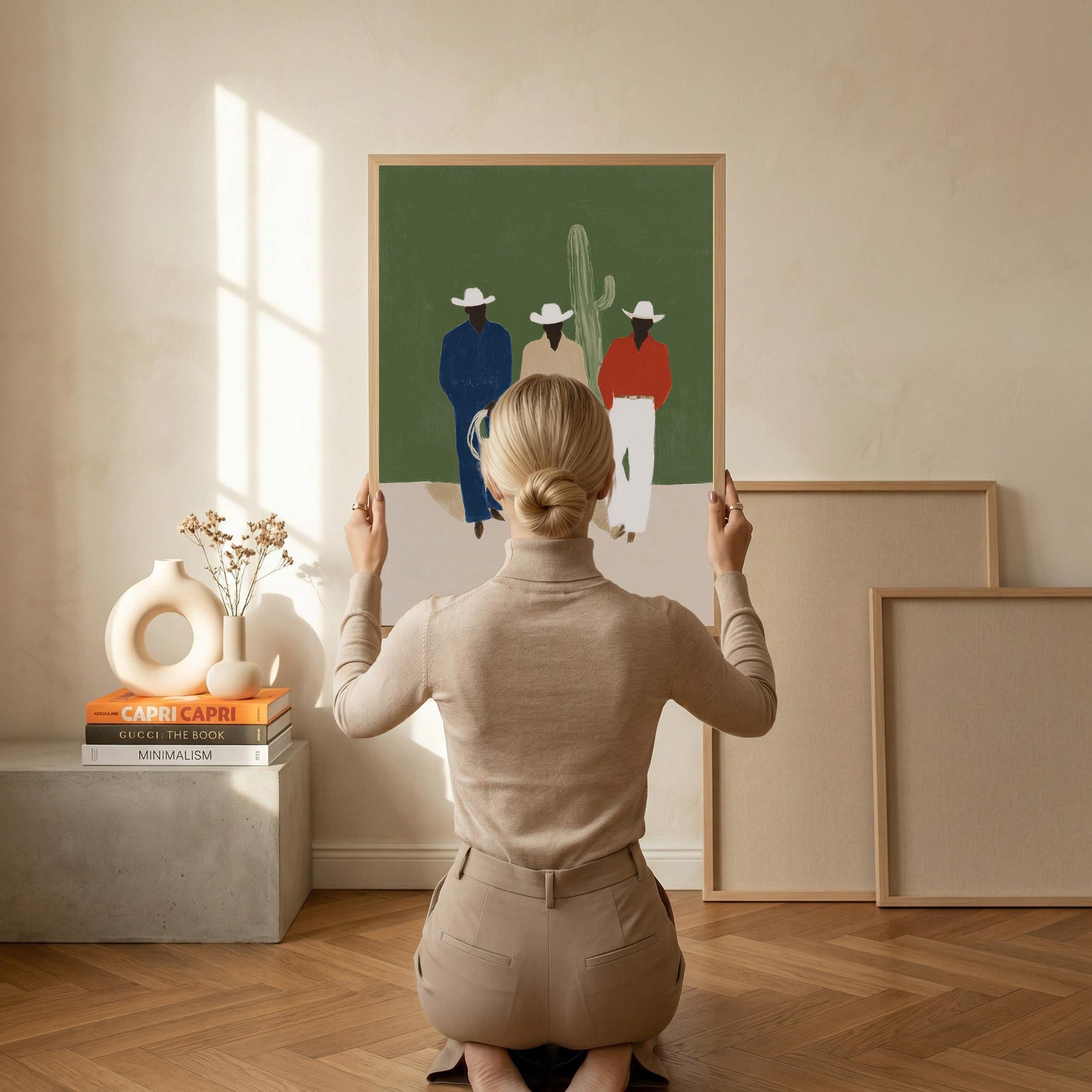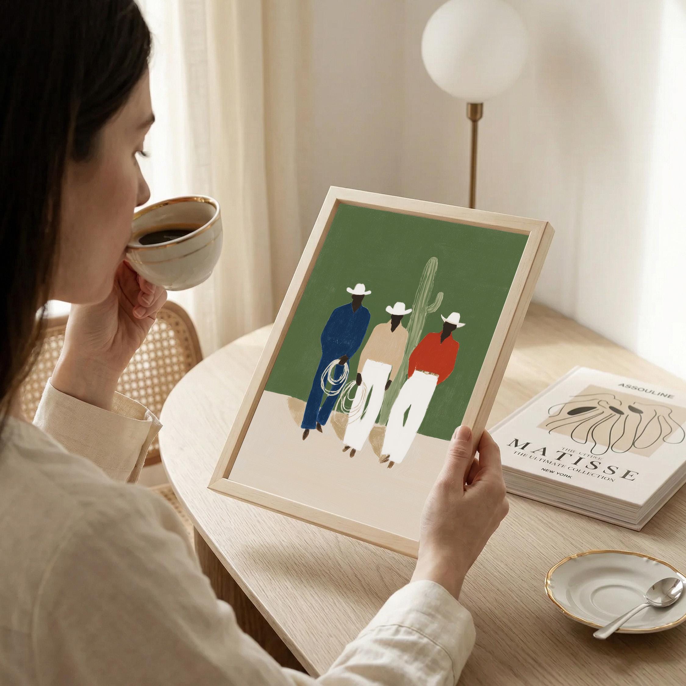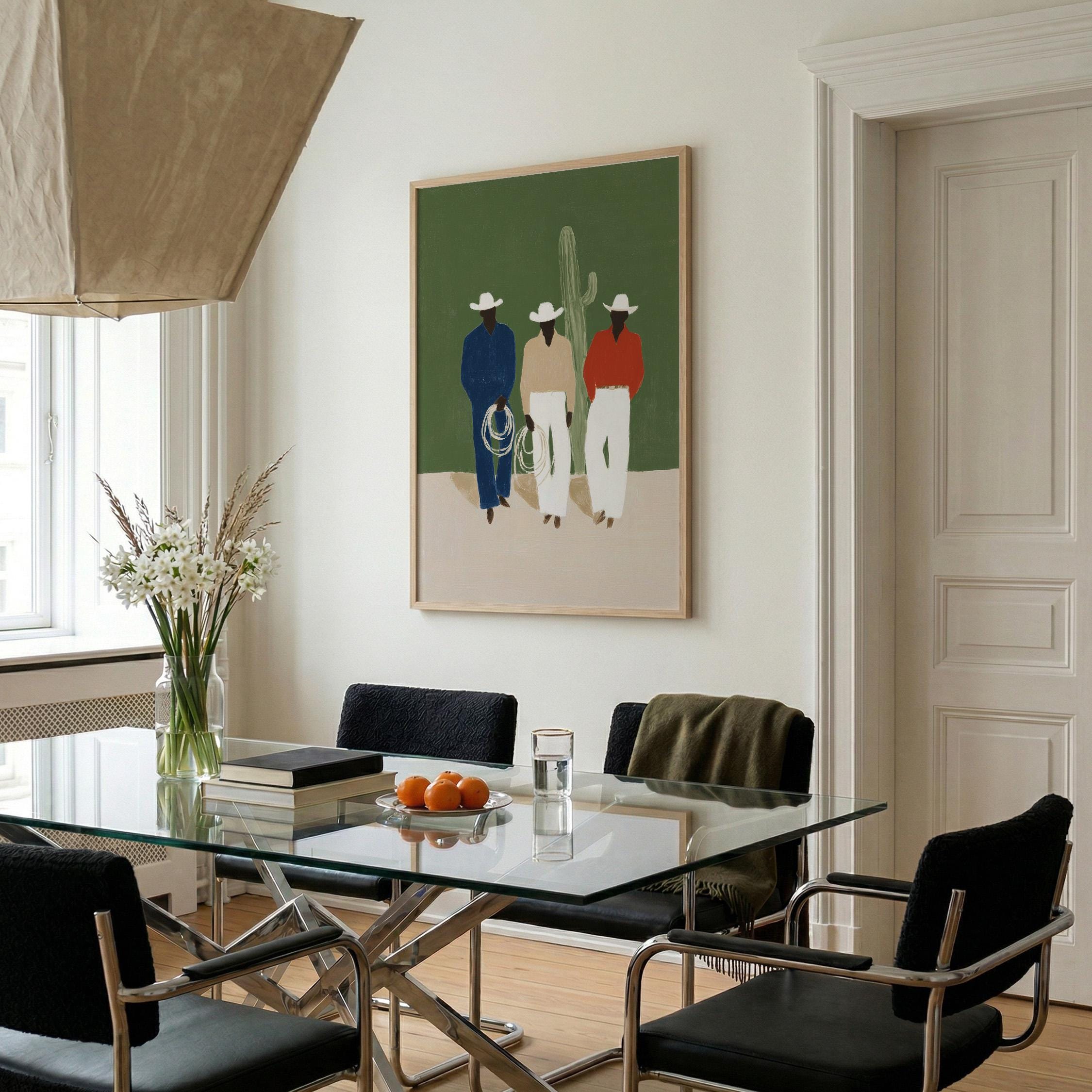 Western cowboy print gives your space a warm afrocentric look. It works well in living rooms, offices, or afrobohemian home decor. It adds character and a relaxed desert feel to the room.