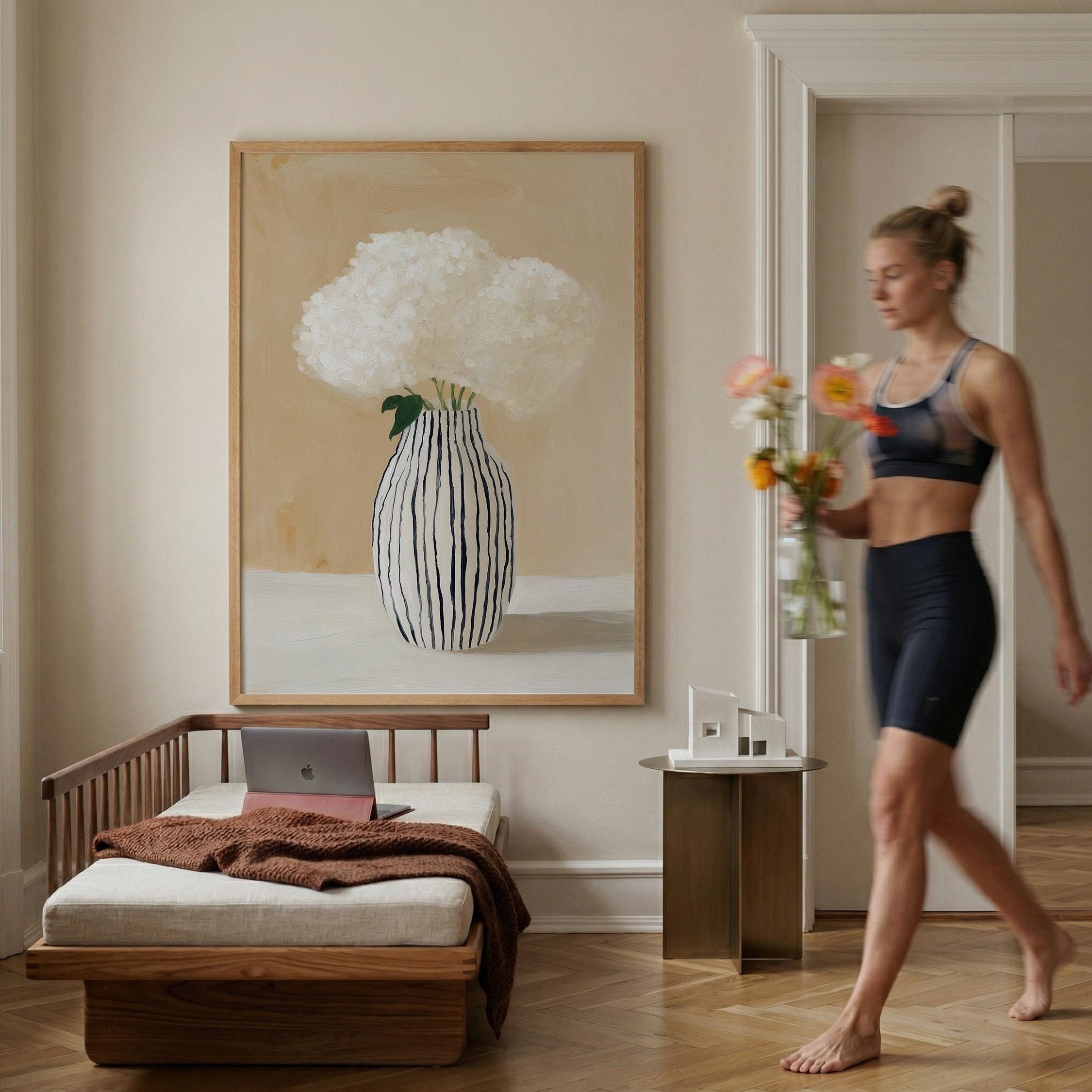 Hydrangea printable wall art gives your space a soft floral look. It works beautifully in bedrooms, kitchens, or cozy cottage style homes. It adds warmth and a simple finished feel to the room.
