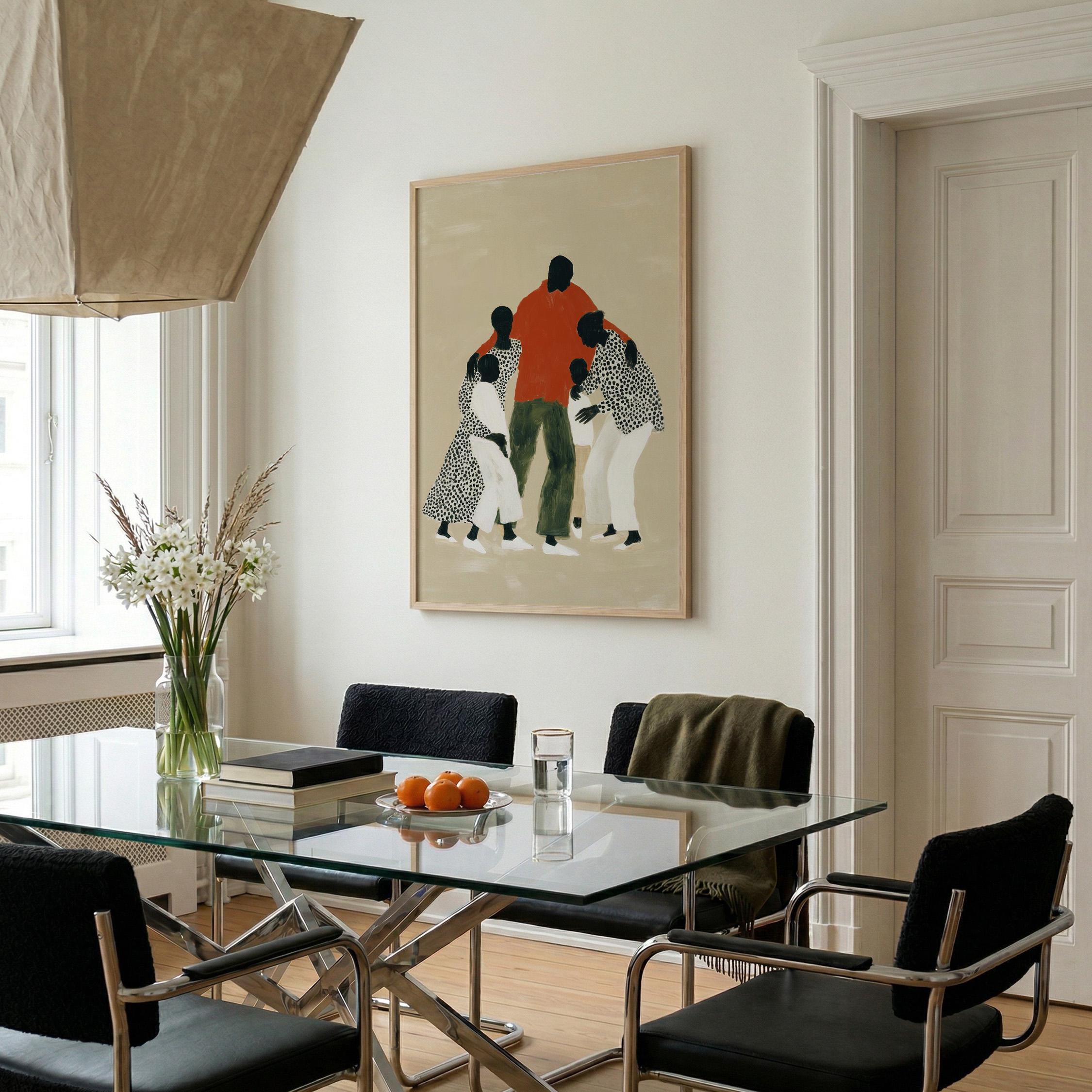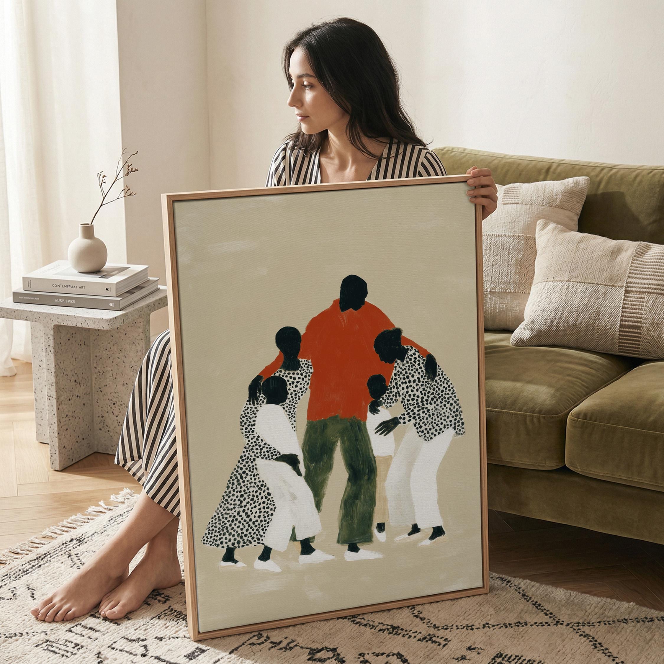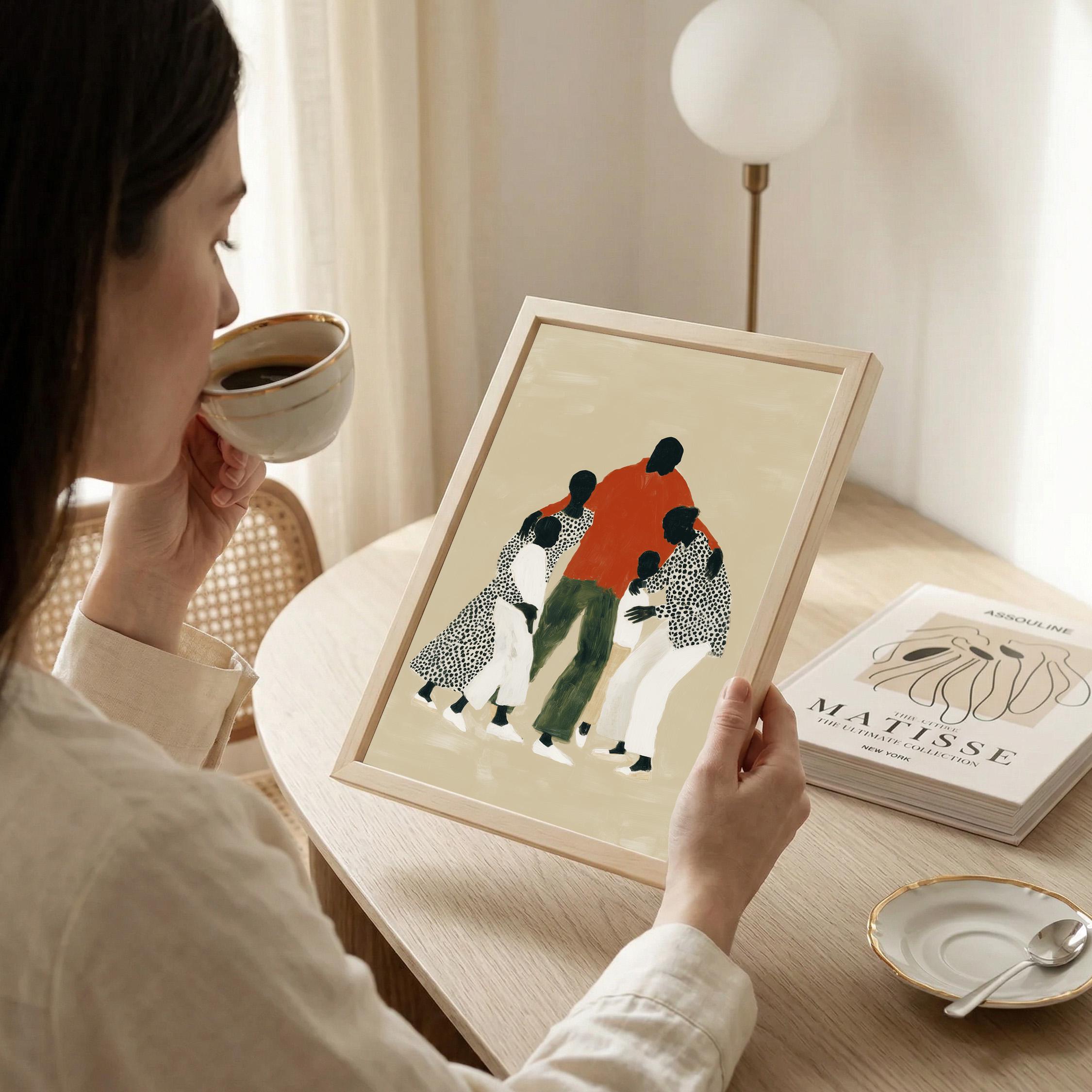 Black woman coffee wall art print with a simple figure and relaxed daily feel. Works well in a kitchen, dining area, or coffee corner at home. It gives the space a warm and easy look.