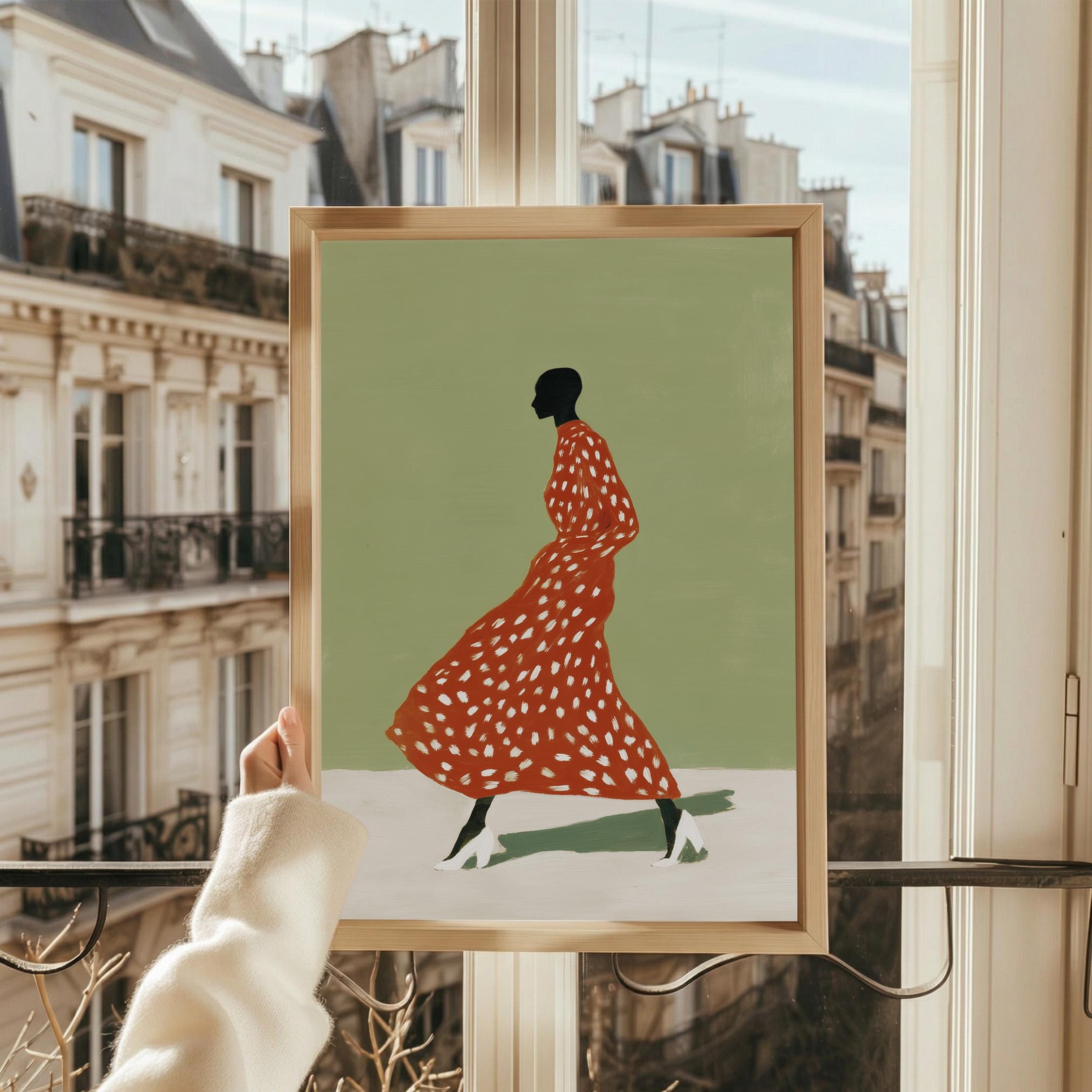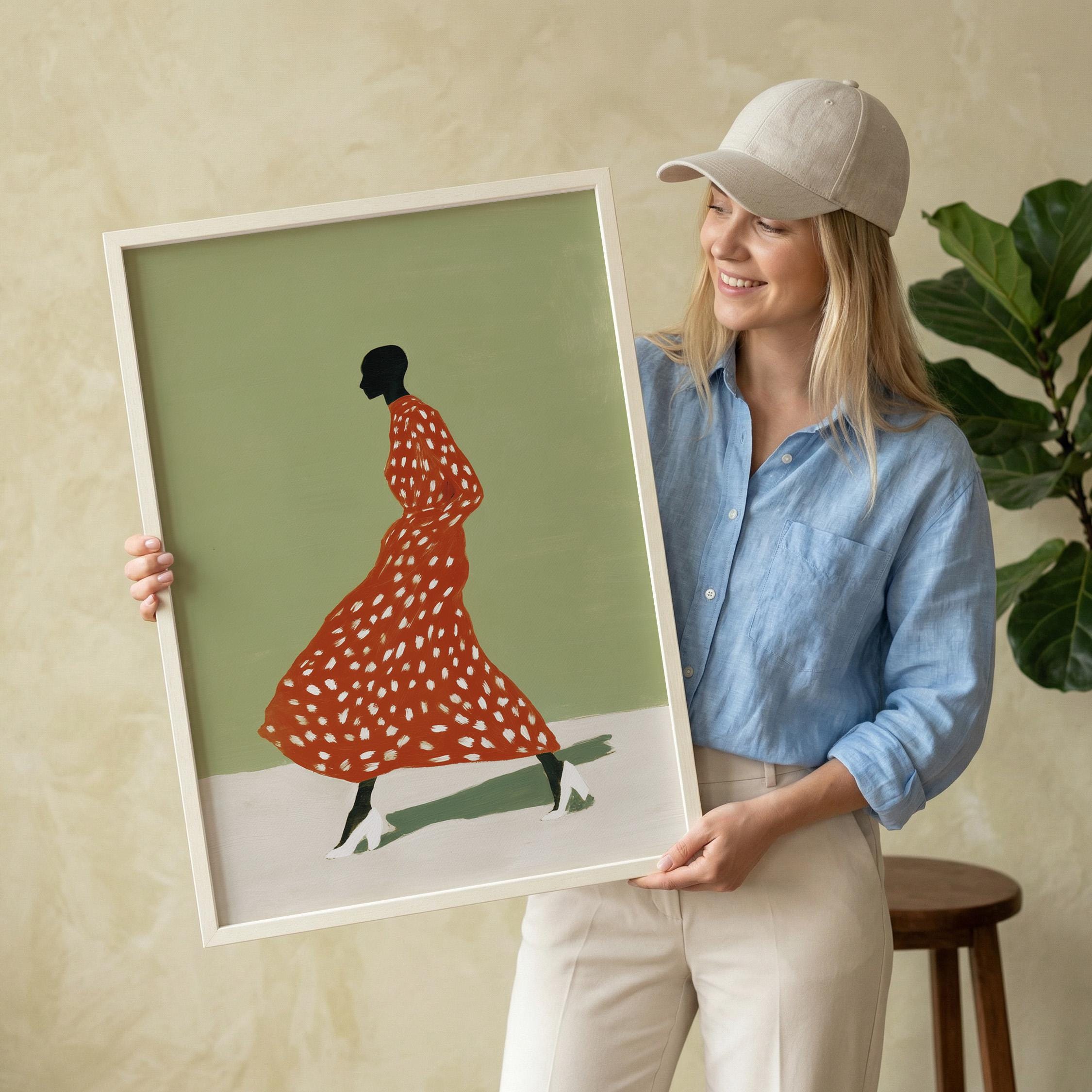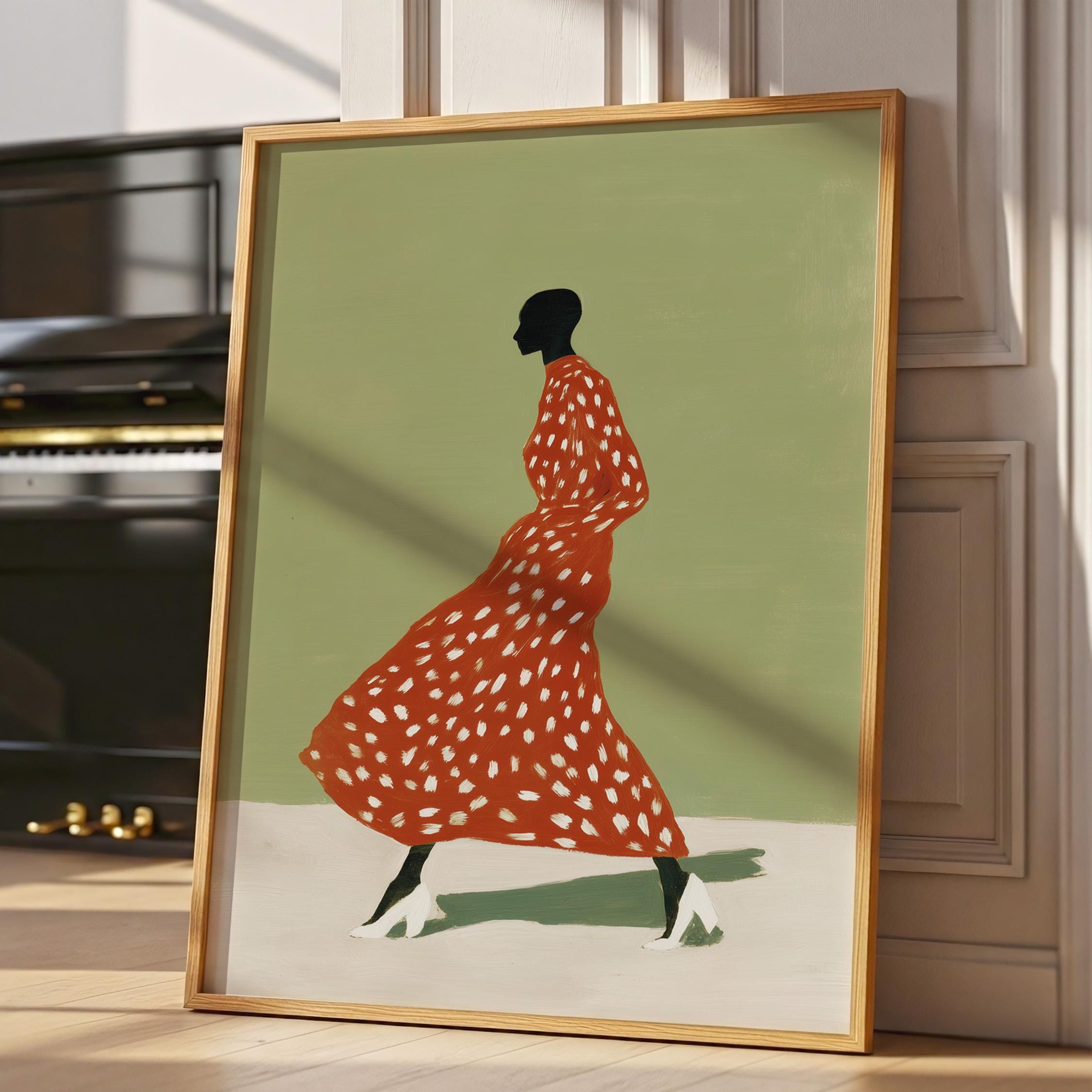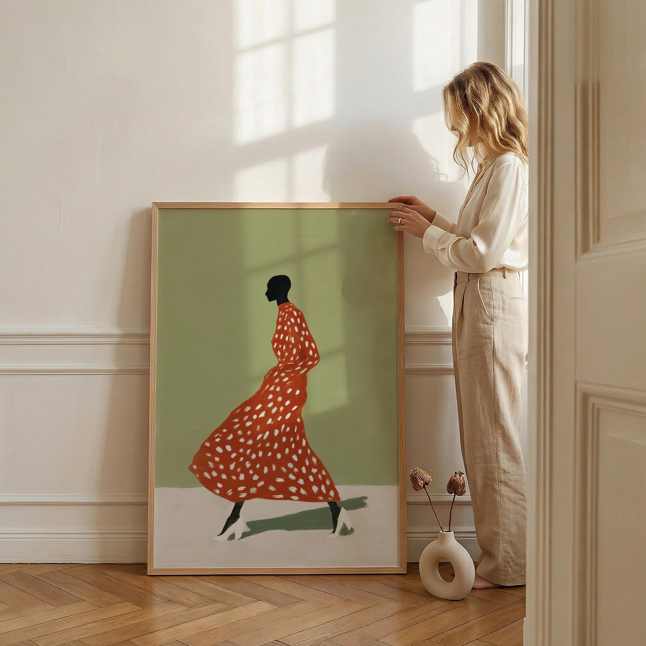 Black woman wall art print with a simple figure and fashion feel. Works well in a bedroom, dressing area, or as a gift for her. It gives the space a calm and stylish look.