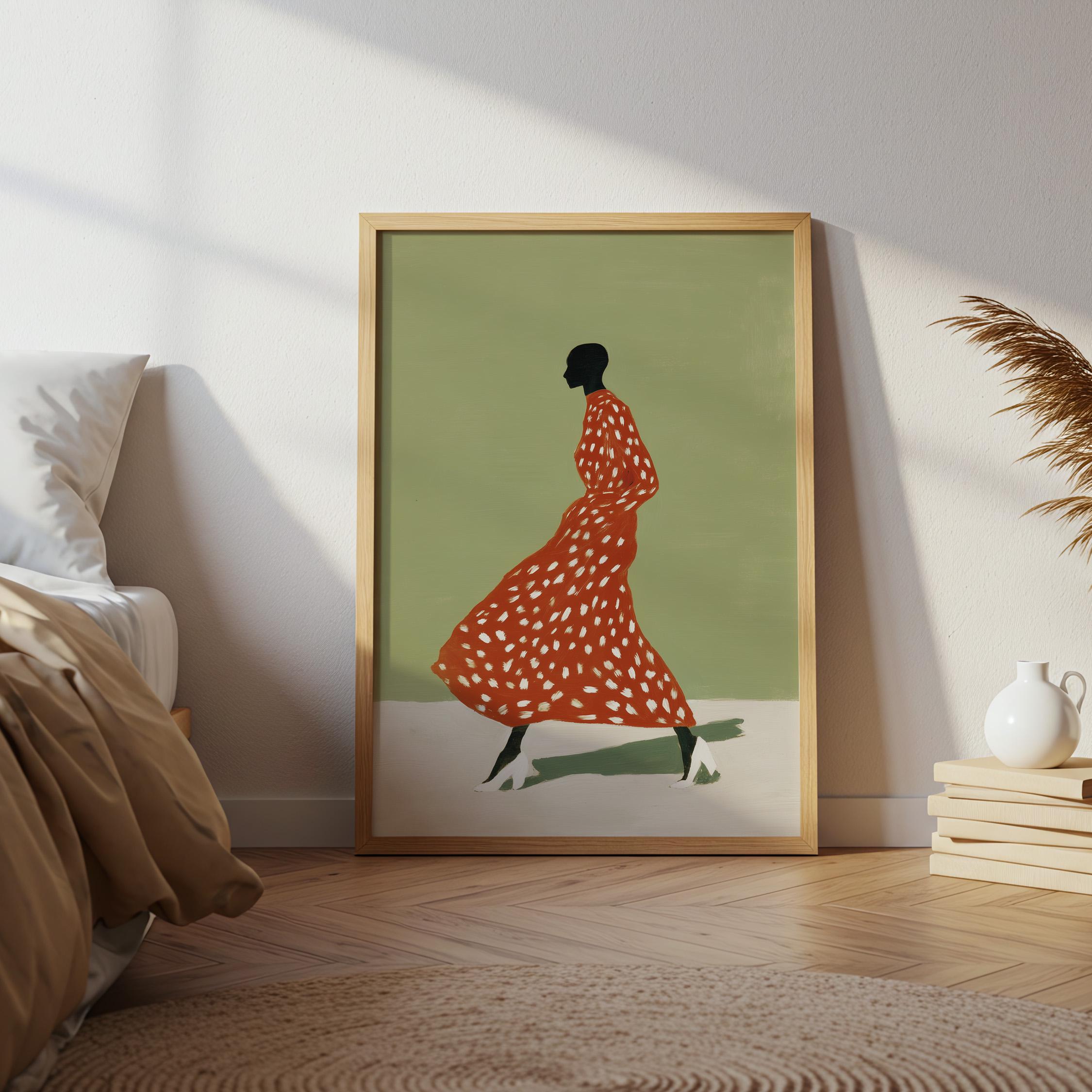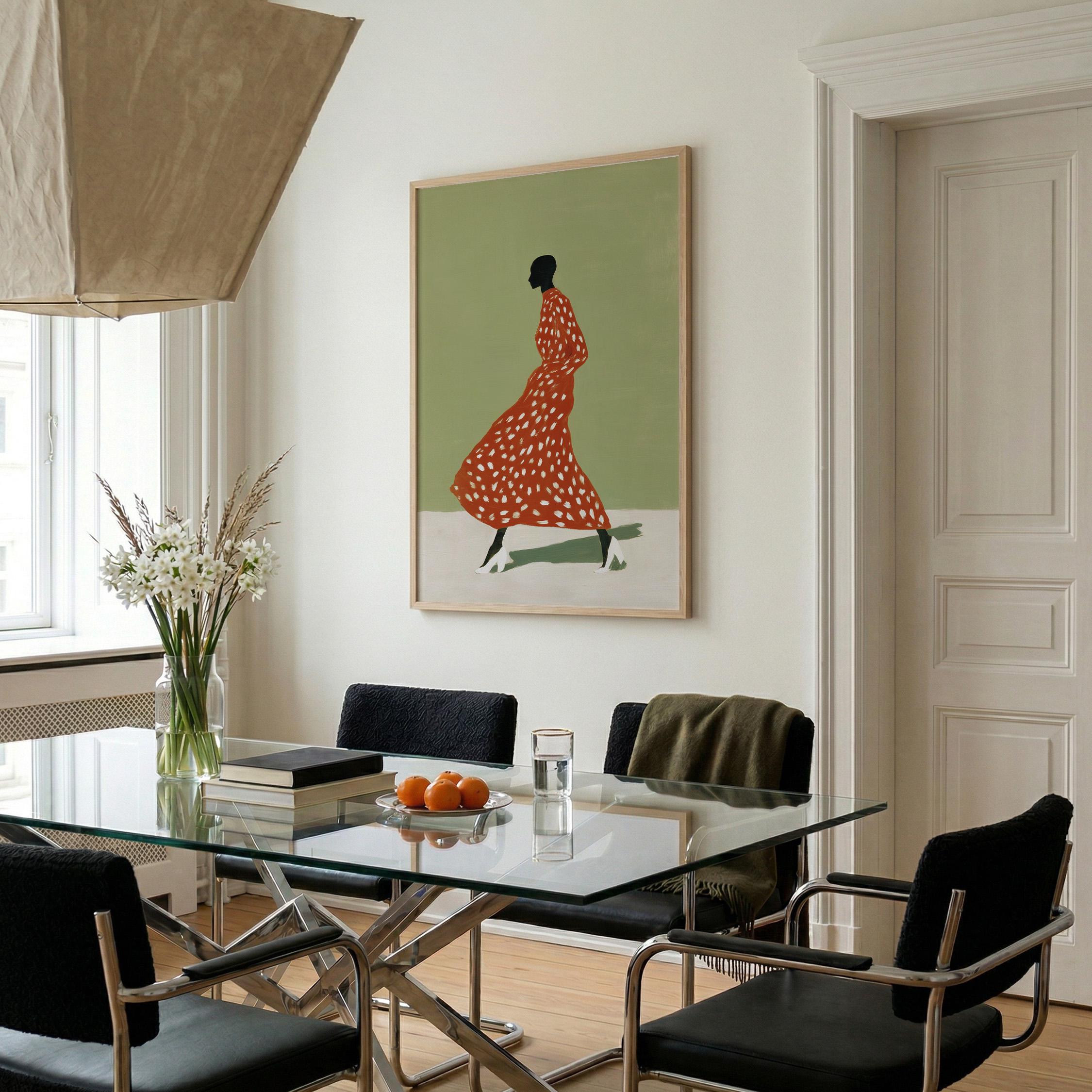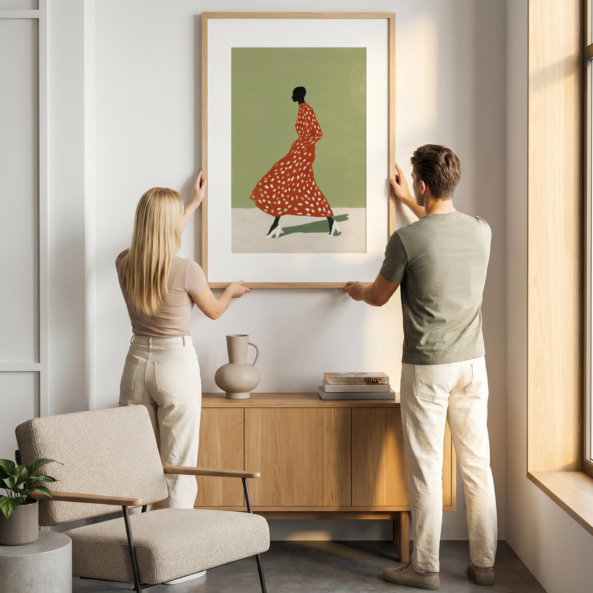 Black woman wall art print with a simple figure and fashion feel. Works well in a bedroom, dressing area, or as a gift for her. It gives the space a calm and stylish look.