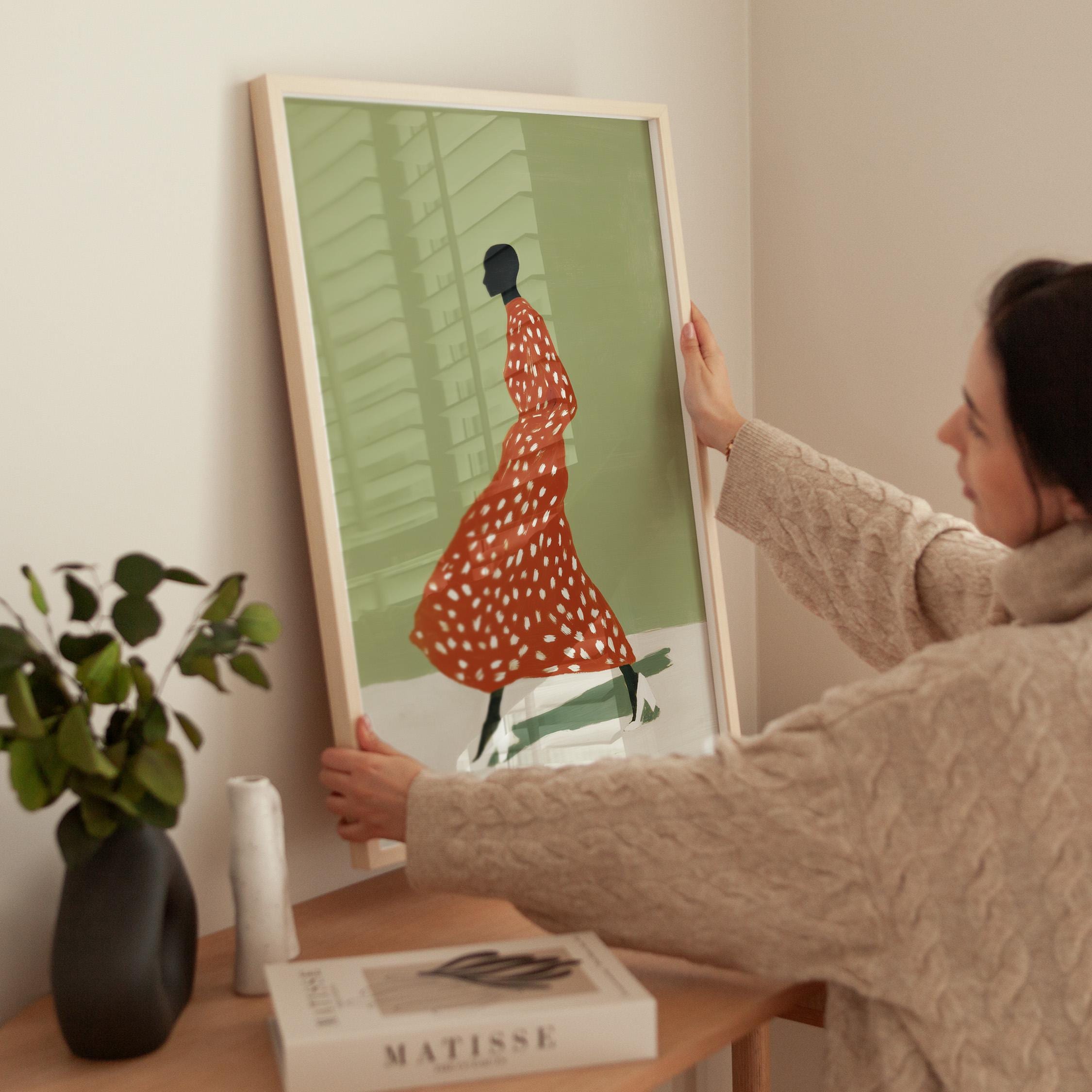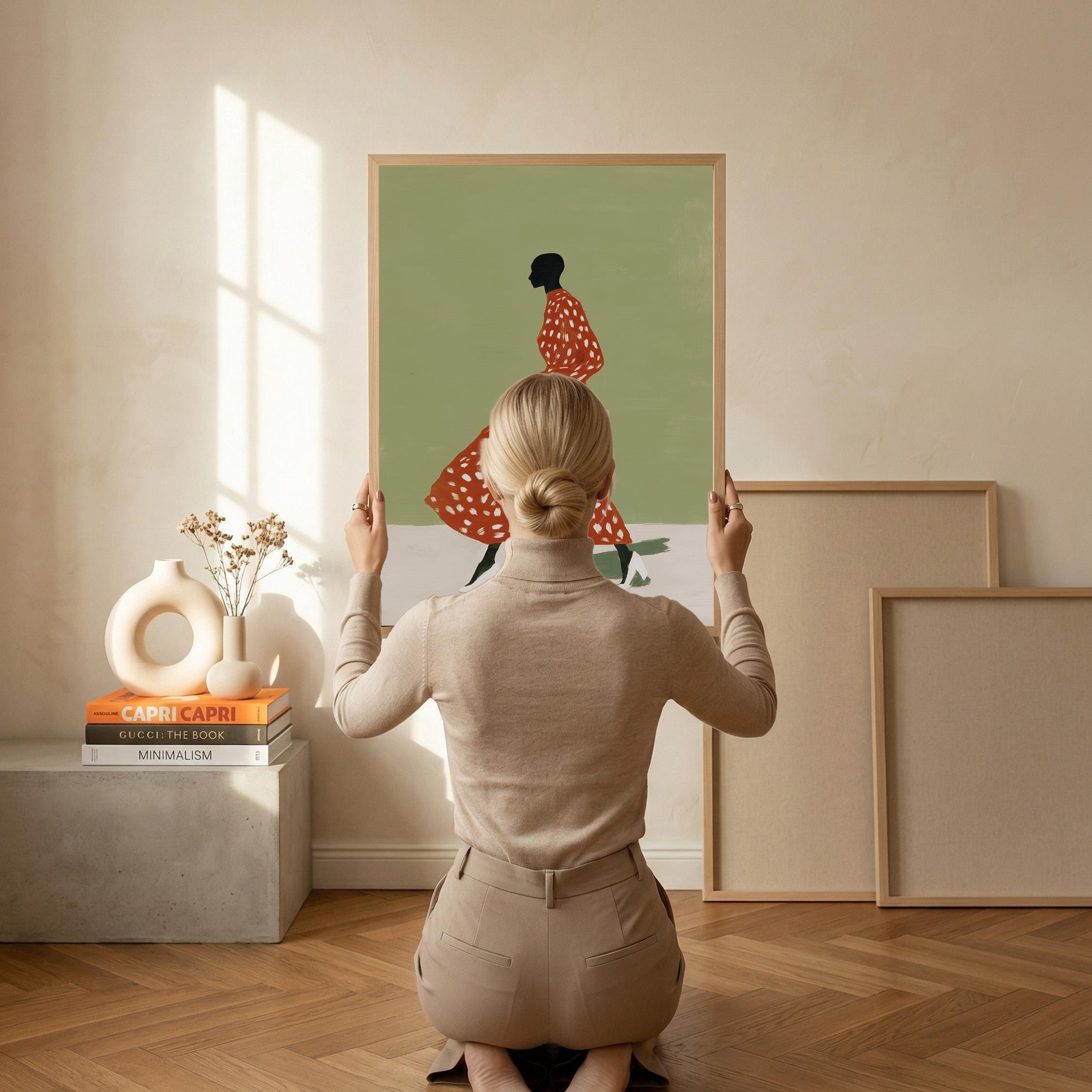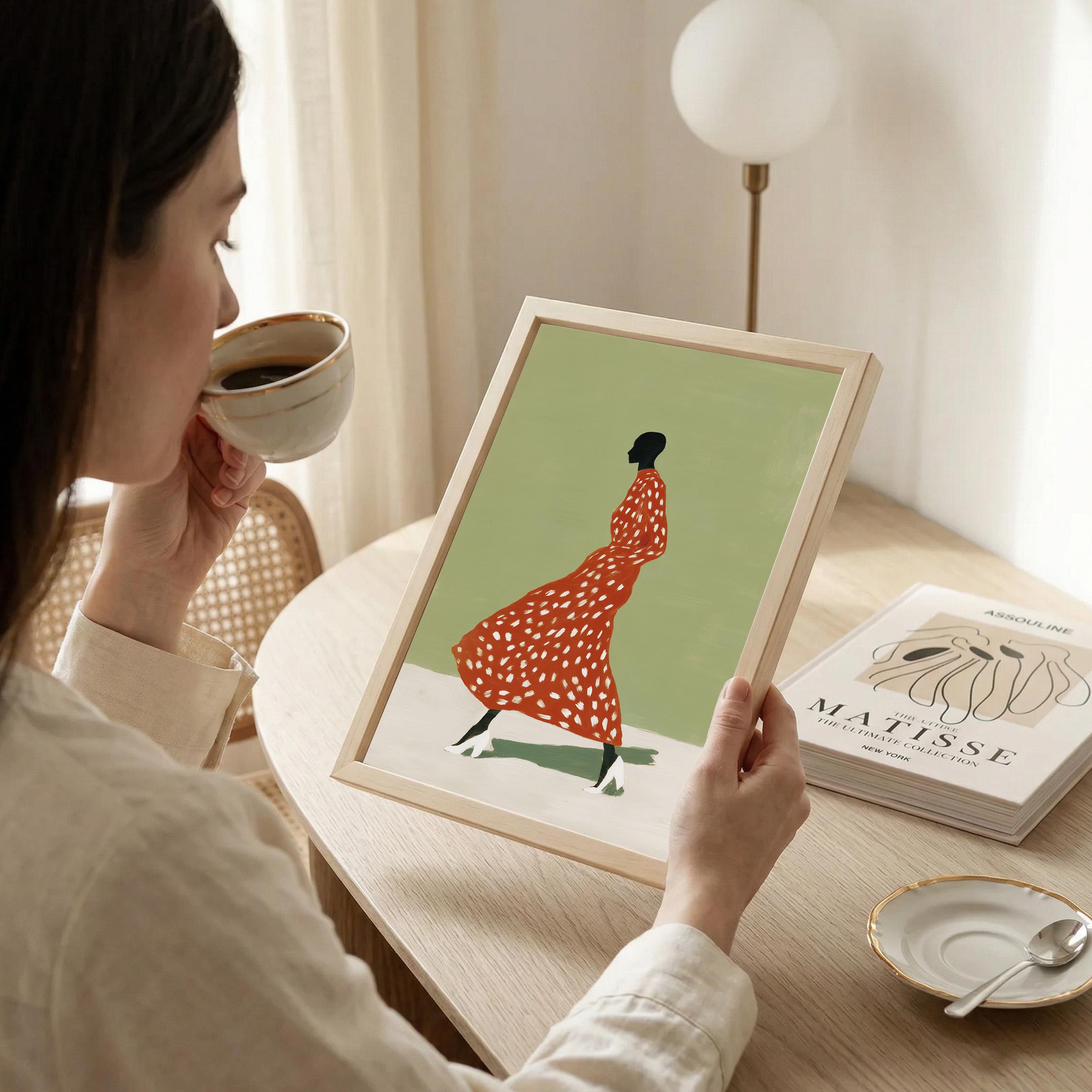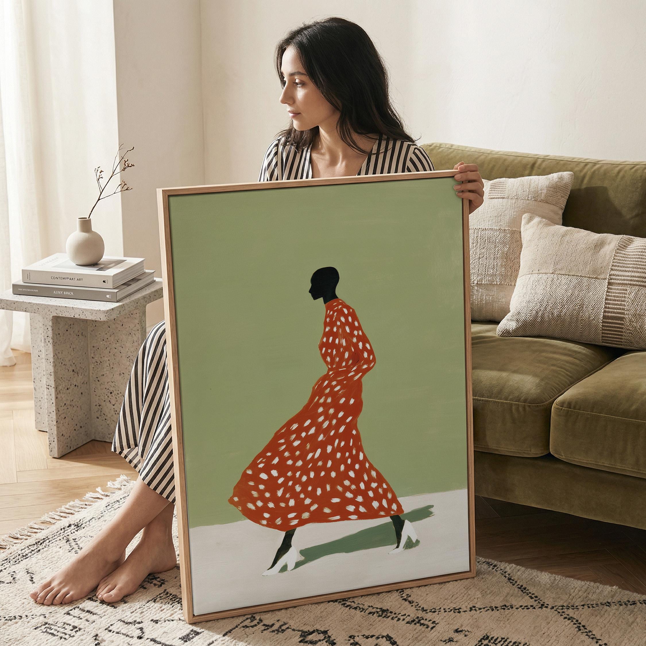 Black woman wall art print with a simple figure and fashion feel. Works well in a bedroom, dressing area, or as a gift for her. It gives the space a calm and stylish look.