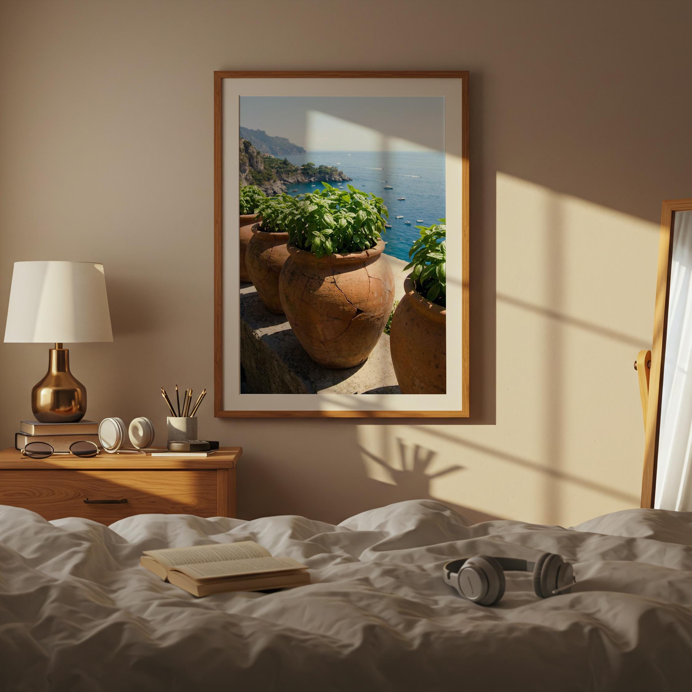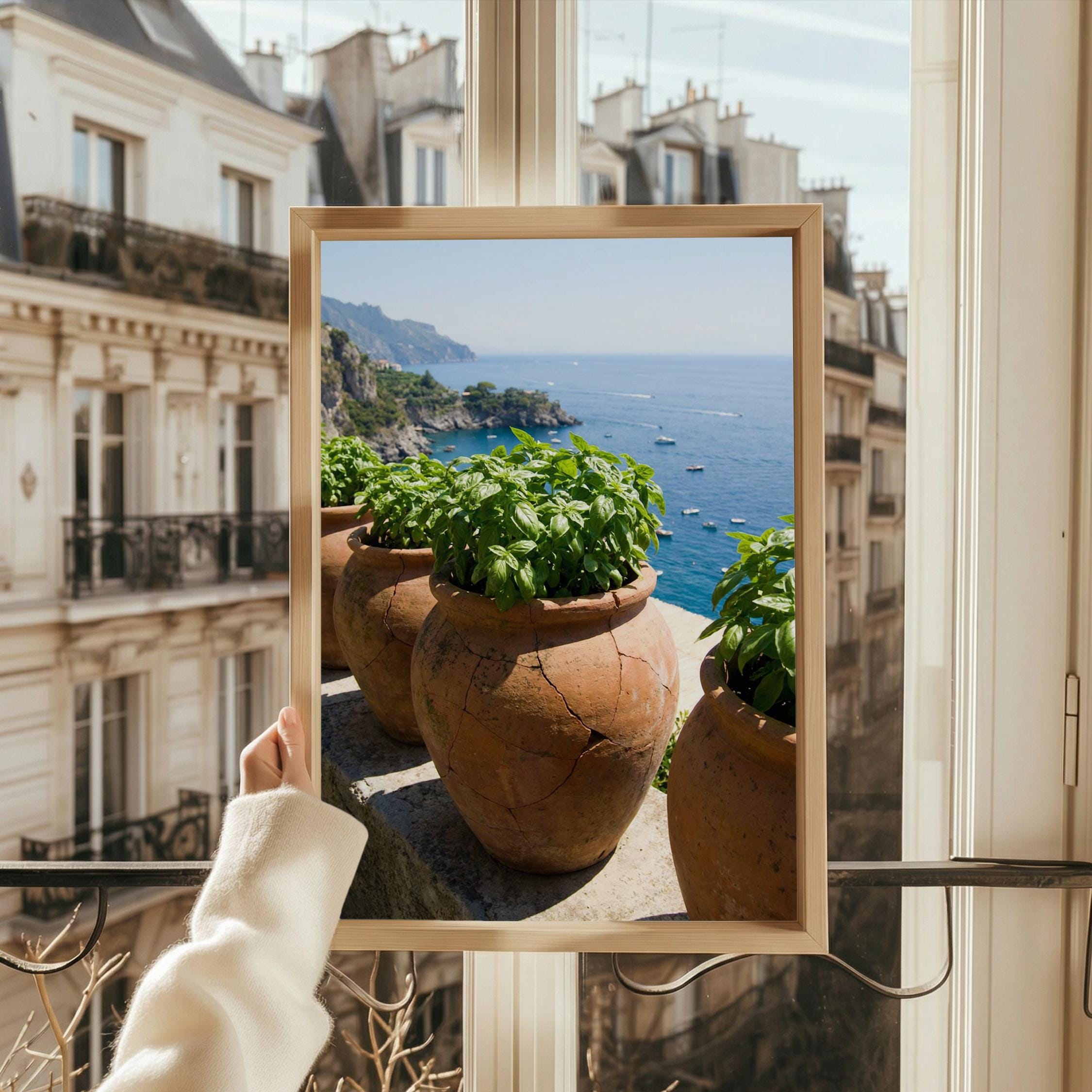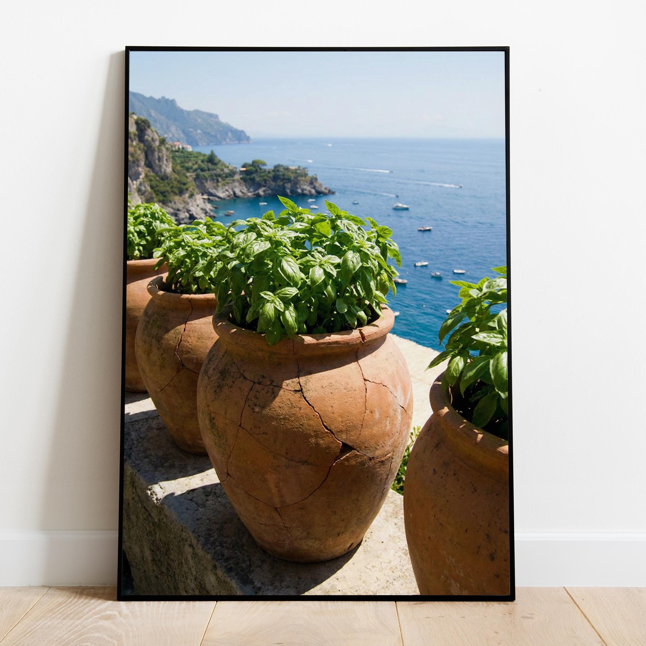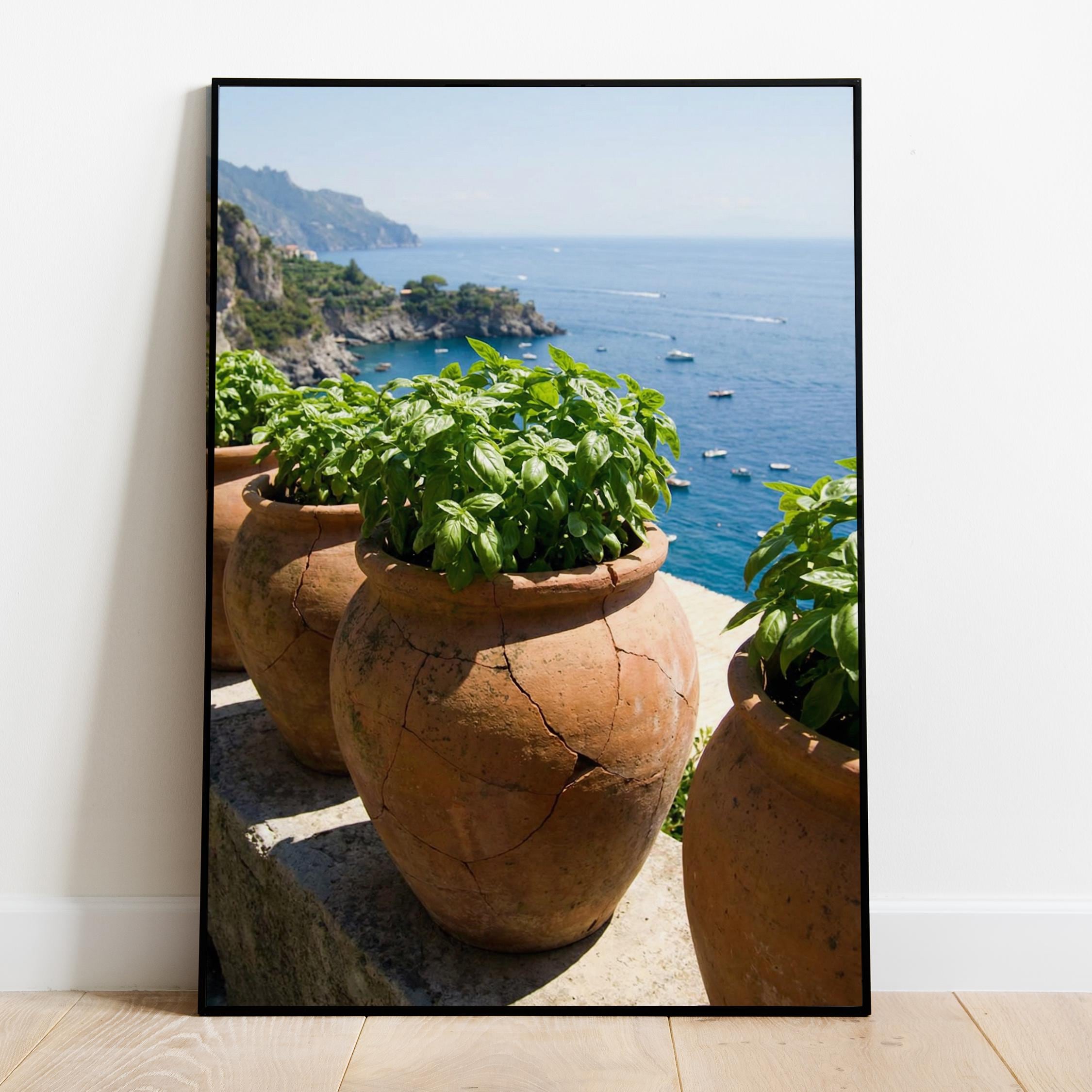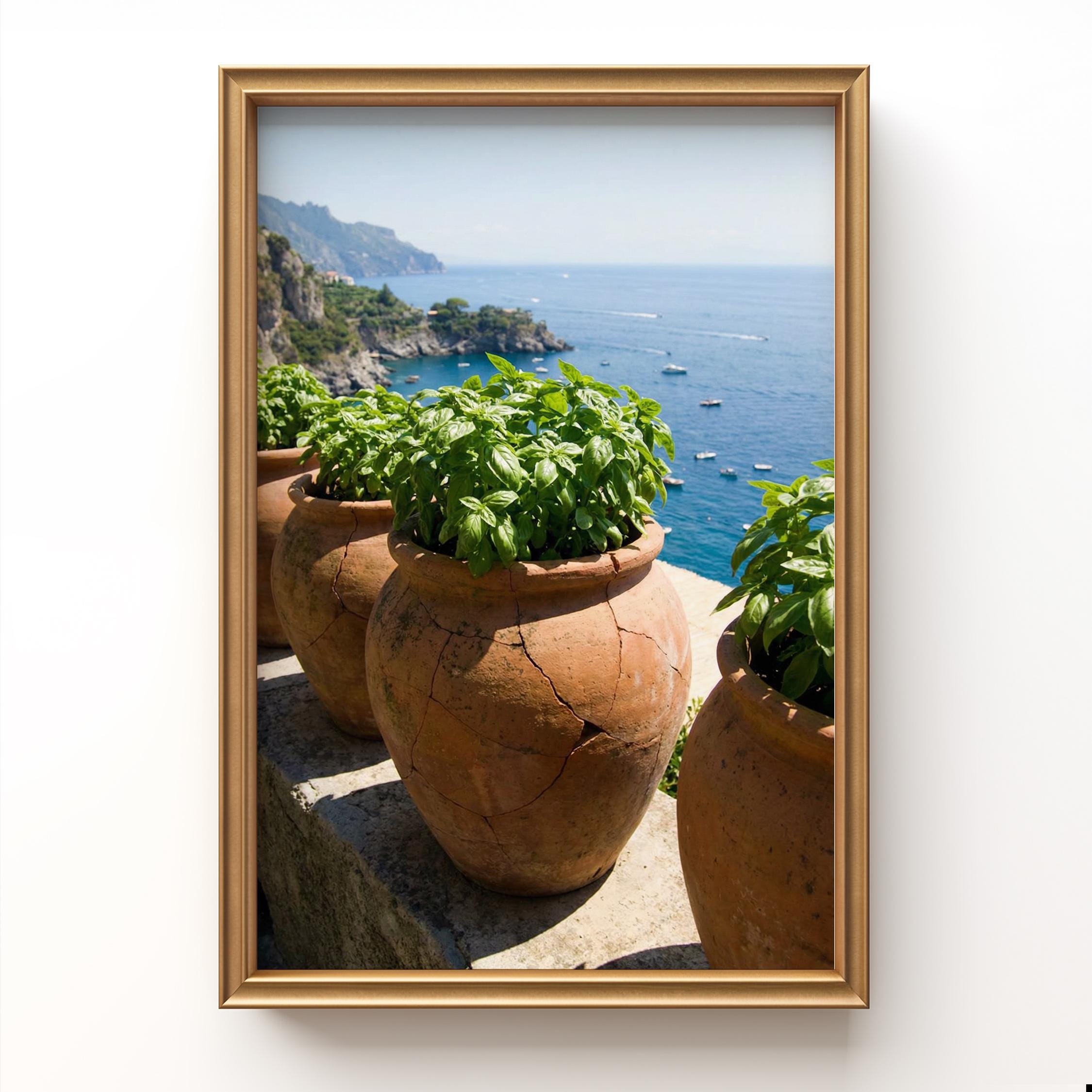 soft greens and warm earthy tones vibrant potted herbs, perfect for kitchen or dining area and a great gift for housewarming or wedding gifts digital wall art