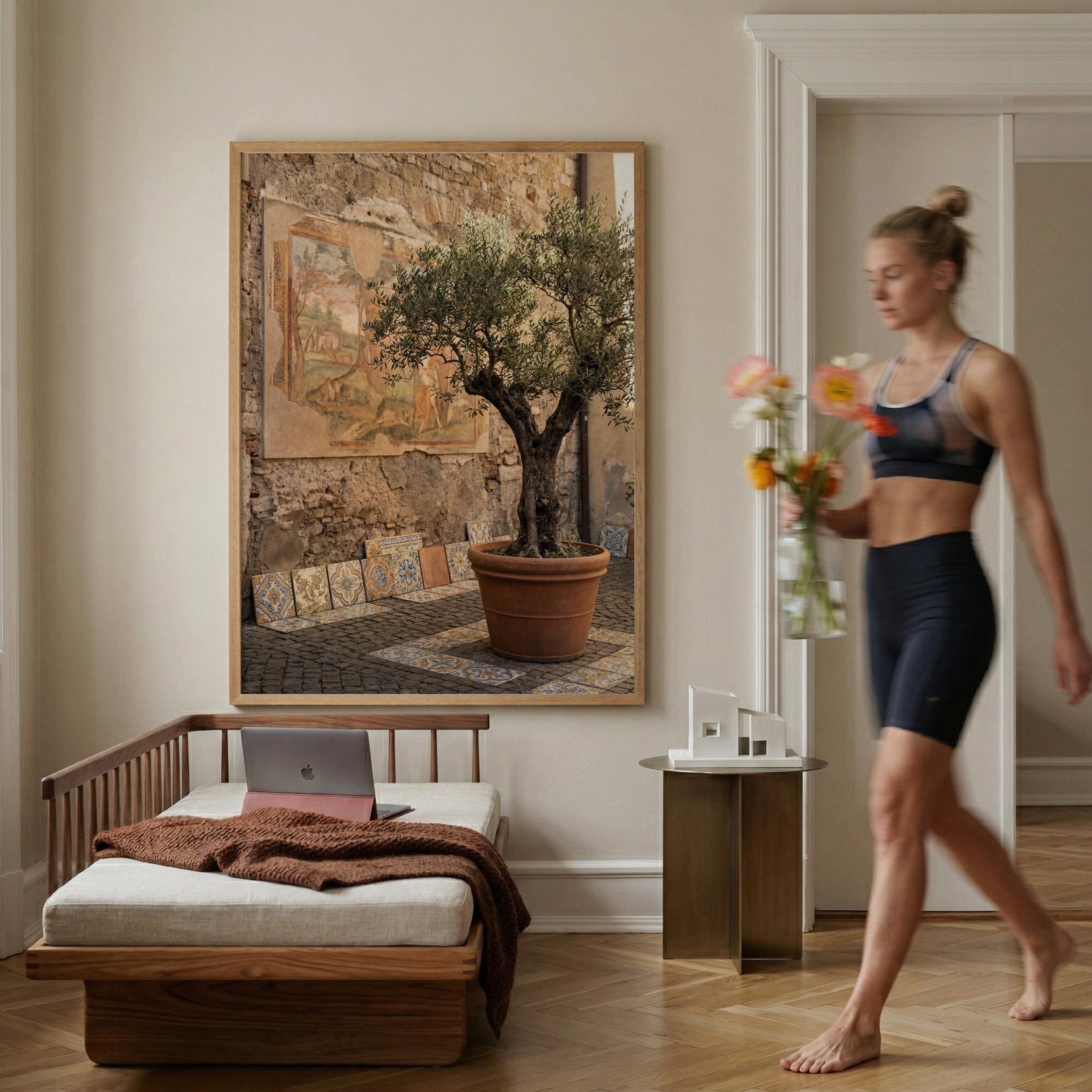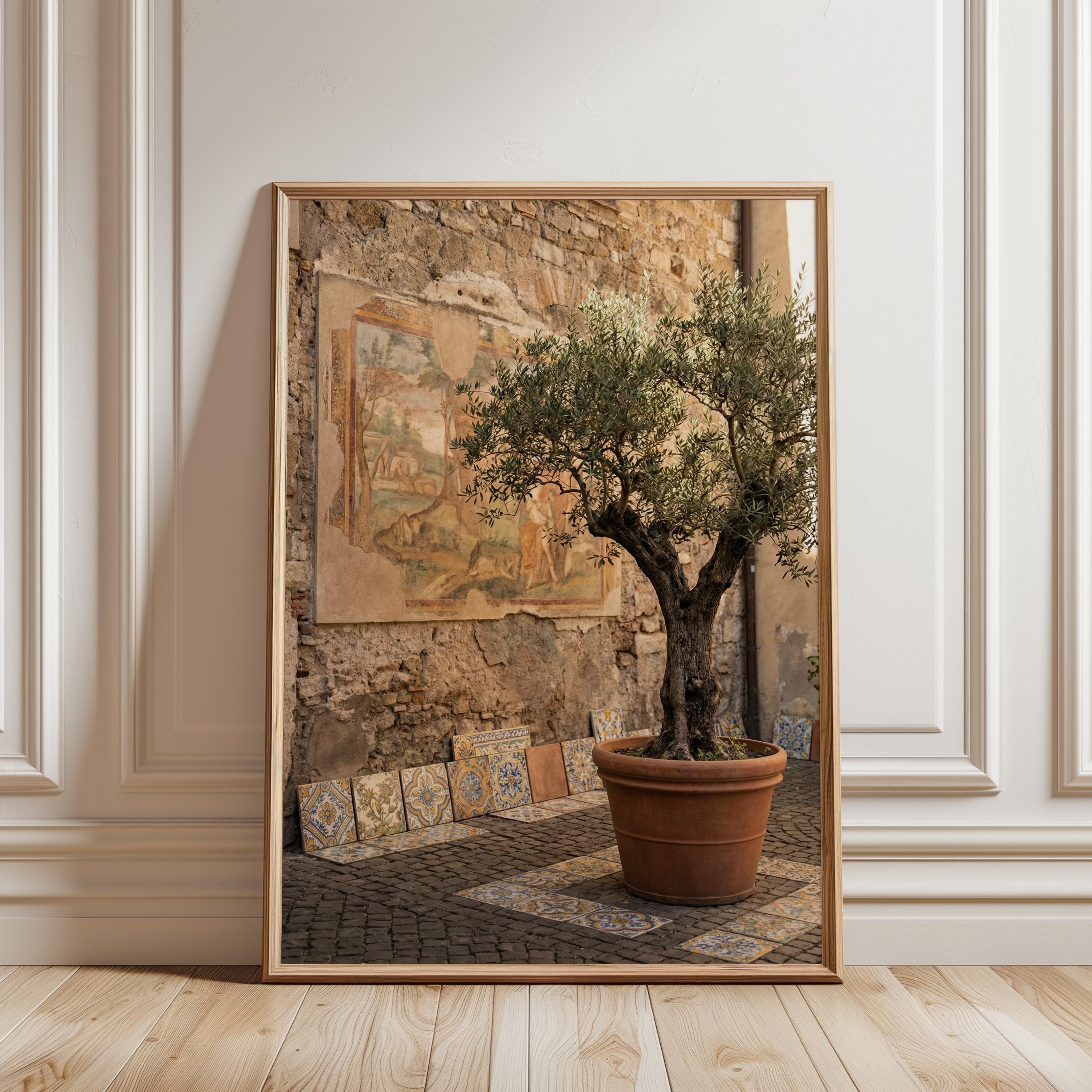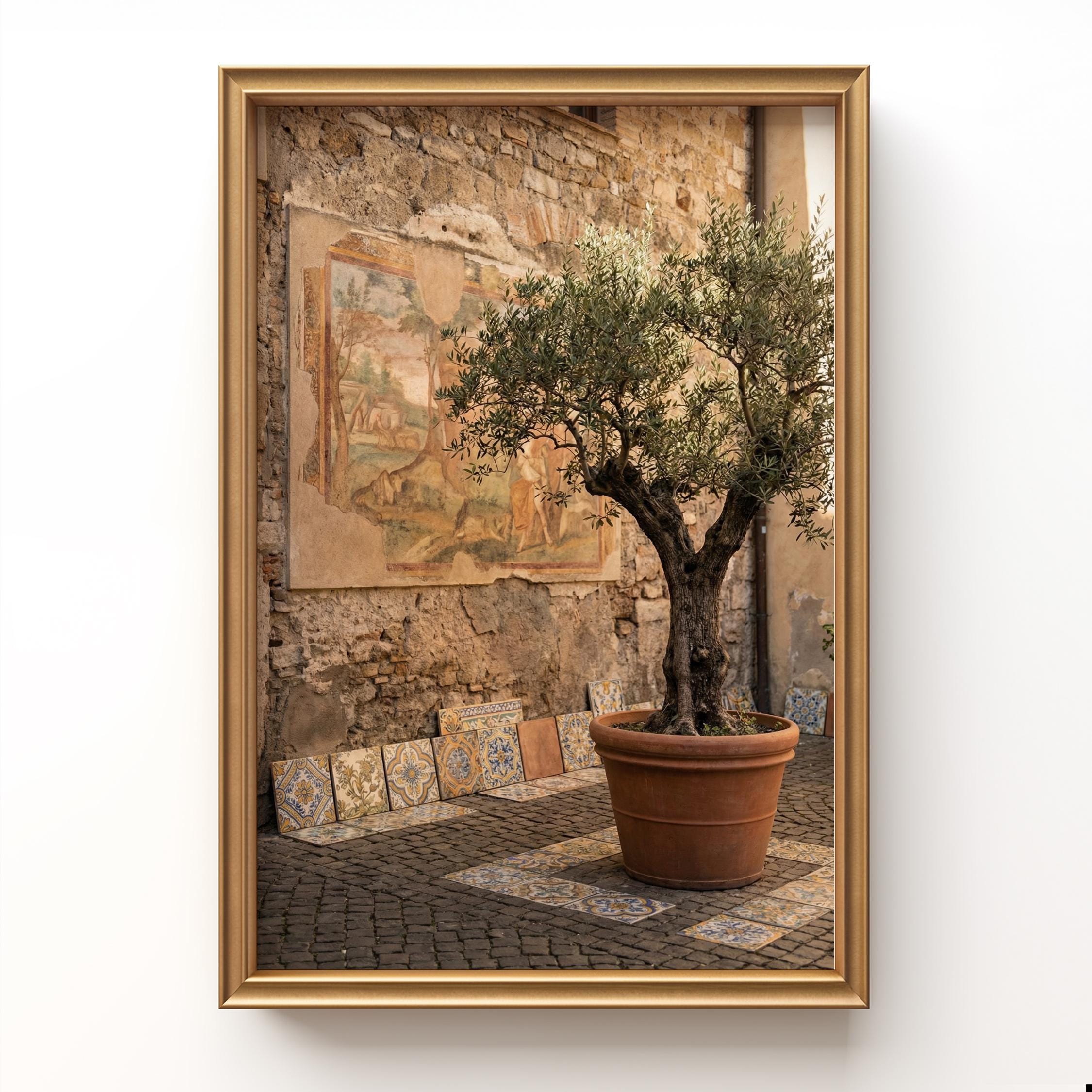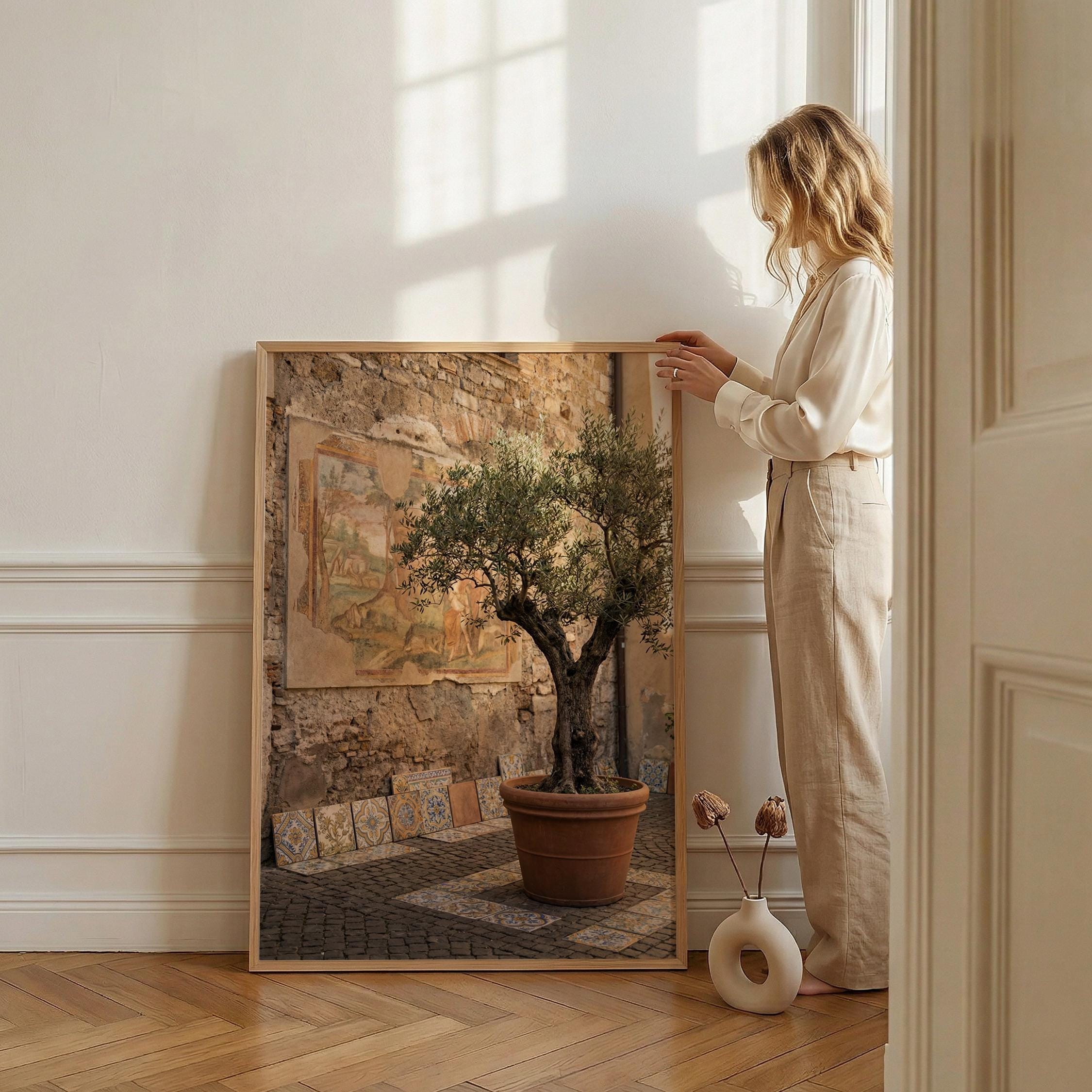 soft greens and warm browns a stunning Italian olive tree, perfect for your living room and a great gift for housewarming celebrations digital wall art