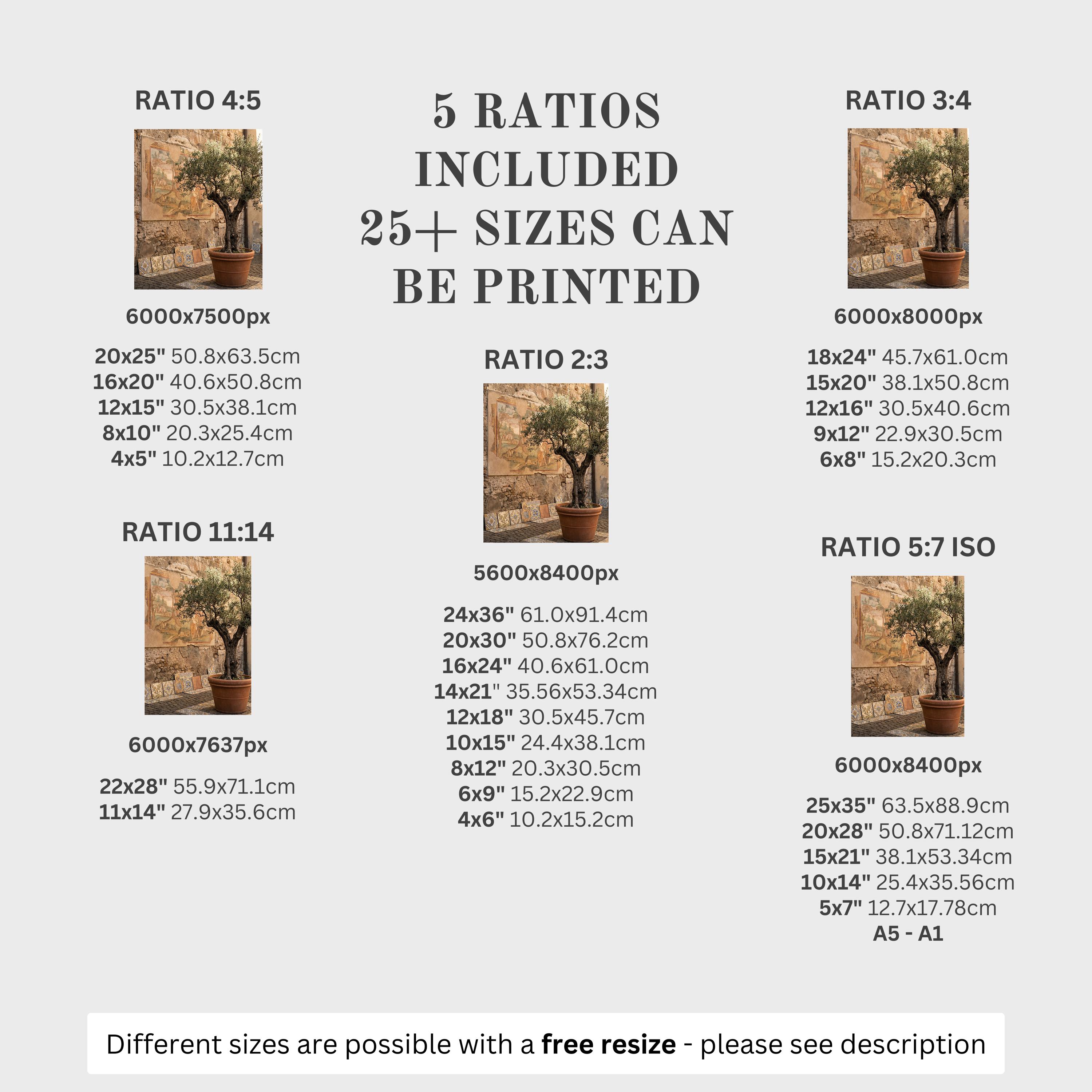 5 HIGH-QUALITY 300 DPI JPGs sized to fit +25 different frames in size and diverse ratios: