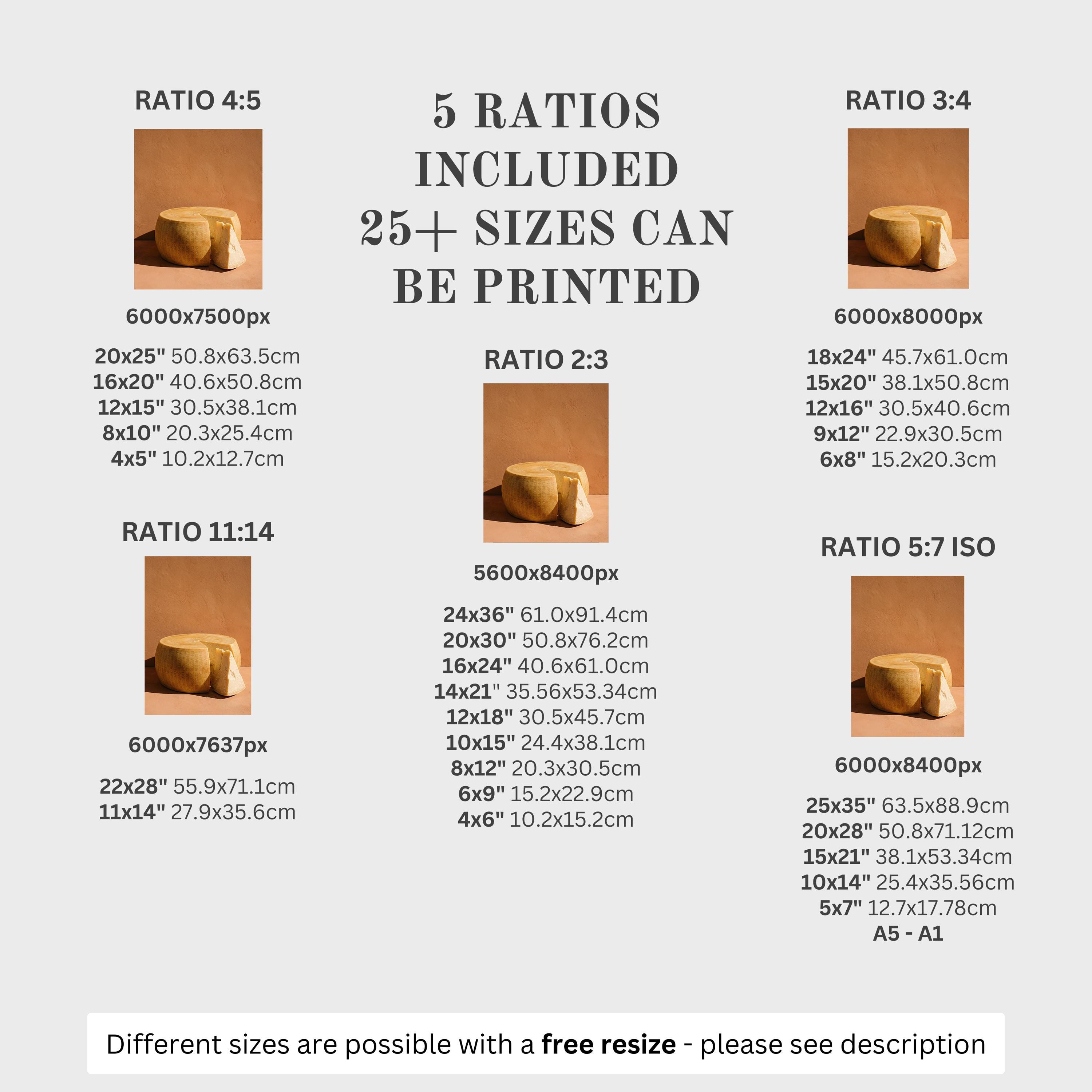 5 HIGH-QUALITY 300 DPI JPGs sized to fit +25 different frames in size and diverse ratios: