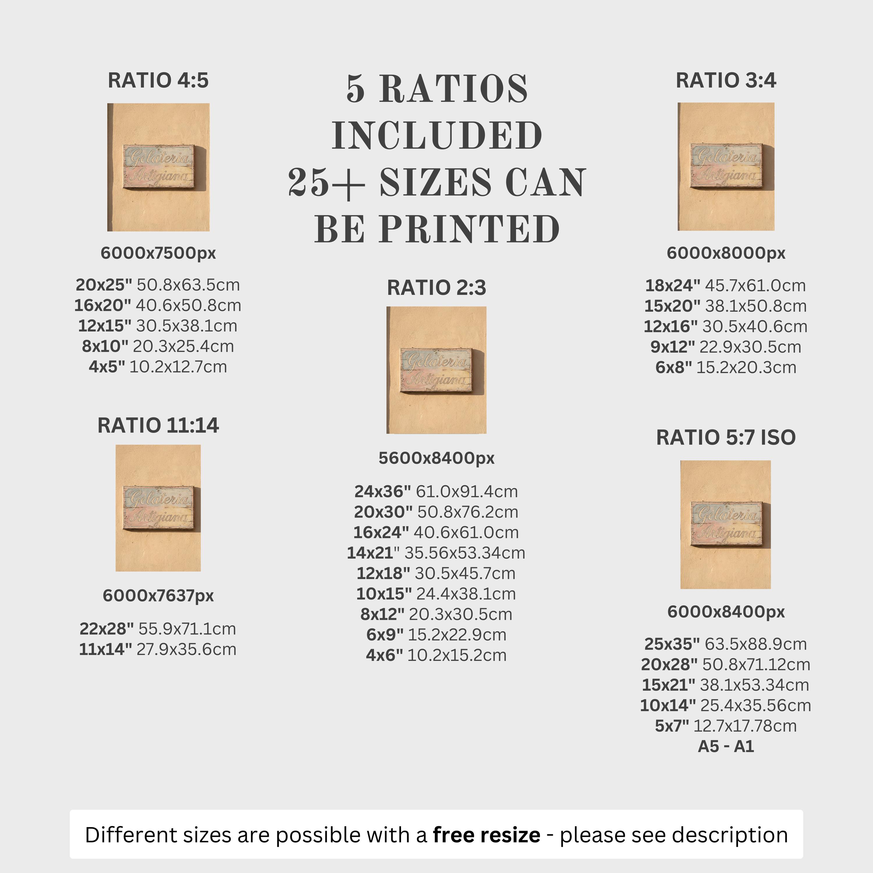 5 HIGH-QUALITY 300 DPI JPGs sized to fit +25 different frames in size and diverse ratios: