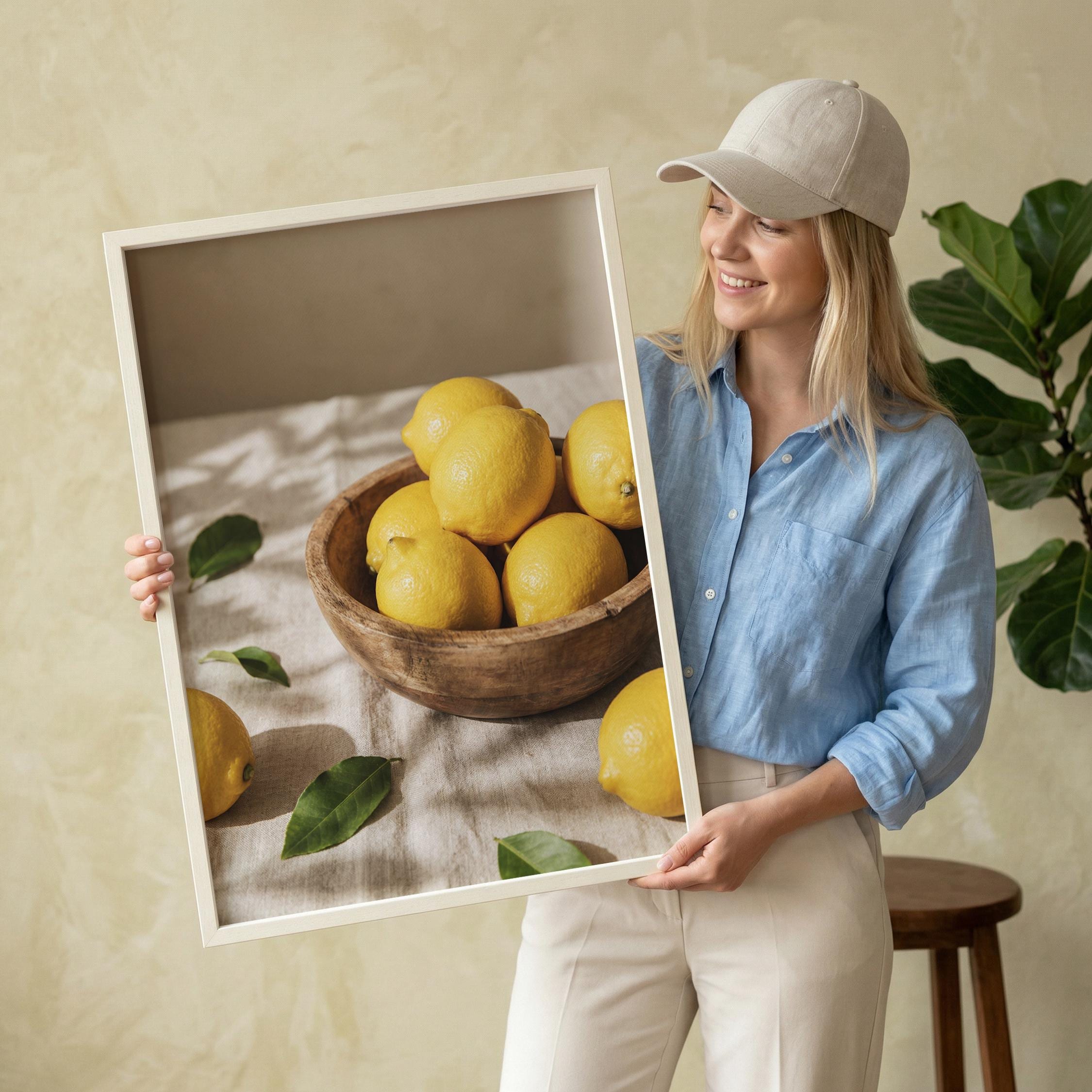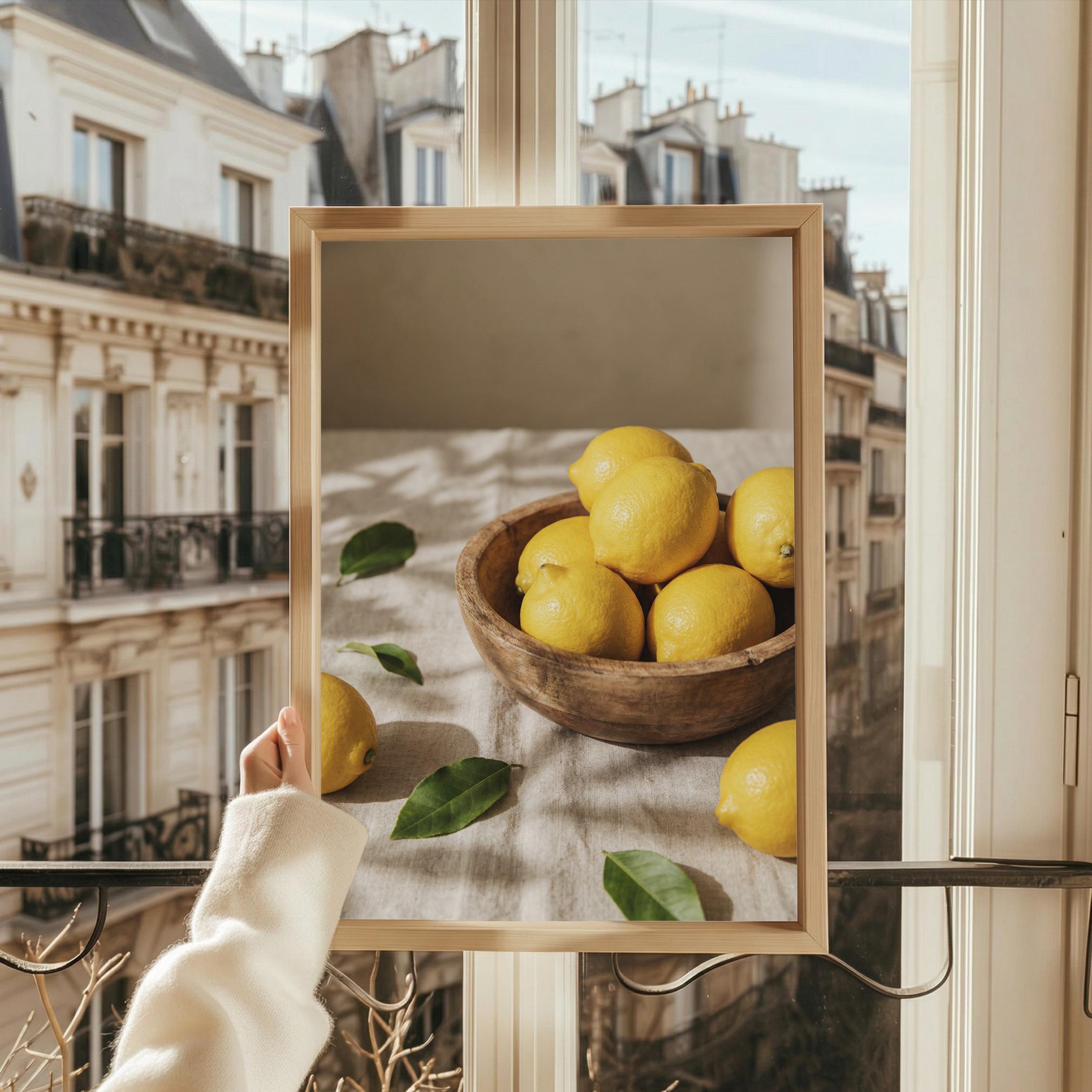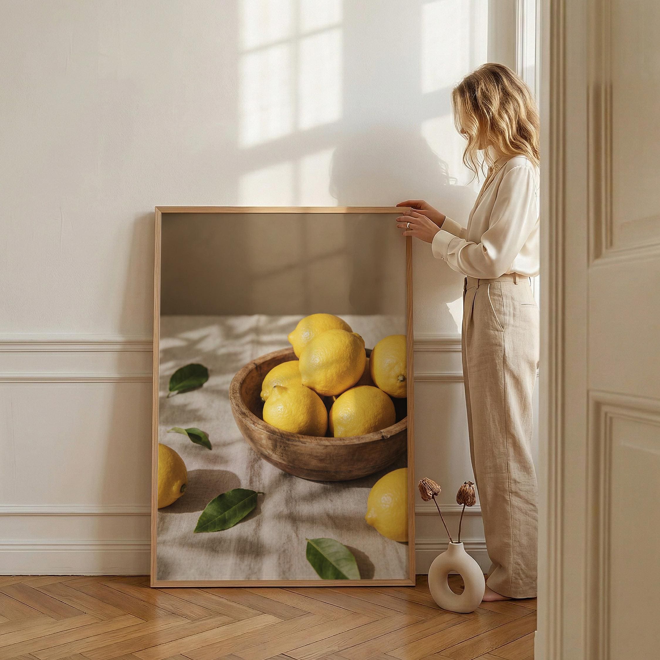 a vibrant print of Italian lemons, perfect for the kitchen and a great gift for housewarming gifts.