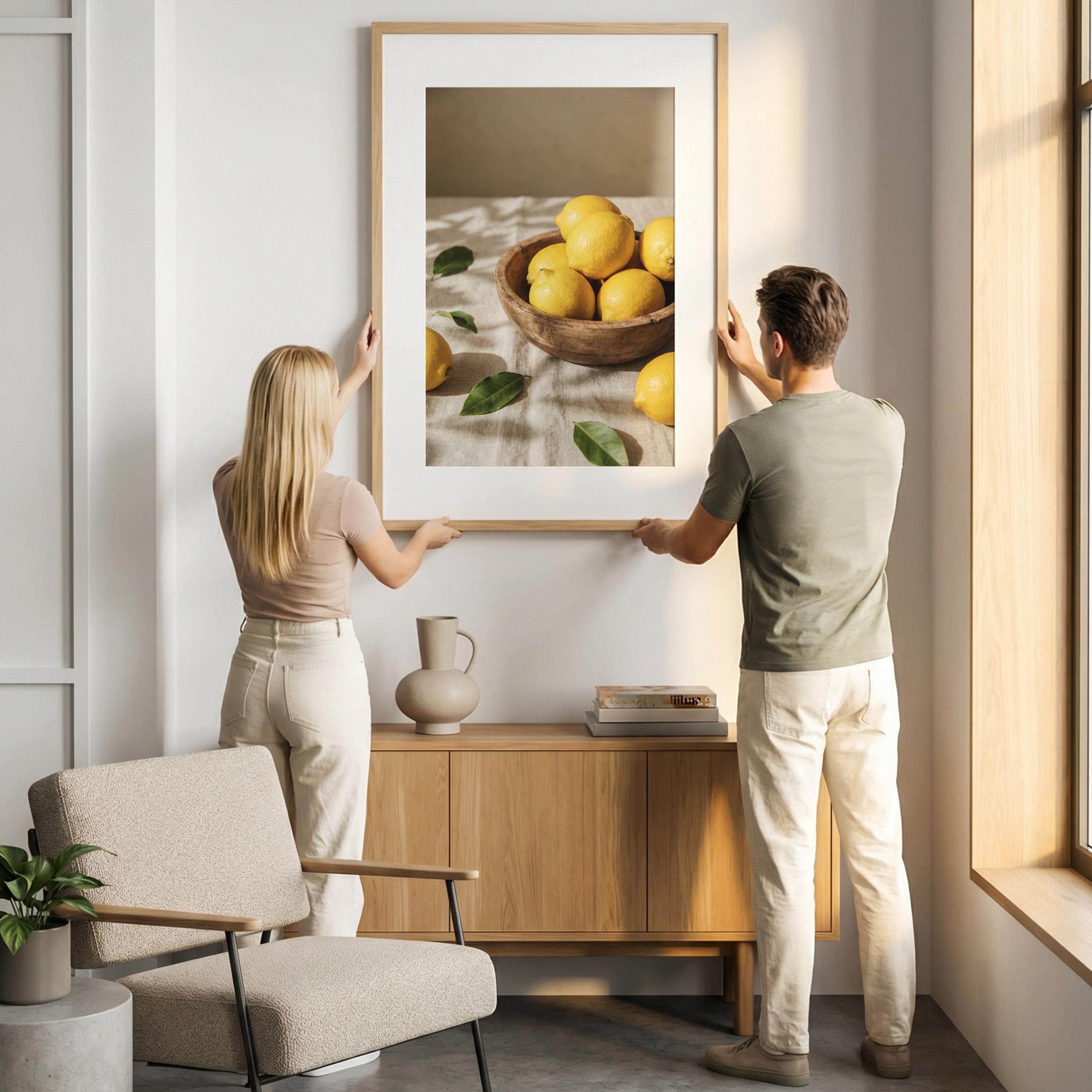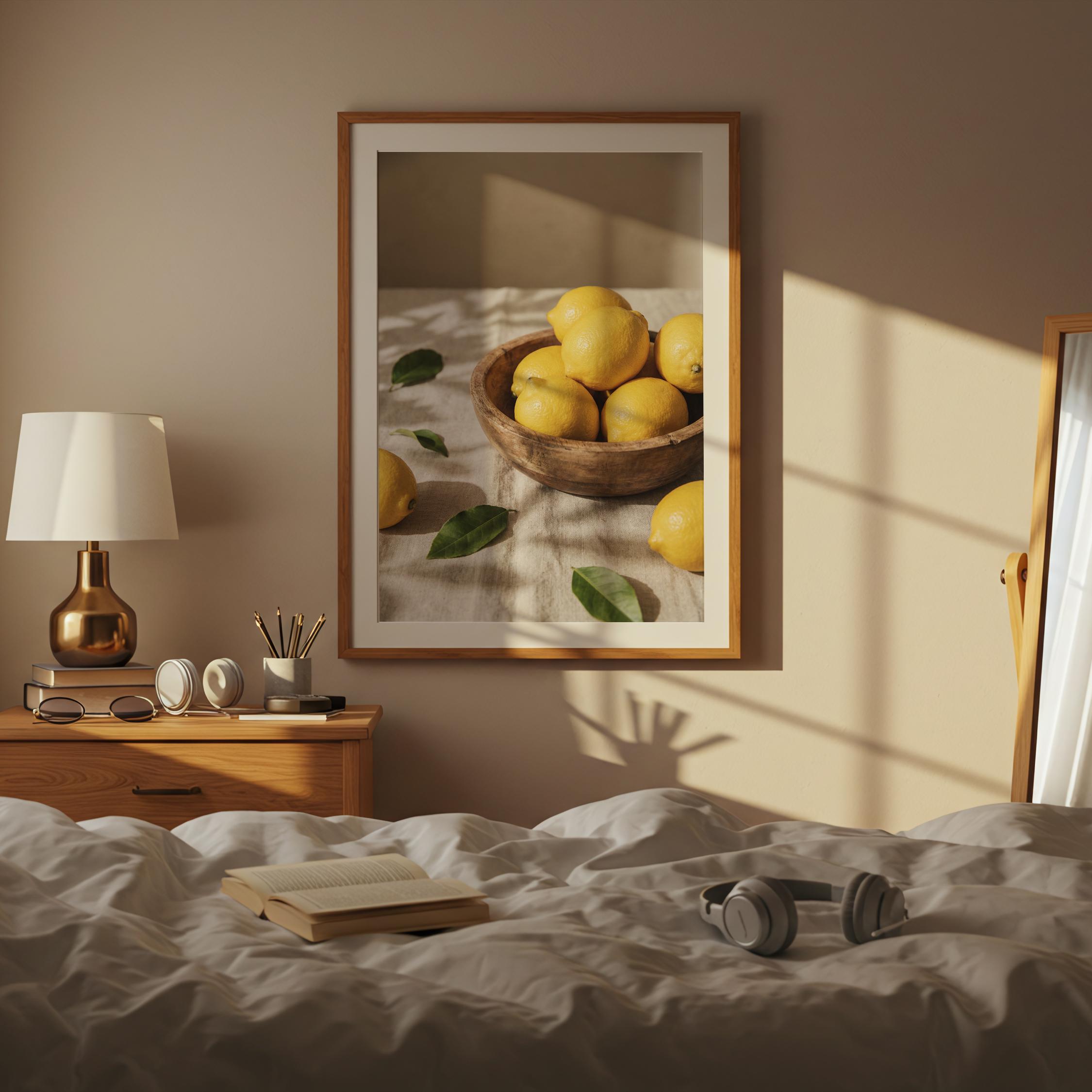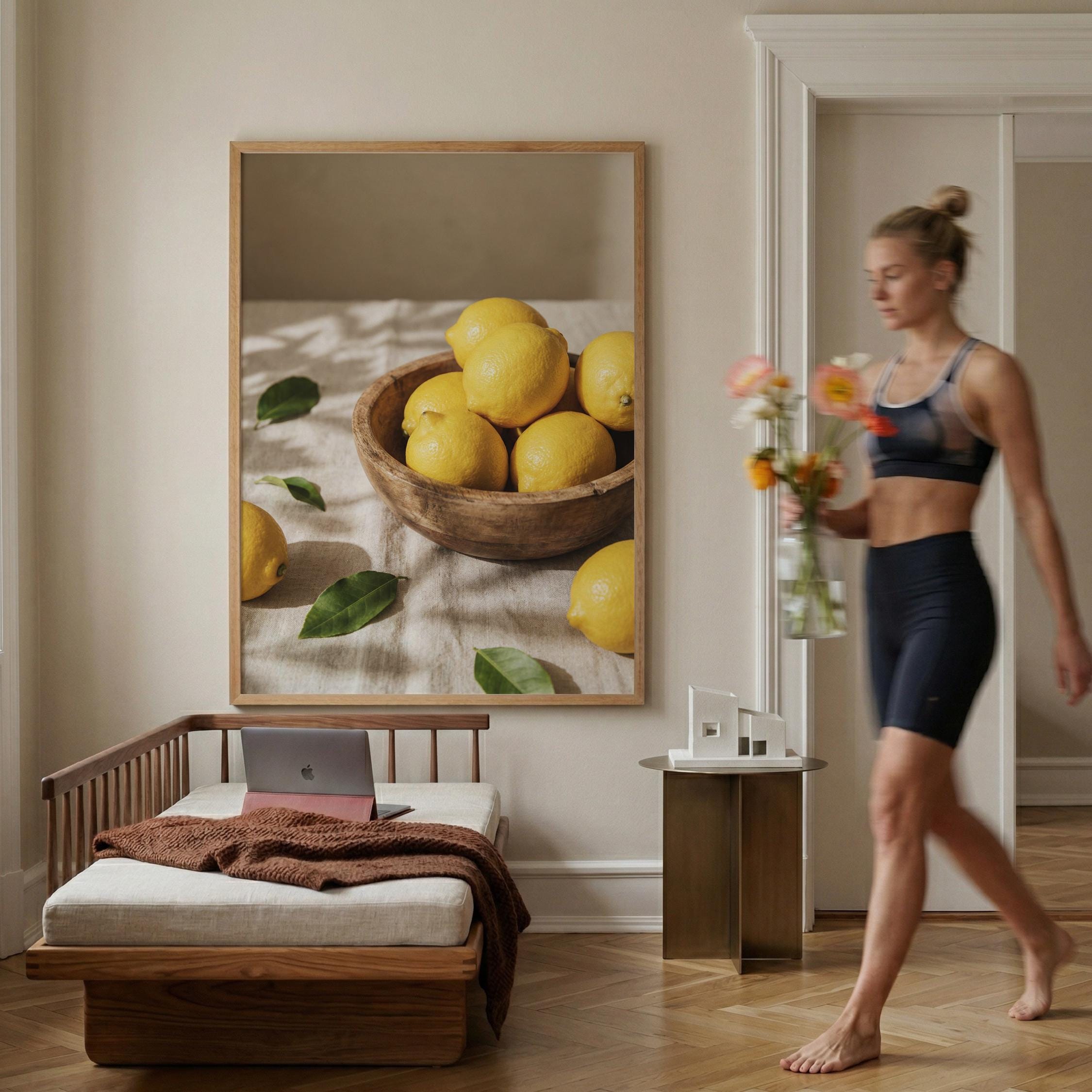 a vibrant print of Italian lemons, perfect for the kitchen and a great gift for housewarming gifts.