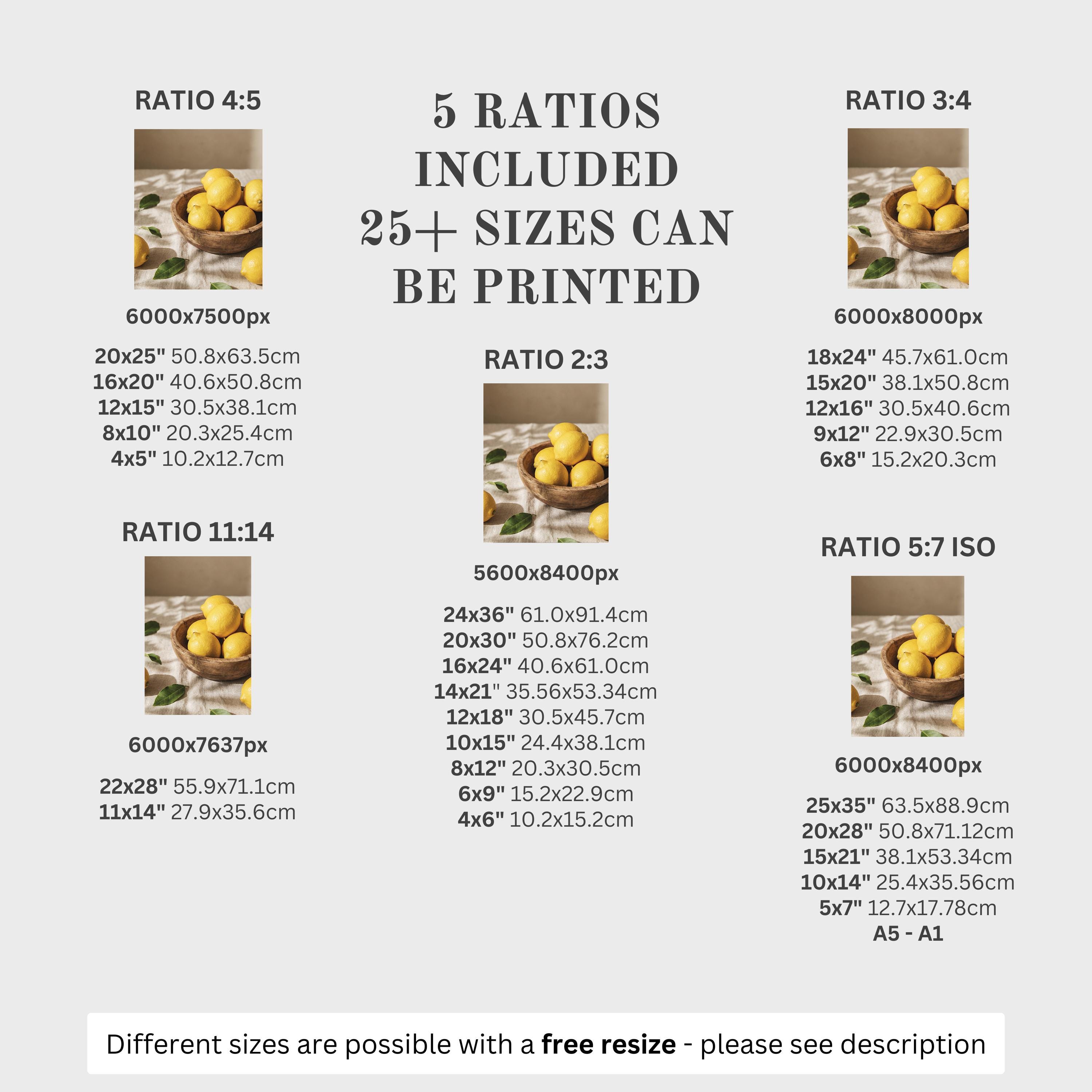 5 HIGH-QUALITY 300 DPI JPGs sized to fit +25 different frames in size and diverse ratios: