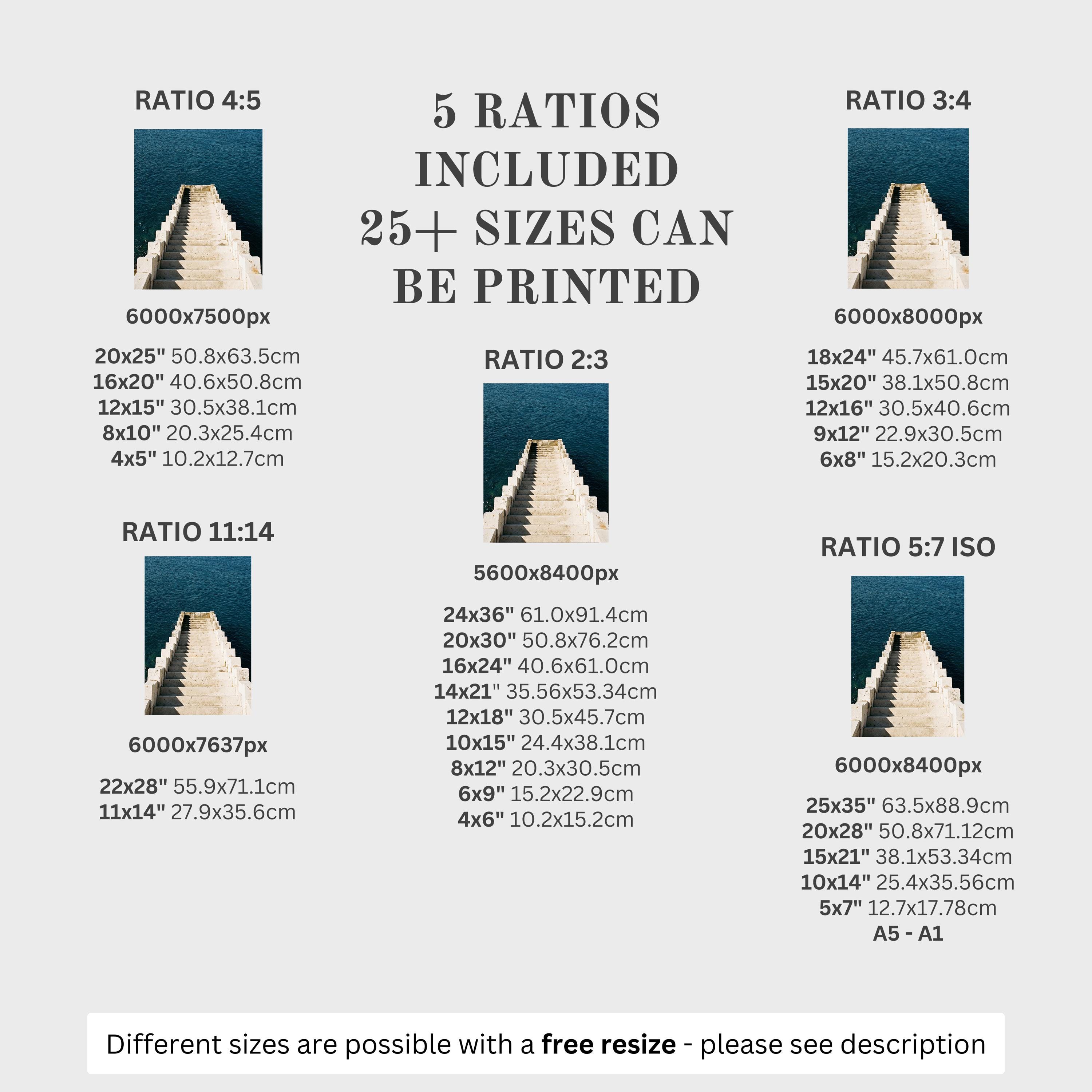 5 HIGH-QUALITY 300 DPI JPGs sized to fit +25 different frames in size and diverse ratios:
