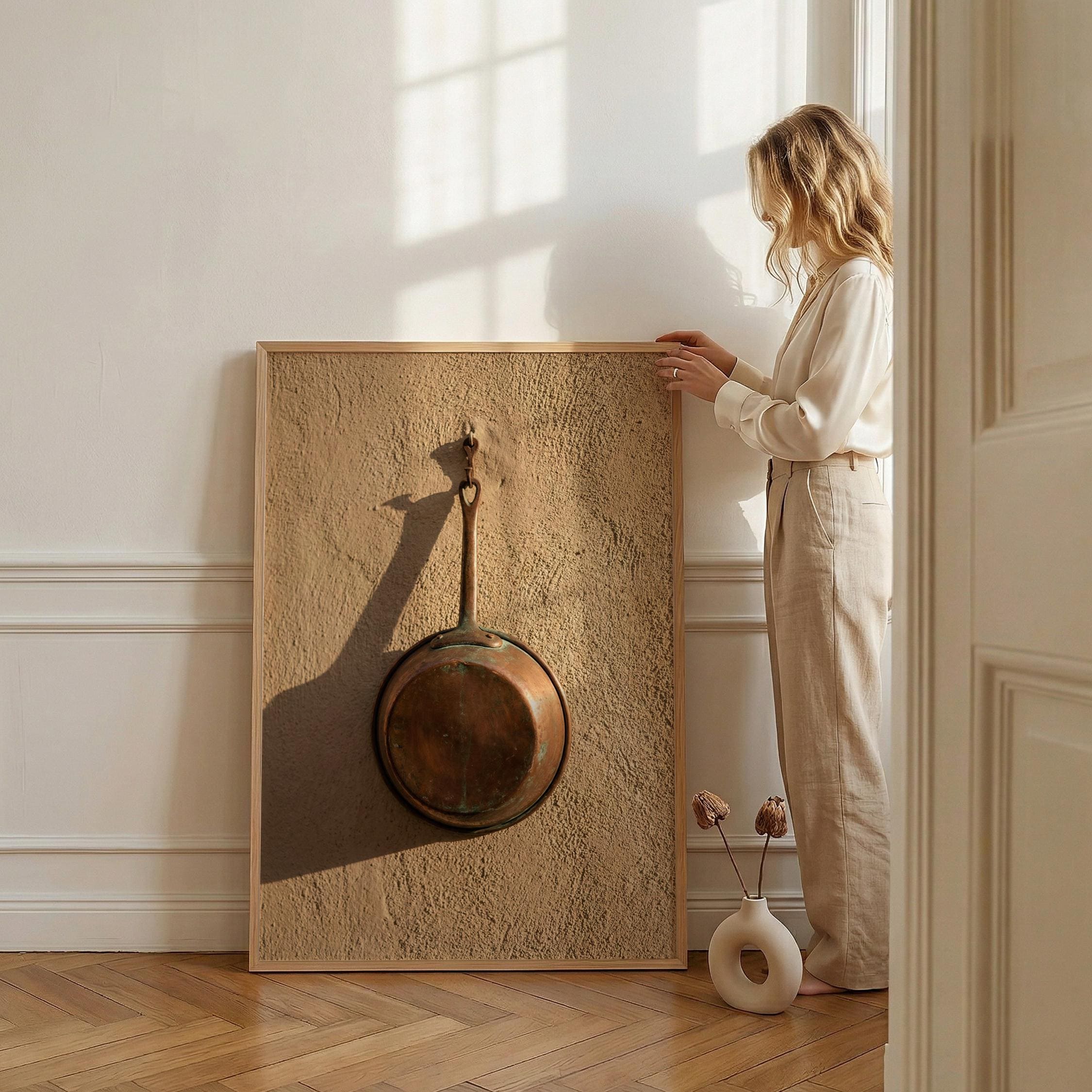 rustic copper still life art, perfect for kitchen and a great gift for housewarming gift.